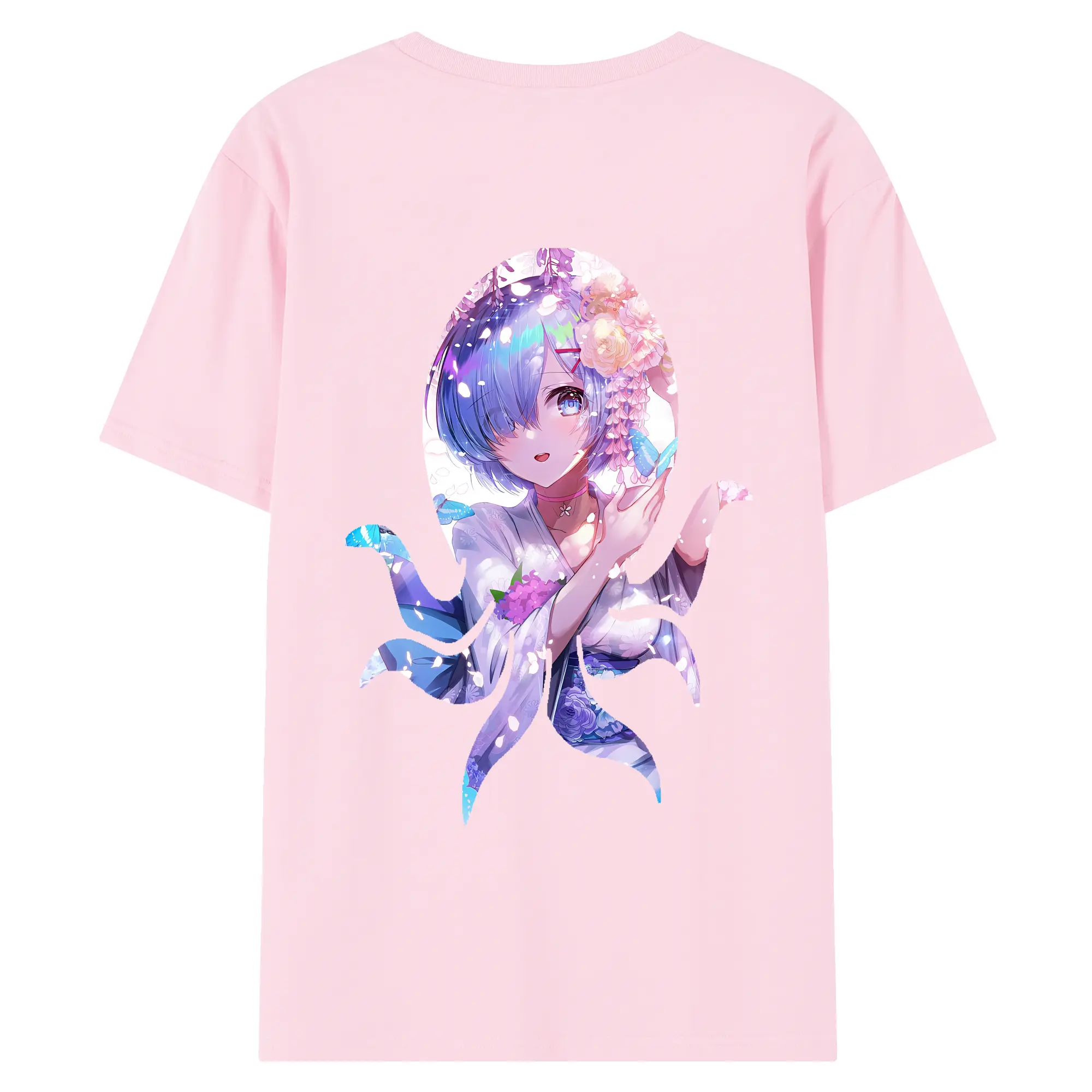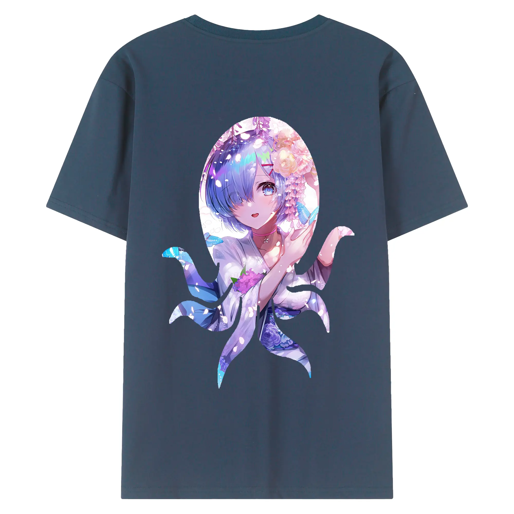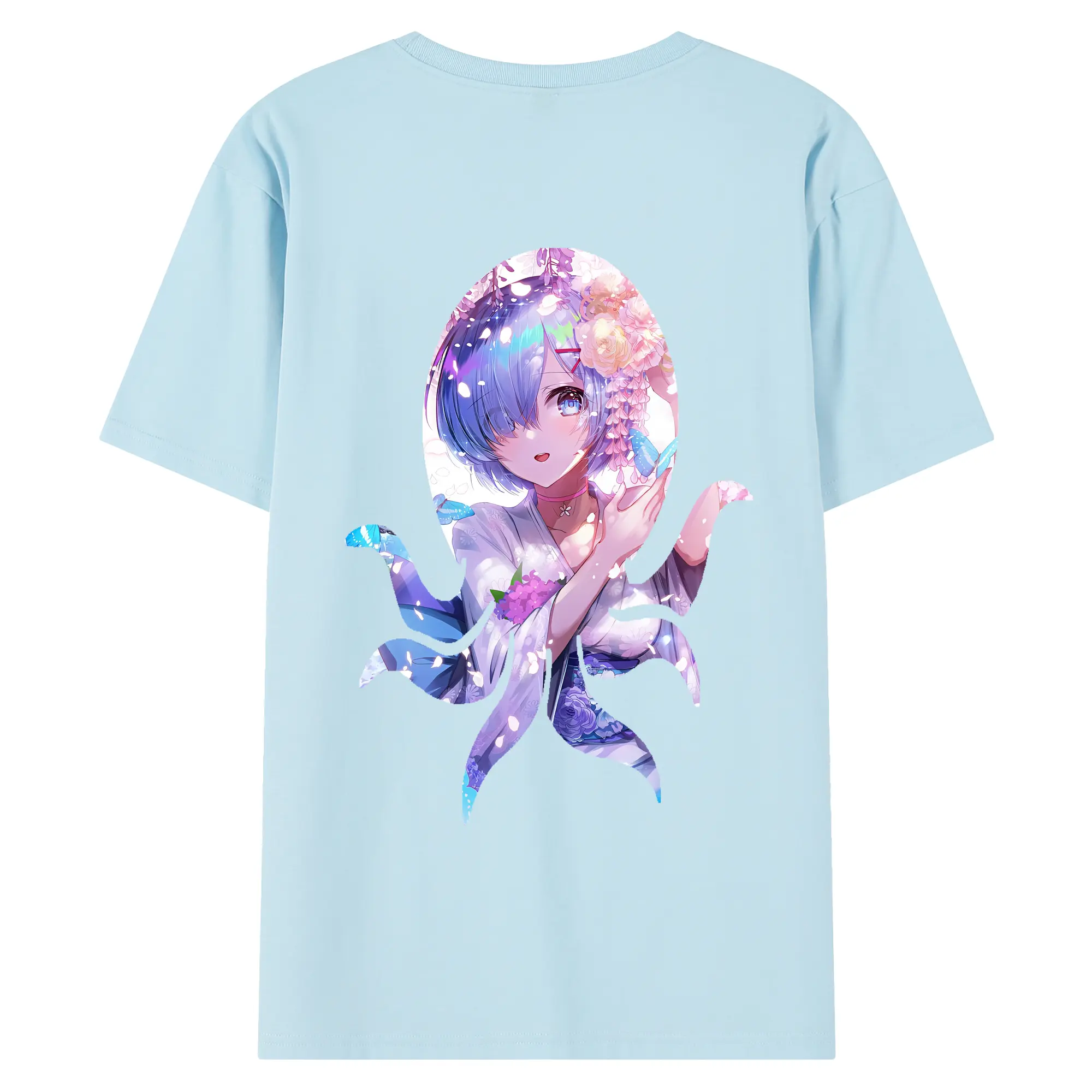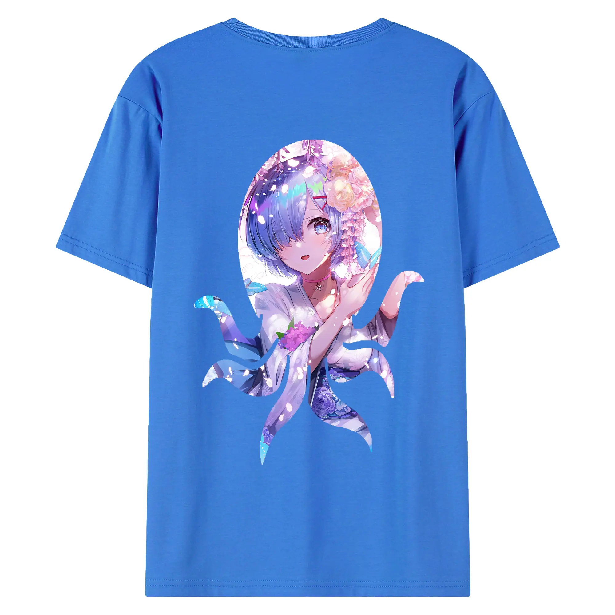 リゼロ グッズ レム - 綿100% 半袖Tシャツ ・ フロントプリント ・ 快適 通気性 ・ 日常使い 散歩 スポーツ用