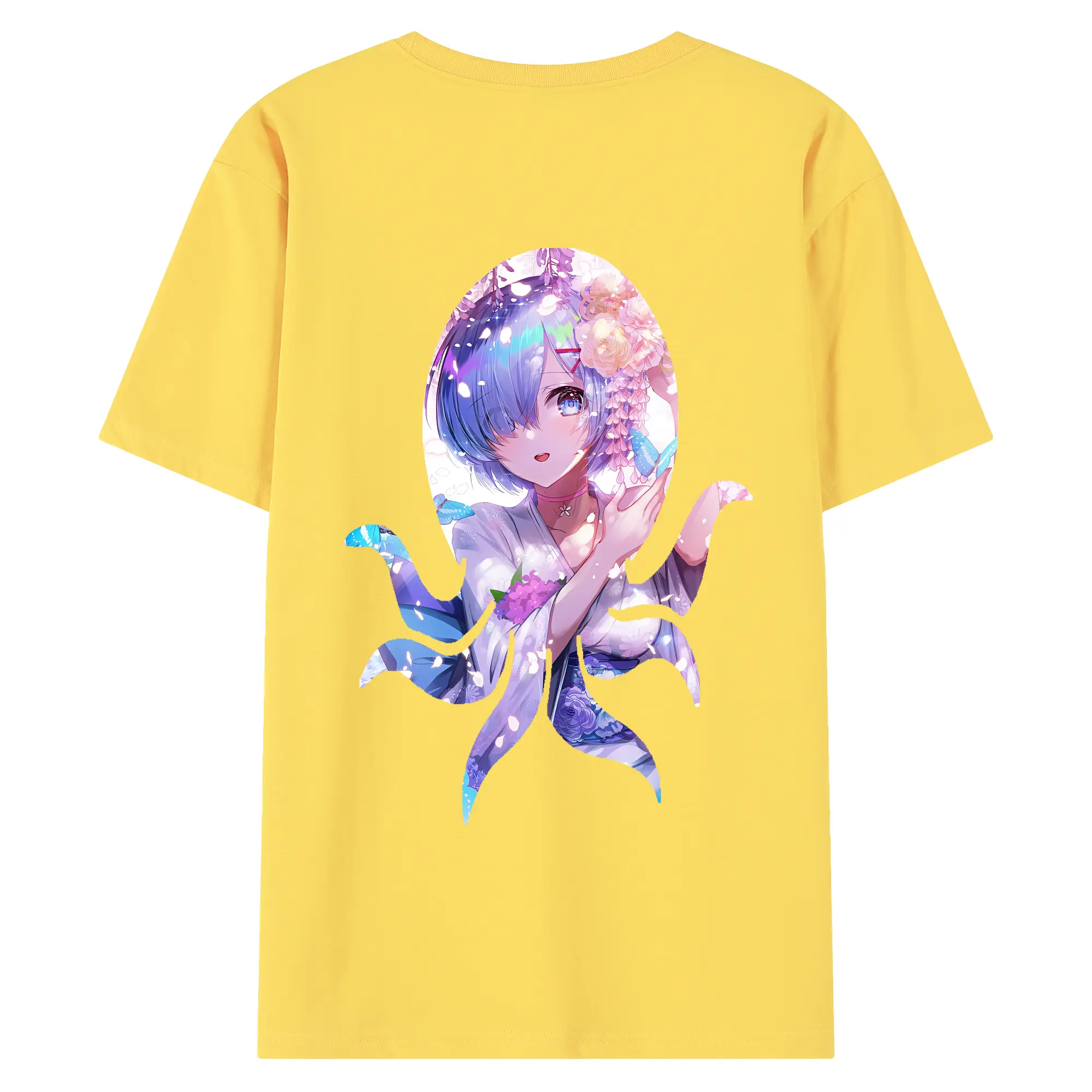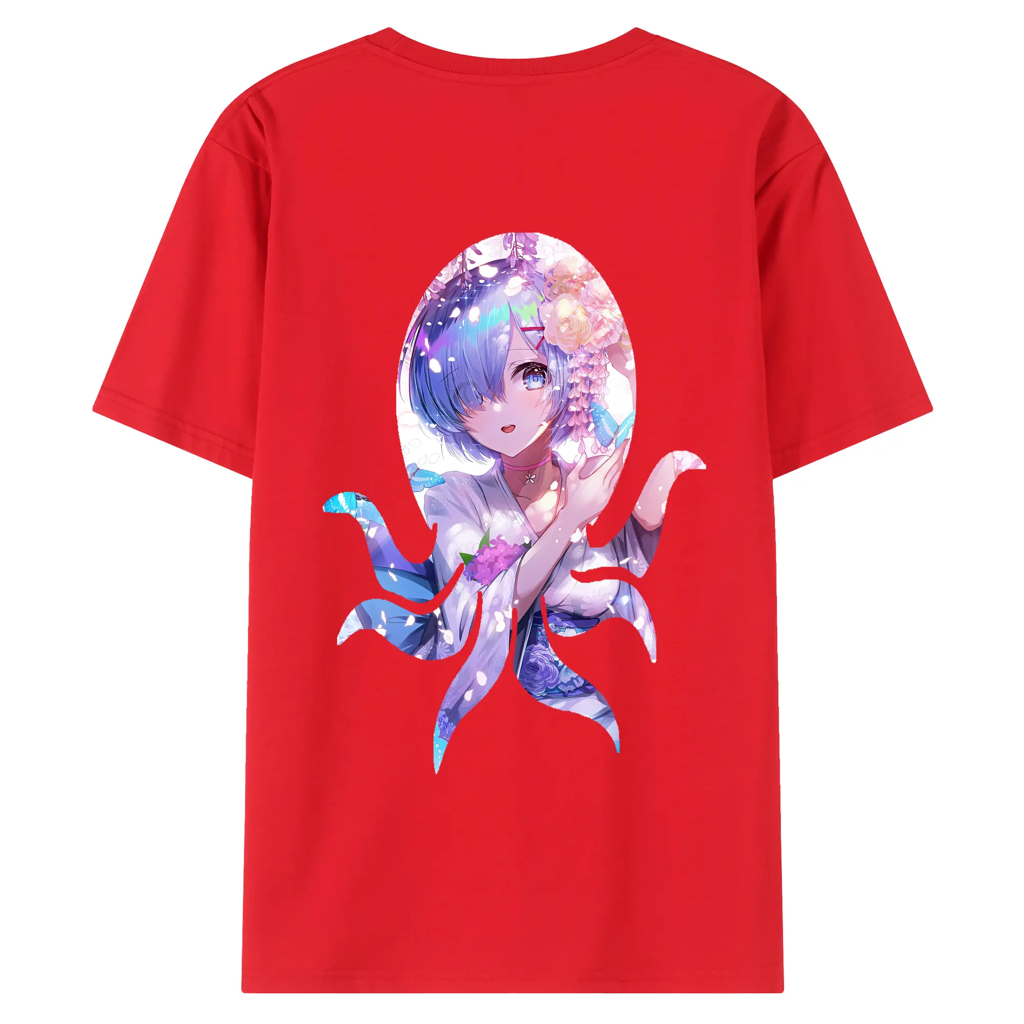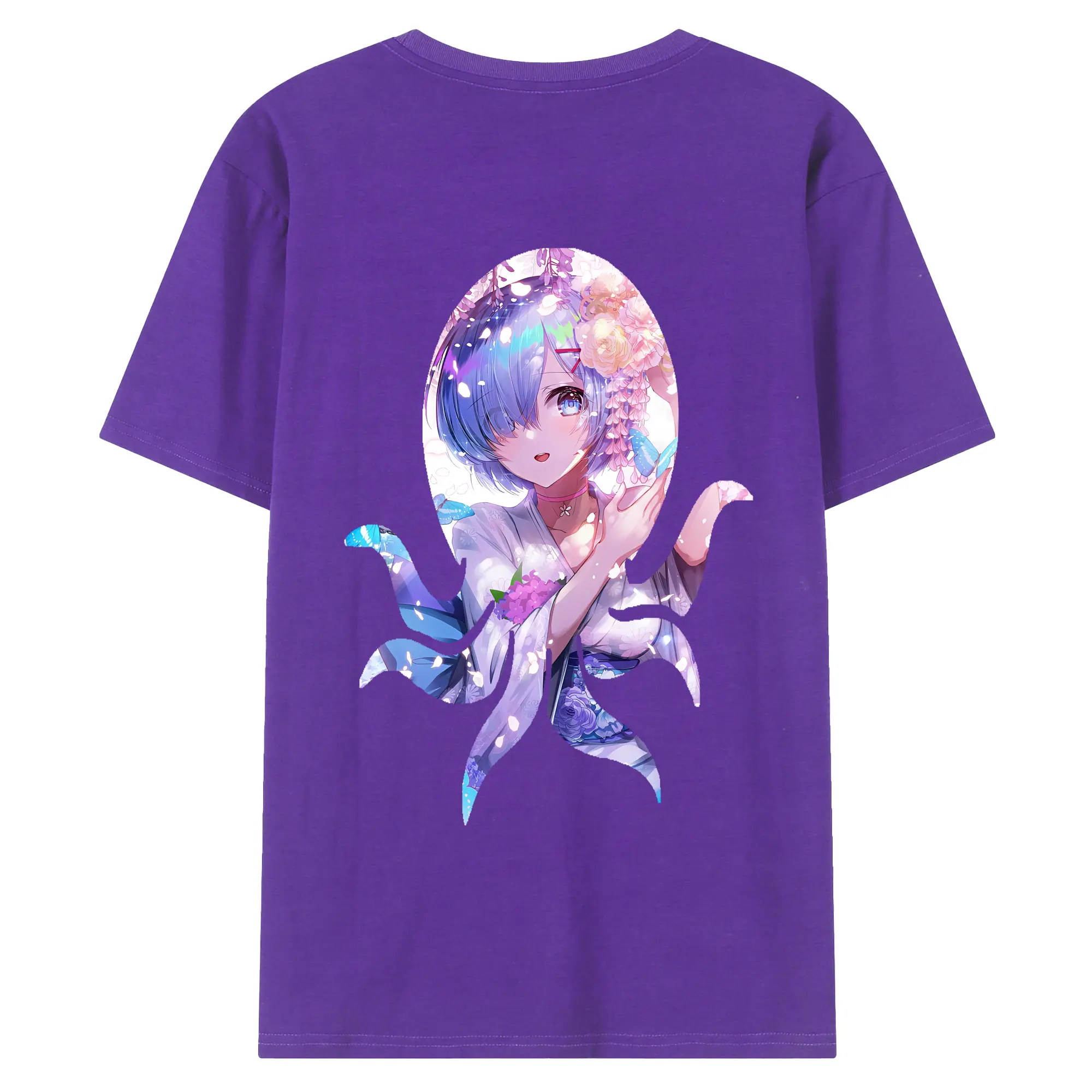 リゼロ グッズ レム - 綿100% 半袖Tシャツ ・ フロントプリント ・ 快適 通気性 ・ 日常使い 散歩 スポーツ用