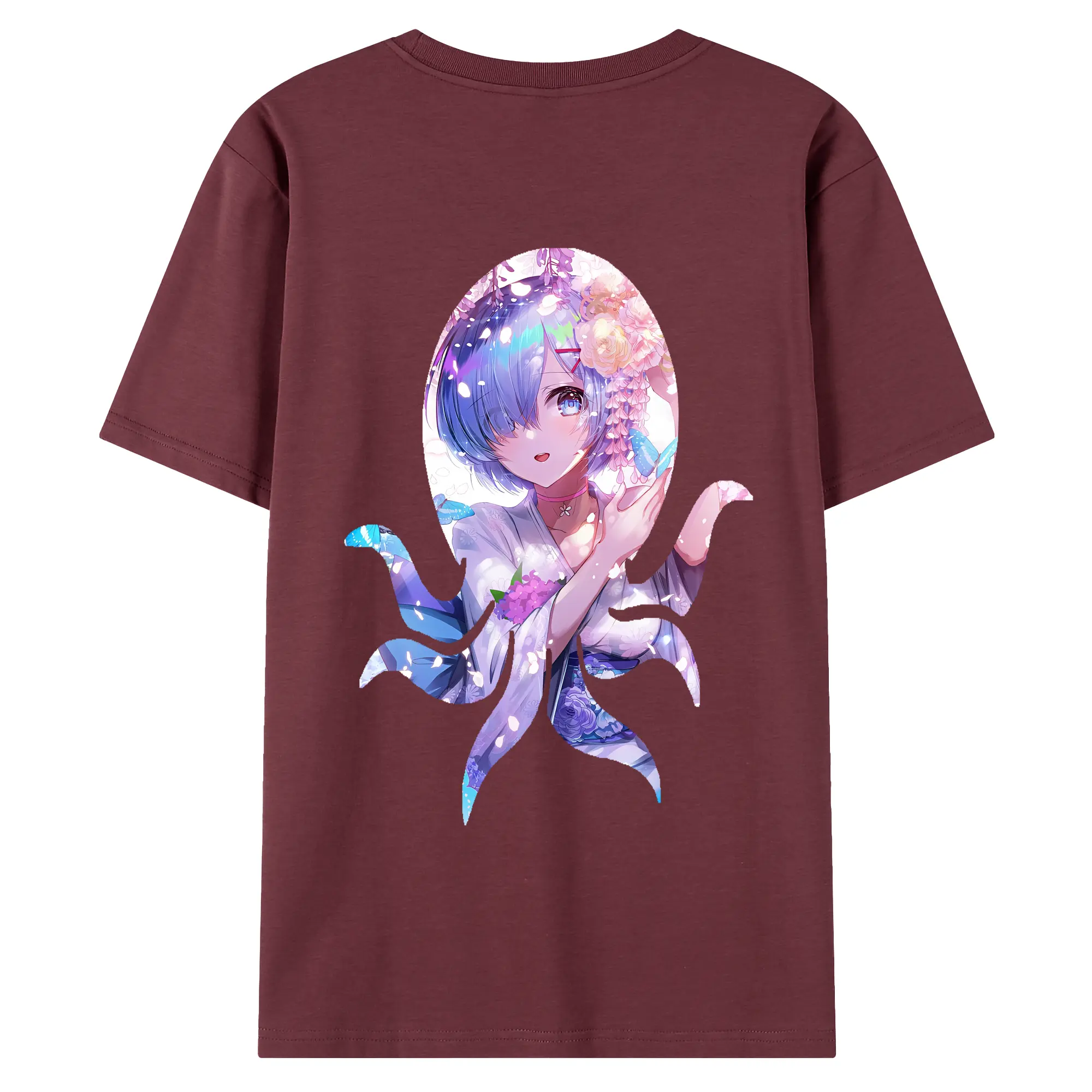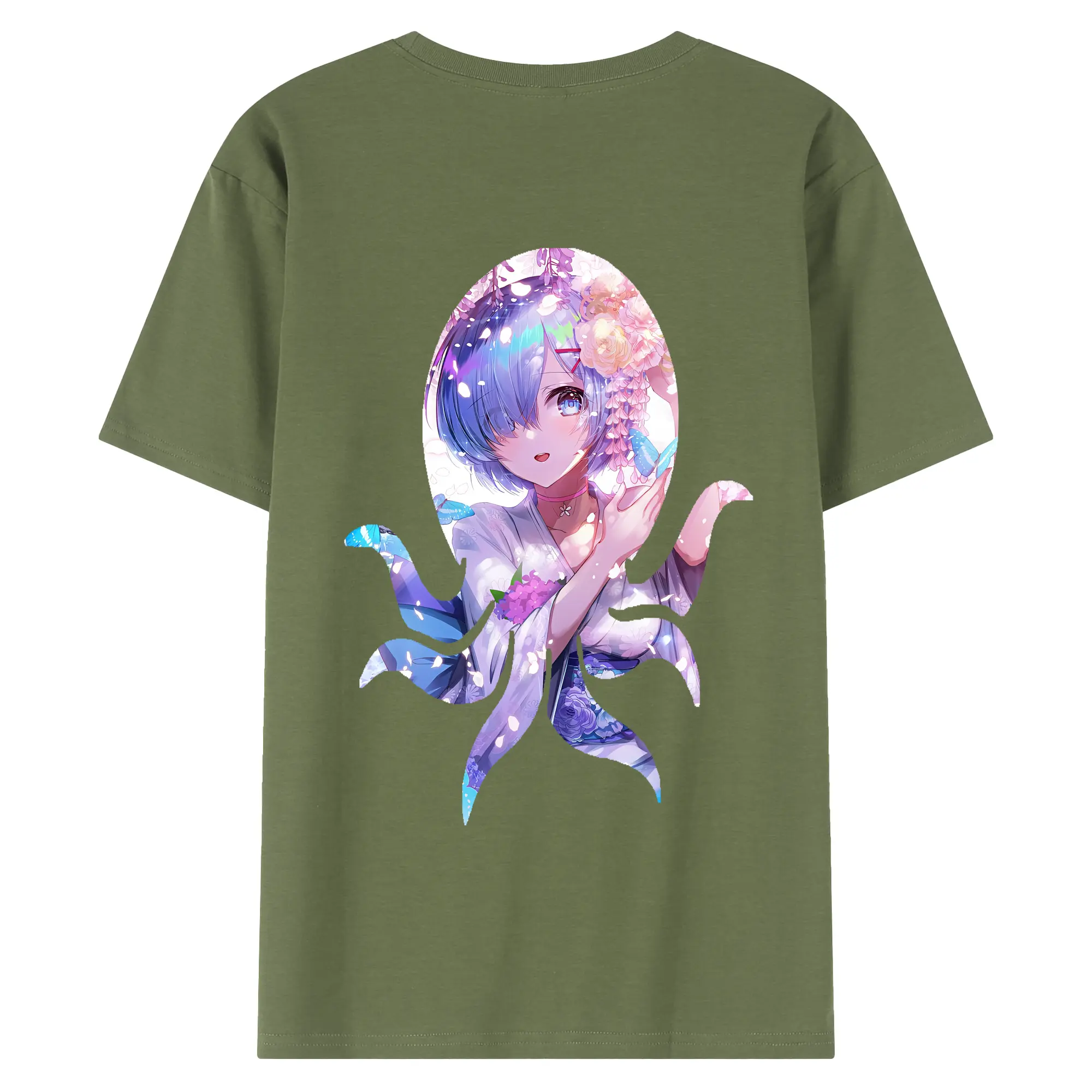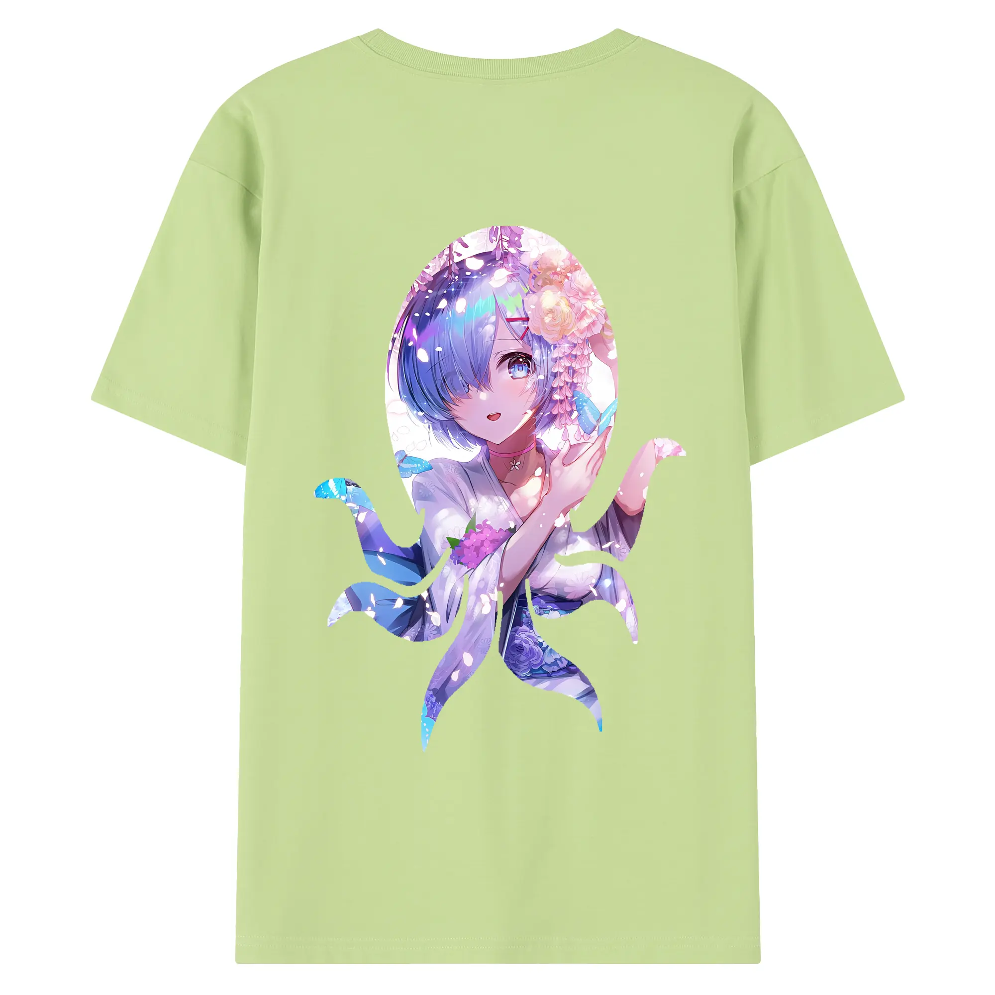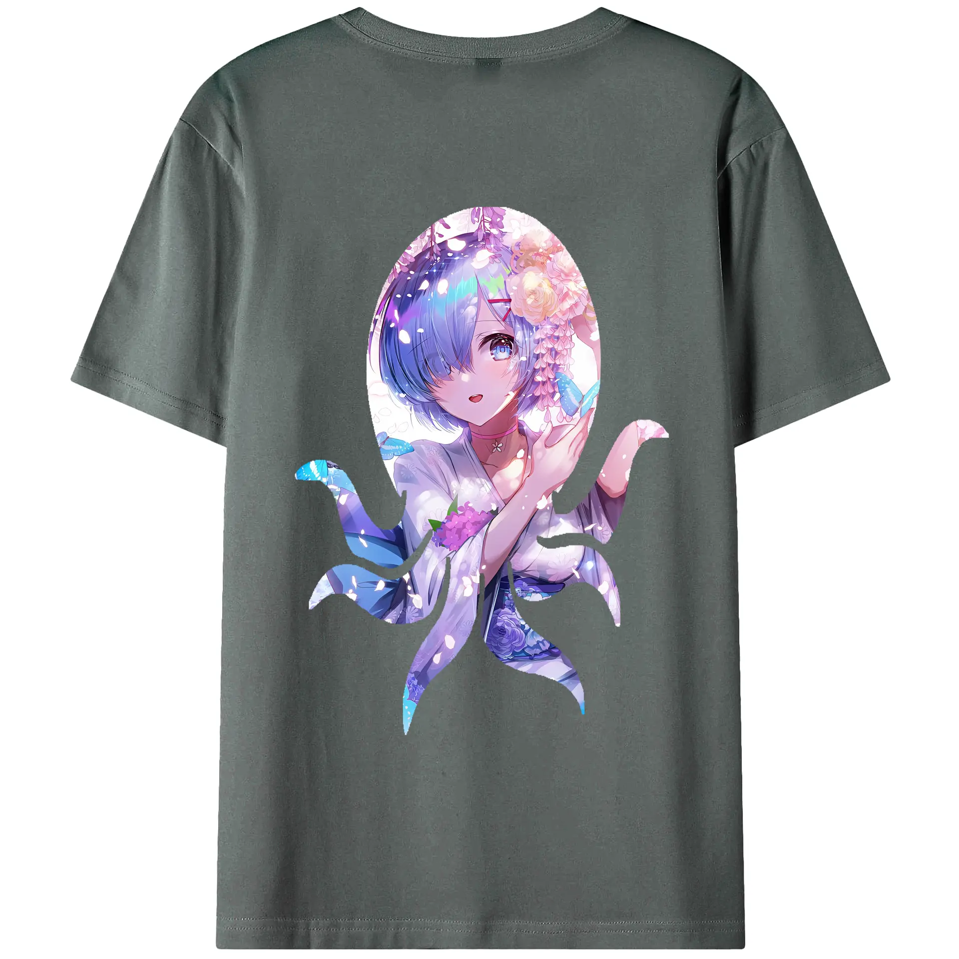 リゼロ グッズ レム - 綿100% 半袖Tシャツ ・ フロントプリント ・ 快適 通気性 ・ 日常使い 散歩 スポーツ用