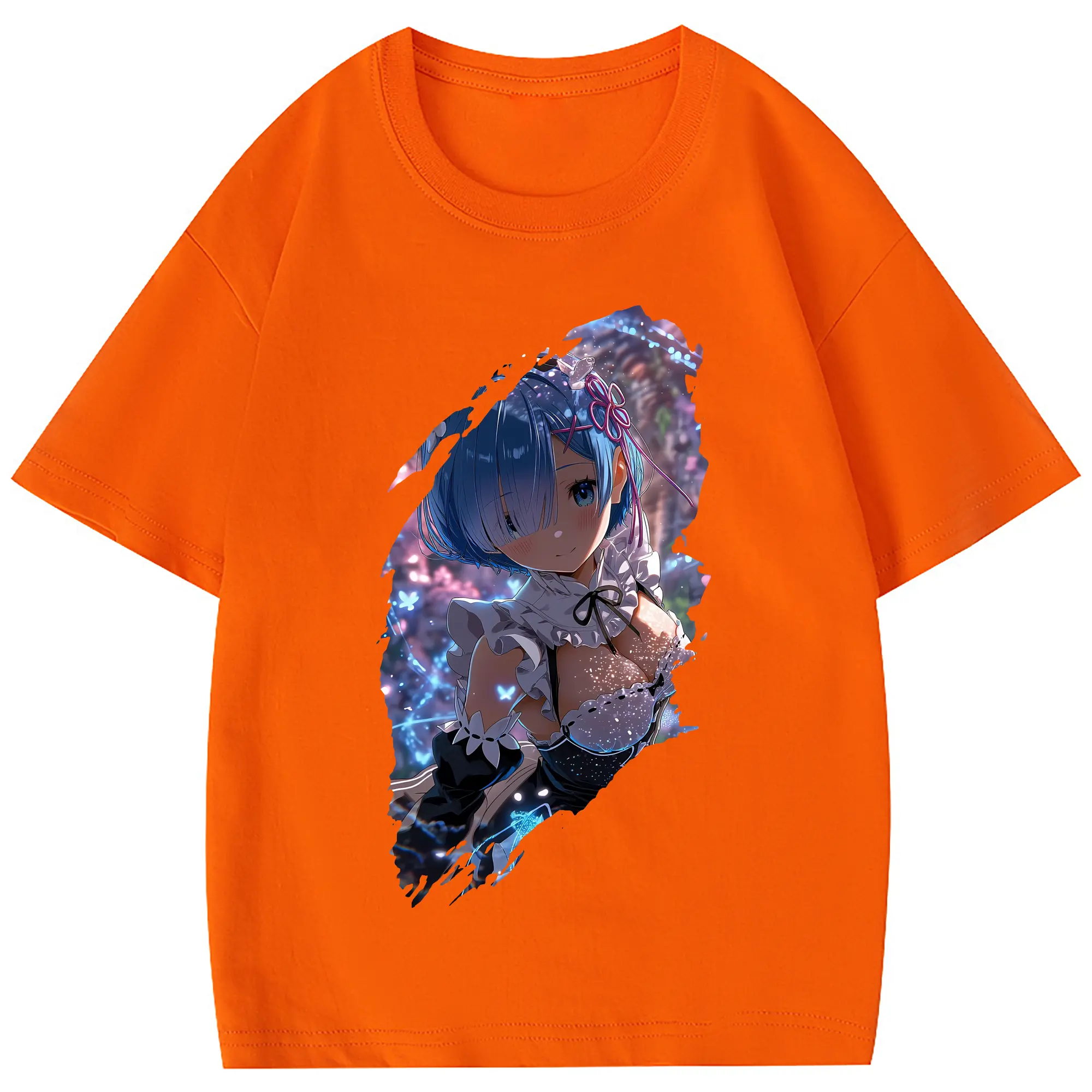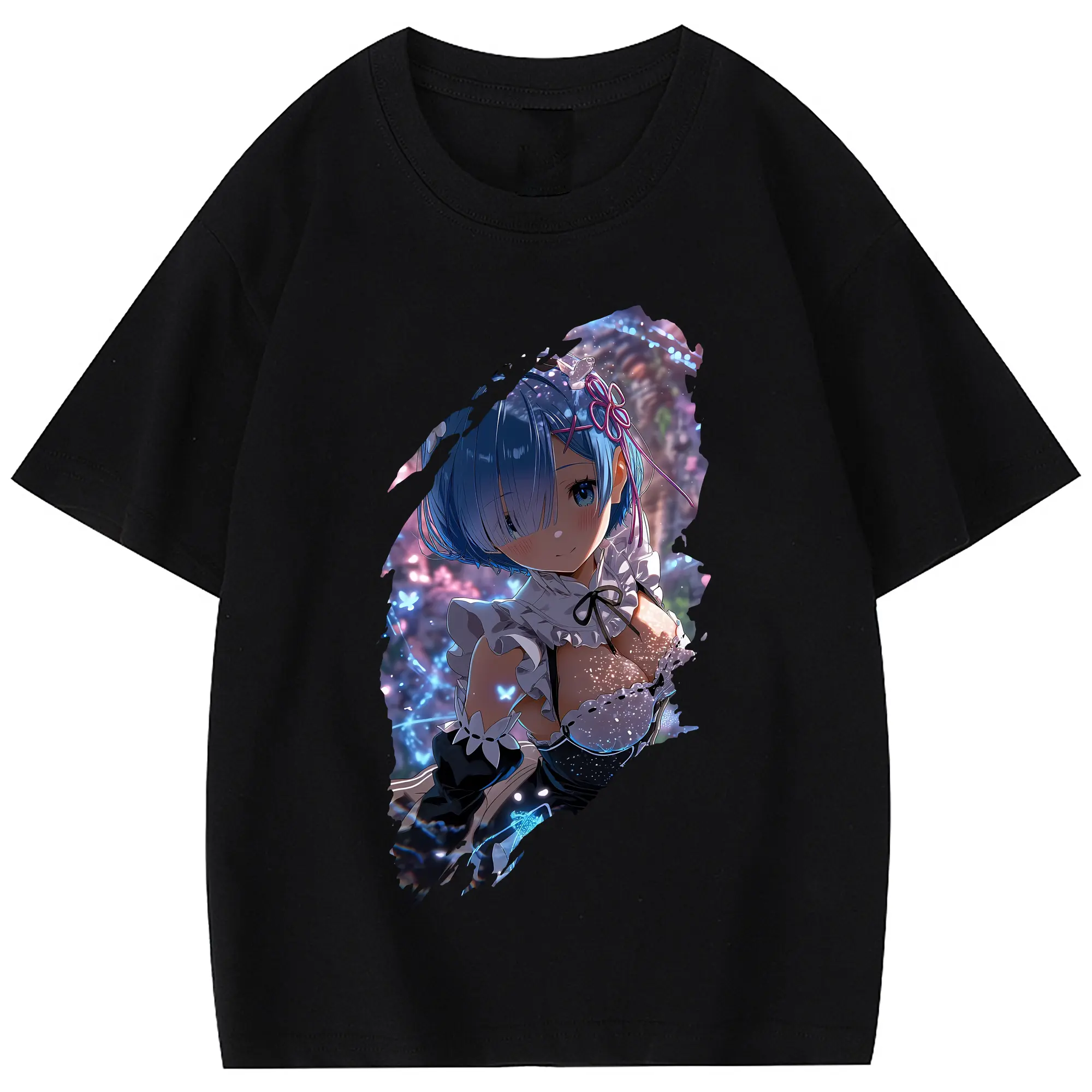 リゼロ グッズ レム - 綿100% 半袖Tシャツ ・ バックプリント ・ 快適 通気性 ・ 日常使い 散歩 スポーツ用