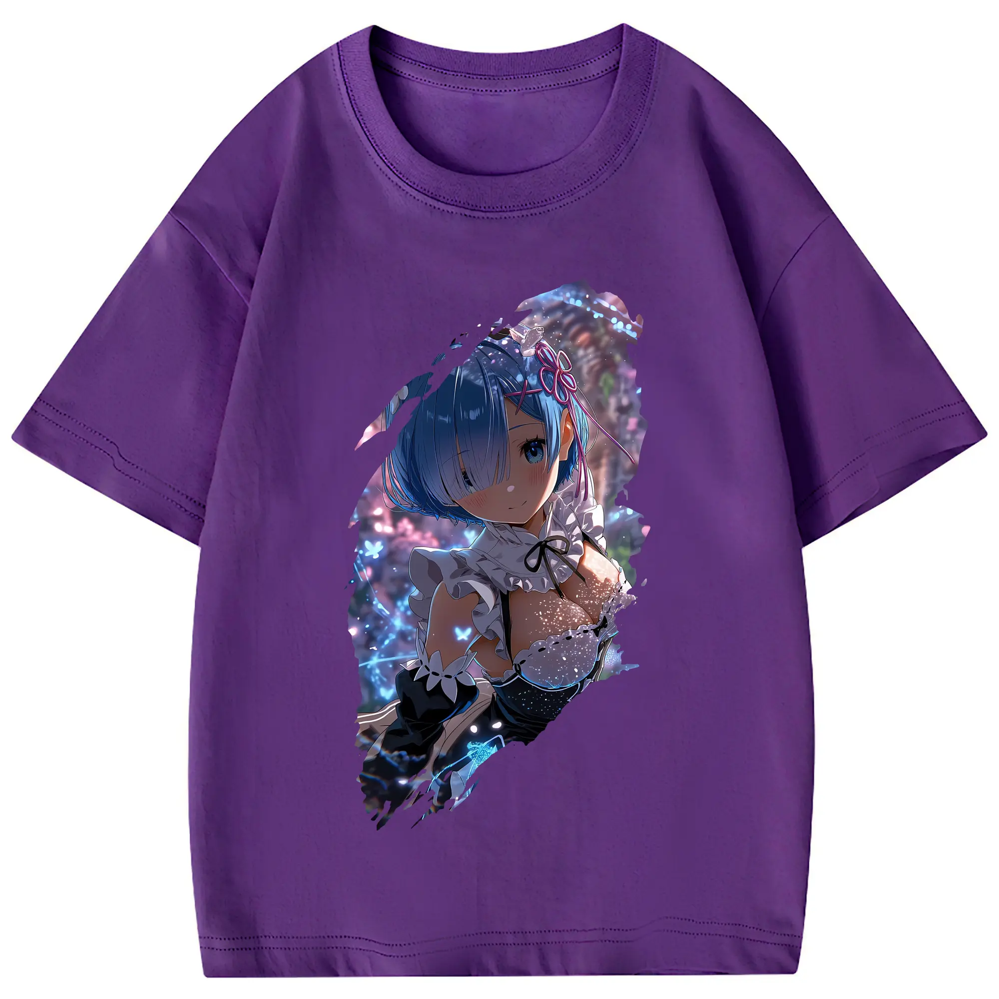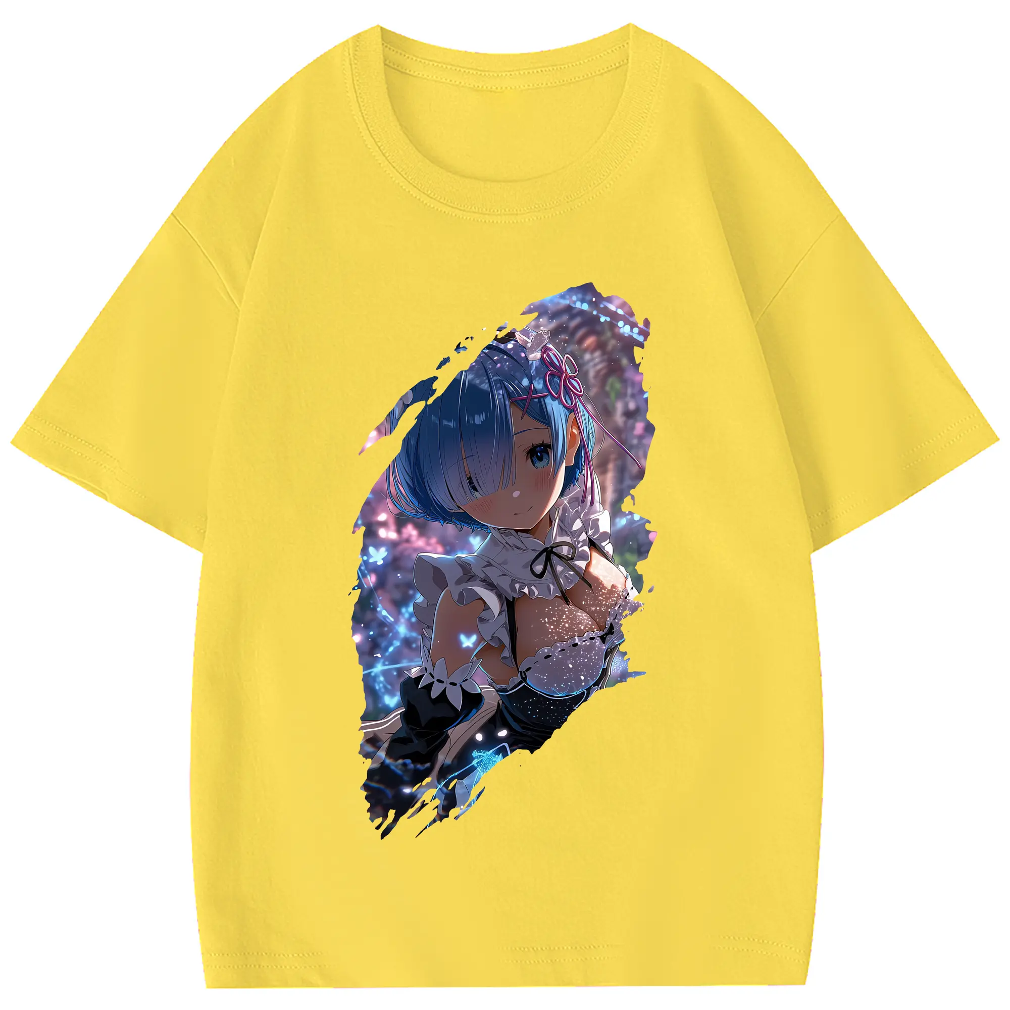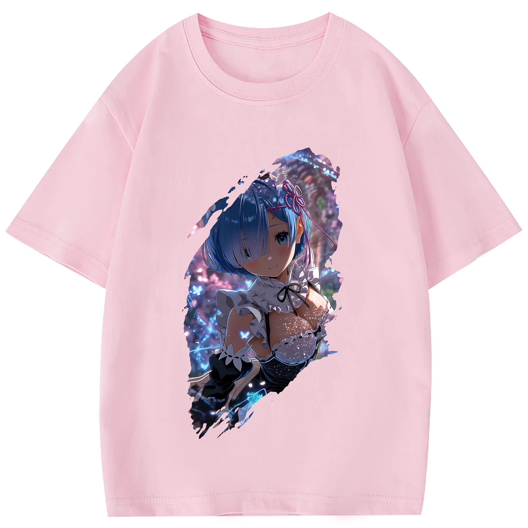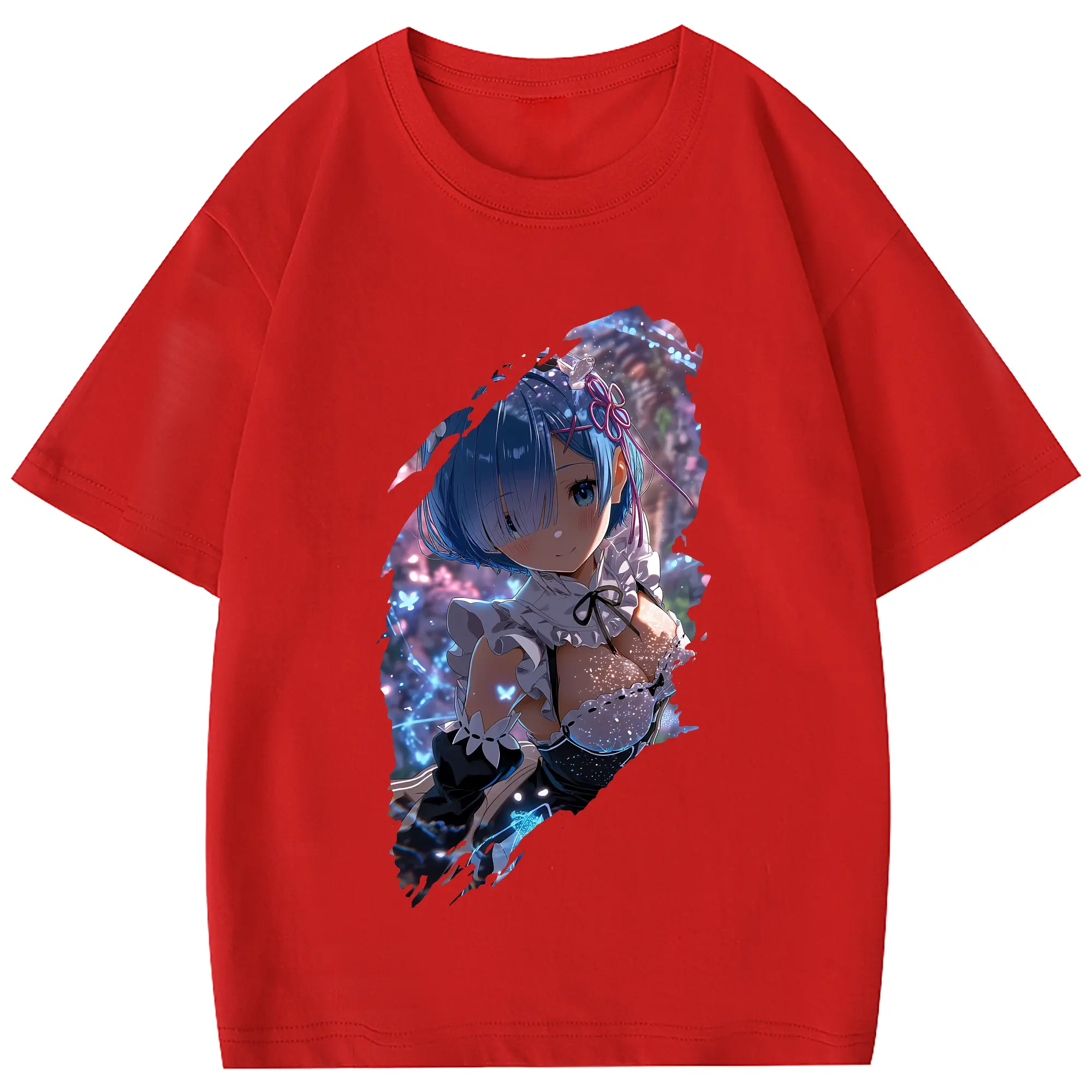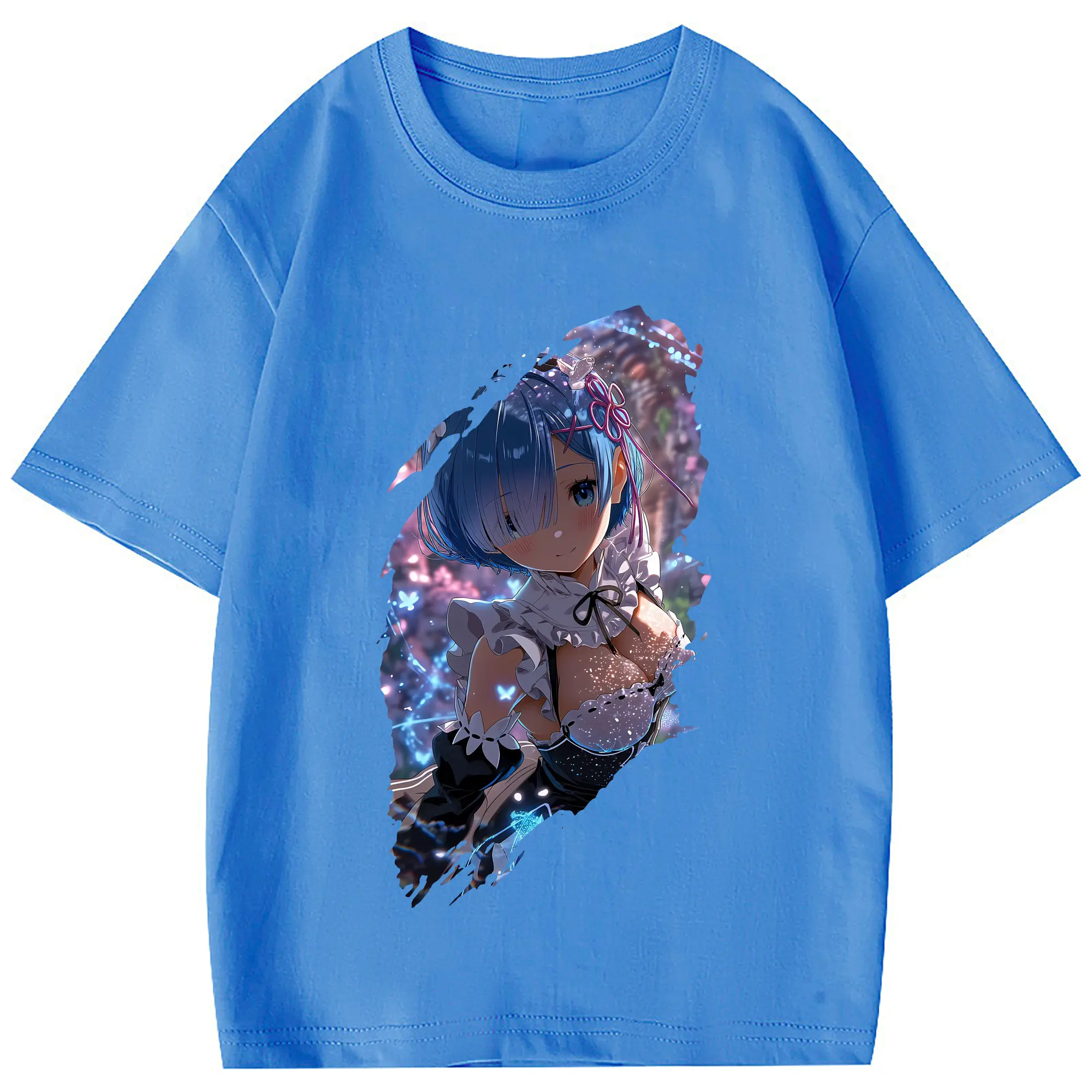 リゼロ グッズ レム - 綿100% 半袖Tシャツ ・ フロントプリント ・ 快適 通気性 ・ 日常使い 散歩 スポーツ用