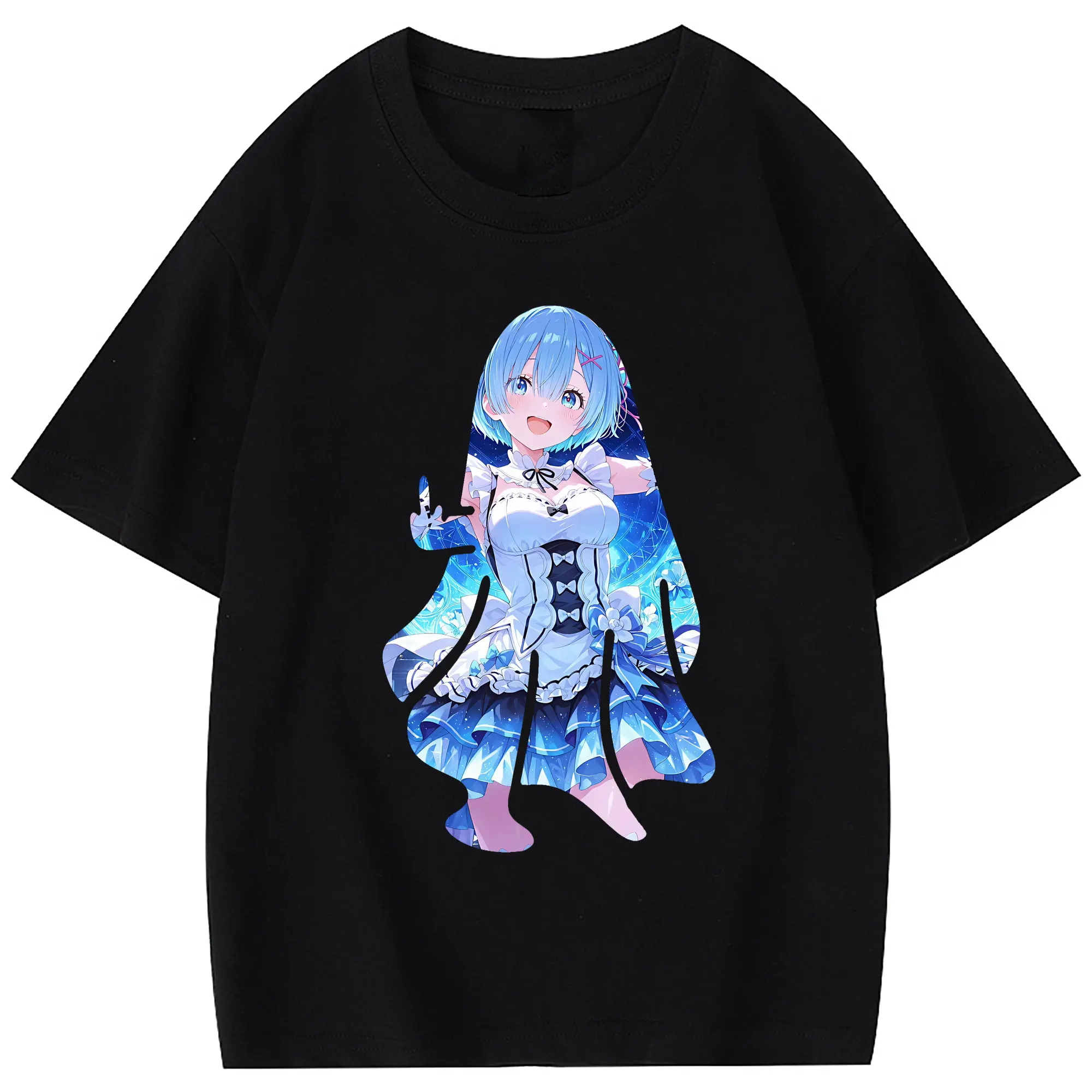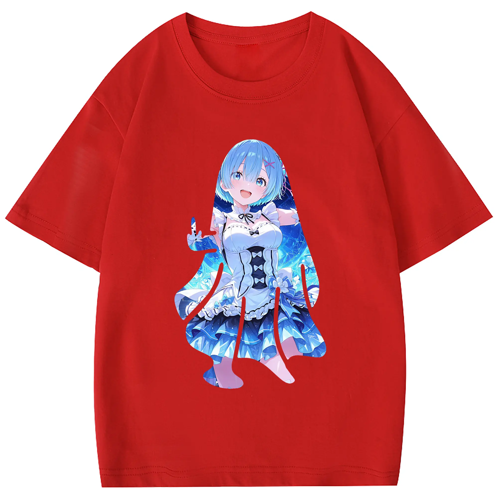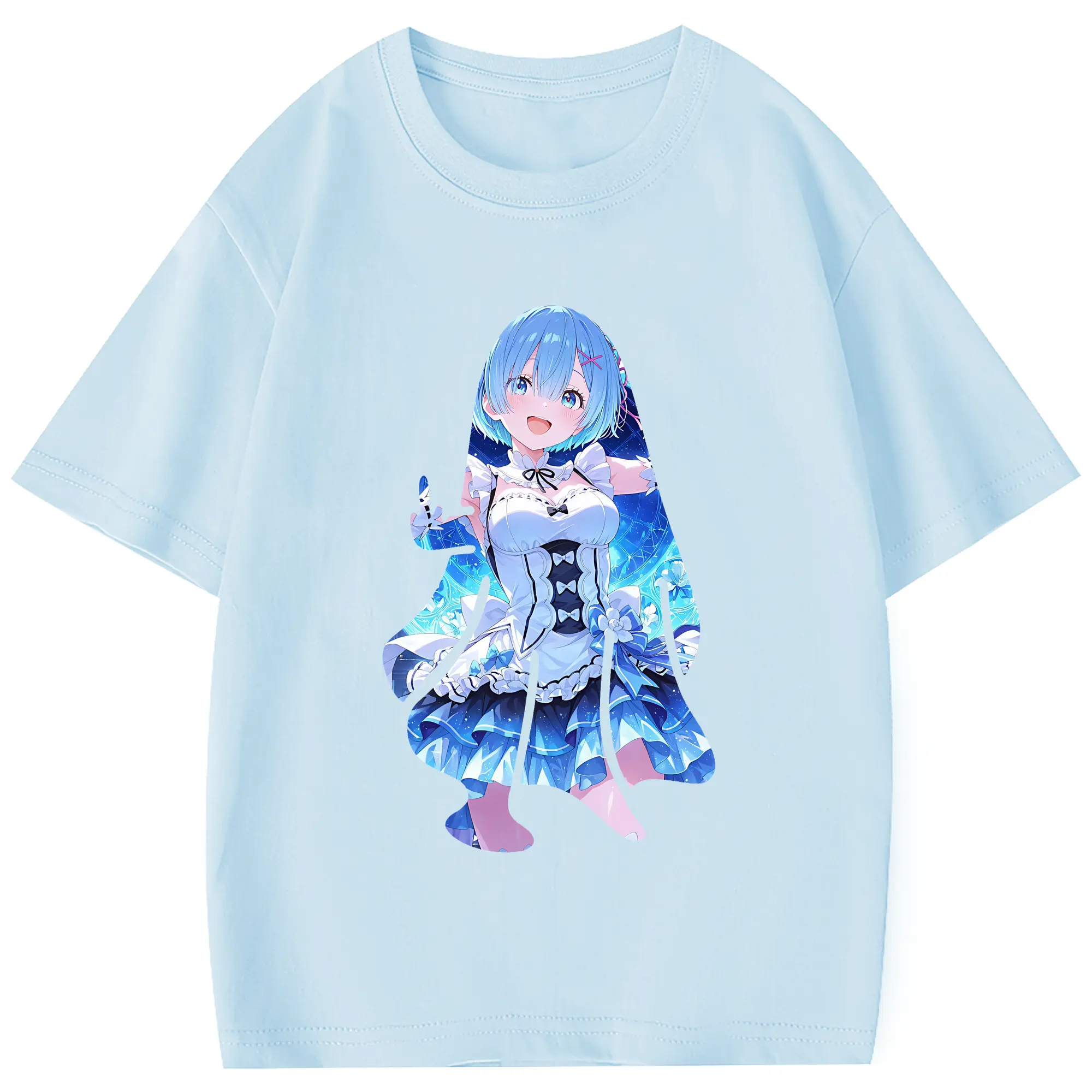 リゼロ グッズ レム - 綿100% 半袖Tシャツ ・ フロントプリント ・ 快適 通気性 ・ 日常使い 散歩 スポーツ用