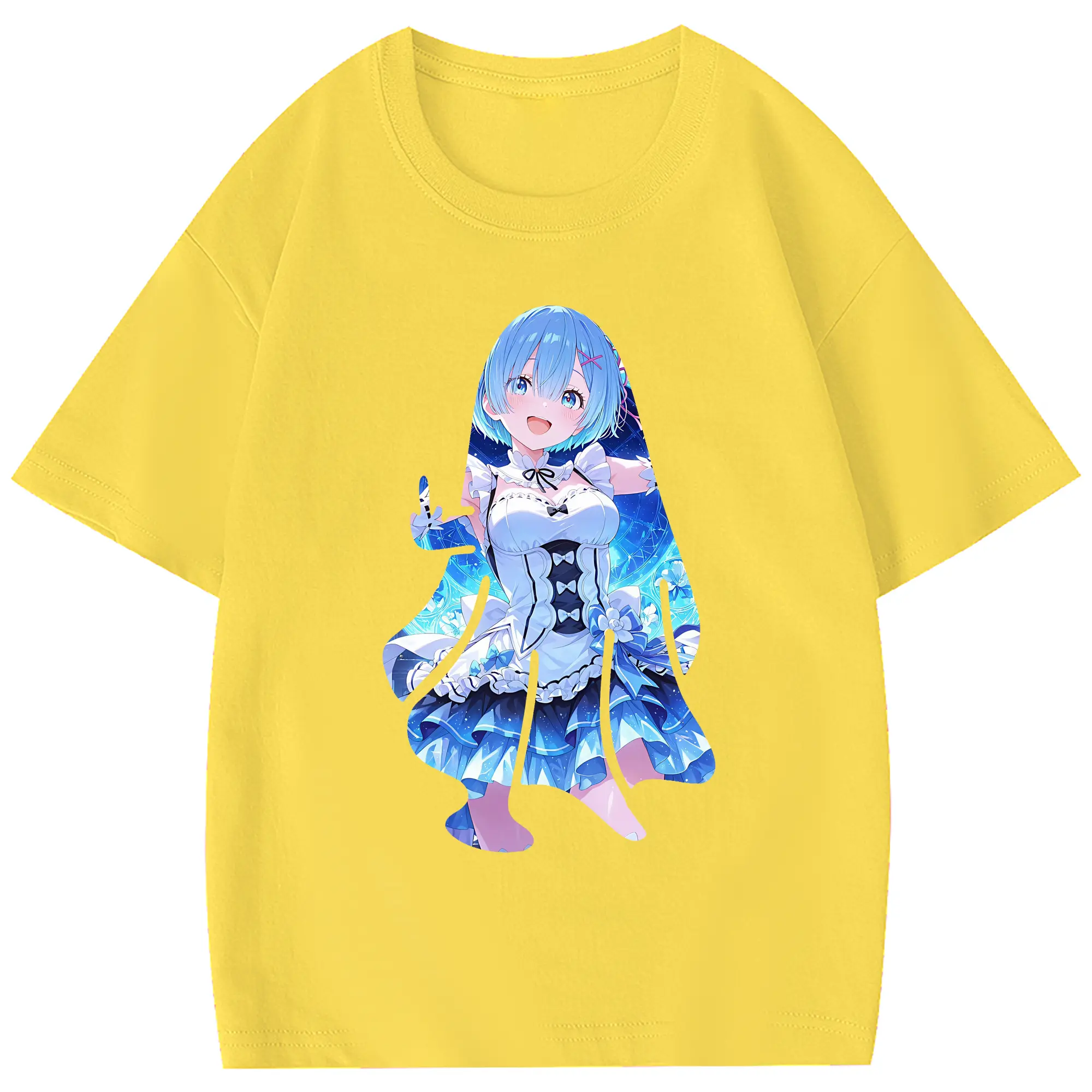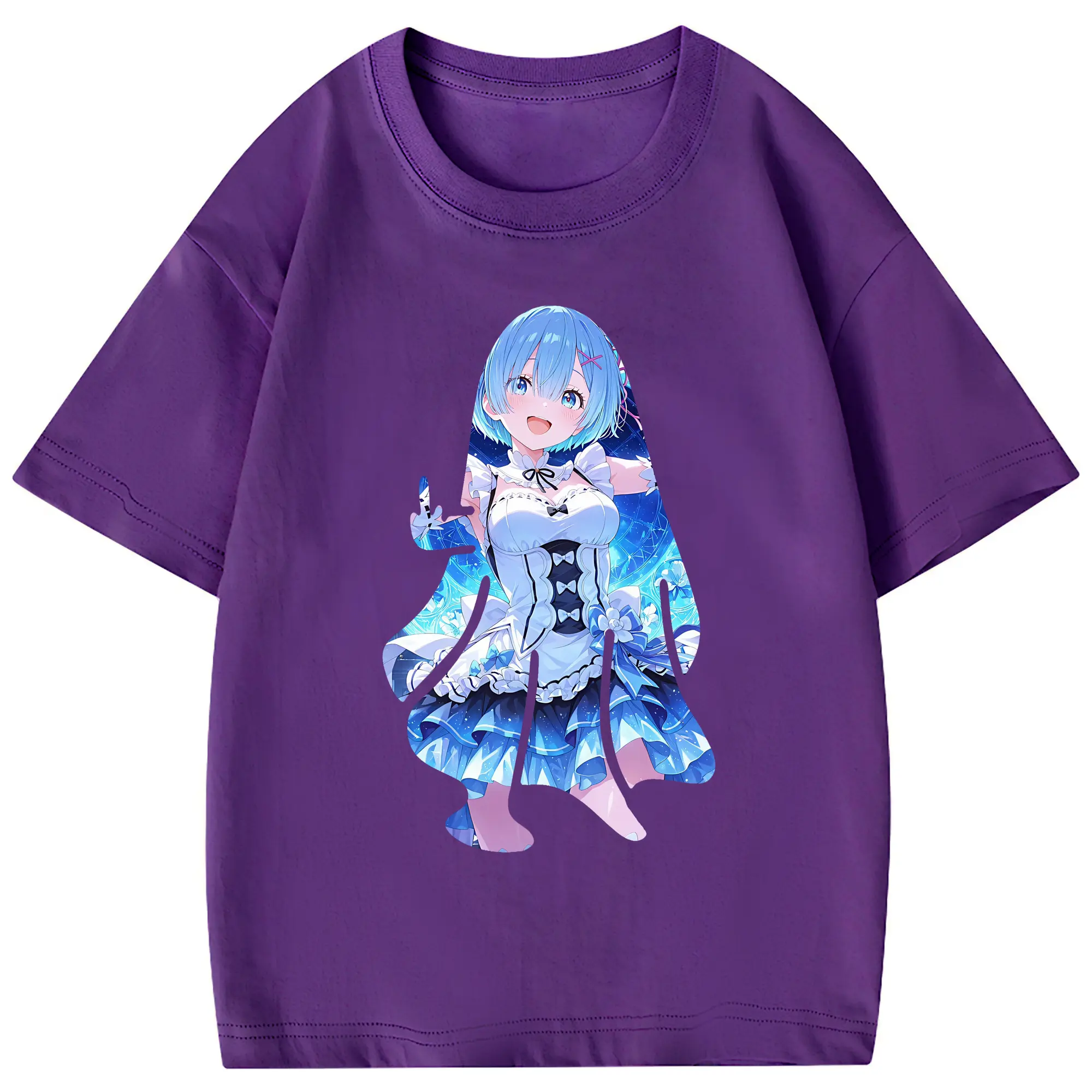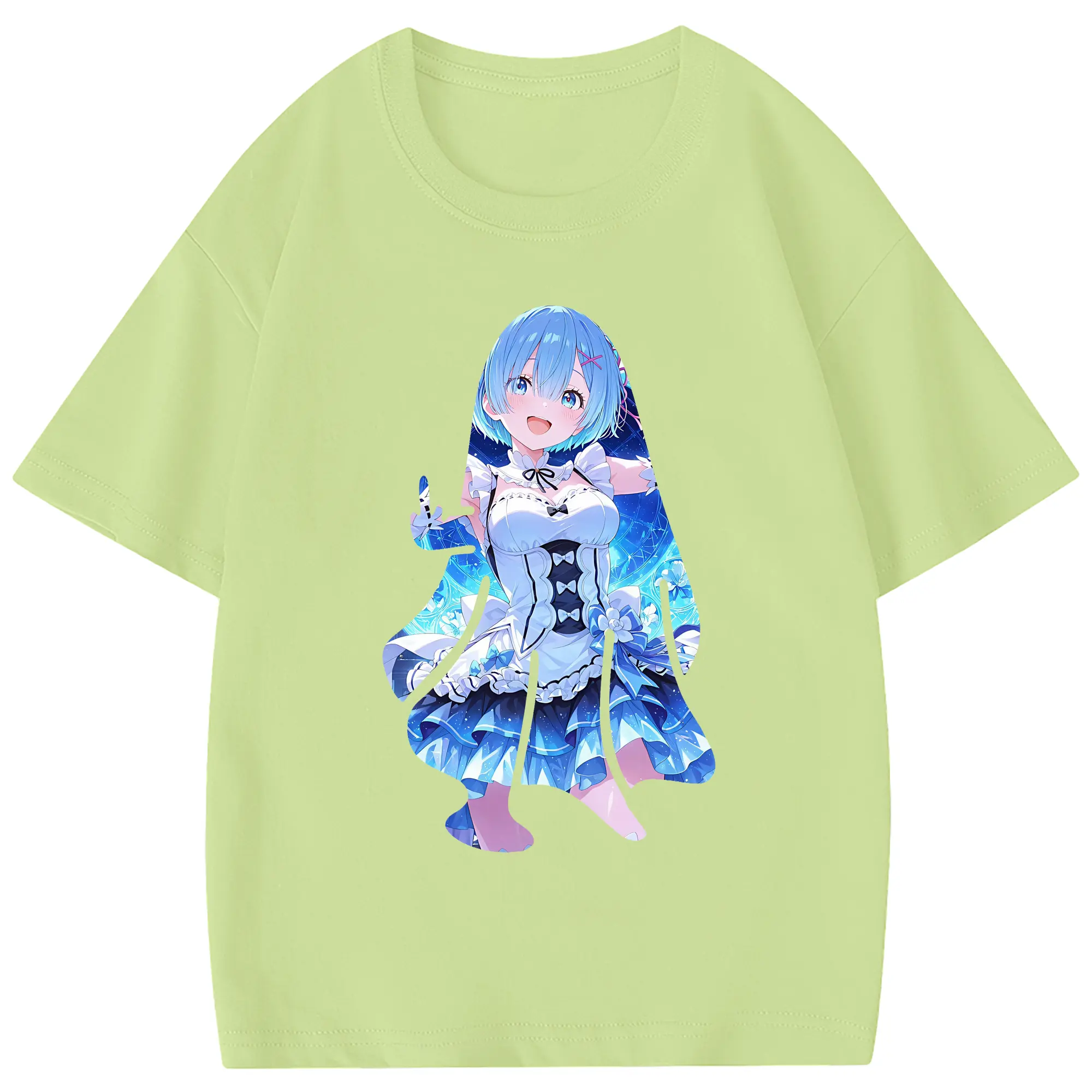 リゼロ グッズ レム - 綿100% キッズTシャツ ・ フロントプリント ・ 快適 通気性 ・ スポーツ カジュアル 散歩用