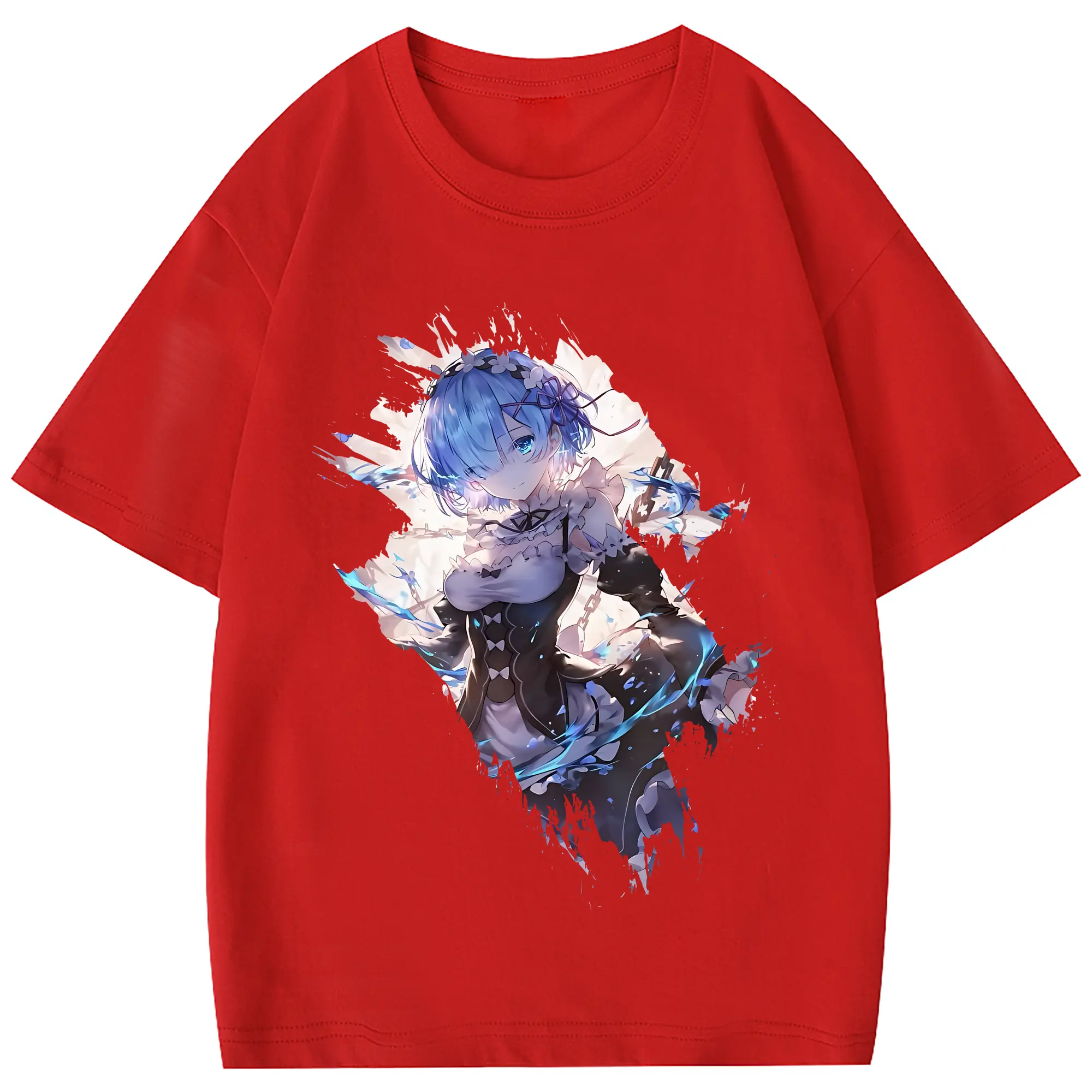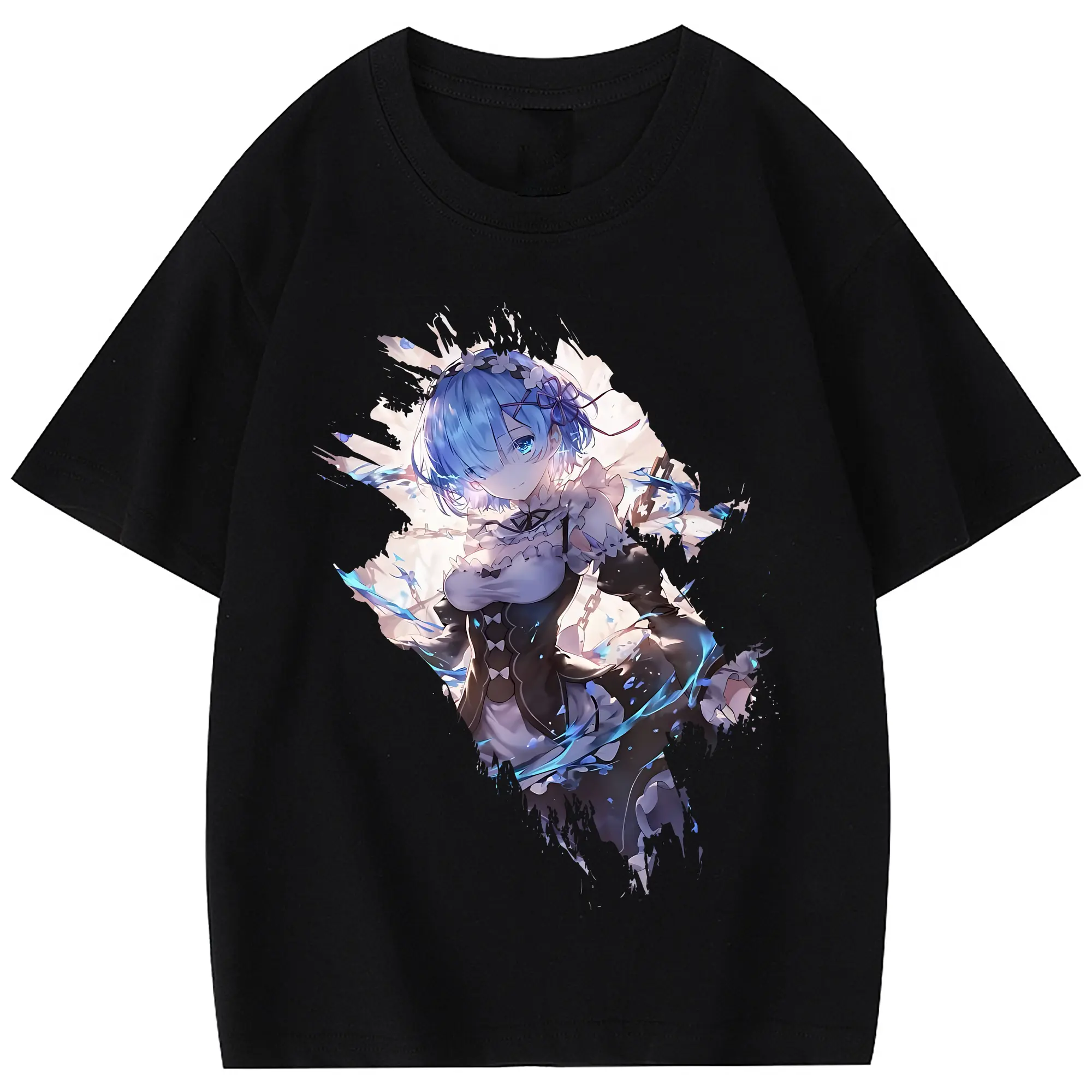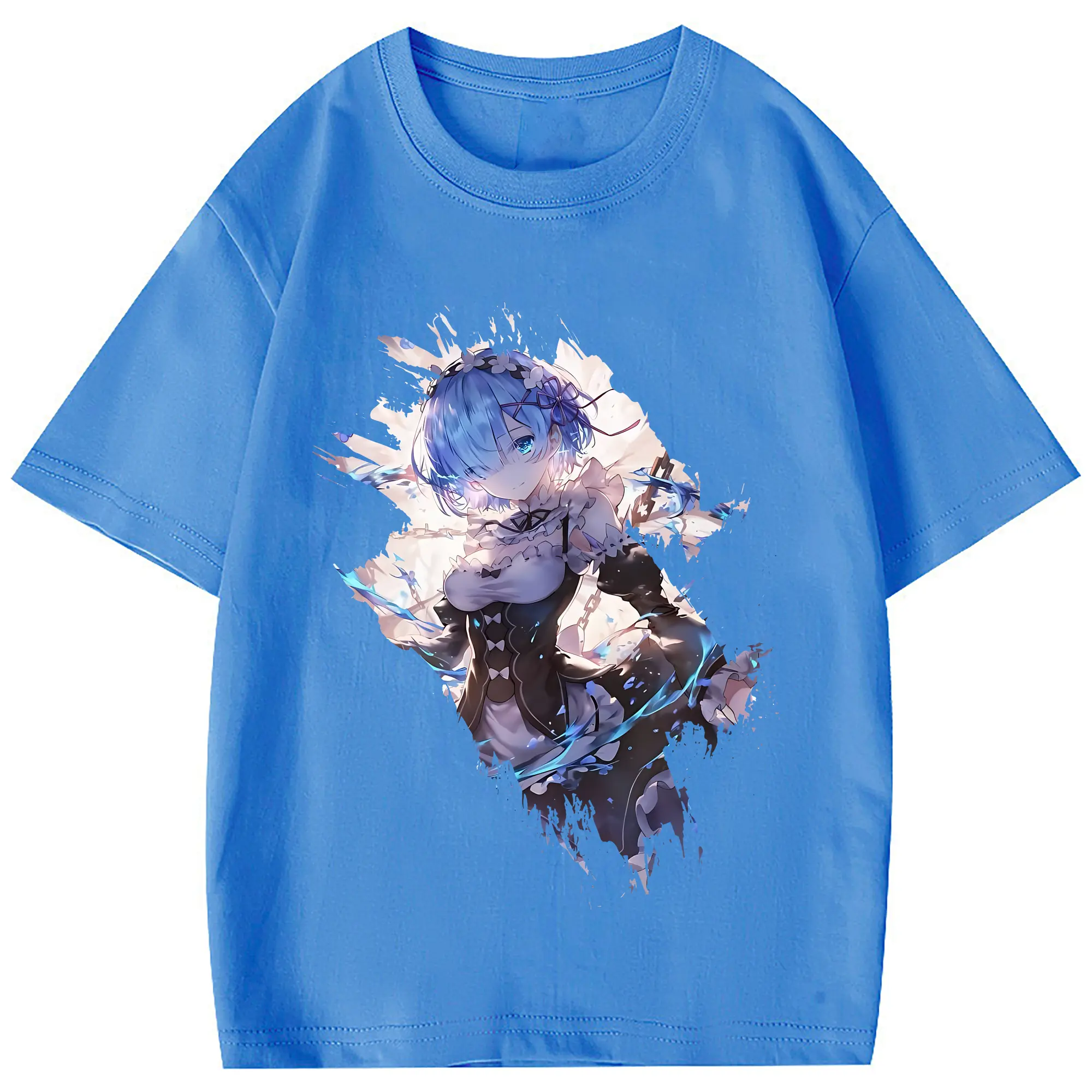 リゼロ グッズ レム - 綿100% 半袖Tシャツ ・ フロントプリント ・ 快適 通気性 ・ 日常使い 散歩 スポーツ用