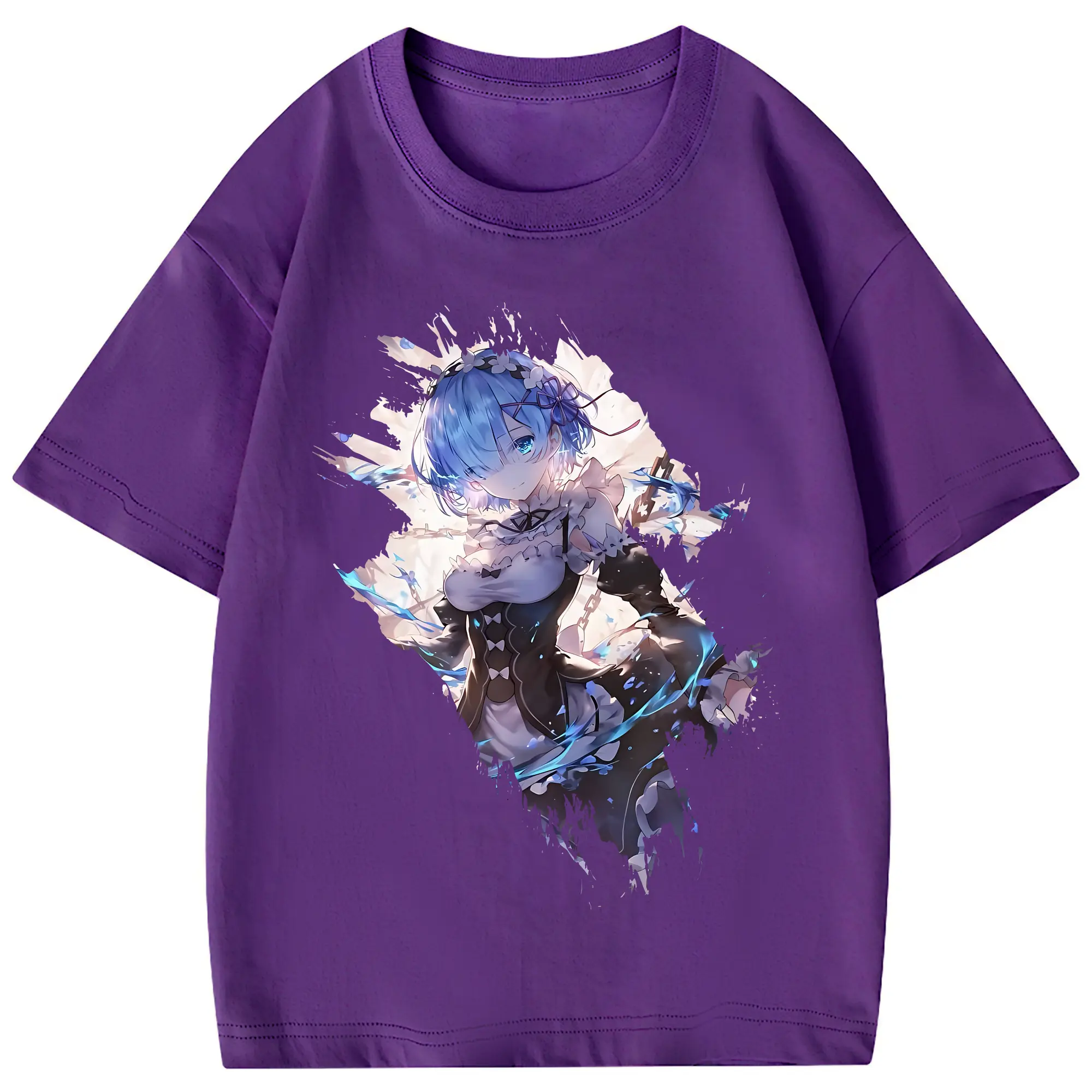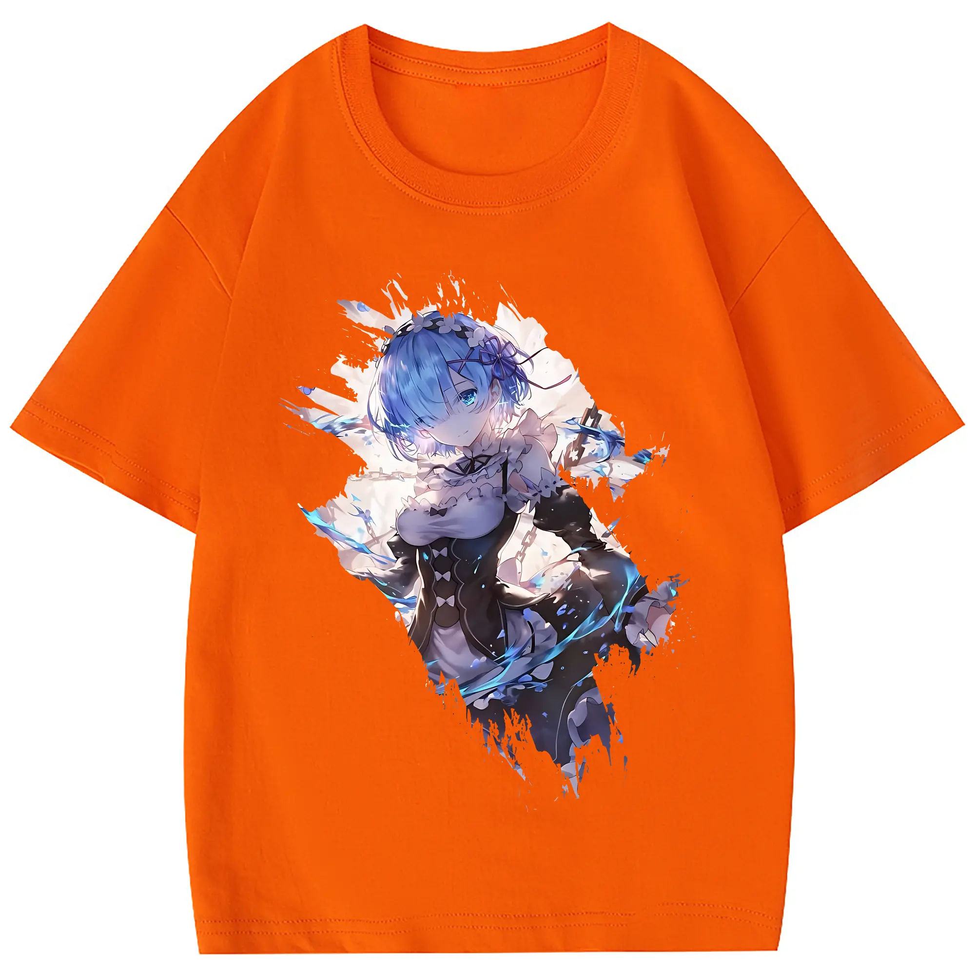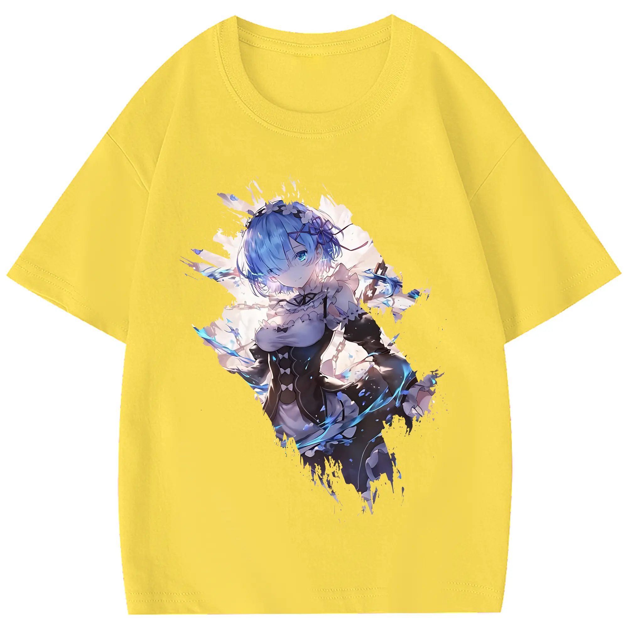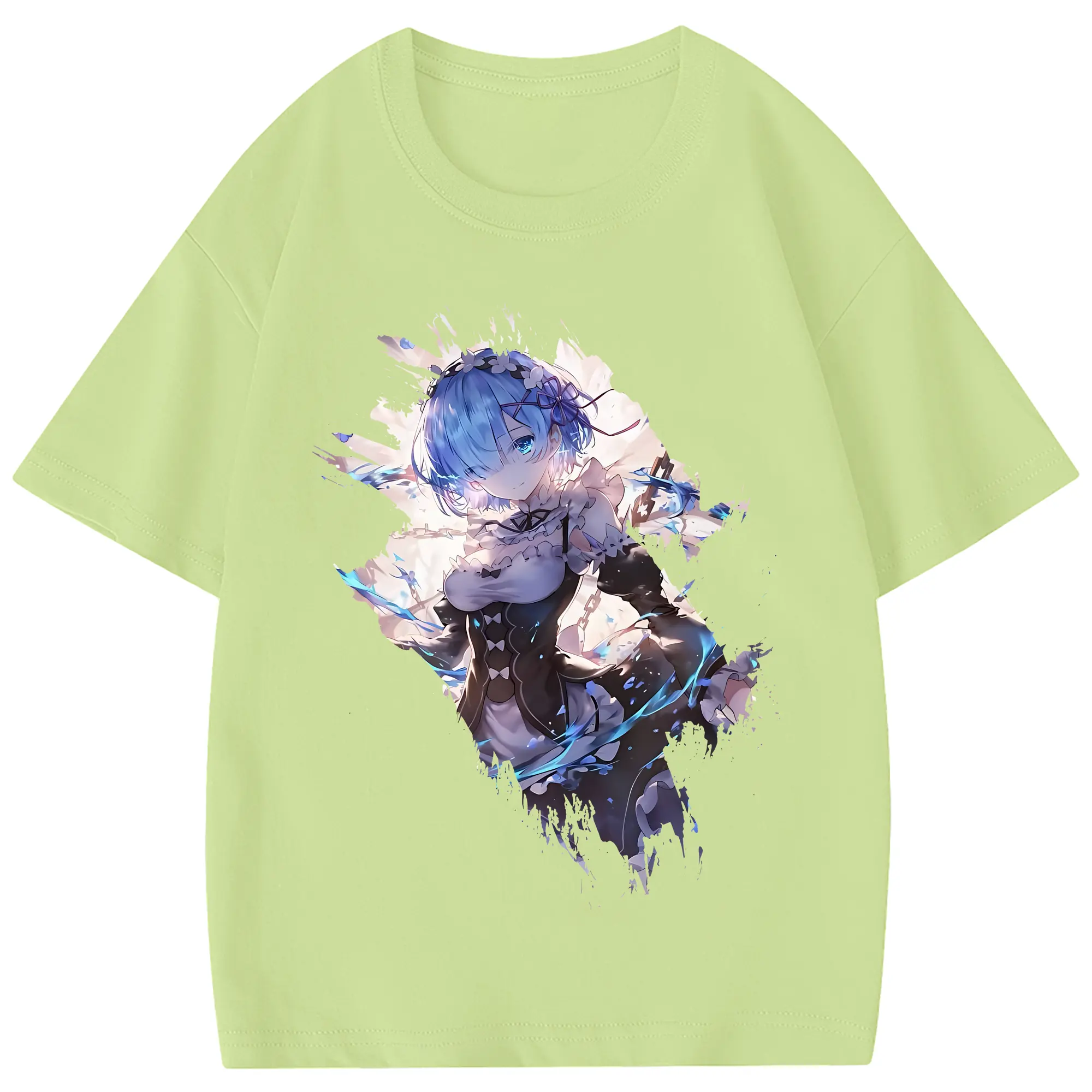 リゼロ グッズ レム - 綿100% 半袖Tシャツ ・ フロントプリント ・ 快適 通気性 ・ 日常使い 散歩 スポーツ用