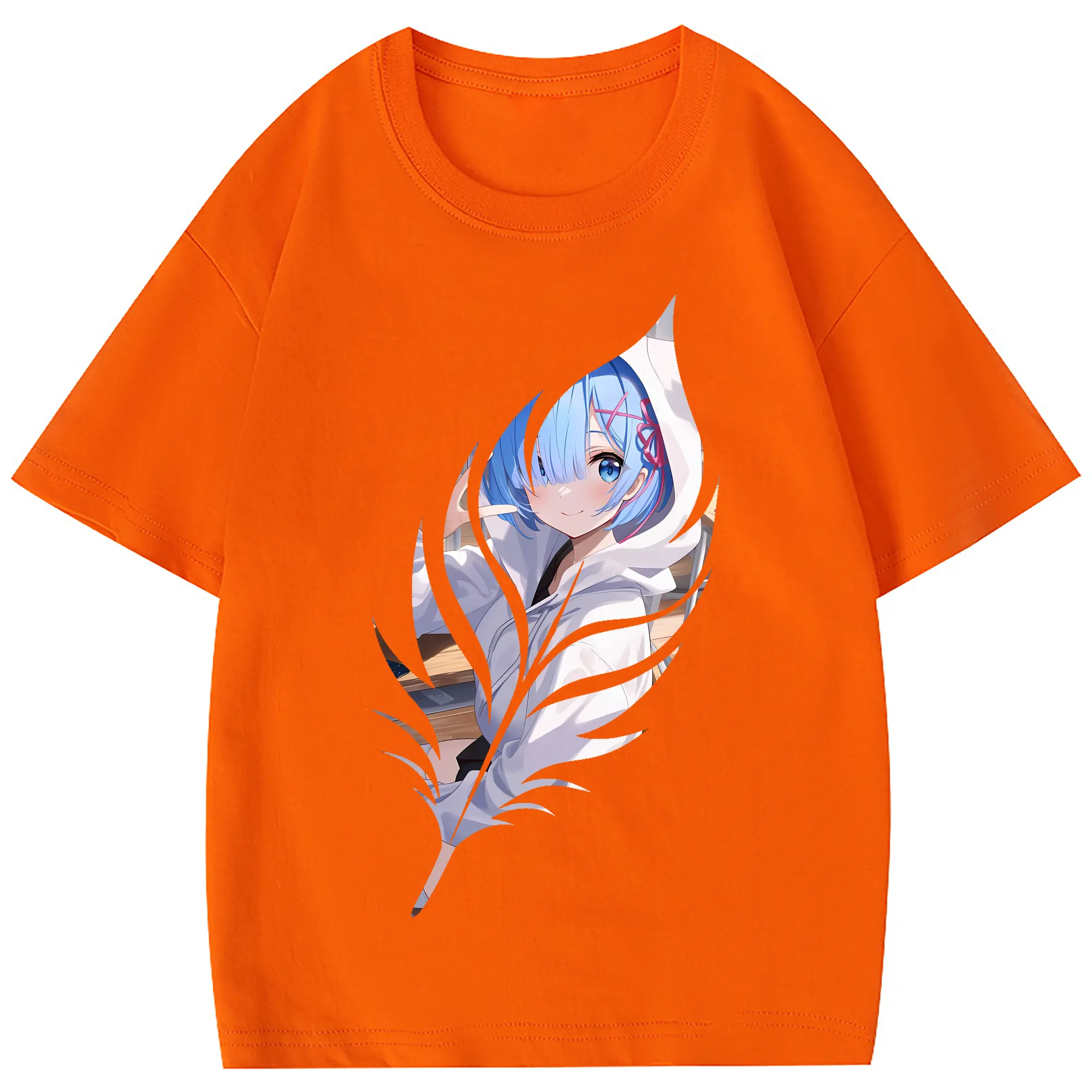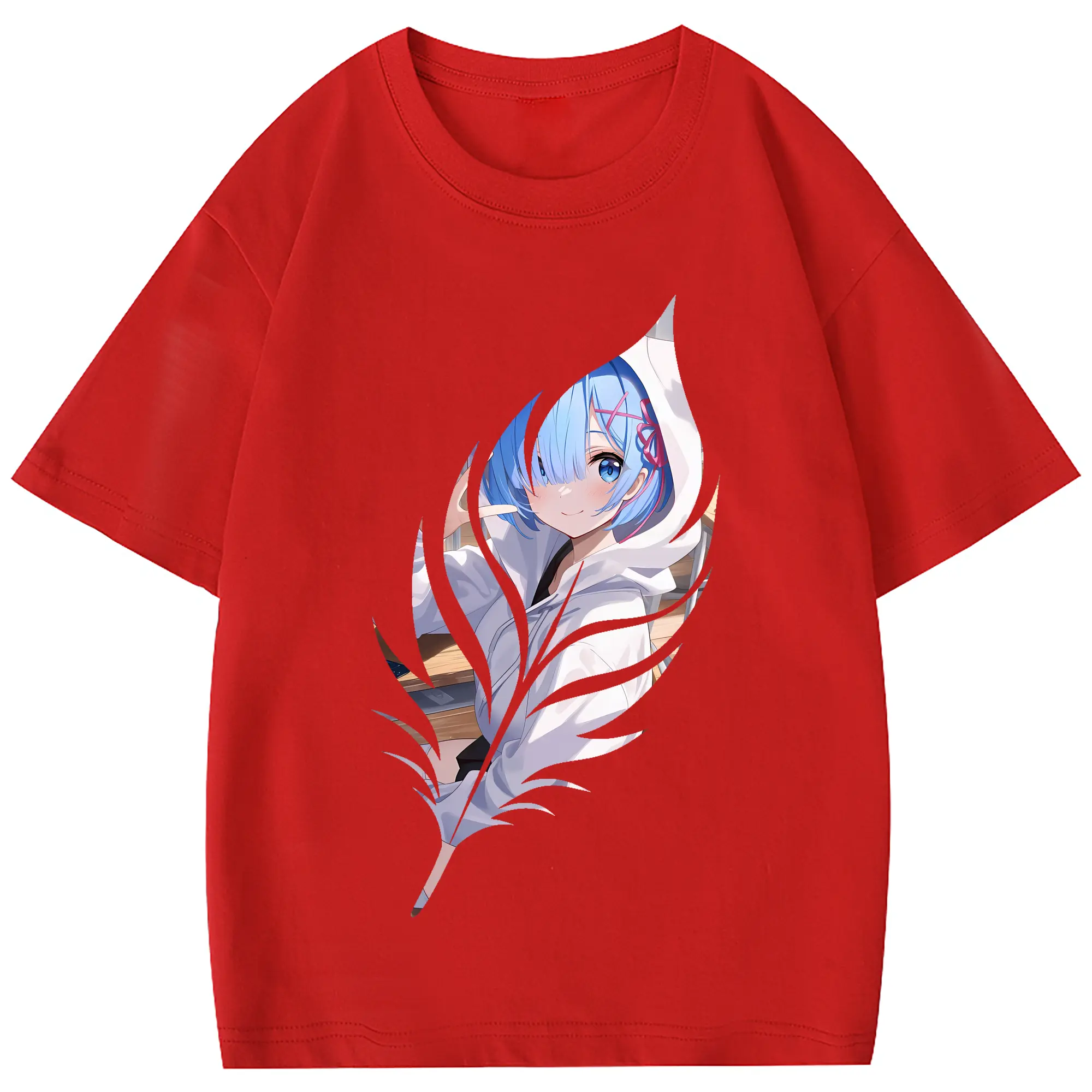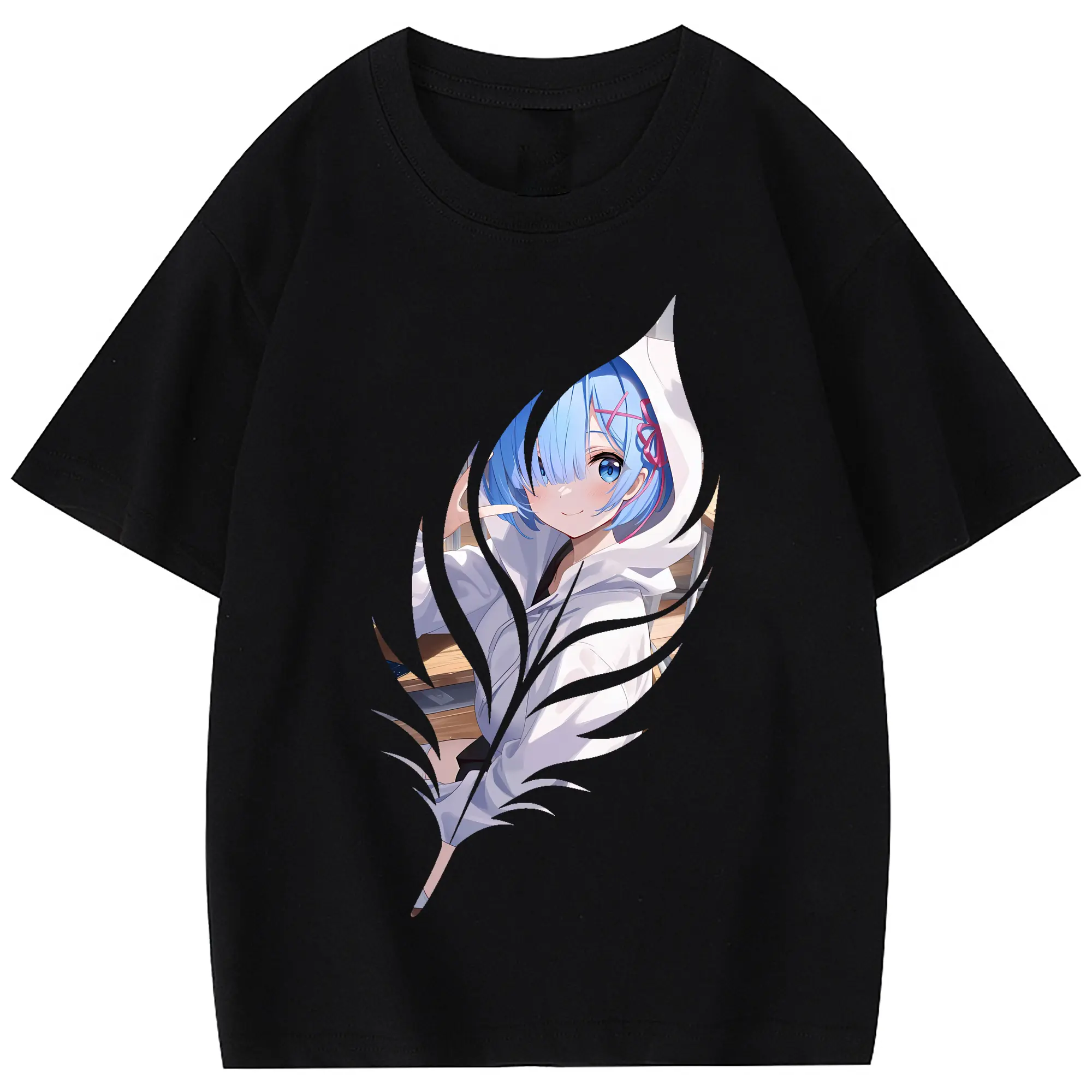 リゼロ グッズ レム - 綿100% 半袖Tシャツ ・ バックプリント ・ 快適 通気性 ・ 日常使い 散歩 スポーツ用