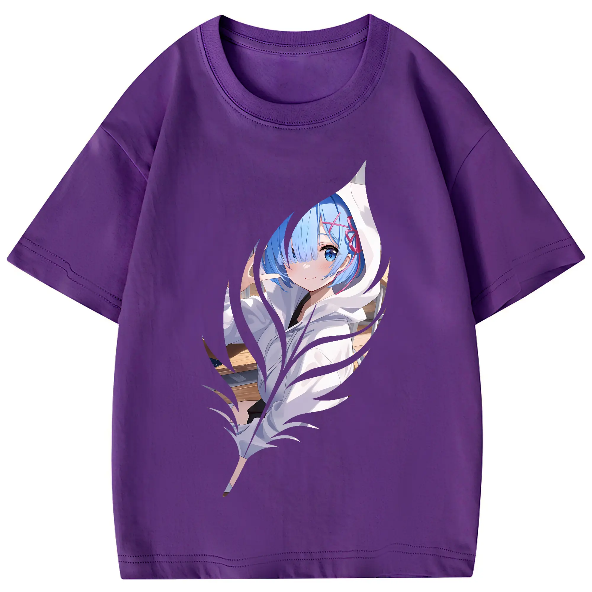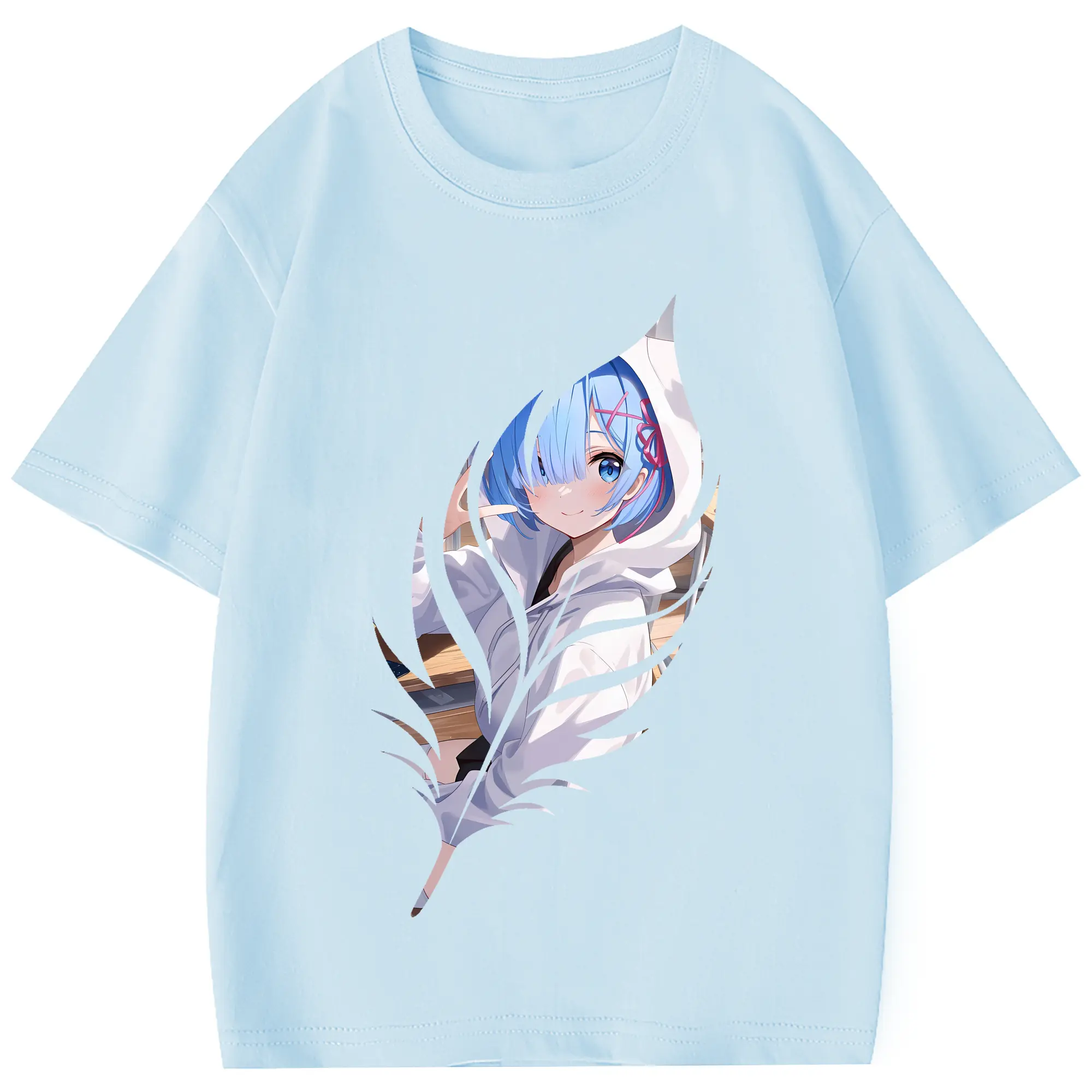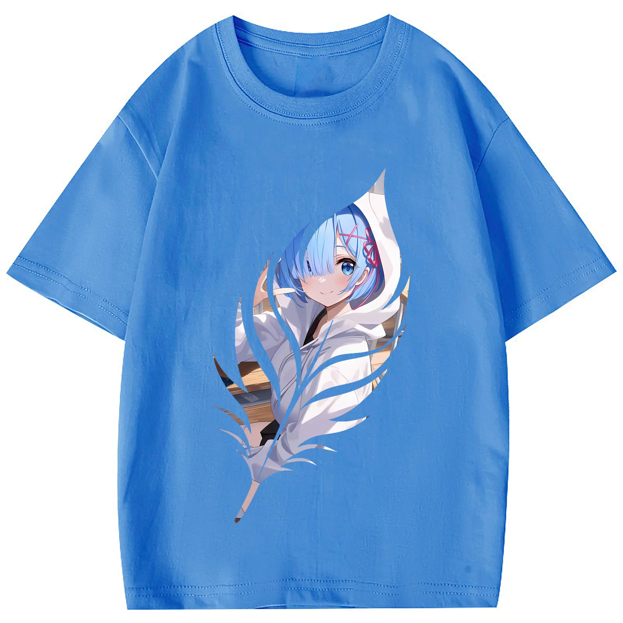 リゼロ グッズ レム - 綿100% 半袖Tシャツ ・ フロントプリント ・ 快適 通気性 ・ 日常使い 散歩 スポーツ用