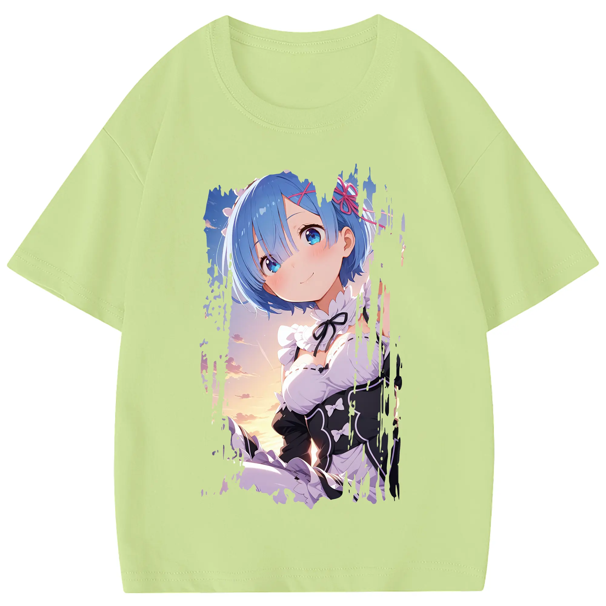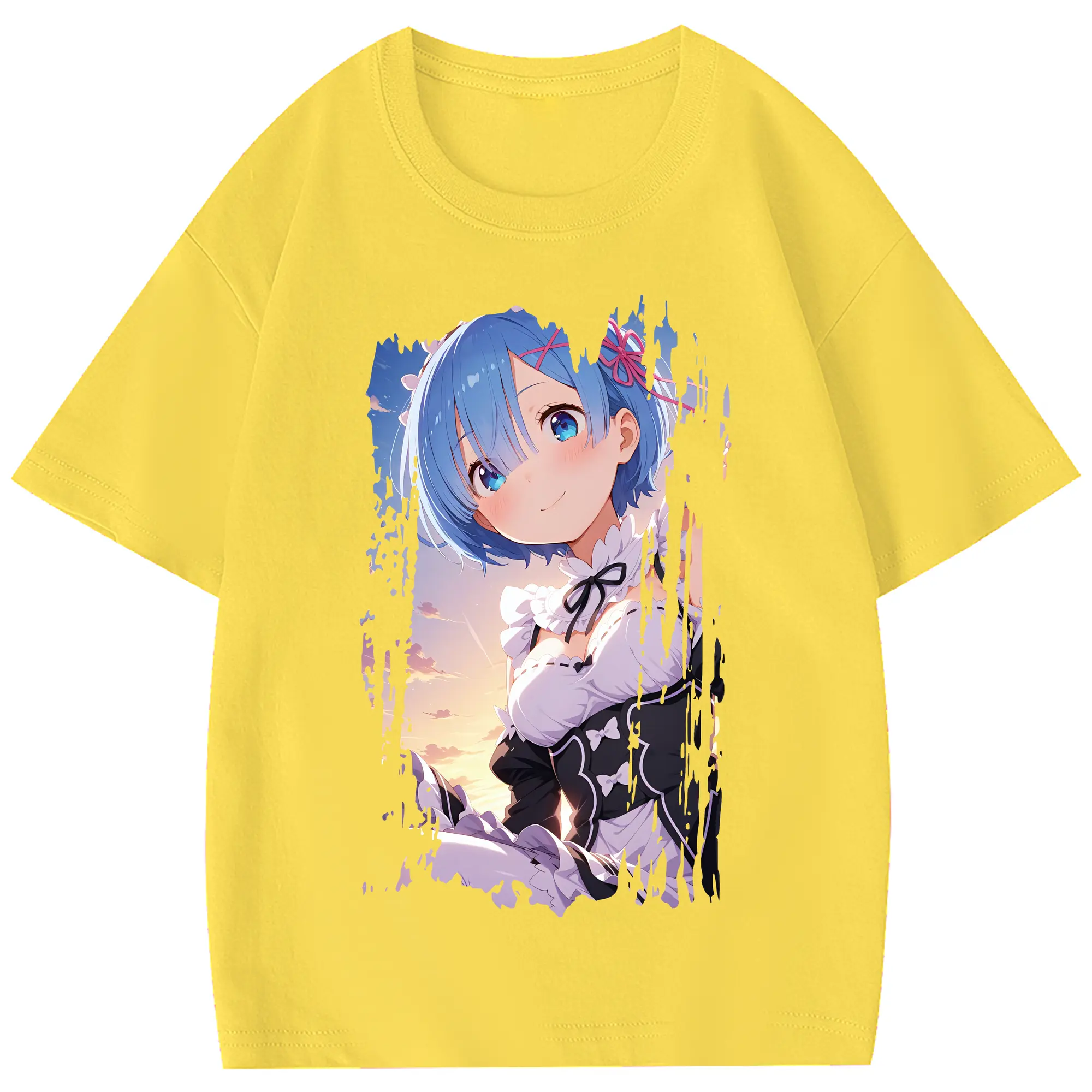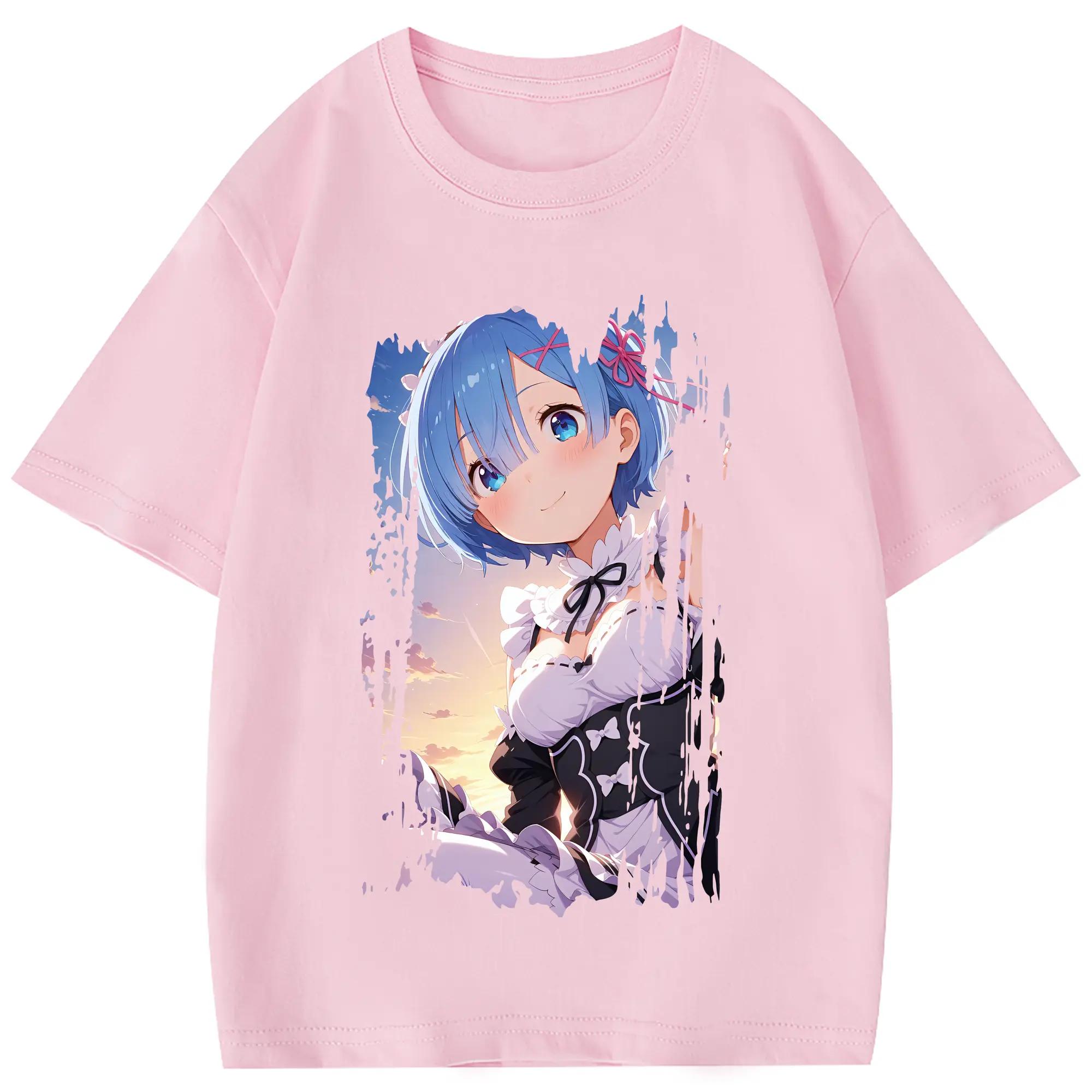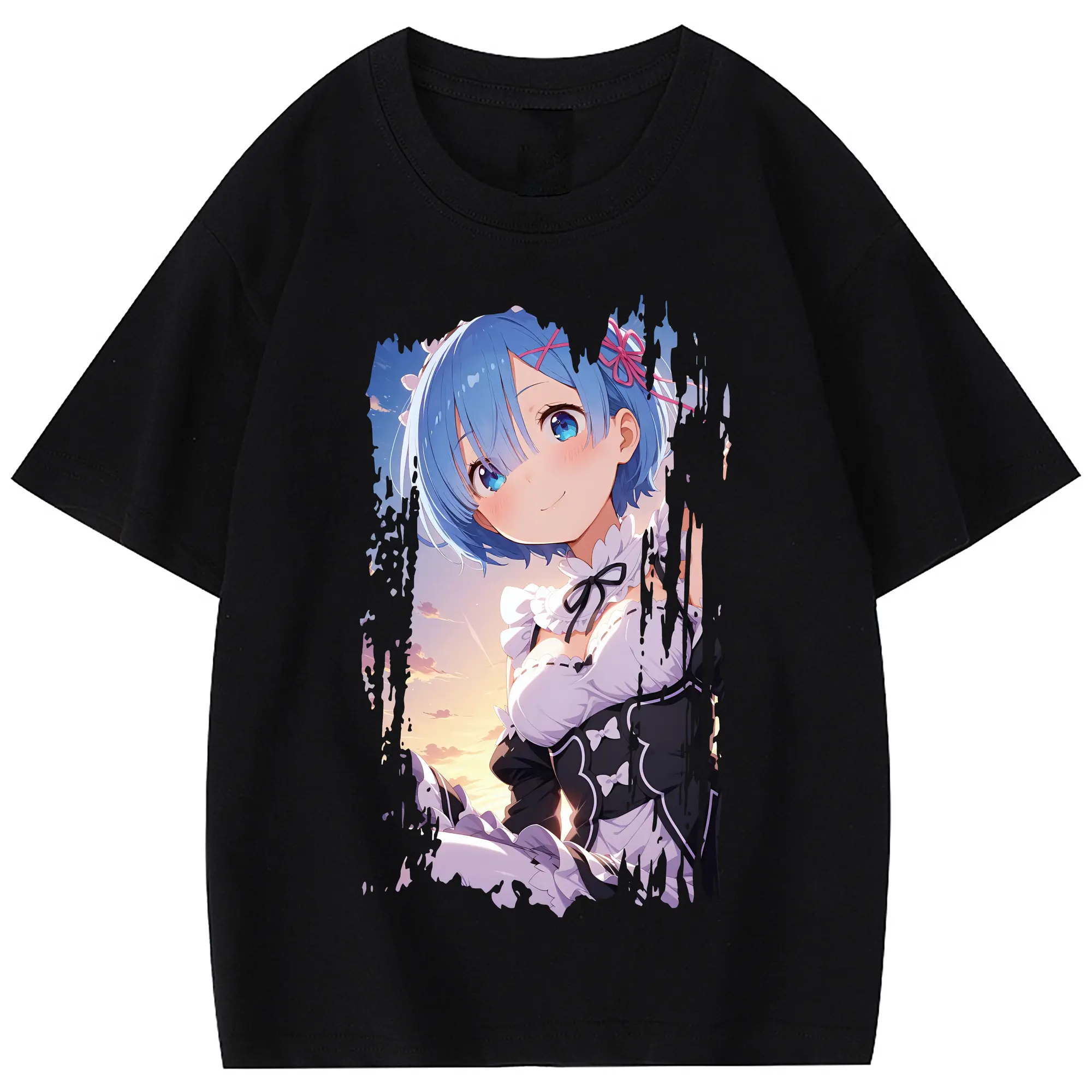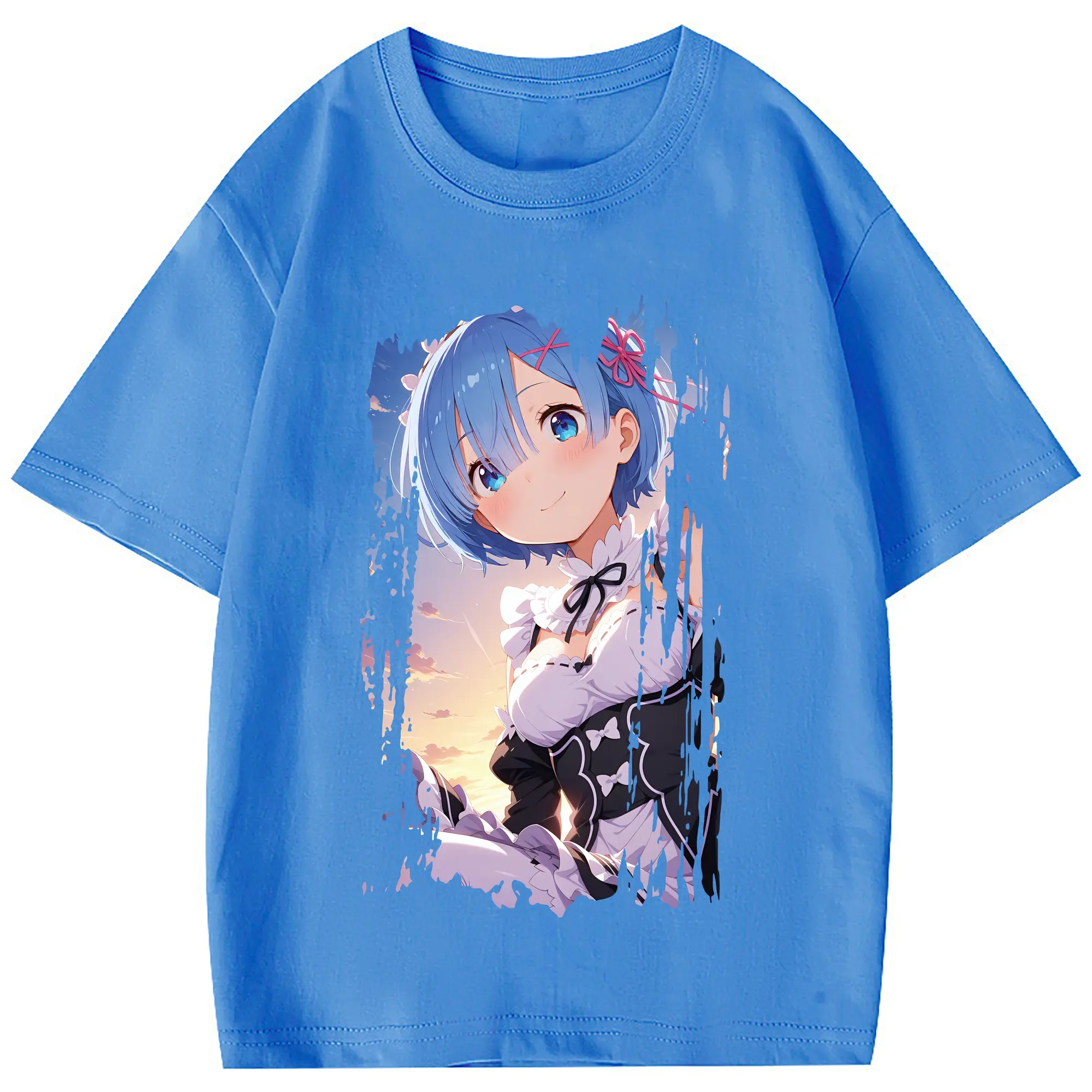 リゼロ グッズ レム - 綿100% 半袖Tシャツ ・ フロントプリント ・ 快適 通気性 ・ 日常使い 散歩 スポーツ用