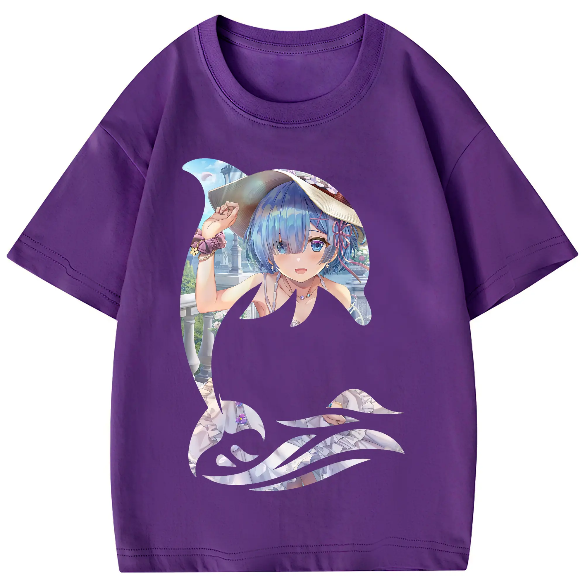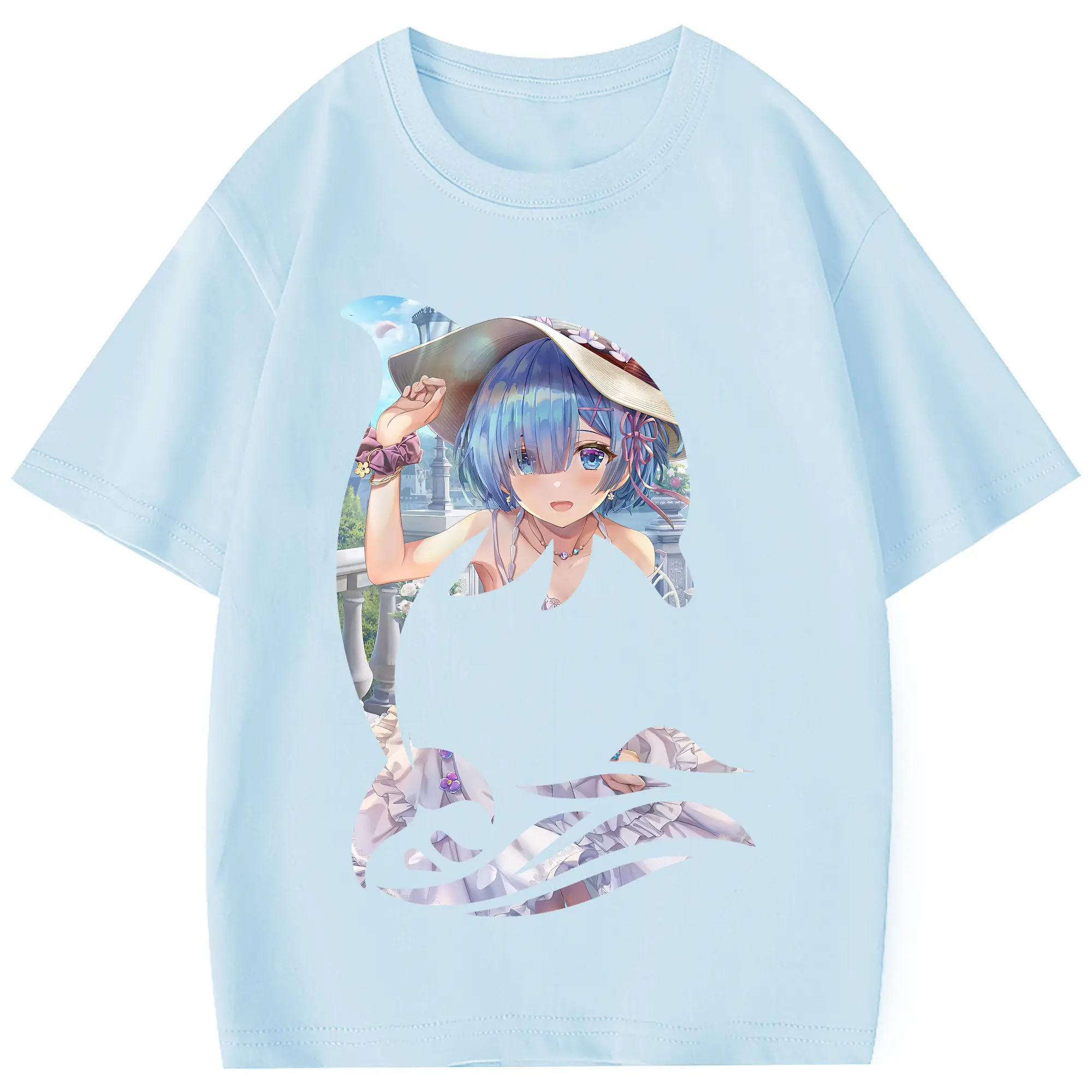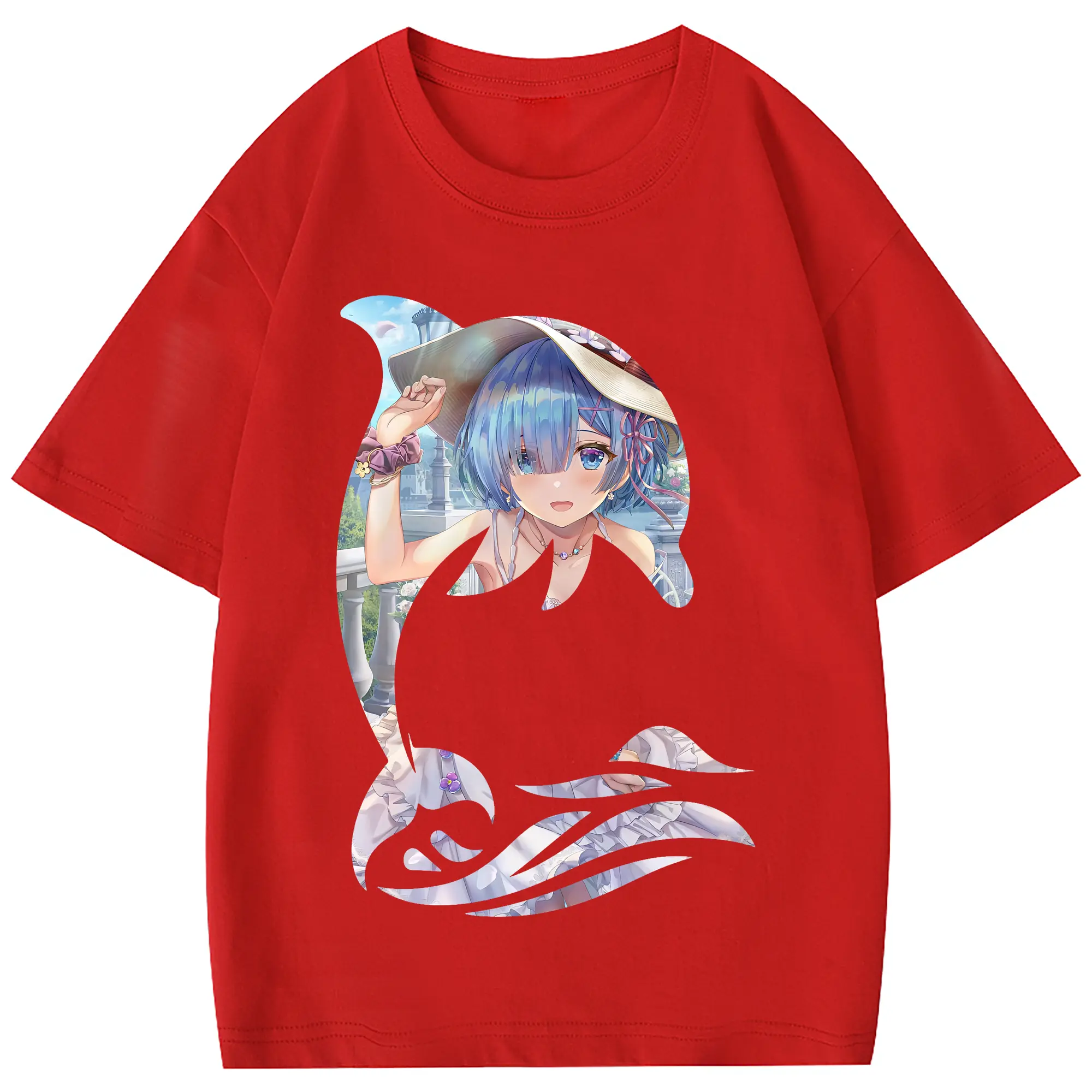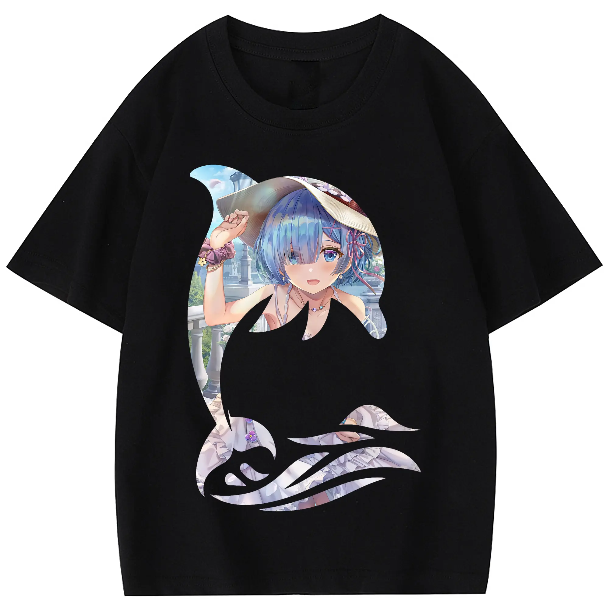 リゼロ グッズ レム - 綿100% 半袖Tシャツ ・ バックプリント ・ 快適 通気性 ・ 日常使い 散歩 スポーツ用