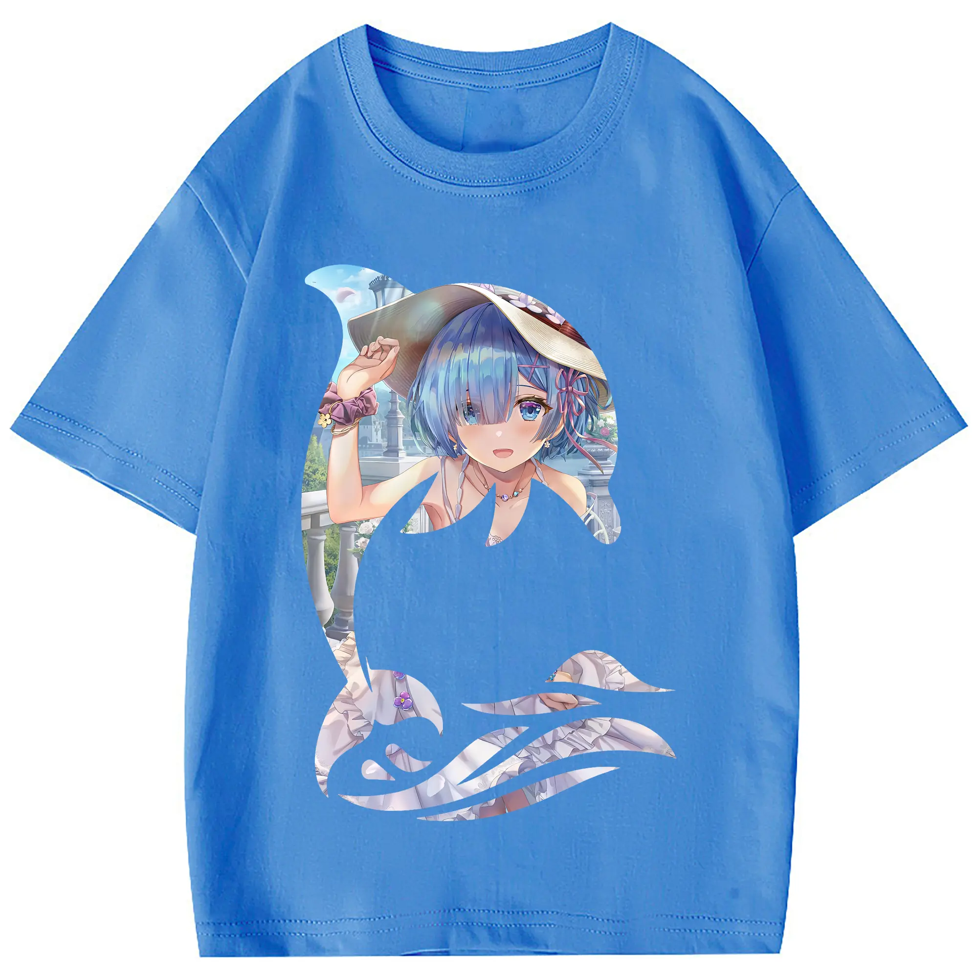 リゼロ グッズ レム - 綿100% 半袖Tシャツ ・ フロントプリント ・ 快適 通気性 ・ 日常使い 散歩 スポーツ用
