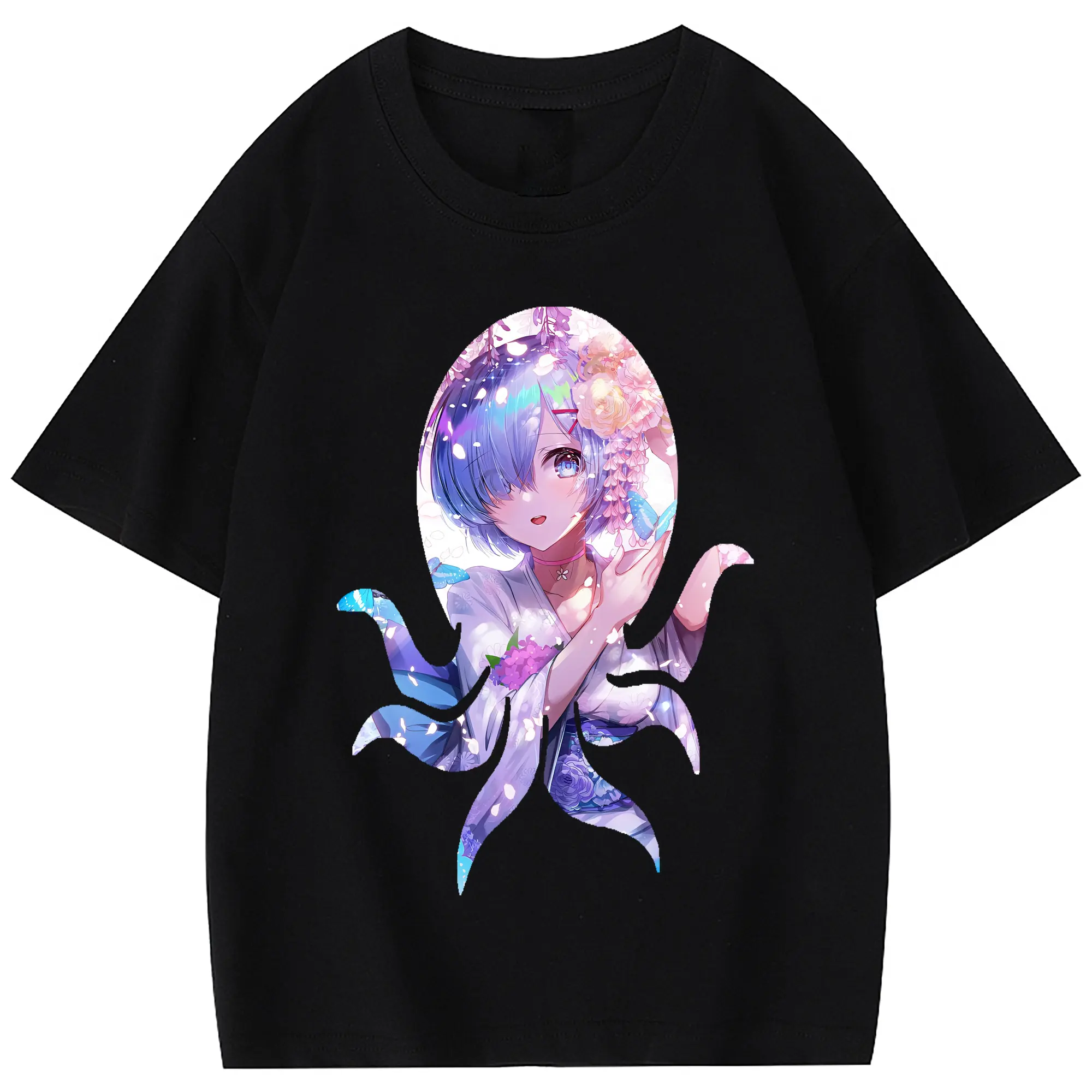 リゼロ グッズ レム - 綿100% 半袖Tシャツ ・ バックプリント ・ 快適 通気性 ・ 日常使い 散歩 スポーツ用