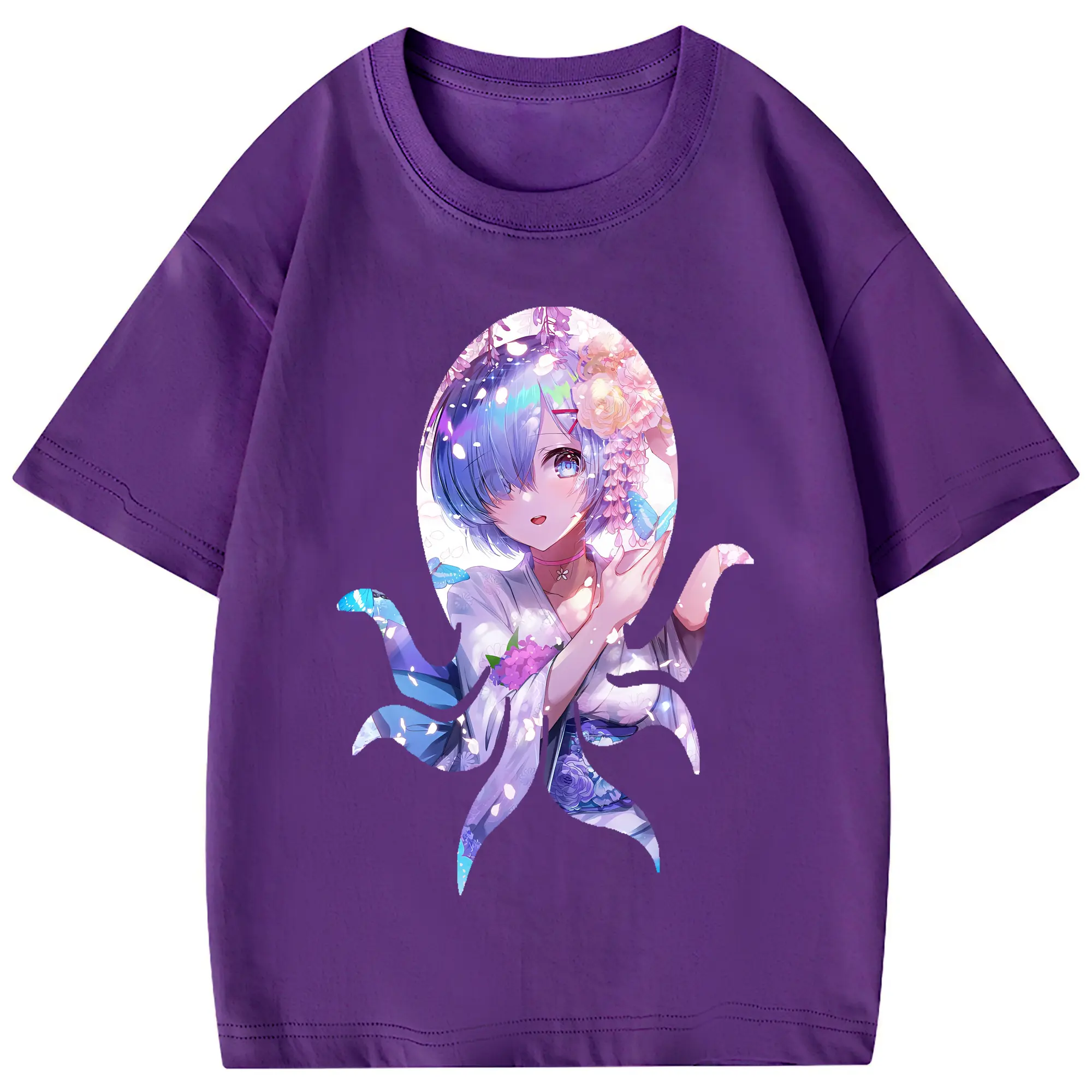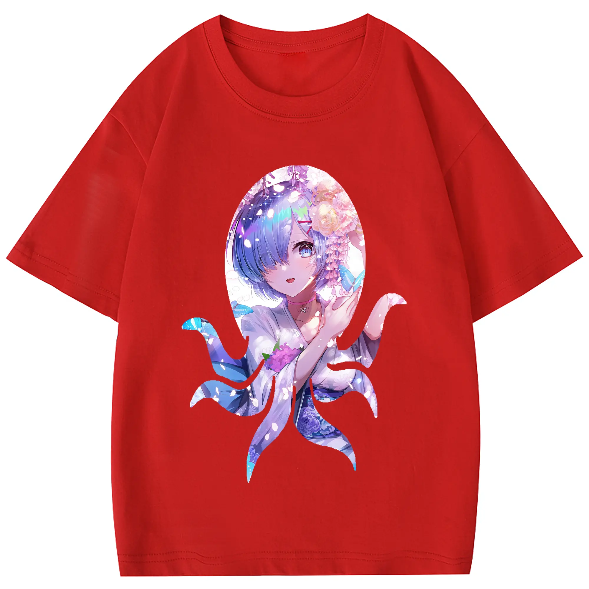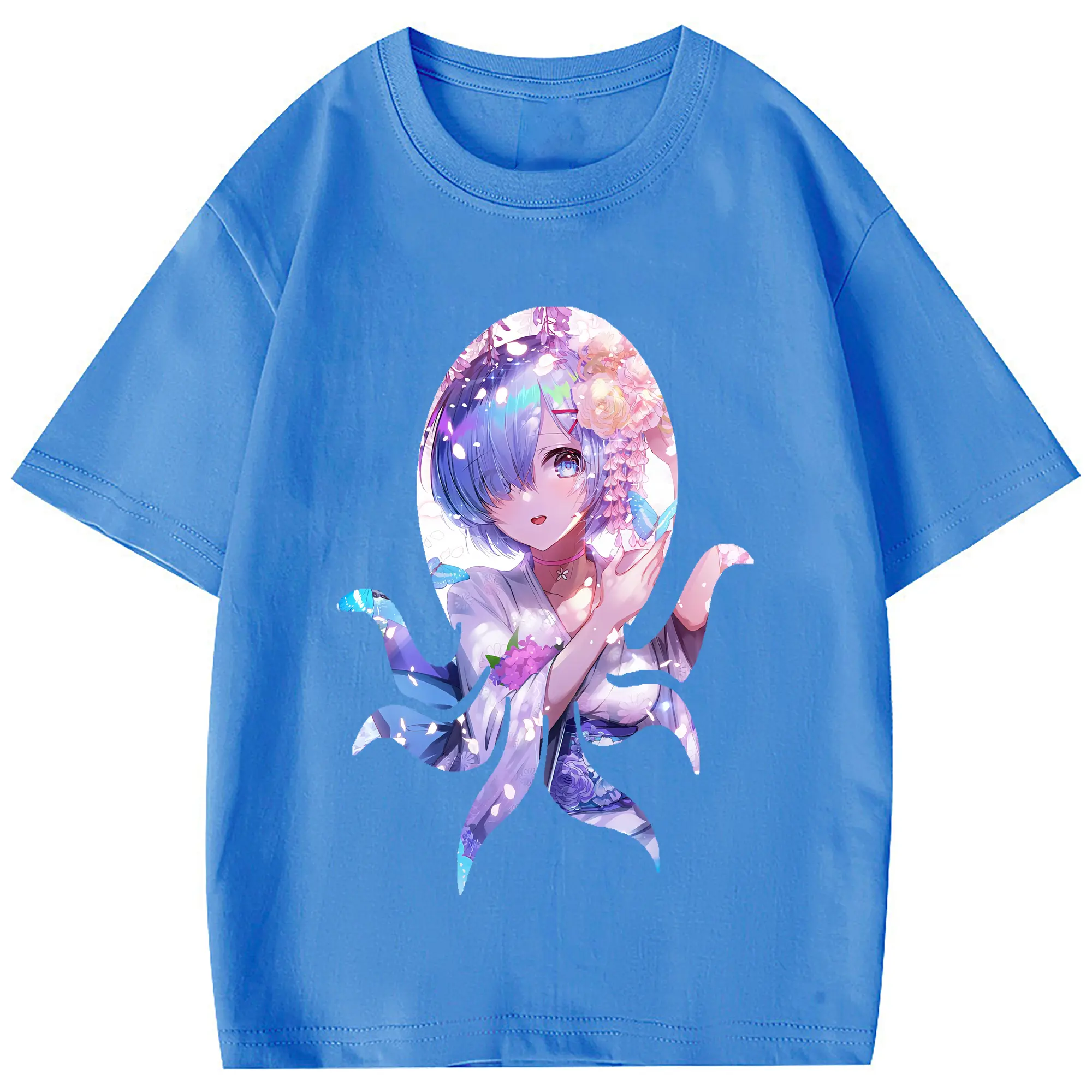 リゼロ グッズ レム - 綿100% 半袖Tシャツ ・ フロントプリント ・ 快適 通気性 ・ 日常使い 散歩 スポーツ用