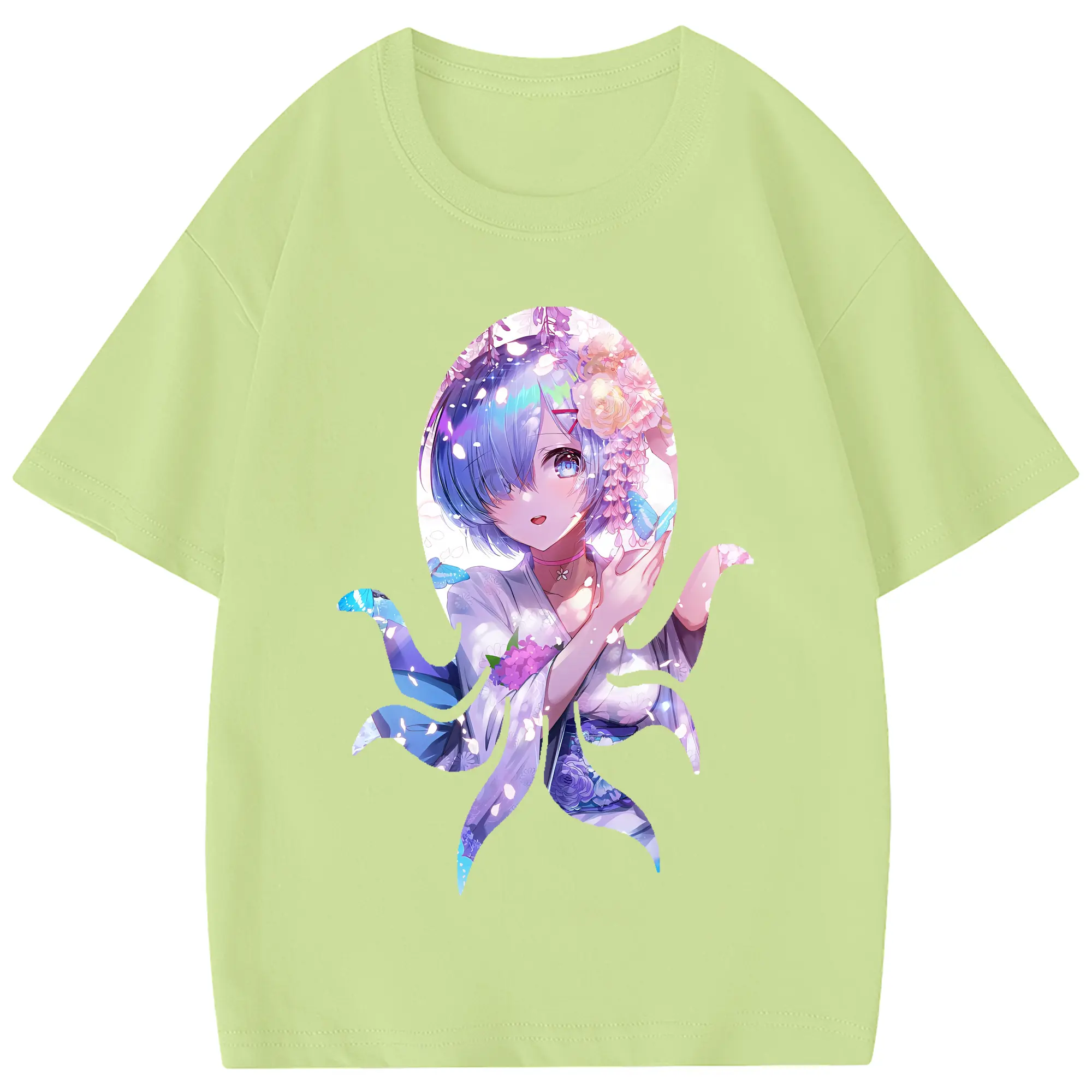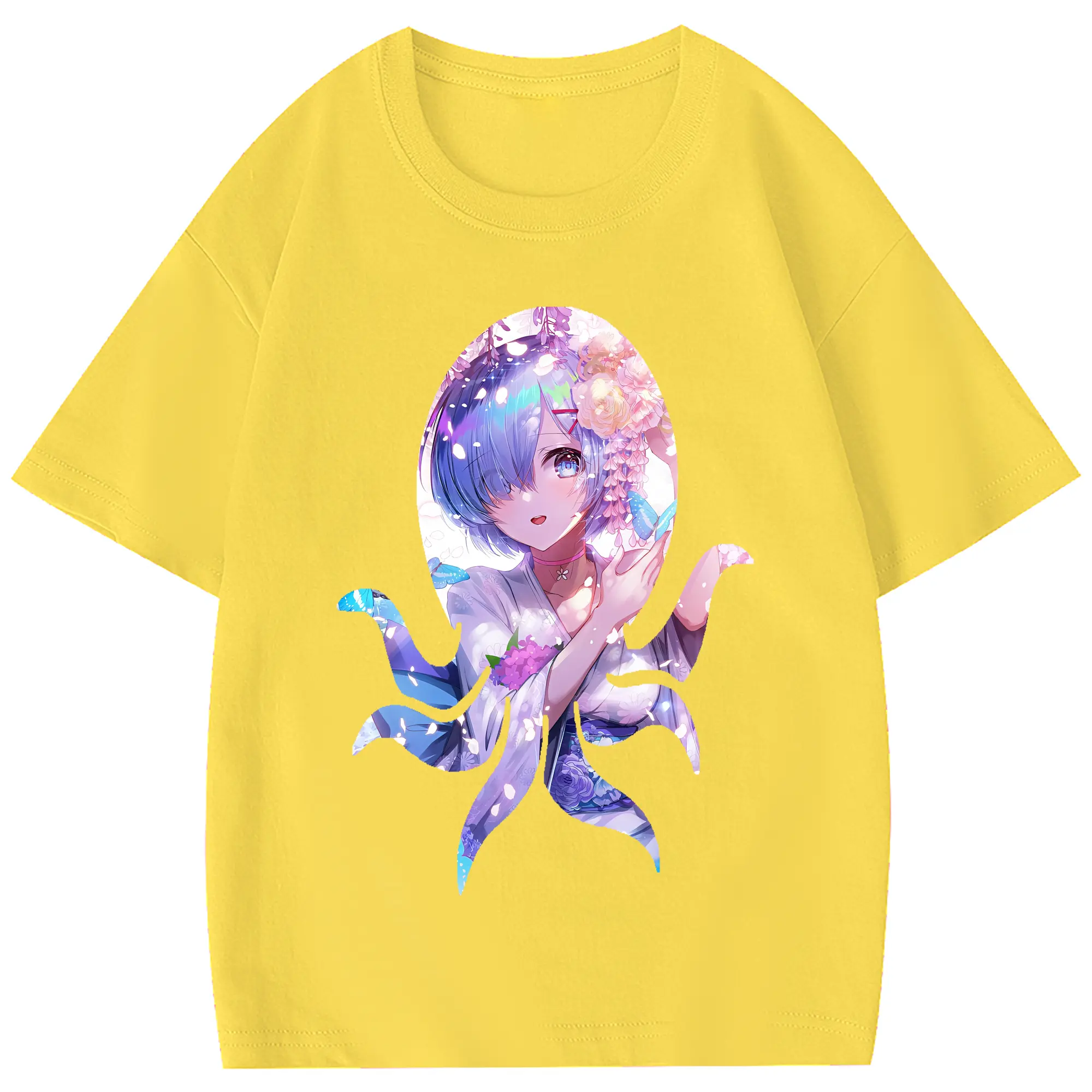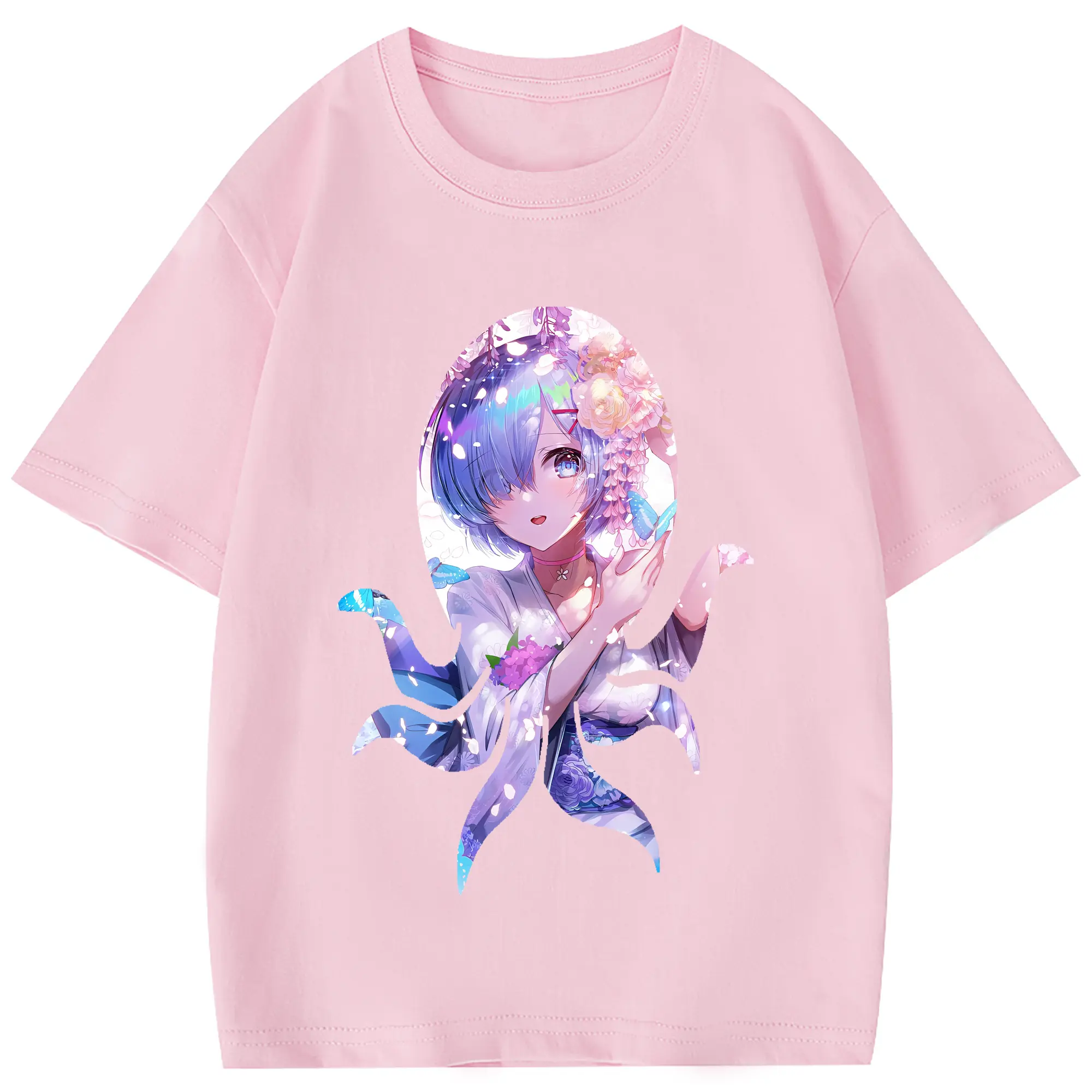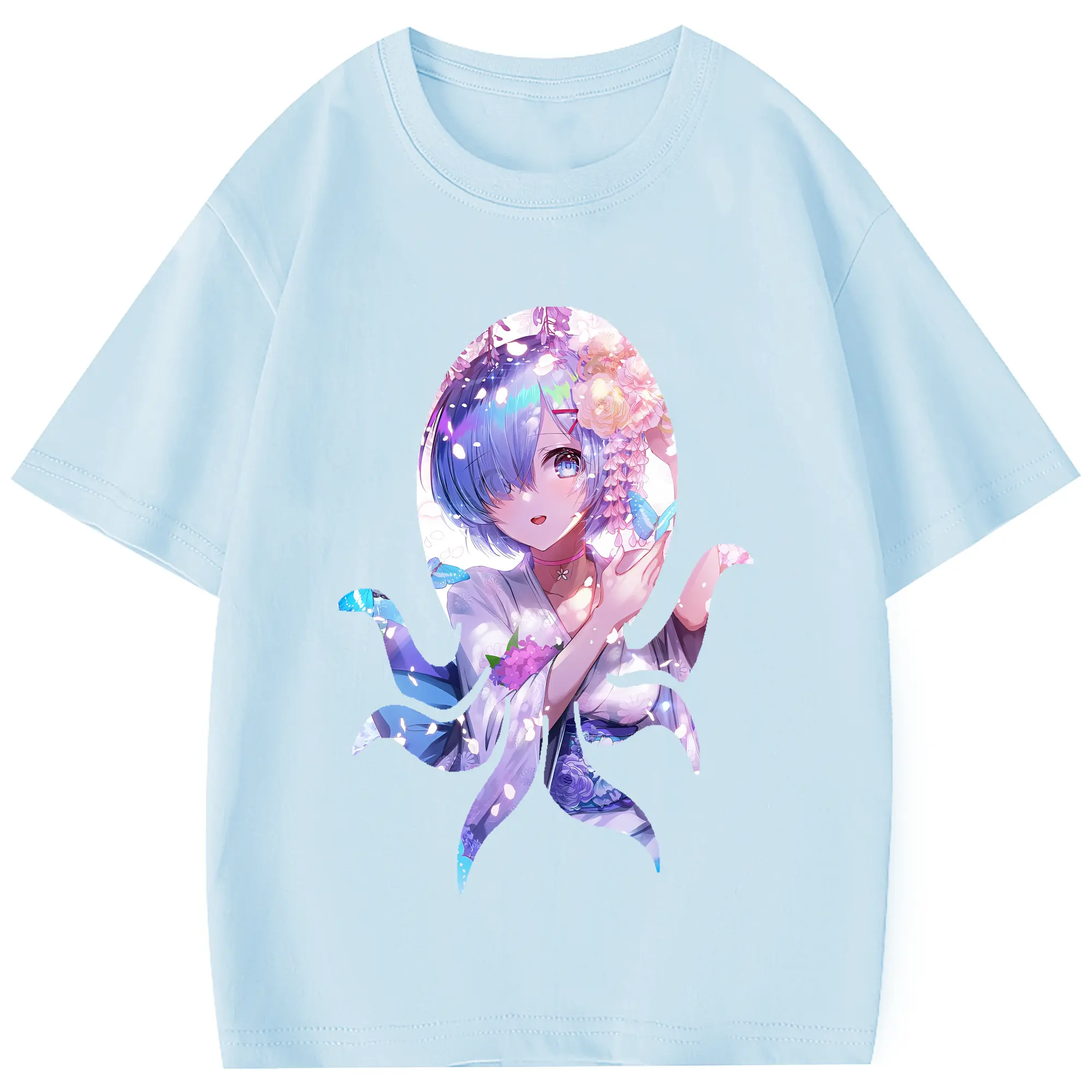リゼロ グッズ レム - 綿100% 半袖Tシャツ ・ フロントプリント ・ 快適 通気性 ・ 日常使い 散歩 スポーツ用