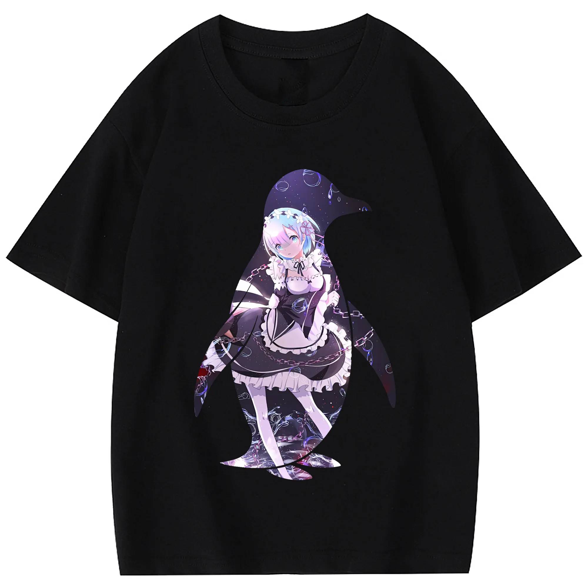 リゼロ グッズ レム - 綿100% 半袖Tシャツ ・ バックプリント ・ 快適 通気性 ・ 日常使い 散歩 スポーツ用