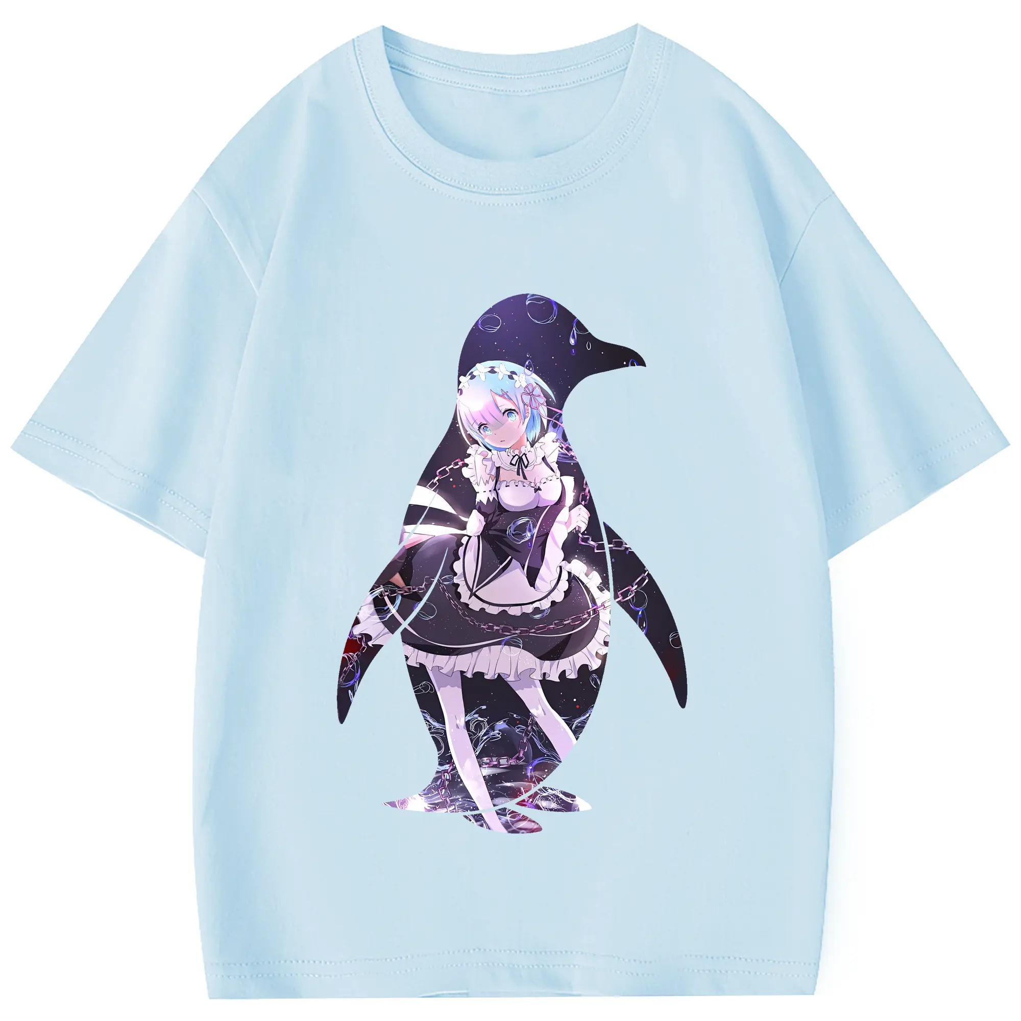 リゼロ グッズ レム - 綿100% 半袖Tシャツ ・ フロントプリント ・ 快適 通気性 ・ 日常使い 散歩 スポーツ用