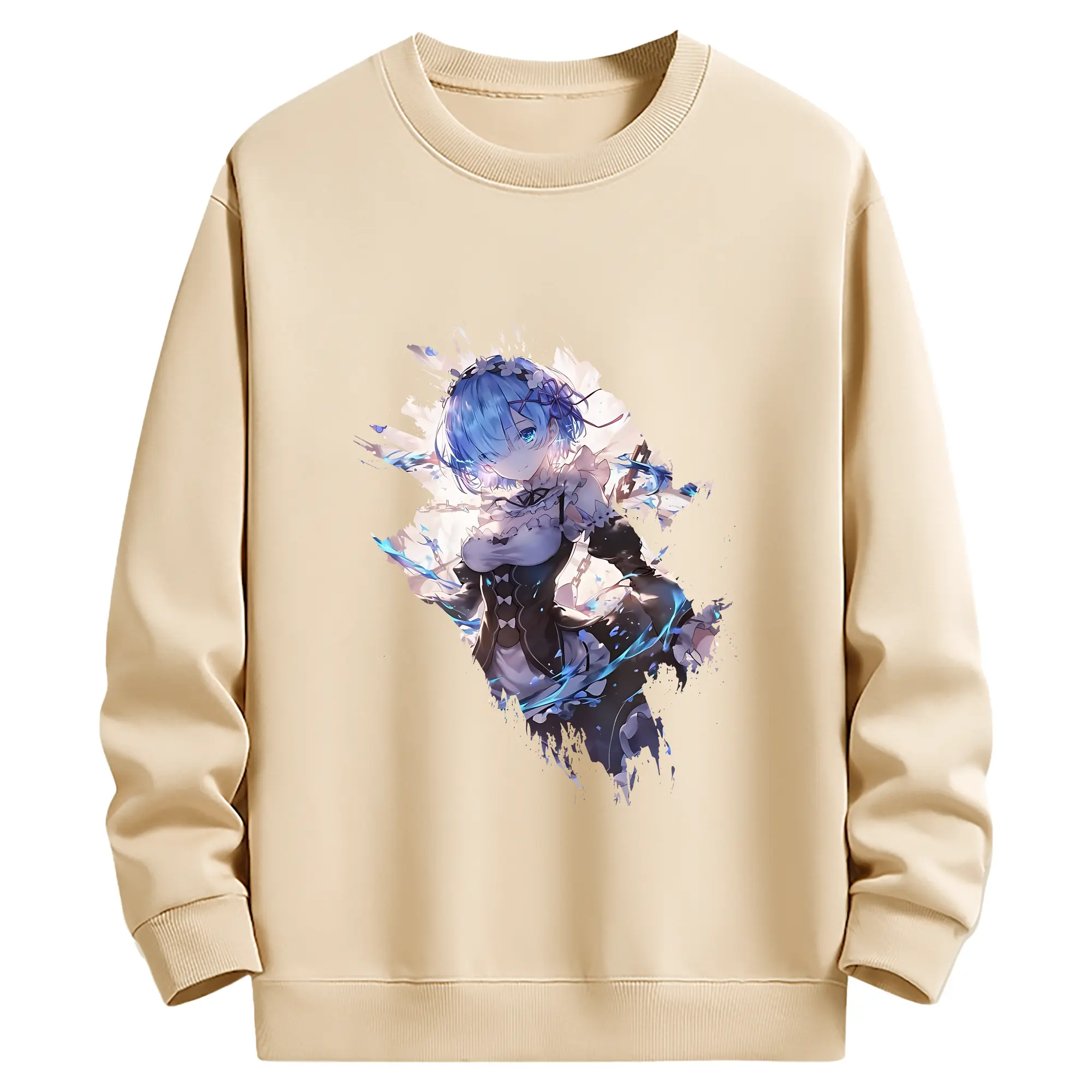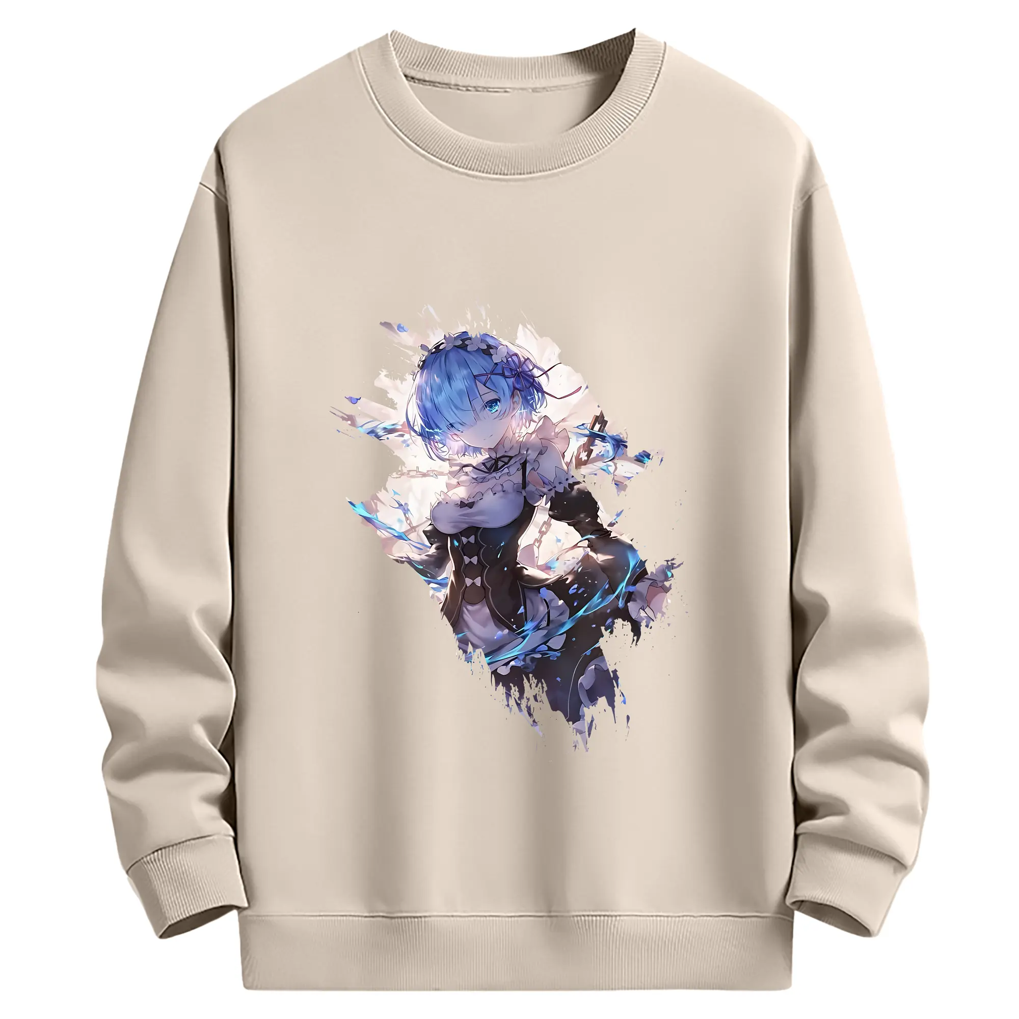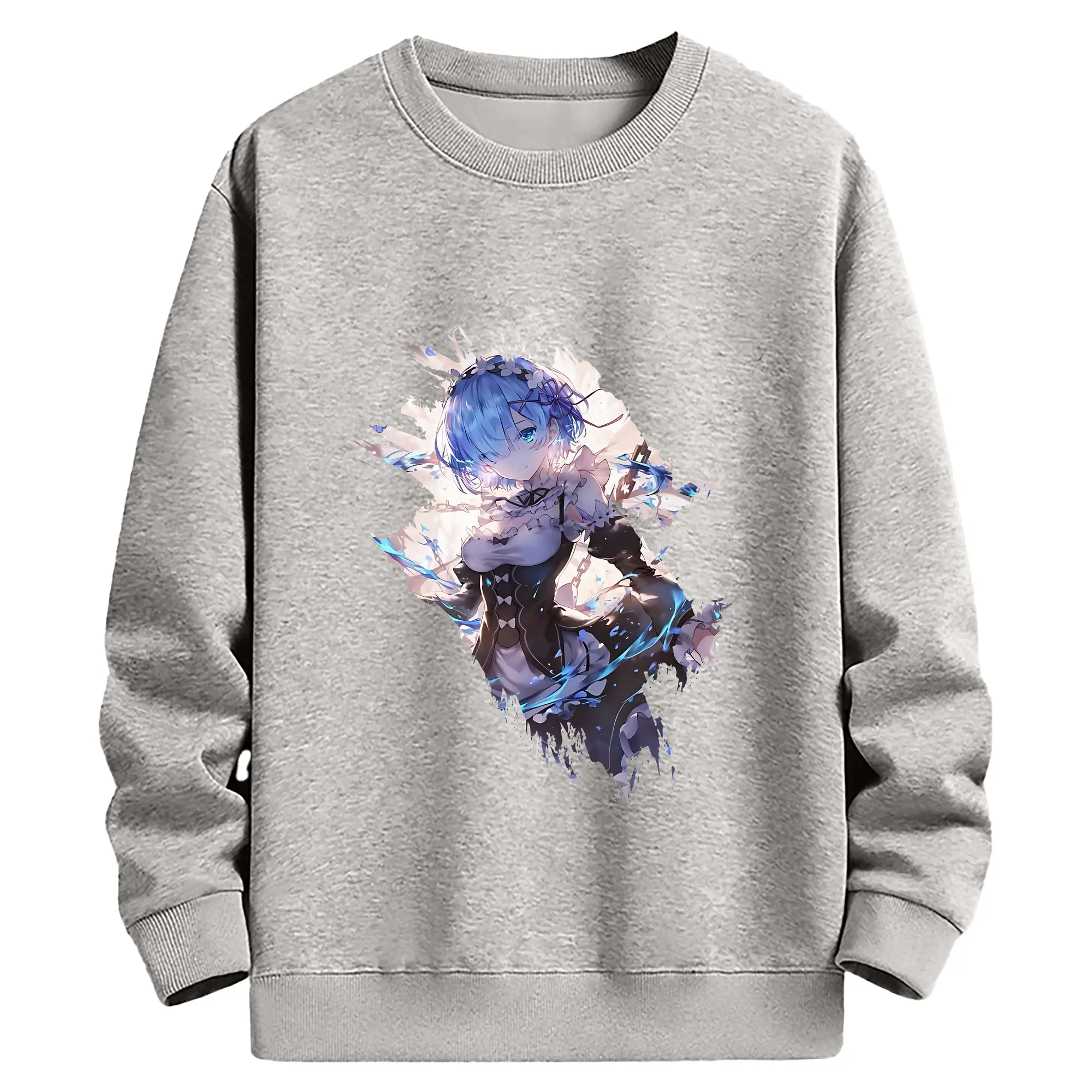 リゼロ グッズ レム - 薄手 クルーネック スウェット 裏毛260g · ポリエステル 春秋向け カジュアル 男女兼用 · トレーナー デイリー スポーツ 散歩に最適