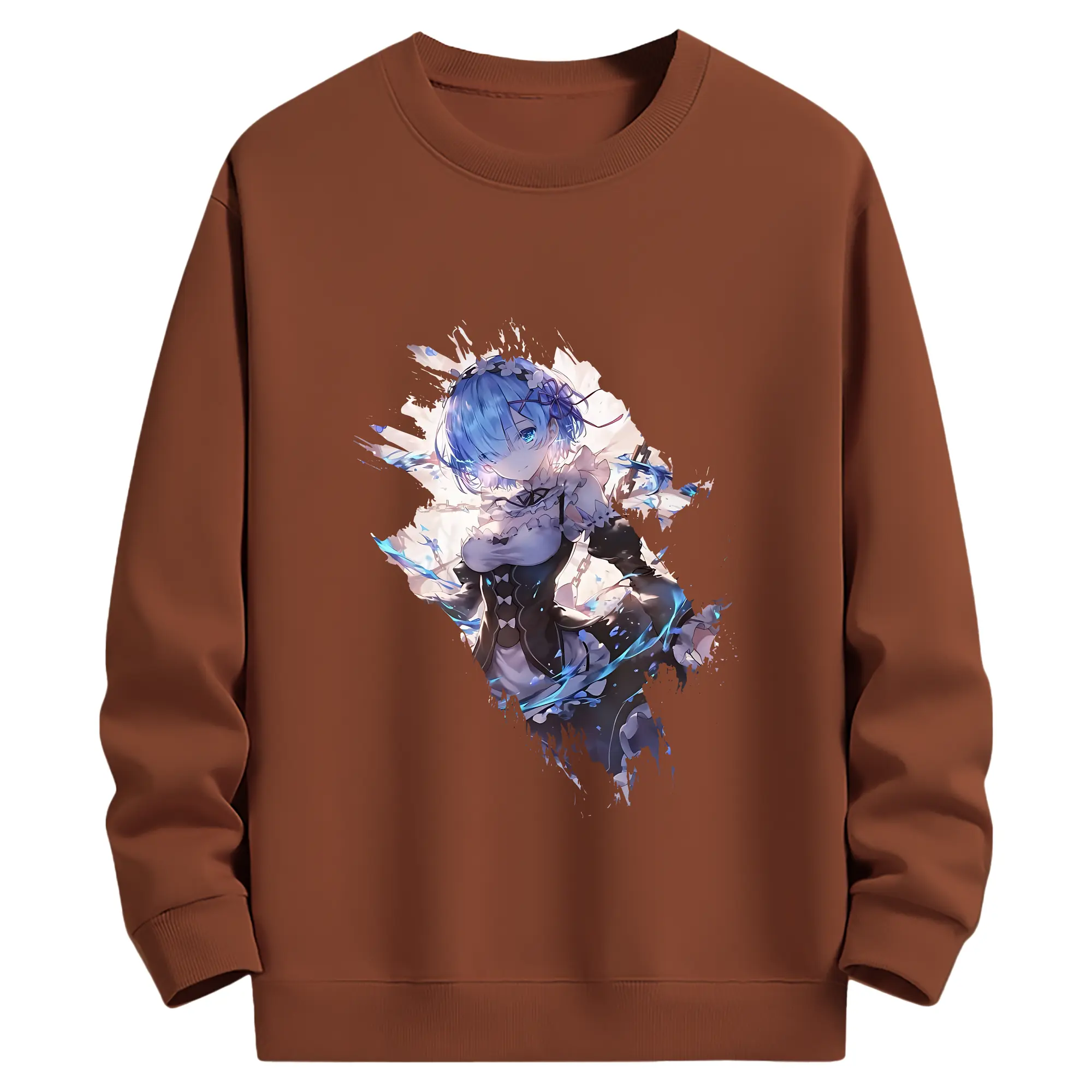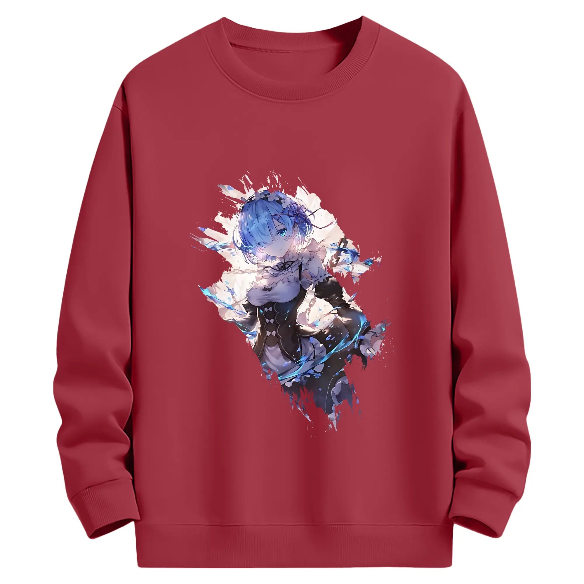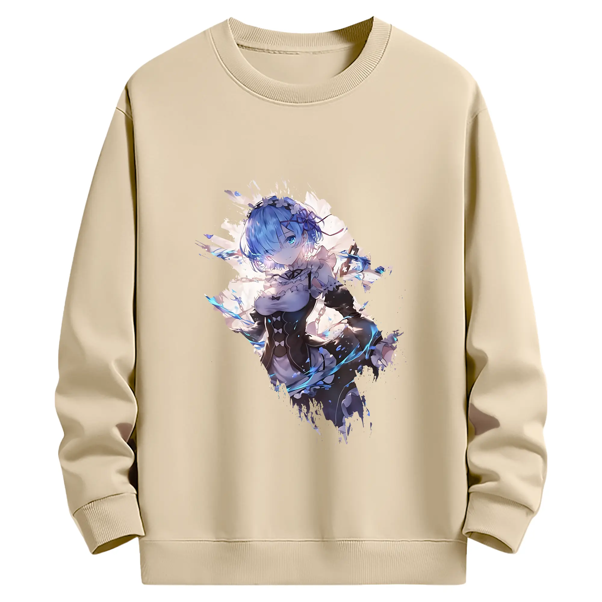 リゼロ グッズ レム - 薄手 クルーネック スウェット 裏毛260g · ポリエステル 春秋向け カジュアル 男女兼用 · トレーナー デイリー スポーツ 散歩に最適