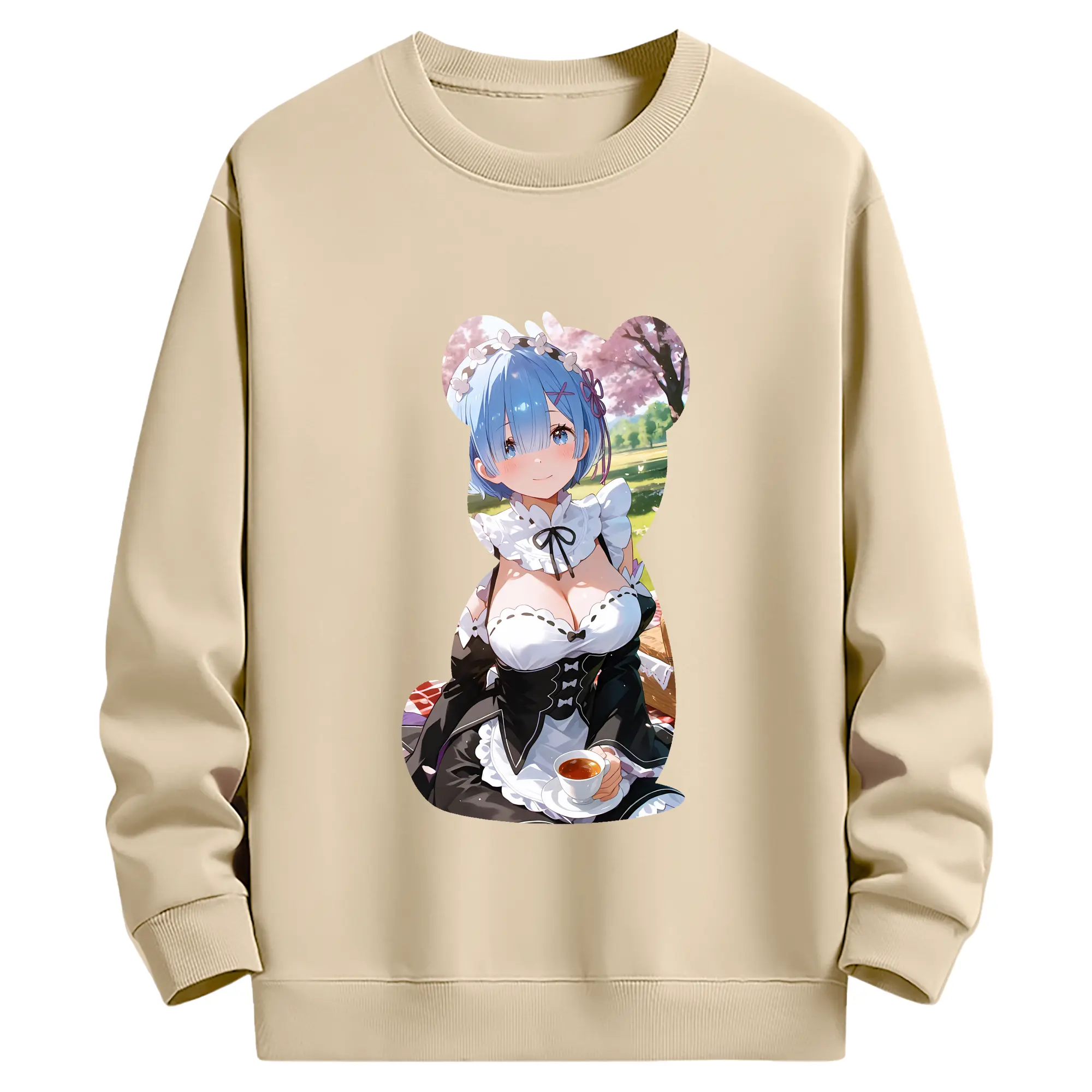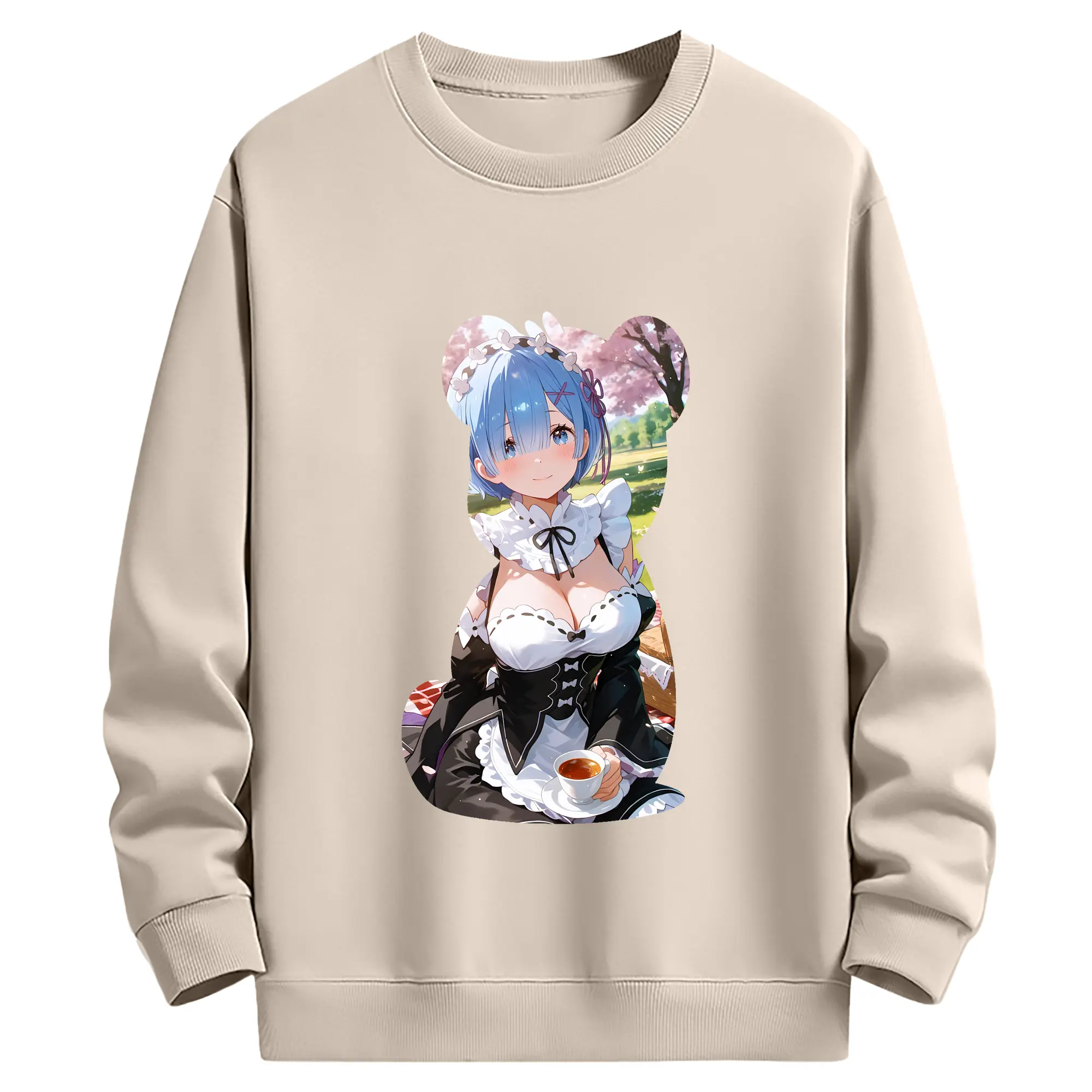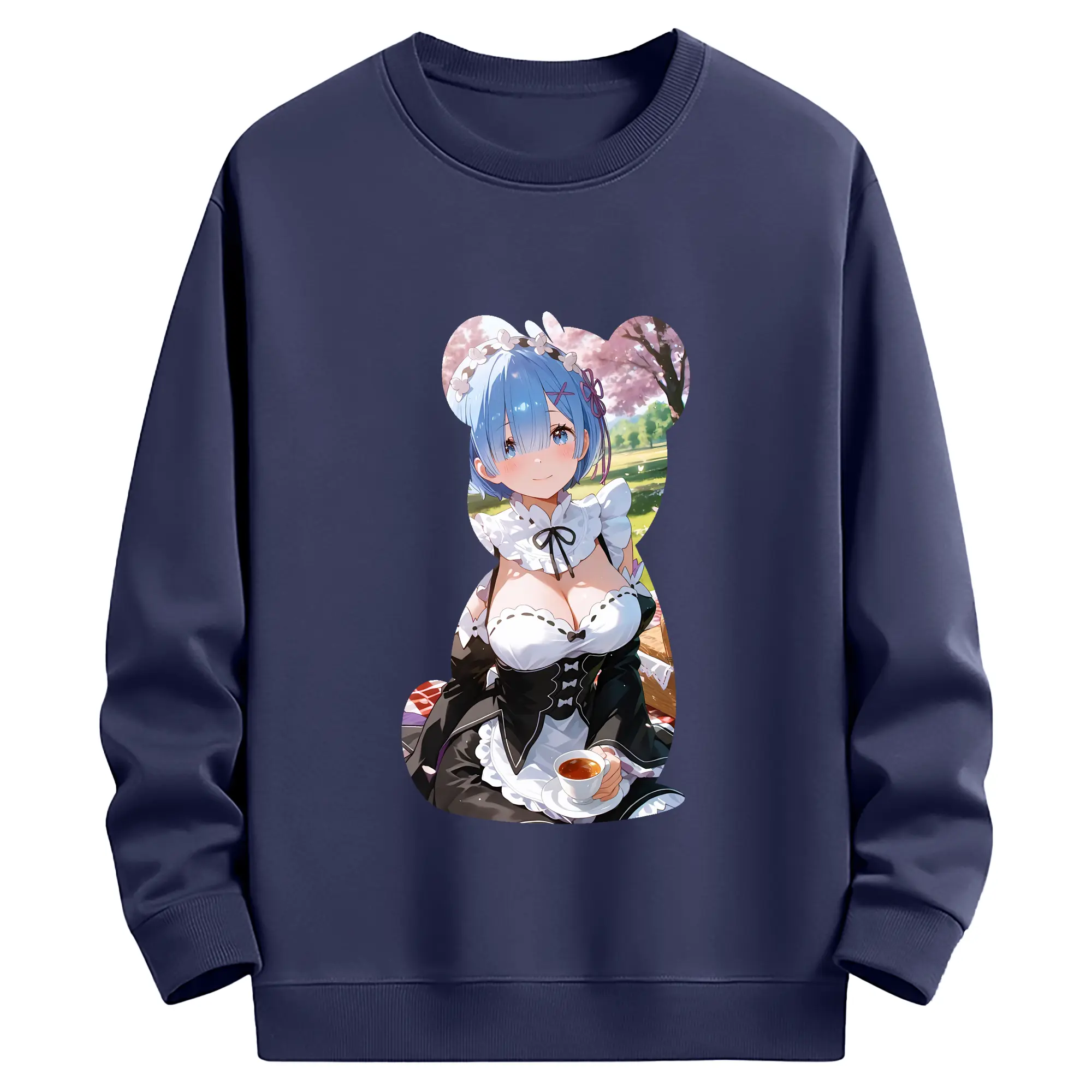 リゼロ グッズ レム - 薄手 クルーネック スウェット 裏毛260g · ポリエステル 春秋向け カジュアル 男女兼用 · トレーナー デイリー スポーツ 散歩に最適