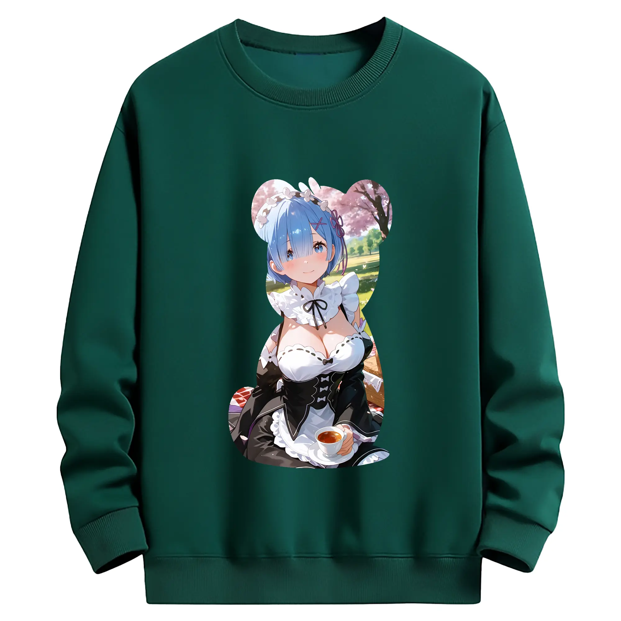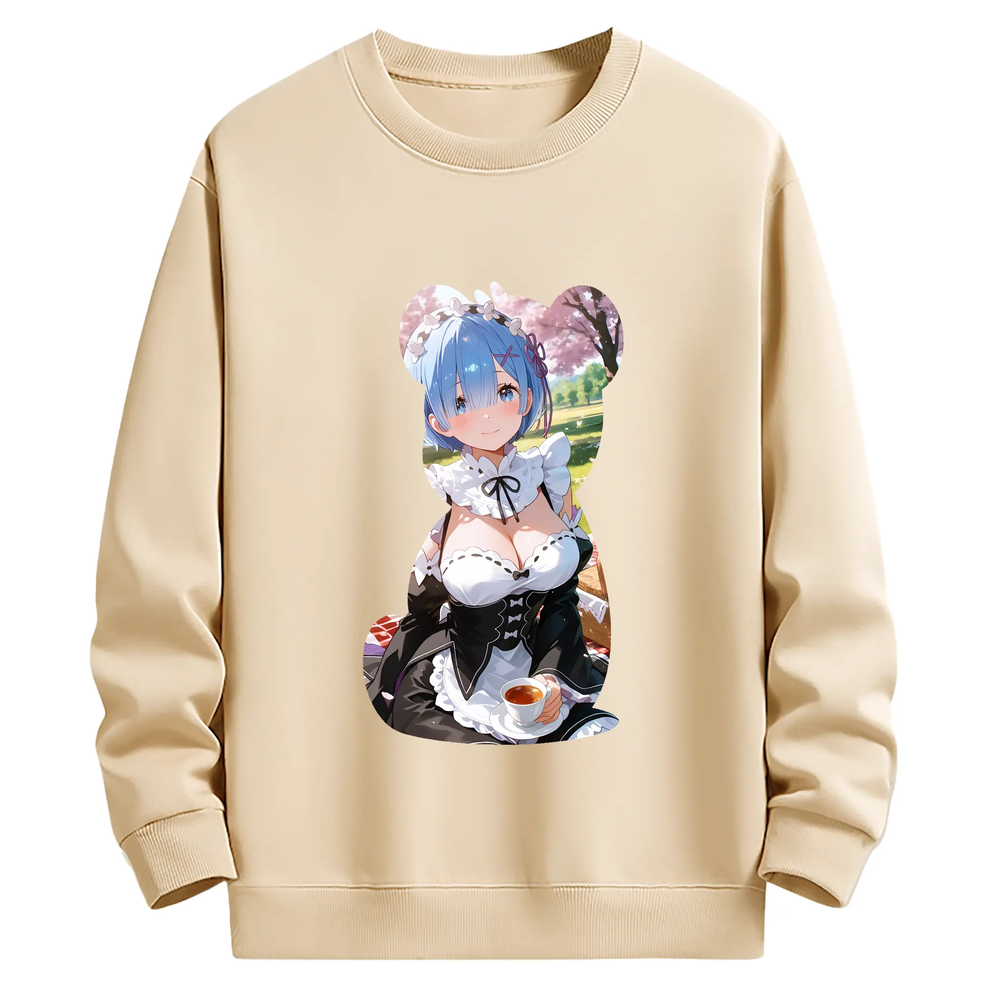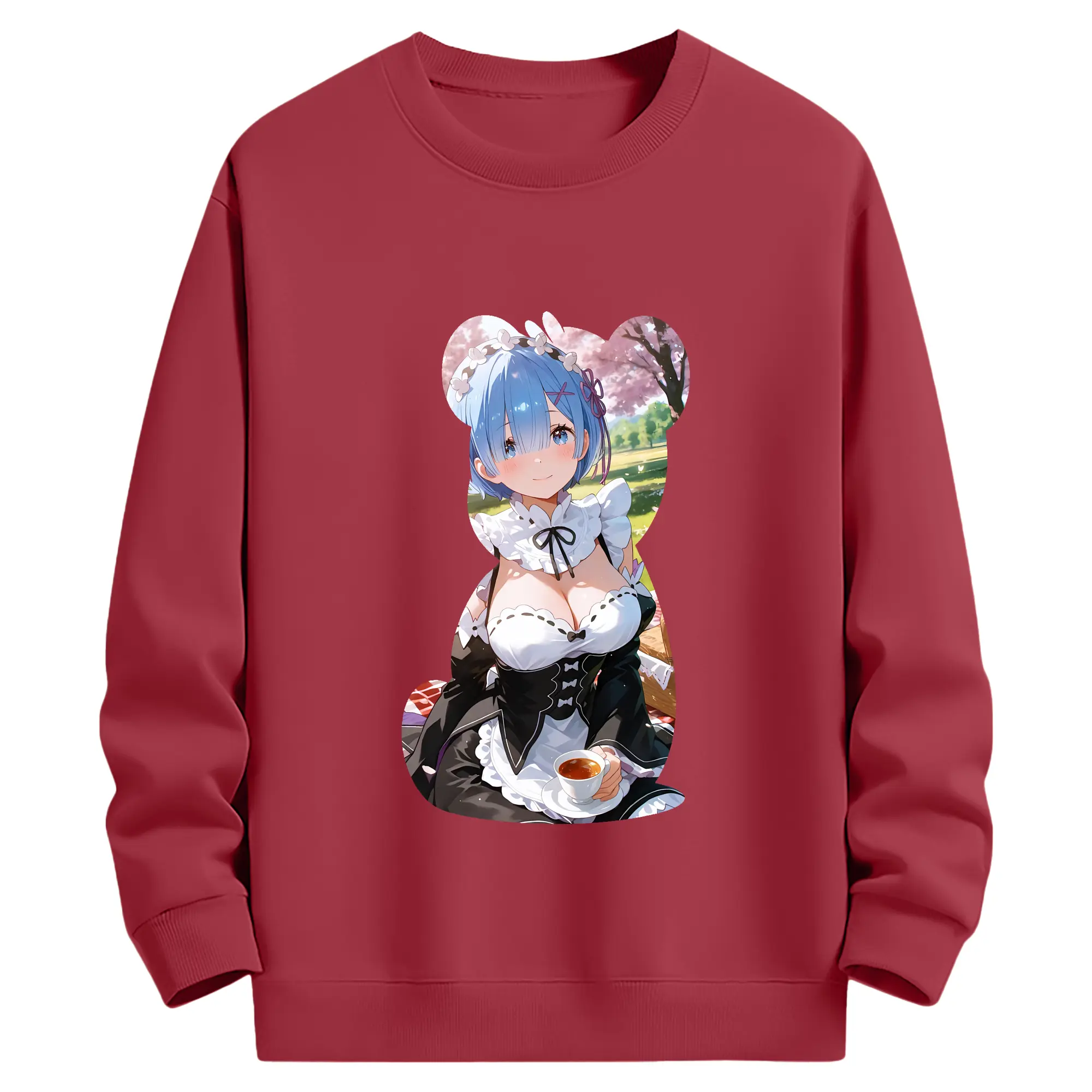 リゼロ グッズ レム - 薄手 クルーネック スウェット 裏毛260g · ポリエステル 春秋向け カジュアル 男女兼用 · トレーナー デイリー スポーツ 散歩に最適