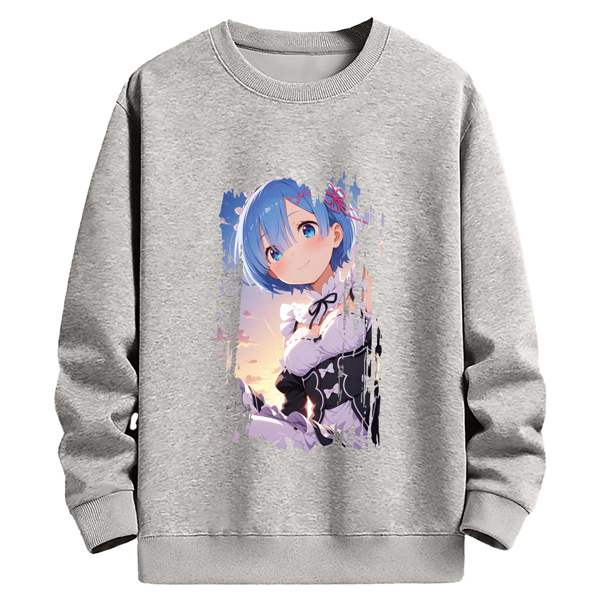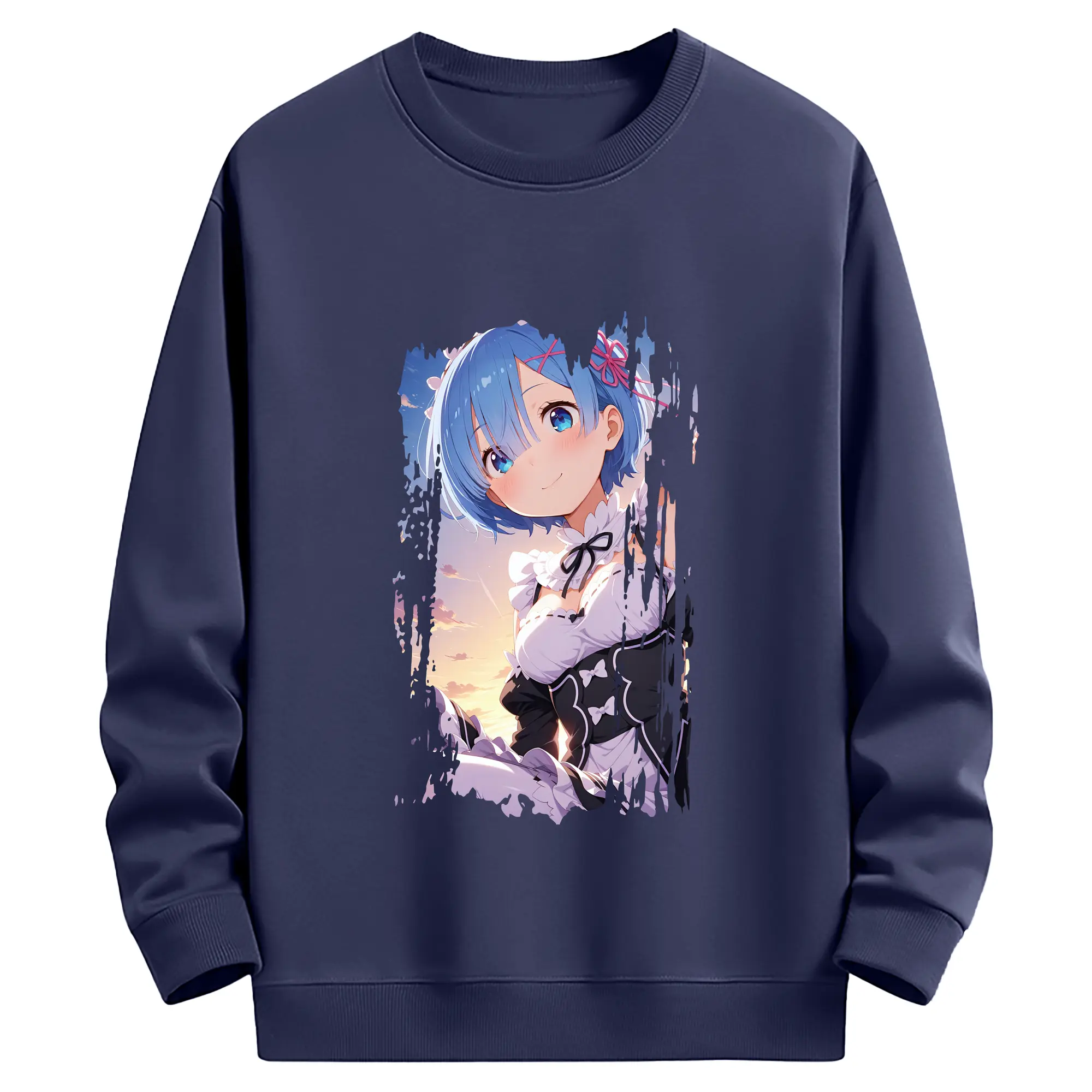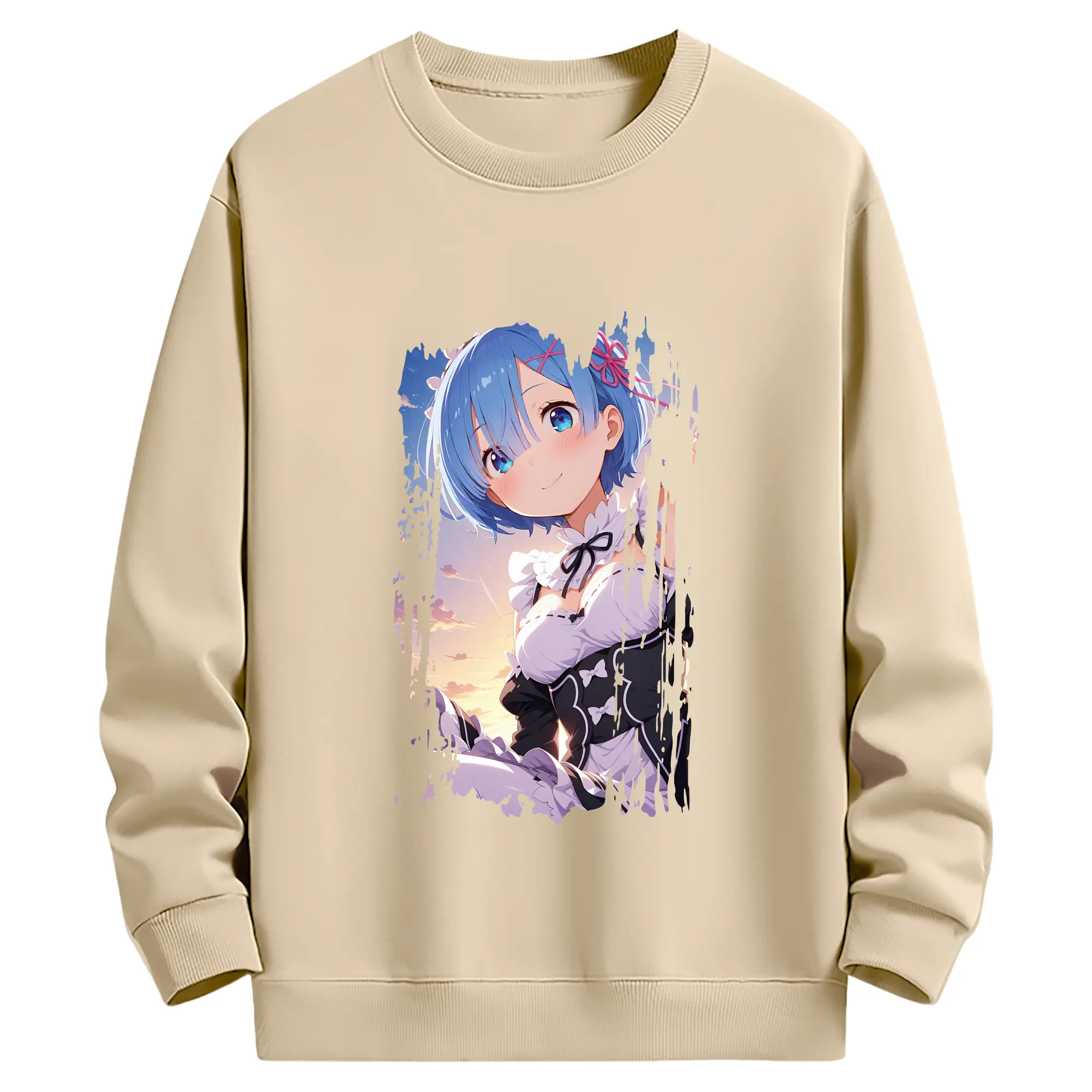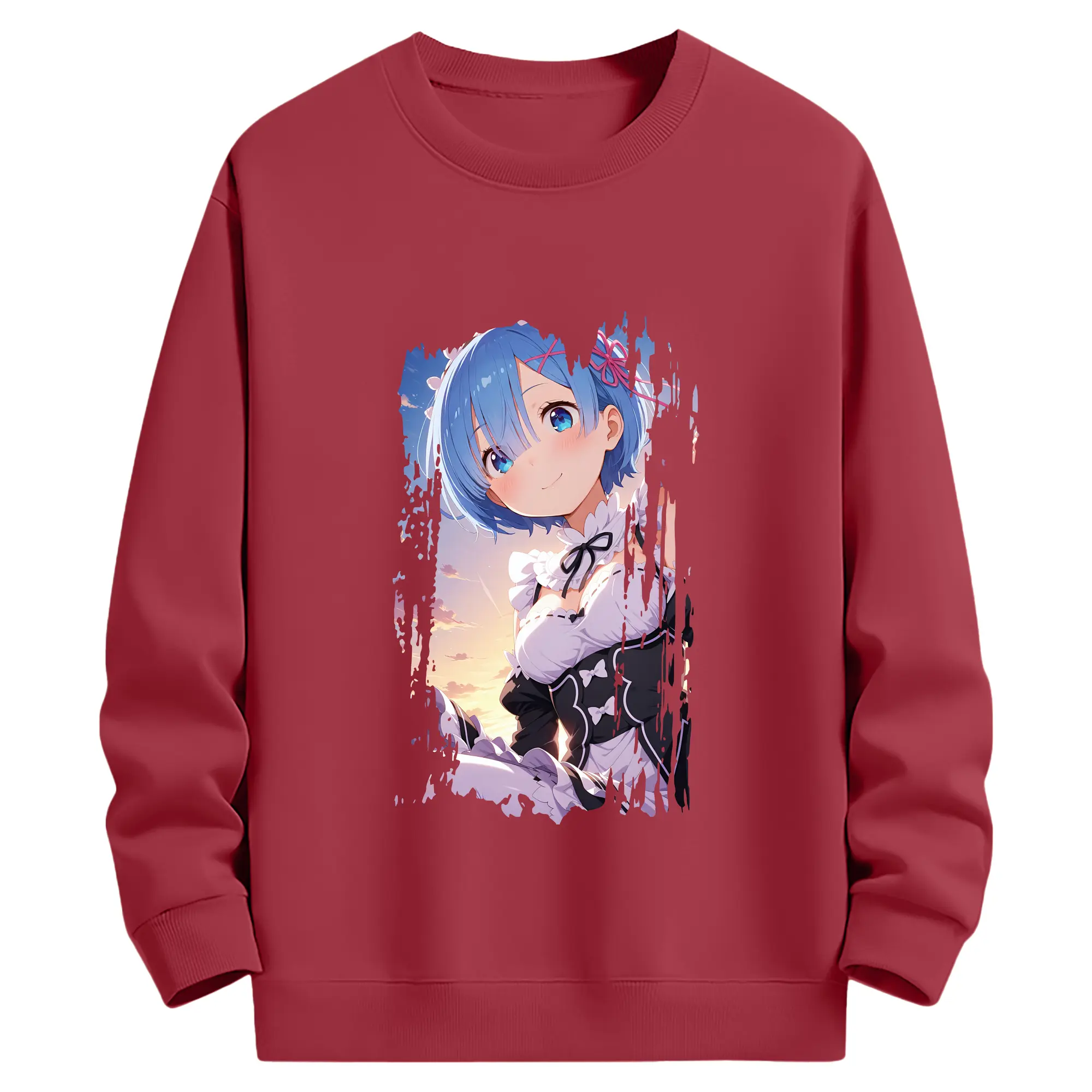 リゼロ グッズ レム - 薄手 クルーネック スウェット 裏毛260g · ポリエステル 春秋向け カジュアル 男女兼用 · トレーナー デイリー スポーツ 散歩に最適