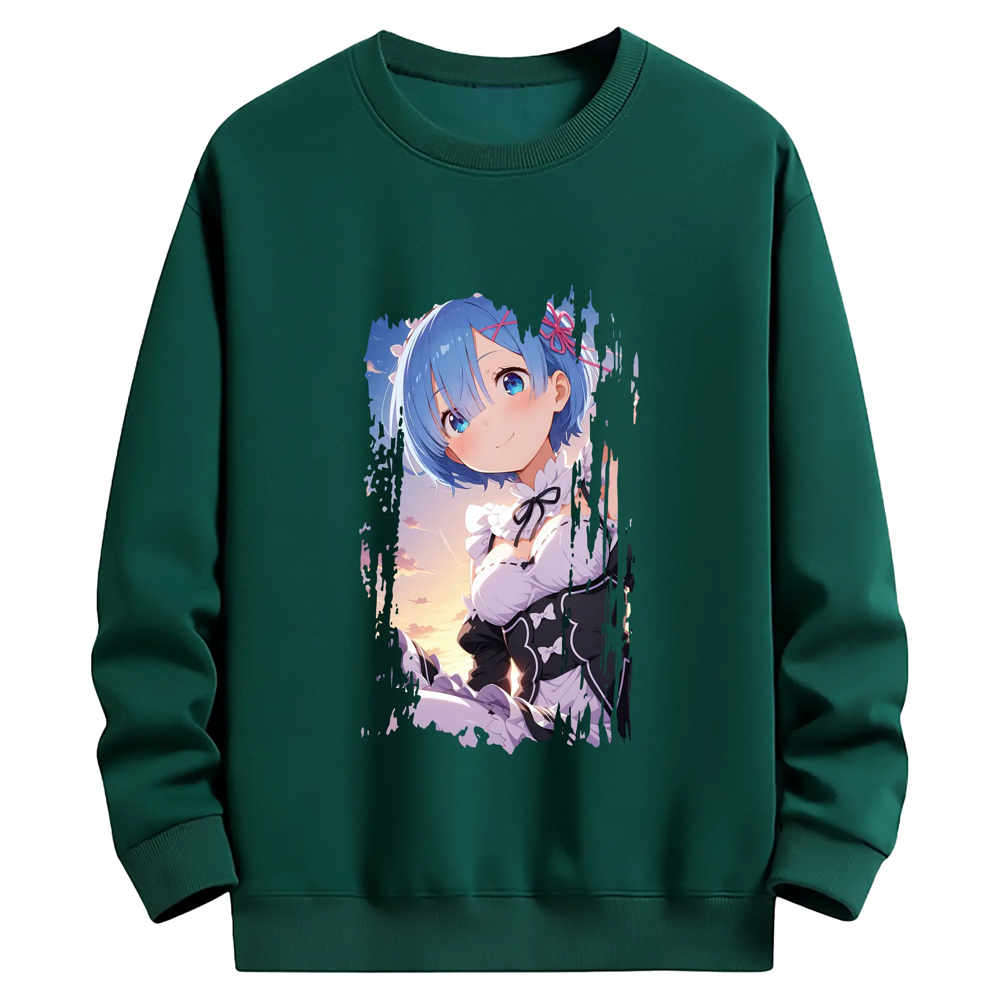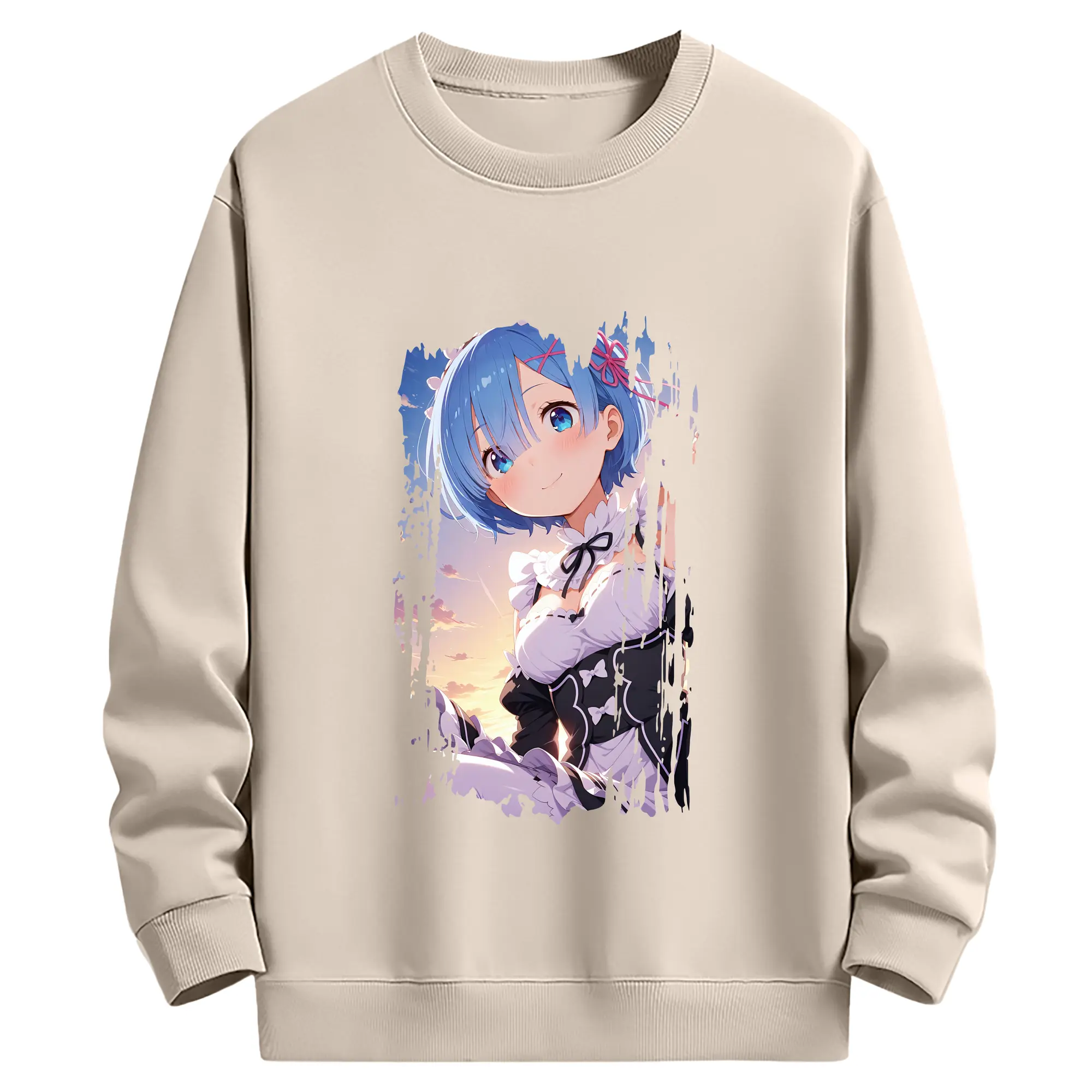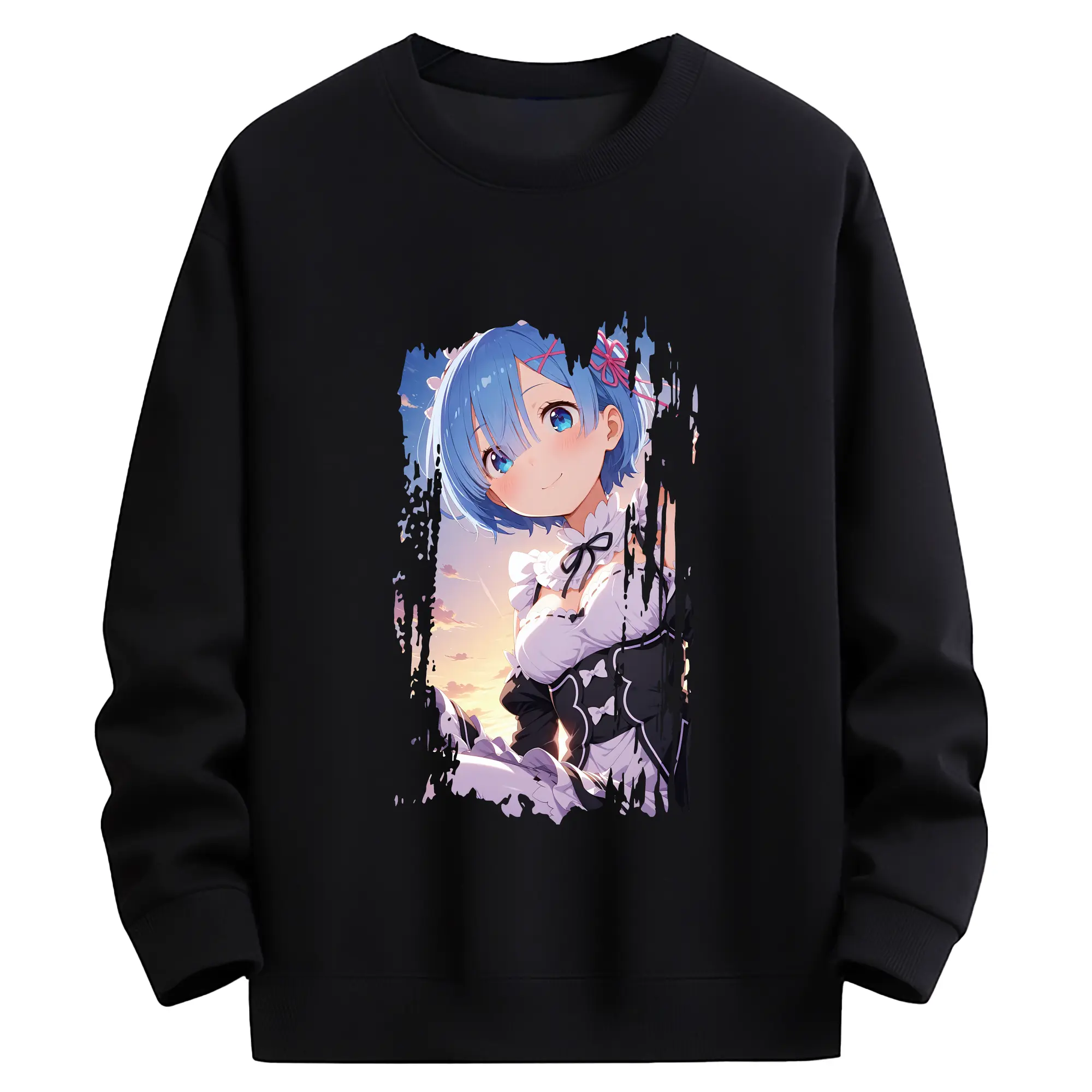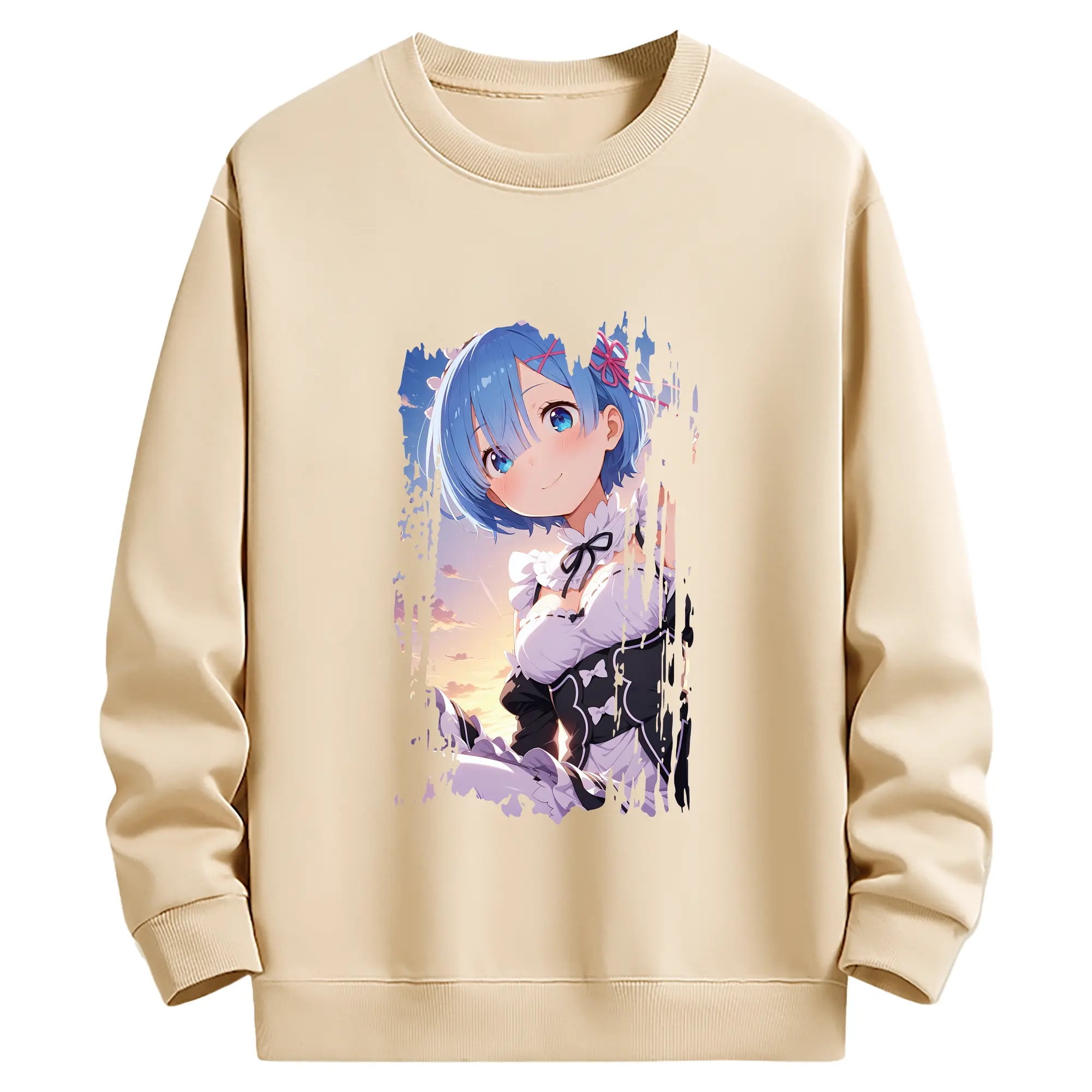 リゼロ グッズ レム - 薄手 クルーネック スウェット 裏毛260g · ポリエステル 春秋向け カジュアル 男女兼用 · トレーナー デイリー スポーツ 散歩に最適
