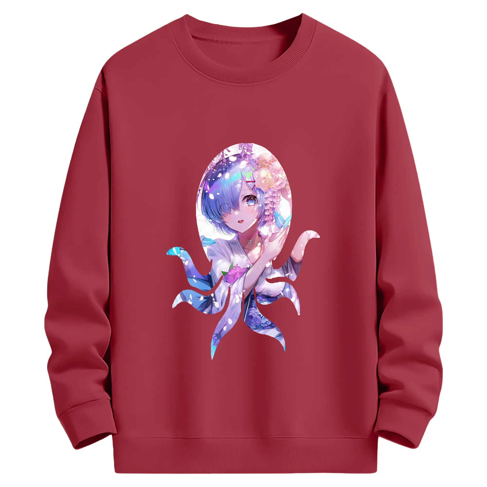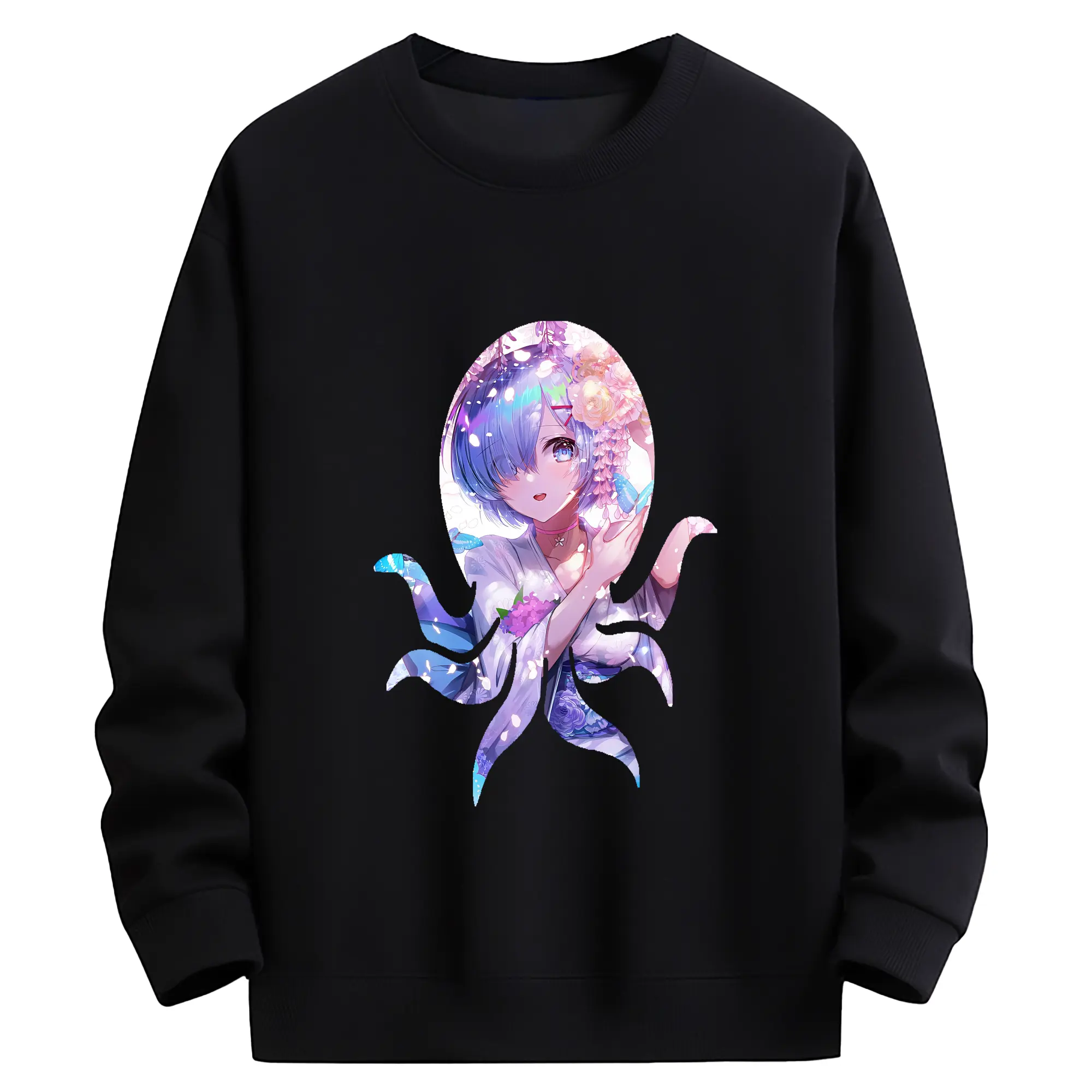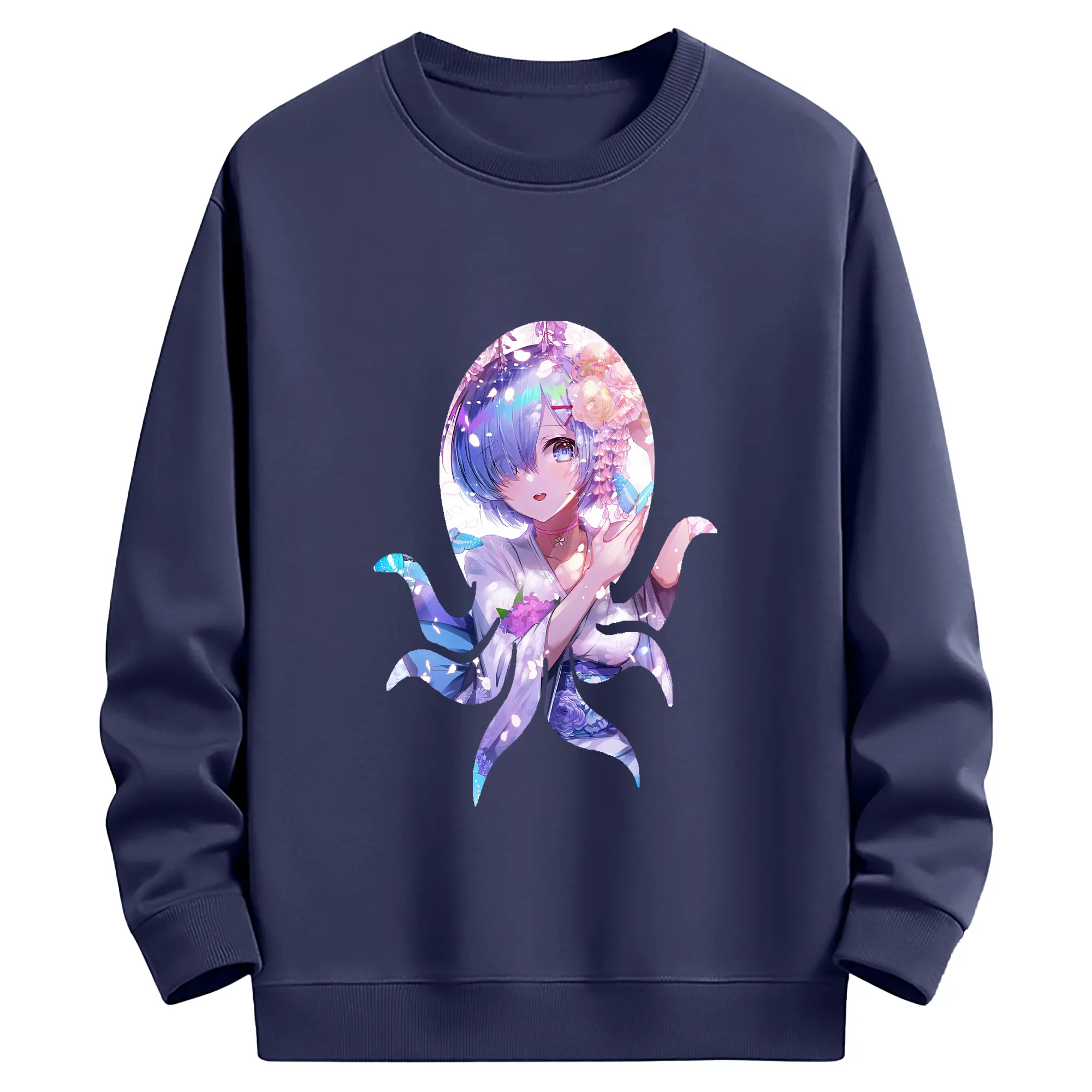 リゼロ グッズ レム - 薄手 クルーネック スウェット 裏毛260g · ポリエステル 春秋向け カジュアル 男女兼用 · トレーナー デイリー スポーツ 散歩に最適