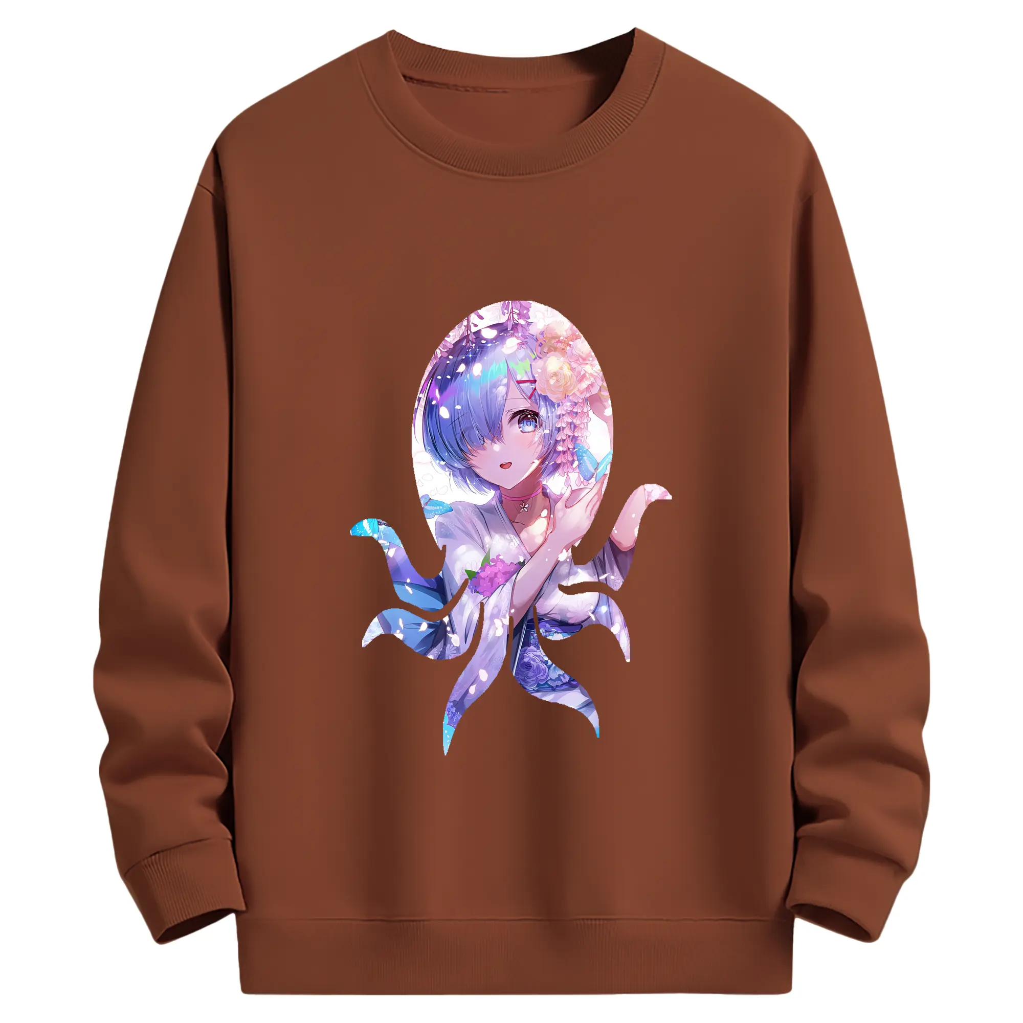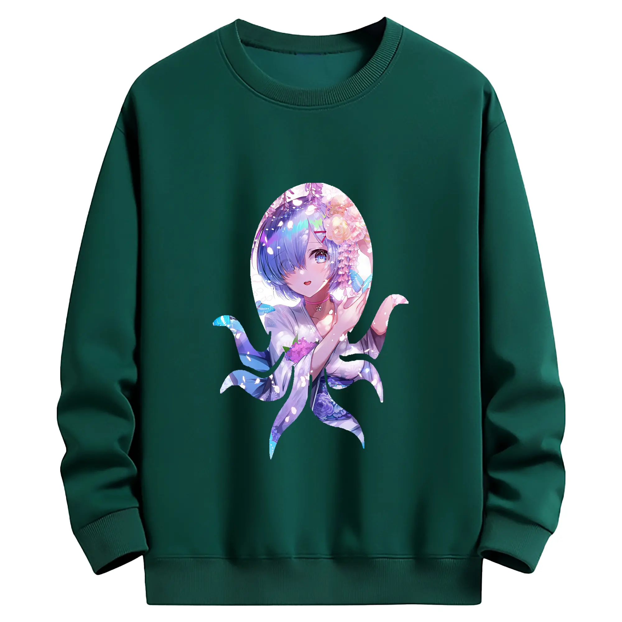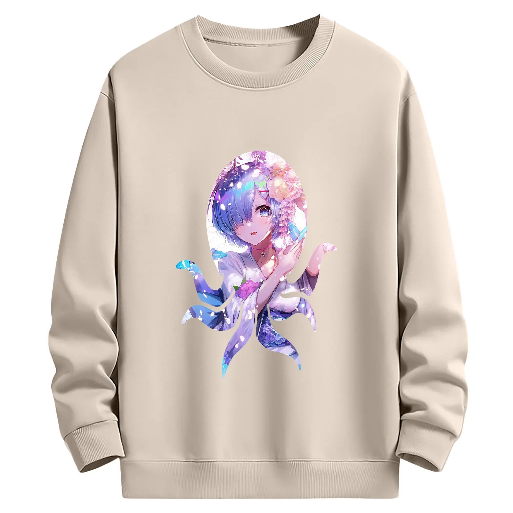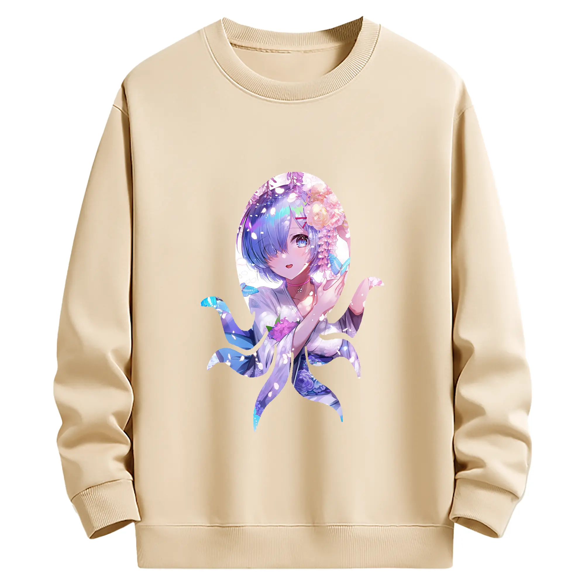リゼロ グッズ レム - 薄手 クルーネック スウェット 裏毛260g · ポリエステル 春秋向け カジュアル 男女兼用 · トレーナー デイリー スポーツ 散歩に最適