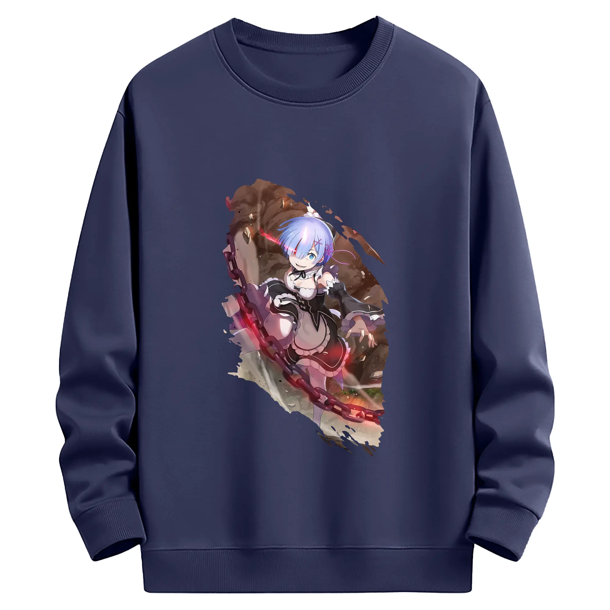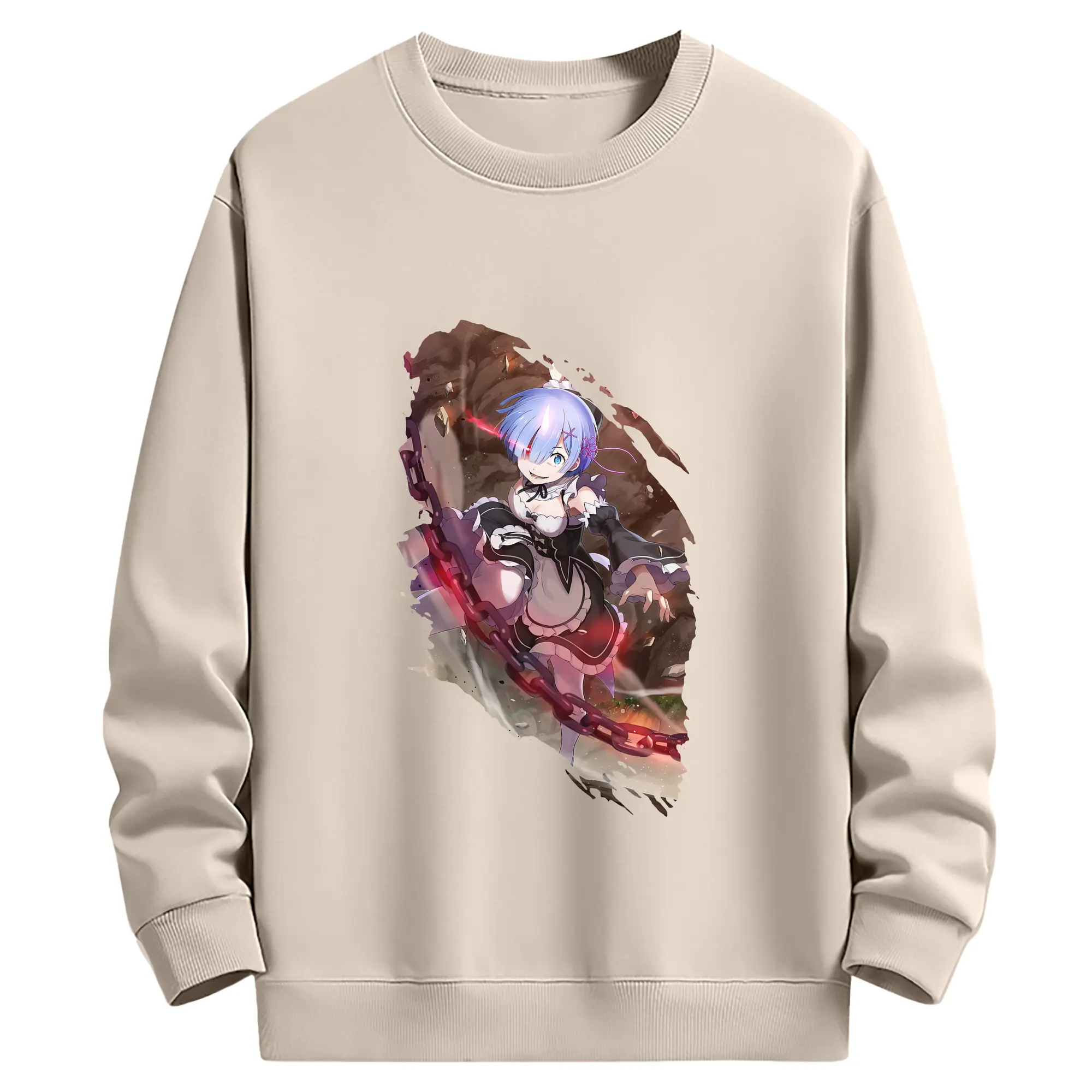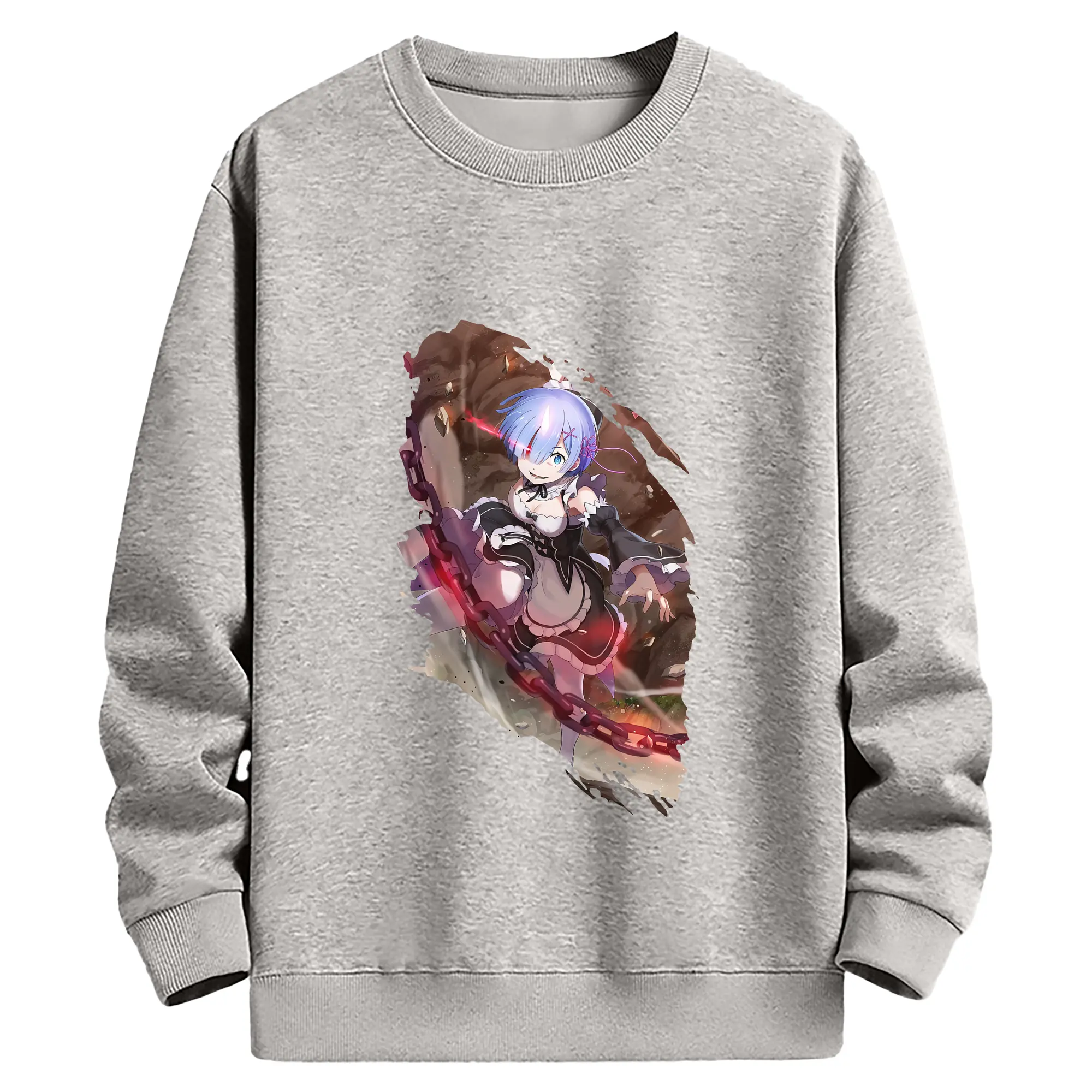 リゼロ グッズ レム - 薄手 クルーネック スウェット 裏毛260g · ポリエステル 春秋向け カジュアル 男女兼用 · トレーナー デイリー スポーツ 散歩に最適