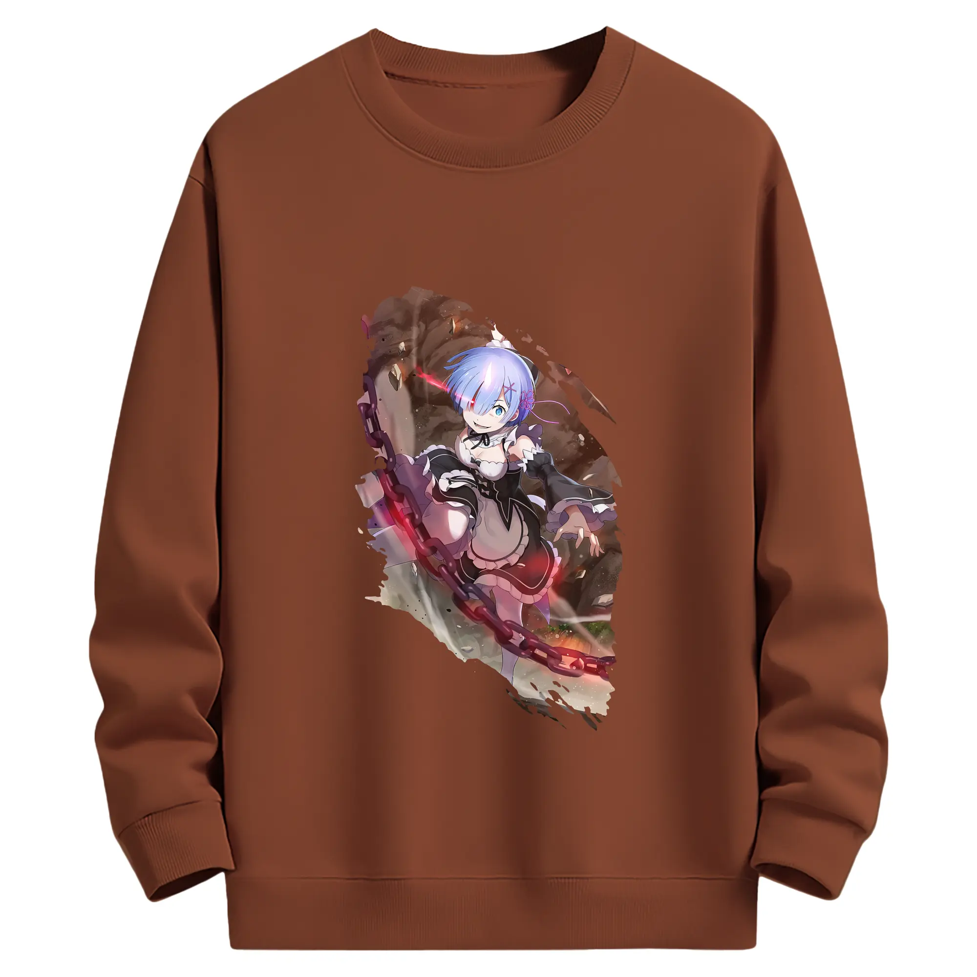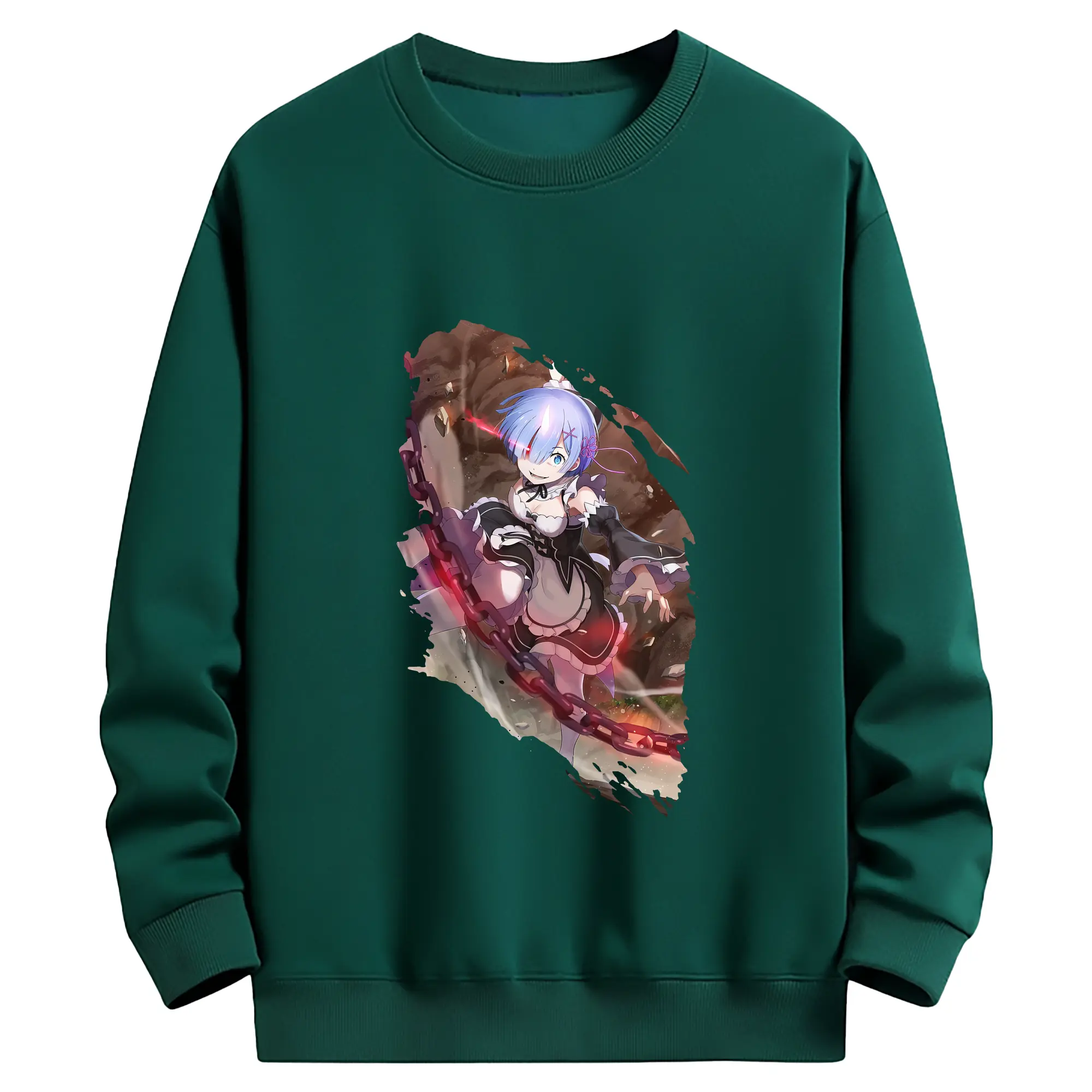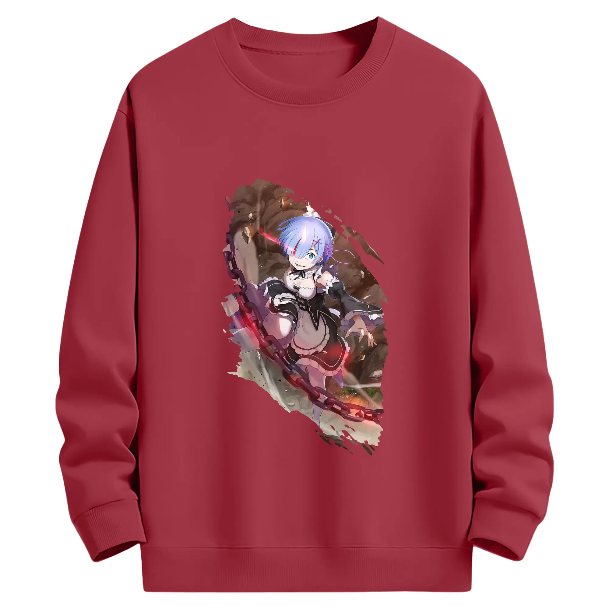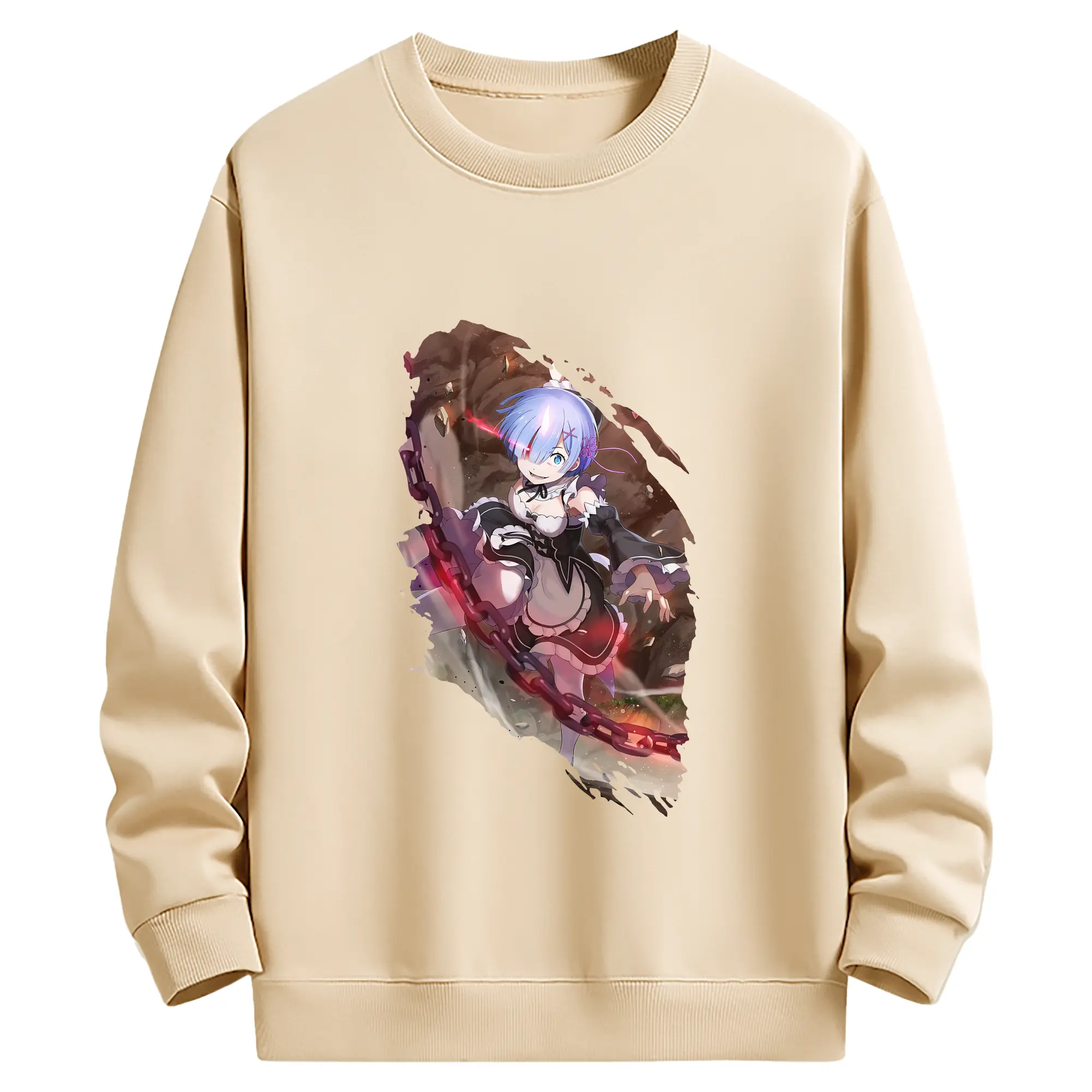 リゼロ グッズ レム - 薄手 クルーネック スウェット 裏毛260g · ポリエステル 春秋向け カジュアル 男女兼用 · トレーナー デイリー スポーツ 散歩に最適