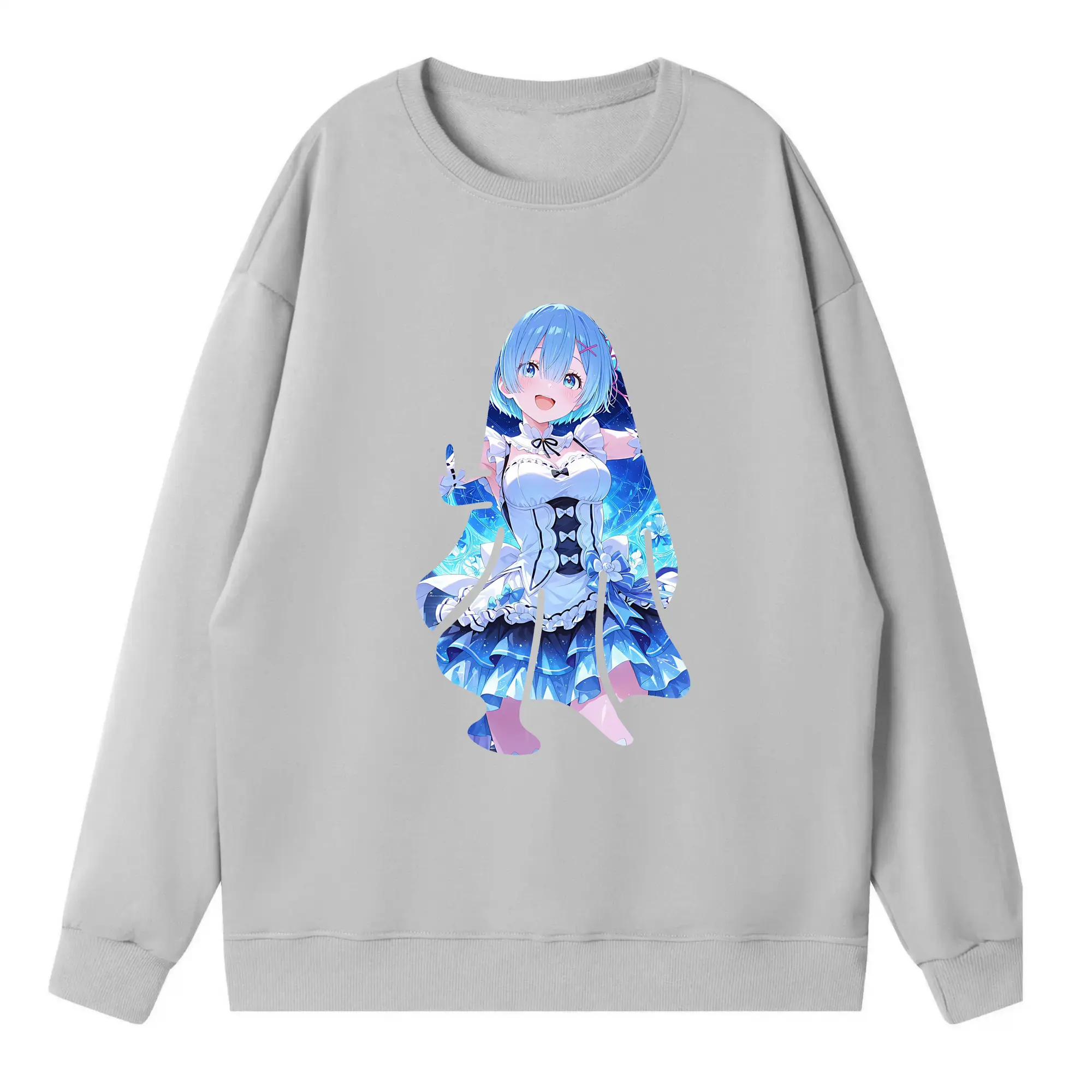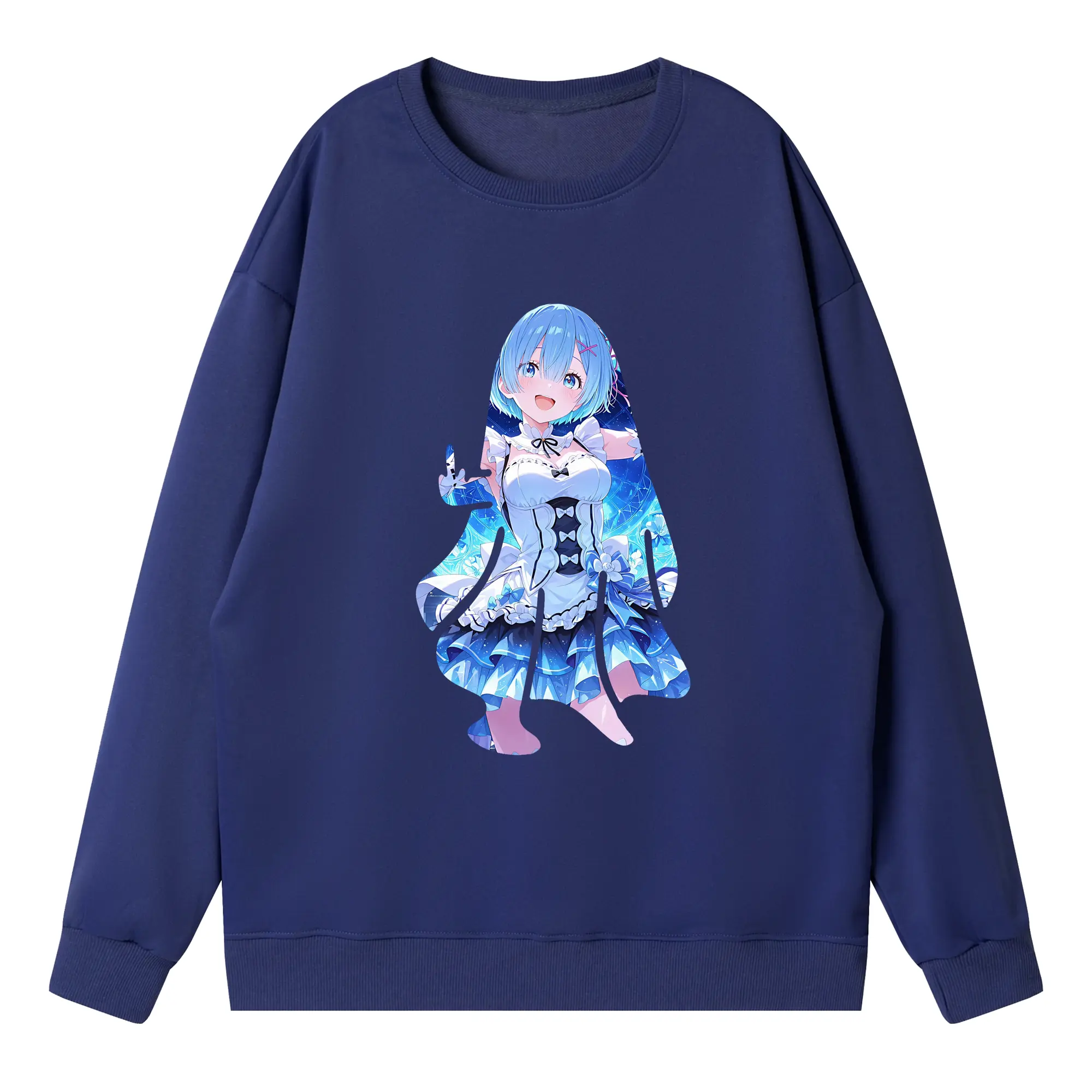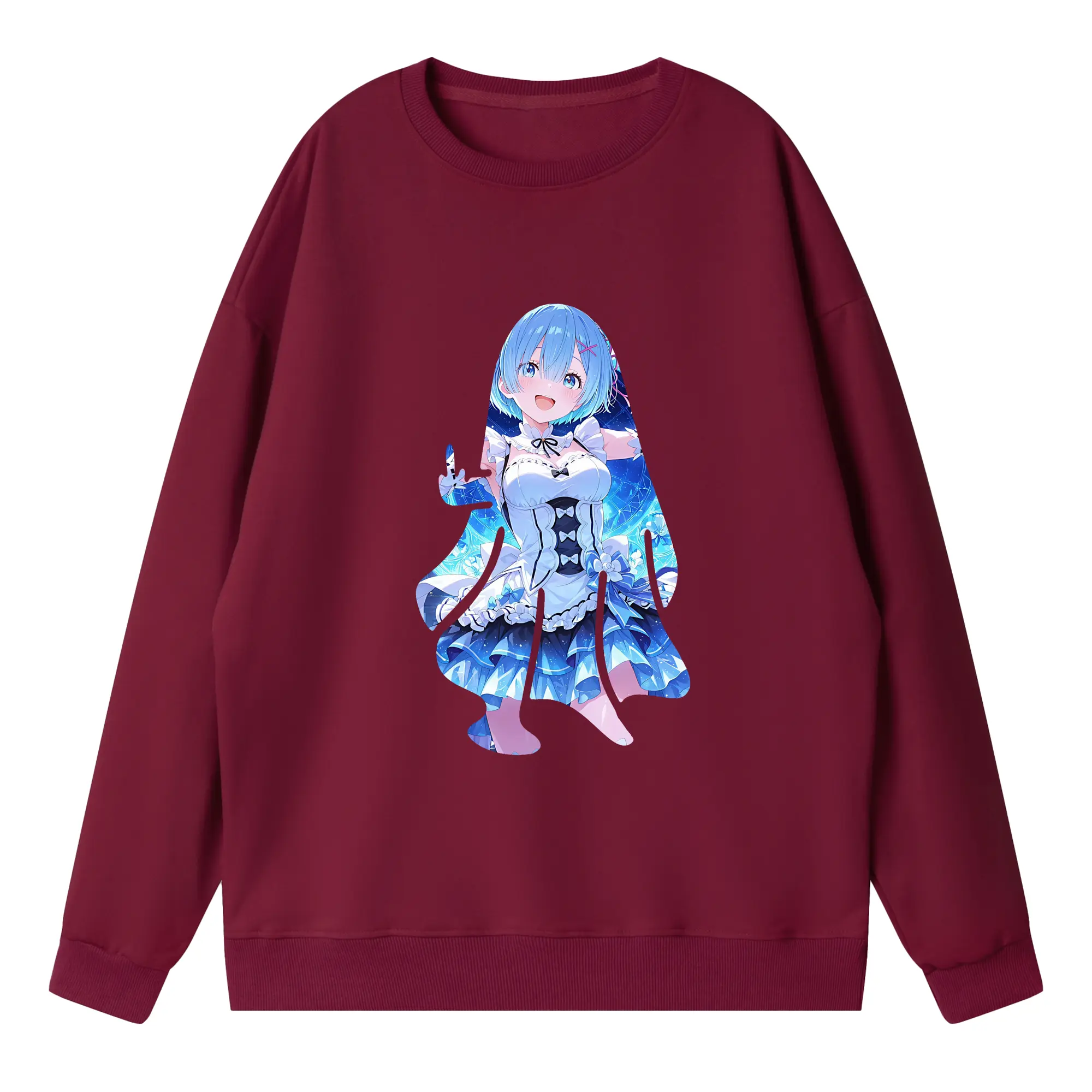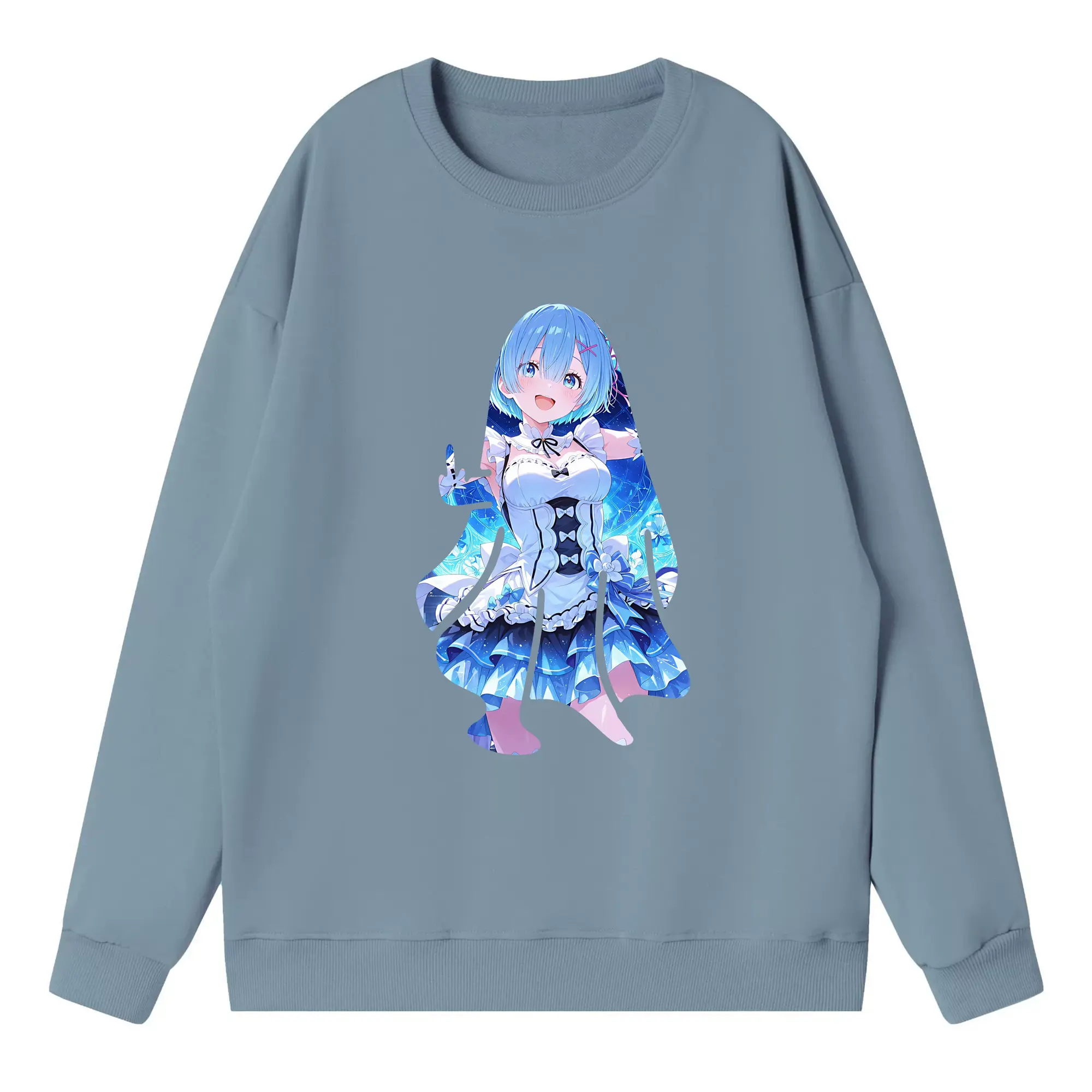 リゼロ グッズ レム - 高品質 クルーネック スウェット ・ コットン59% ポリエステル41% ・ ユニセックス 長袖 トレーナー ・ カジュアル デイリー スポーツ 散歩用