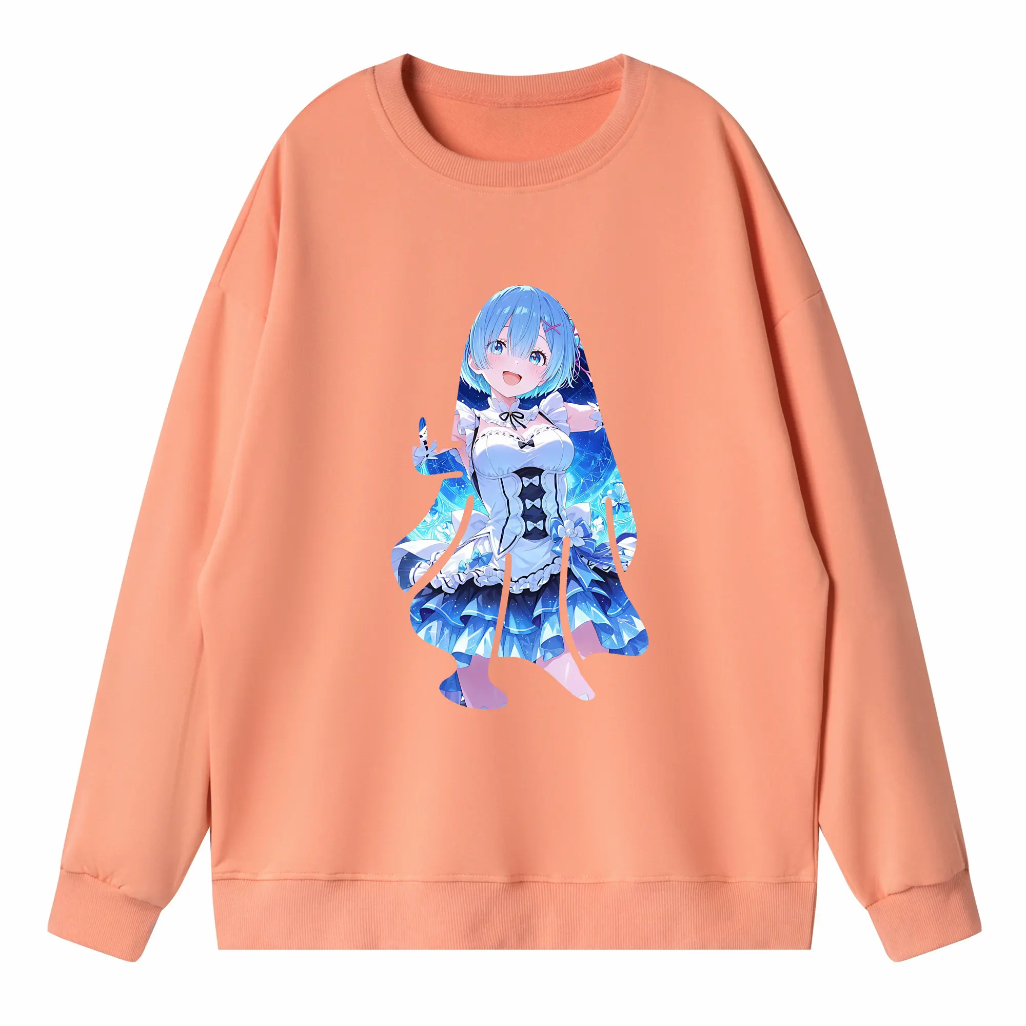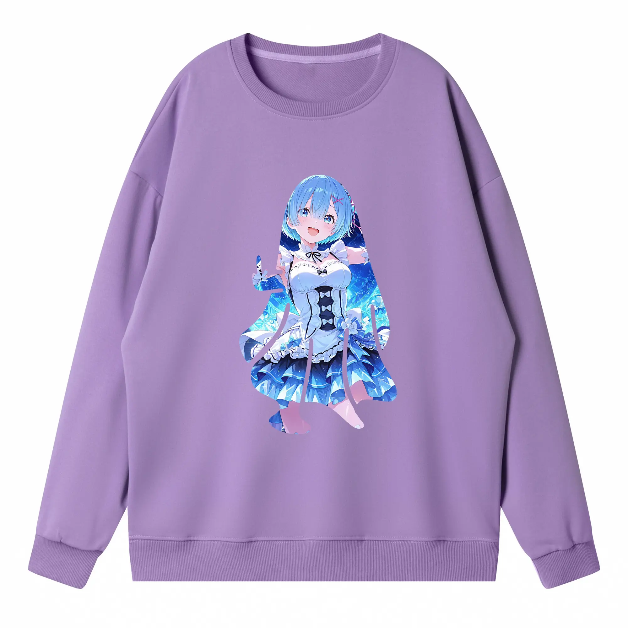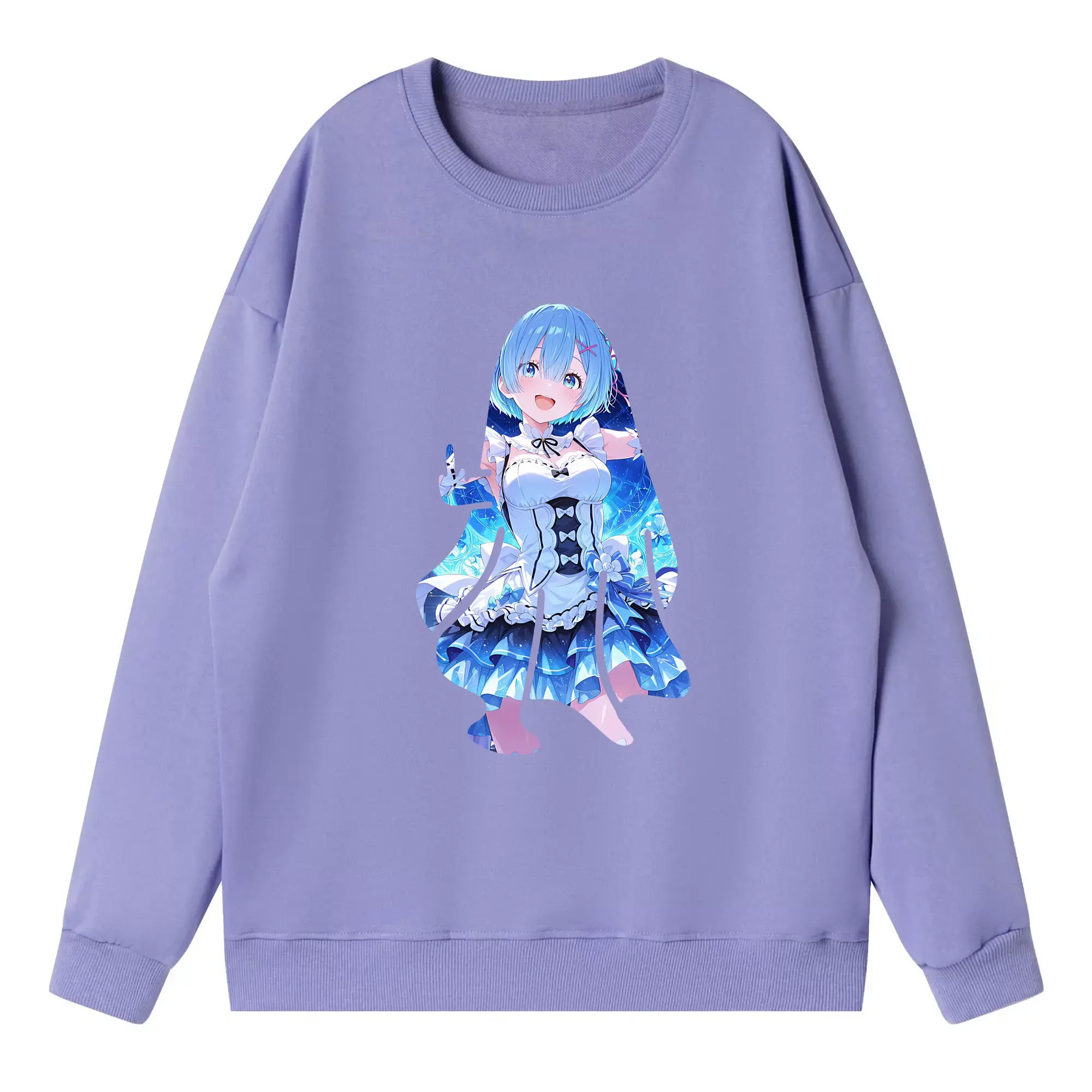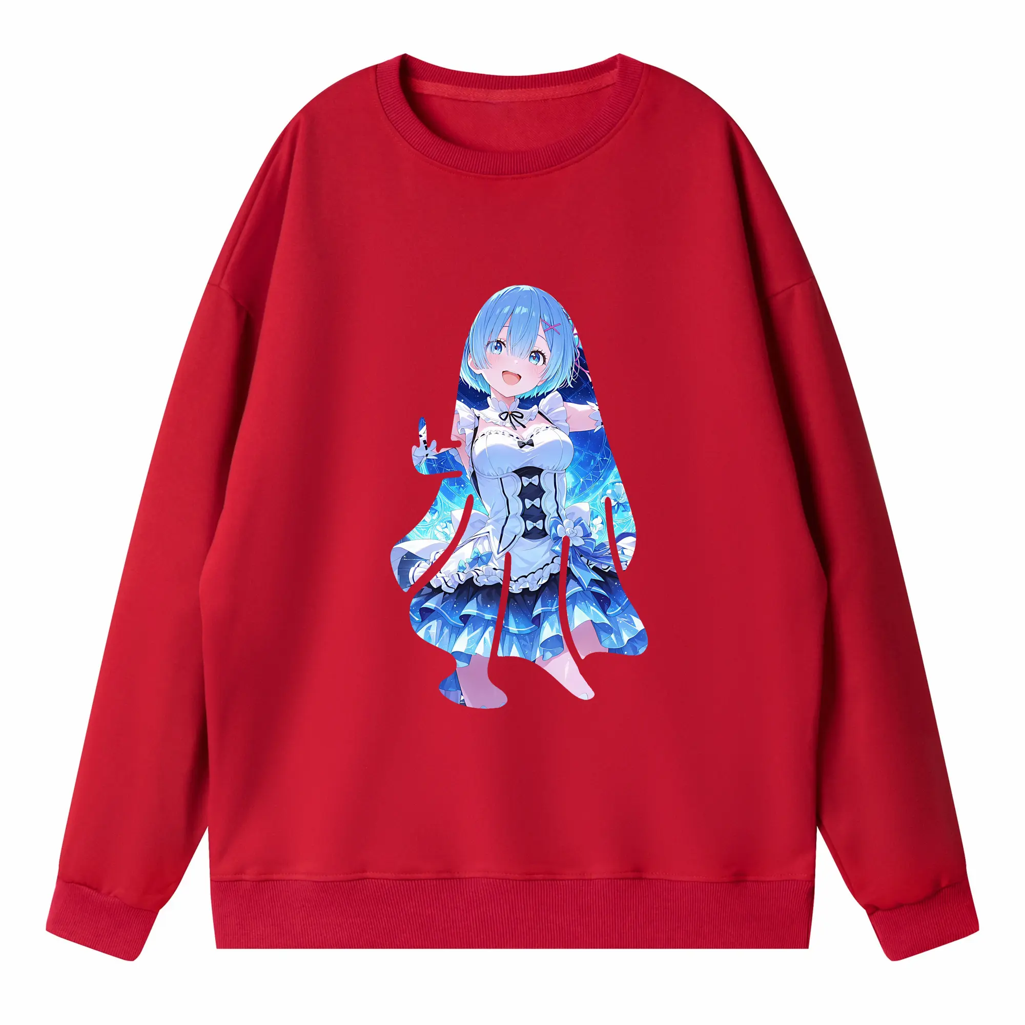 リゼロ グッズ レム - 高品質 クルーネック スウェット ・ コットン59% ポリエステル41% ・ ユニセックス 長袖 トレーナー ・ カジュアル デイリー スポーツ 散歩用