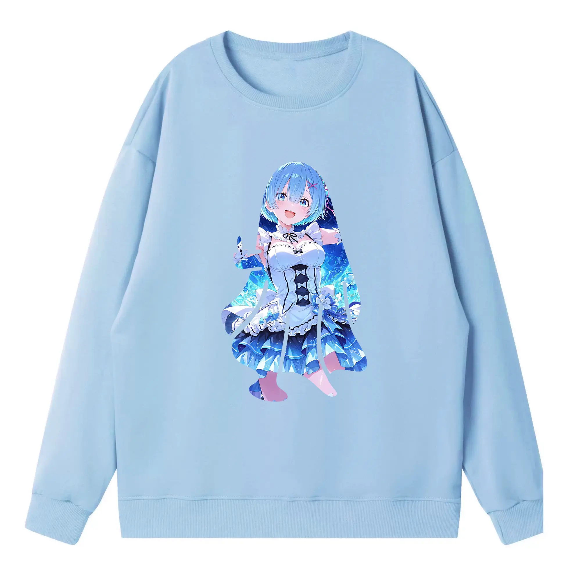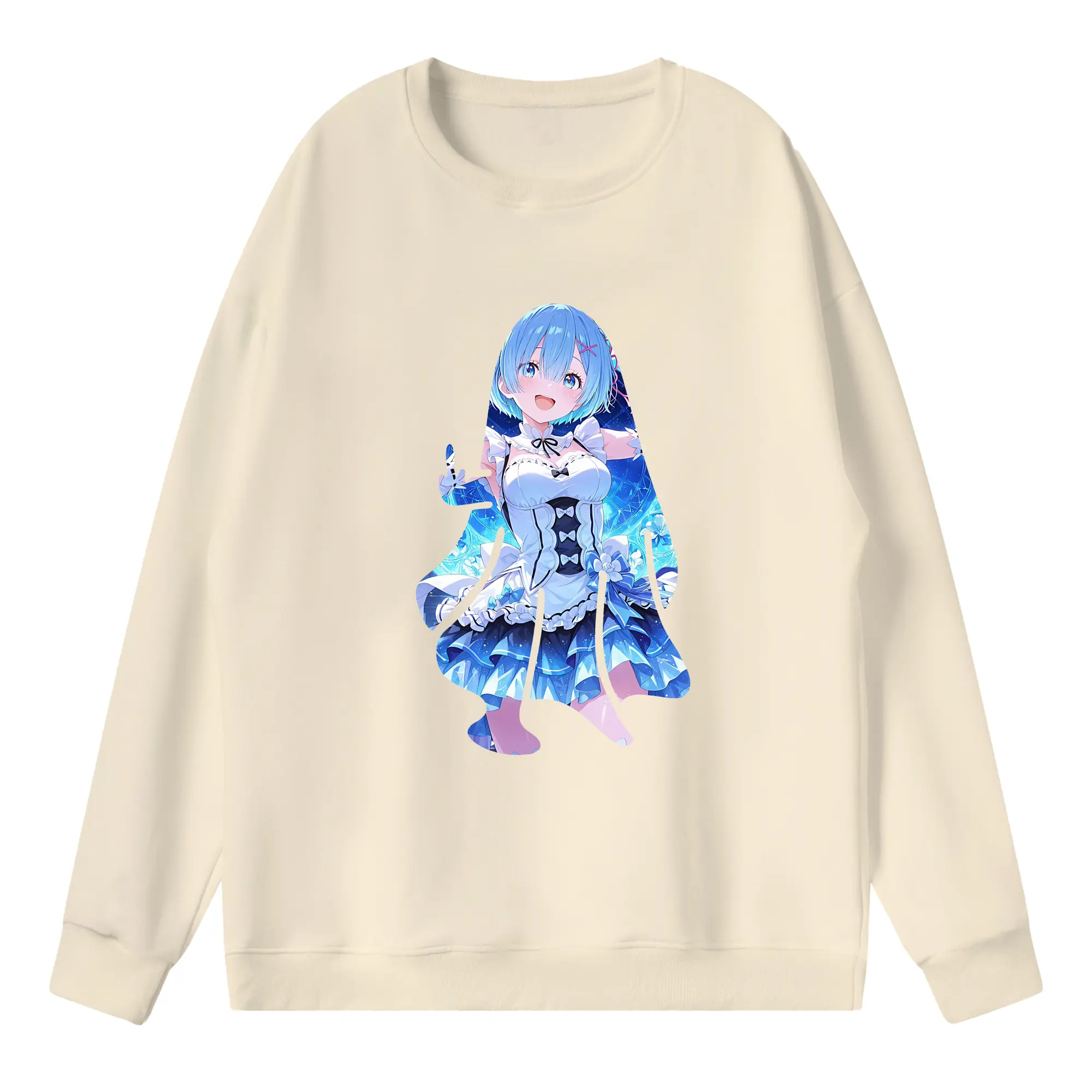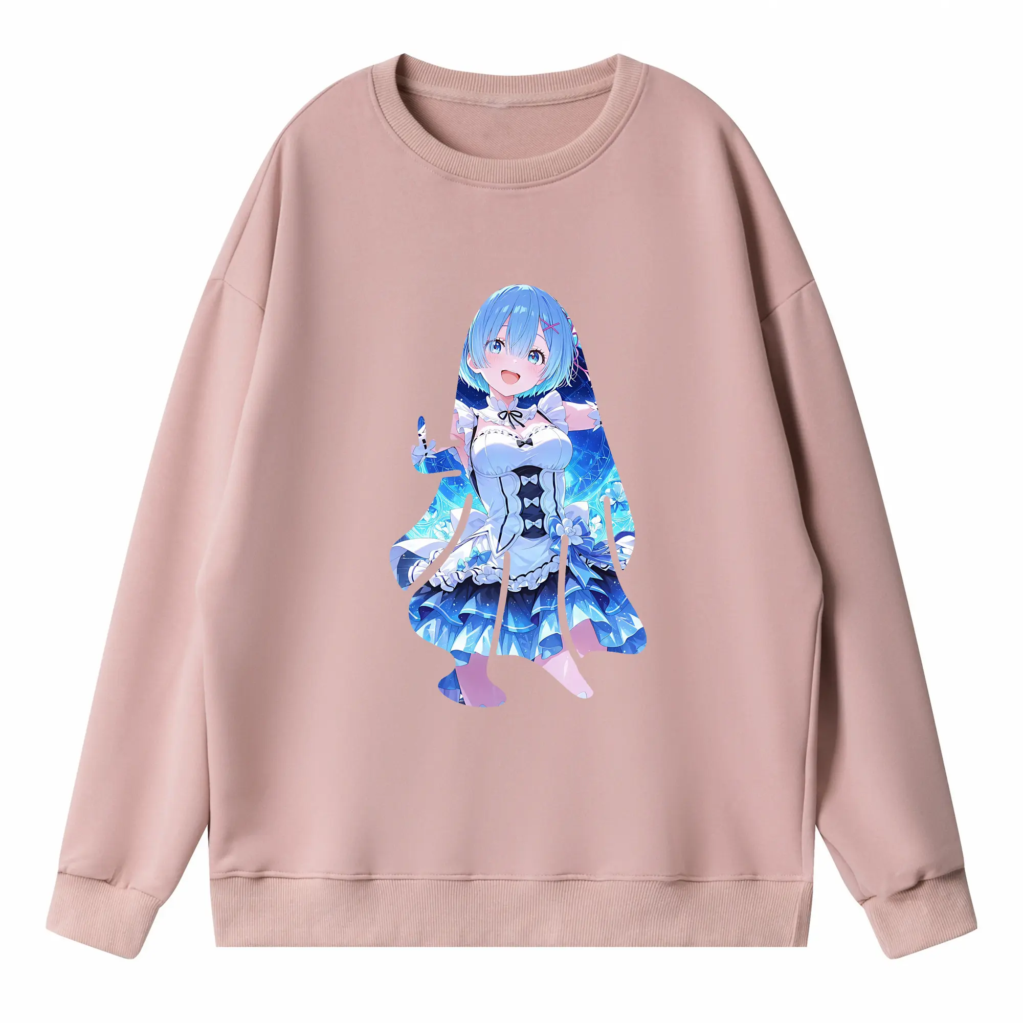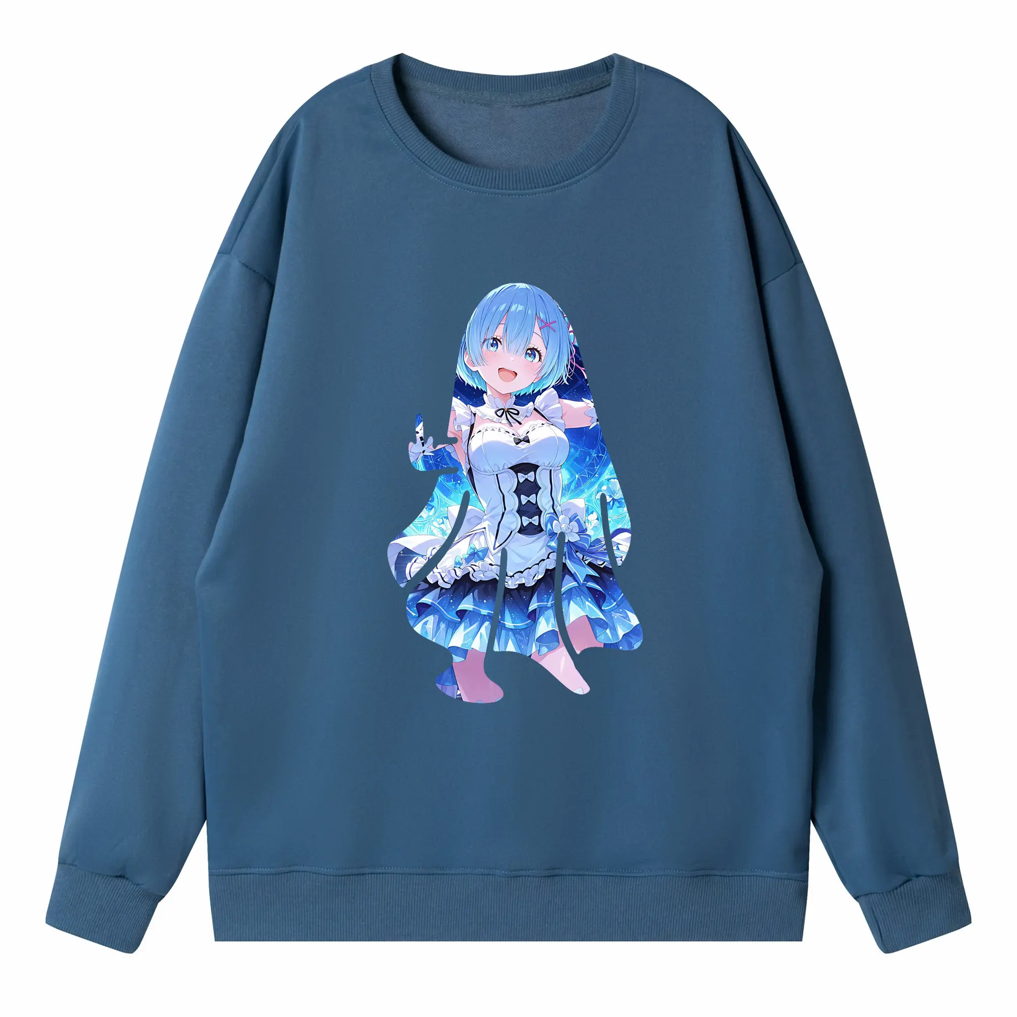 リゼロ グッズ レム - 高品質 クルーネック スウェット ・ コットン59% ポリエステル41% ・ ユニセックス 長袖 トレーナー ・ カジュアル デイリー スポーツ 散歩用
