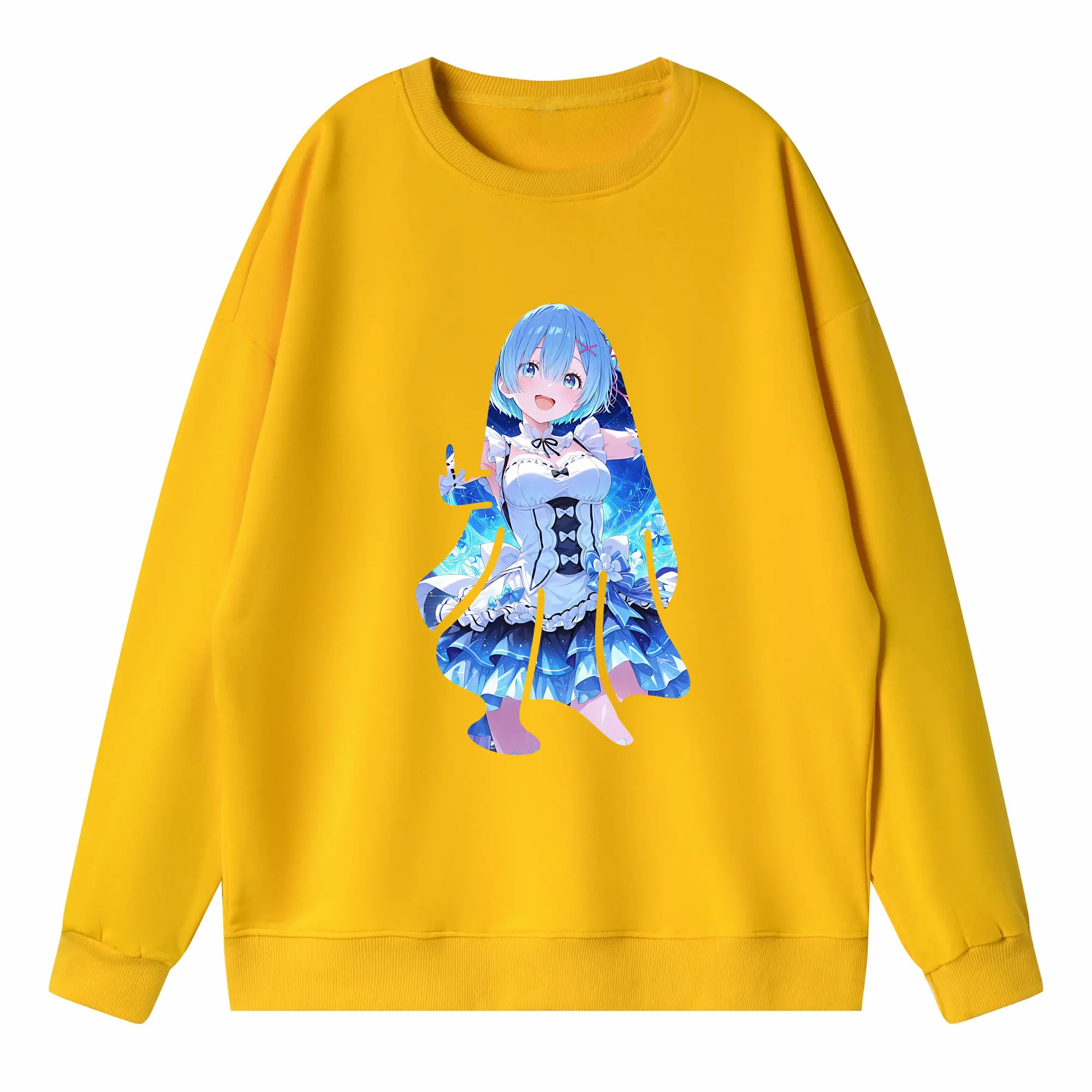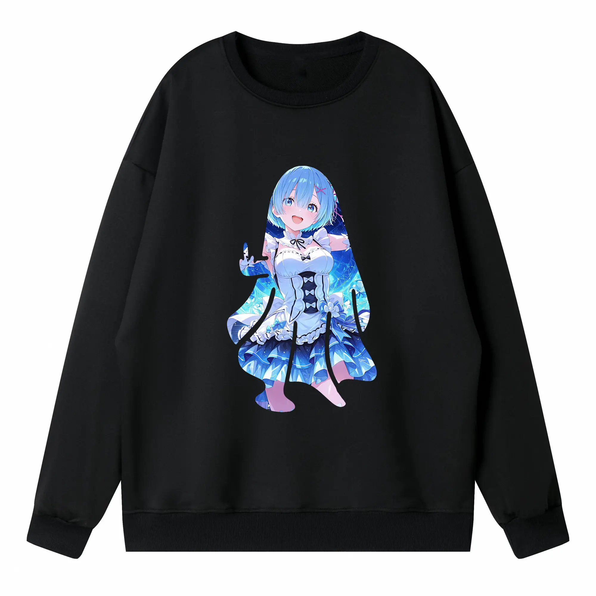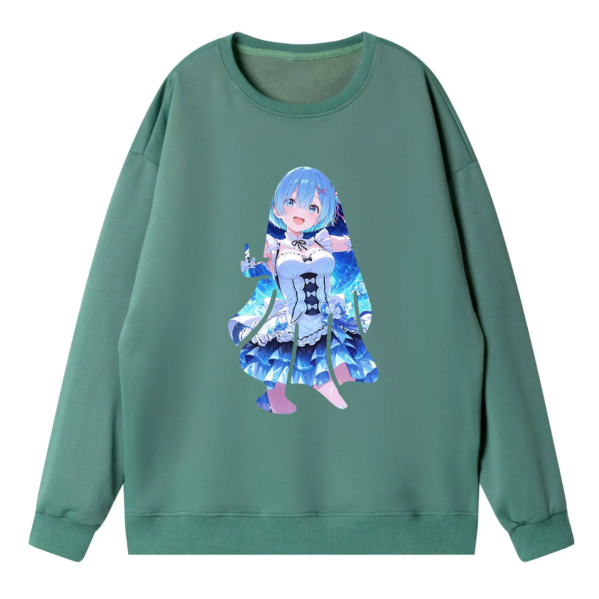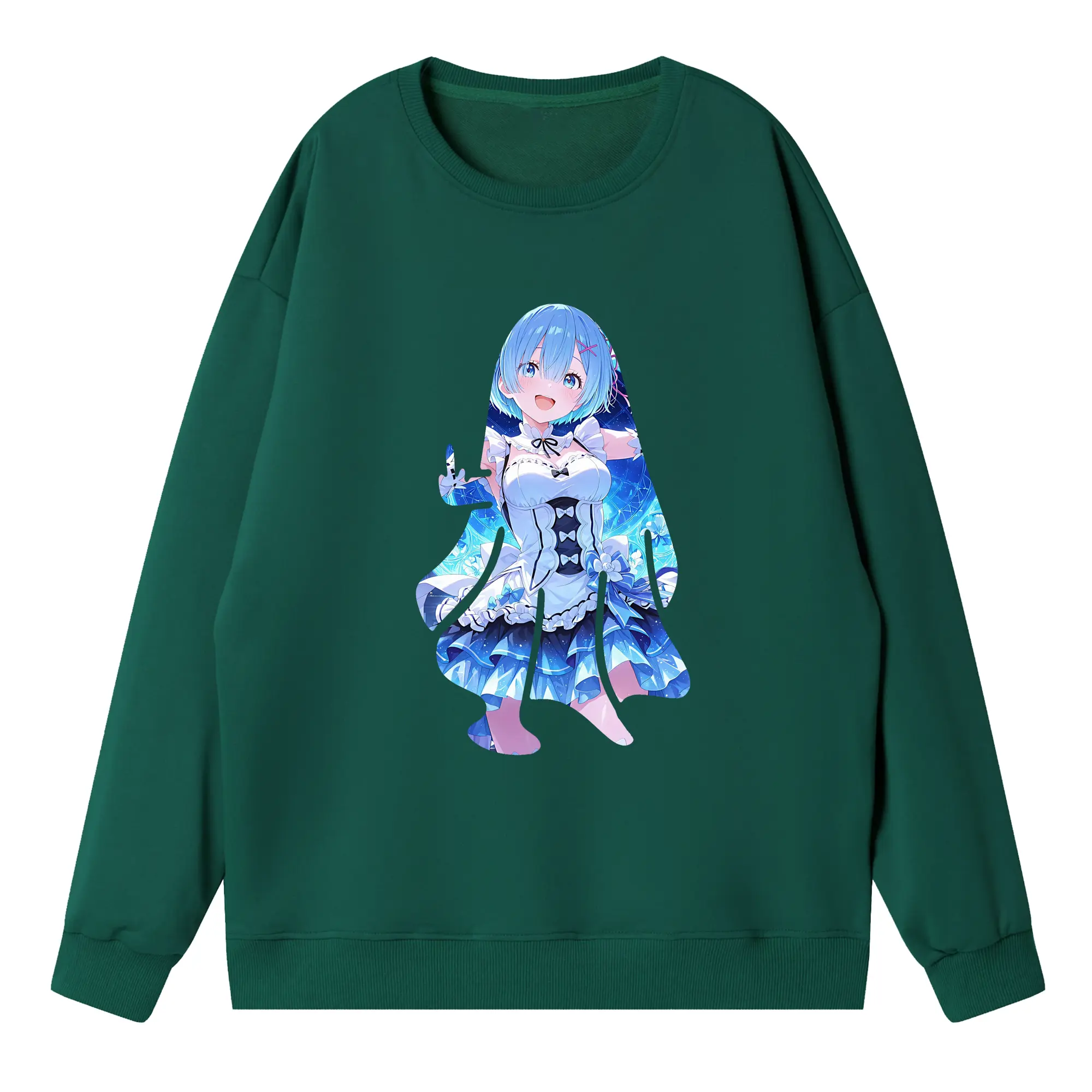 リゼロ グッズ レム - 高品質 クルーネック スウェット ・ コットン59% ポリエステル41% ・ ユニセックス 長袖 トレーナー ・ カジュアル デイリー スポーツ 散歩用