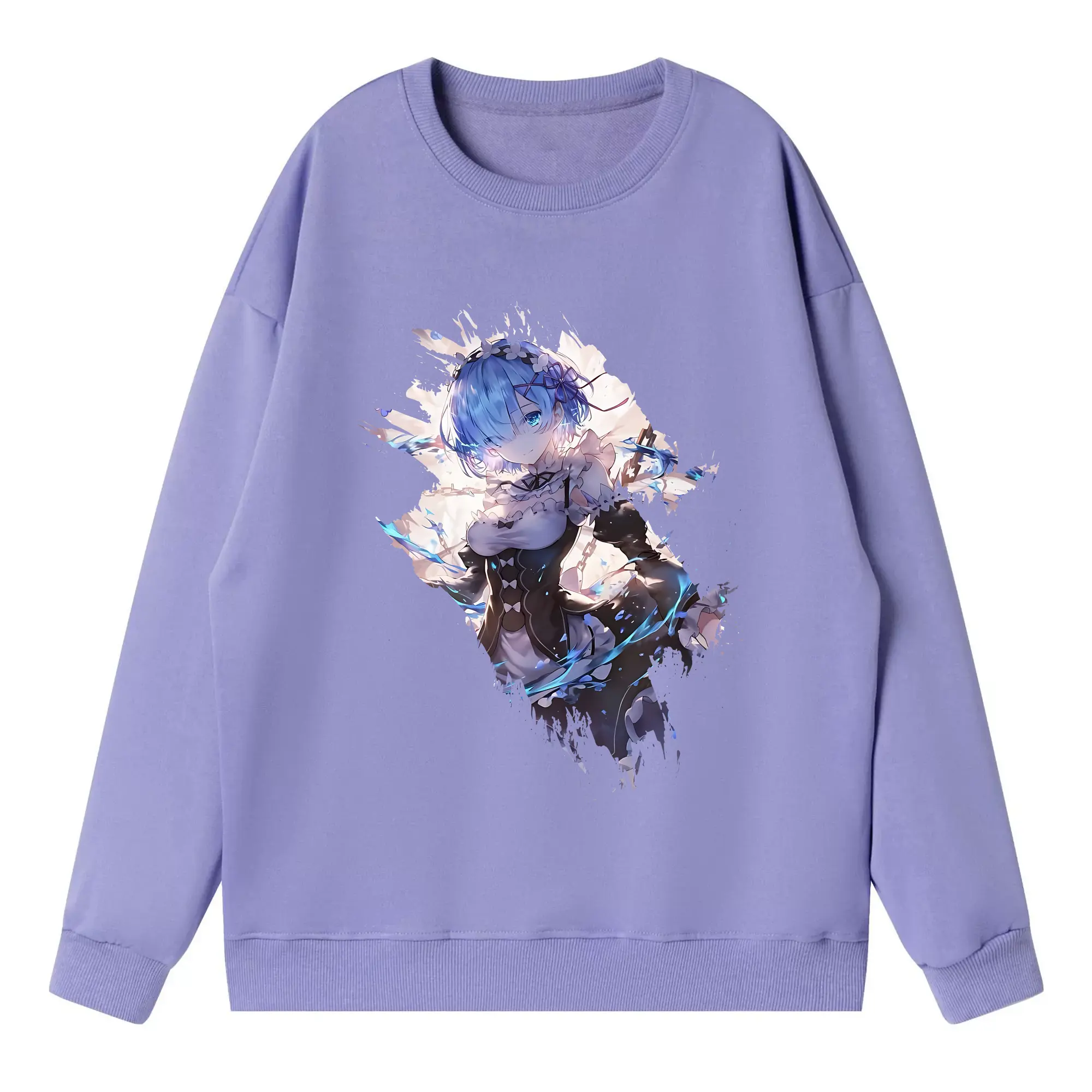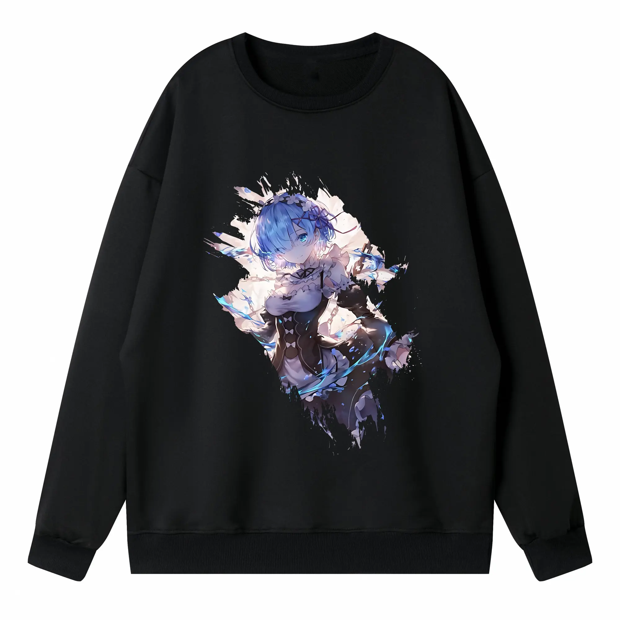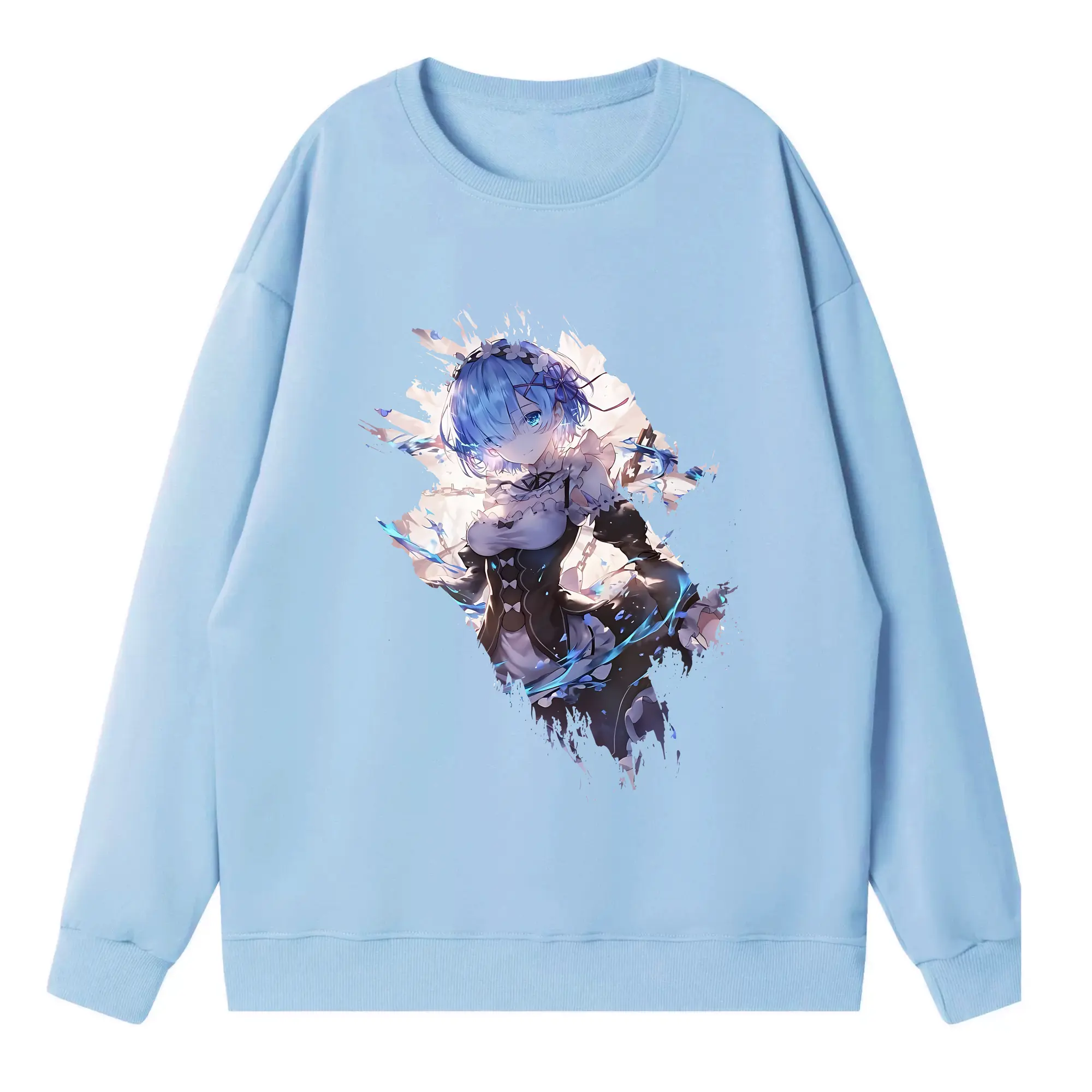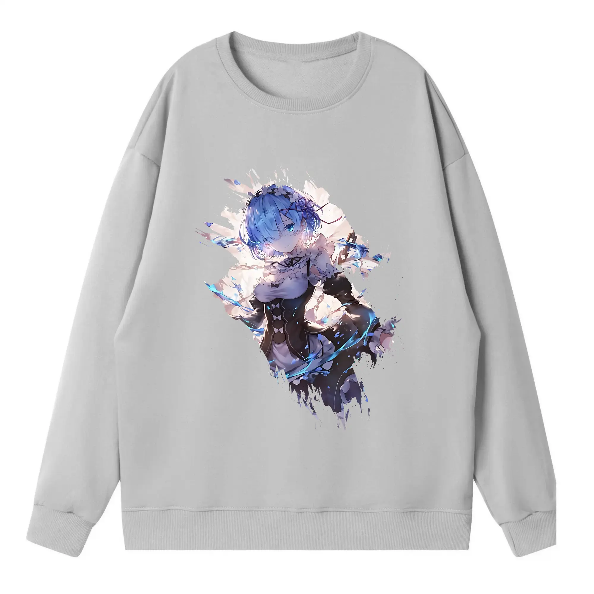 リゼロ グッズ レム - 高品質 クルーネック スウェット ・ コットン59% ポリエステル41% ・ ユニセックス 長袖 トレーナー ・ カジュアル デイリー スポーツ 散歩用