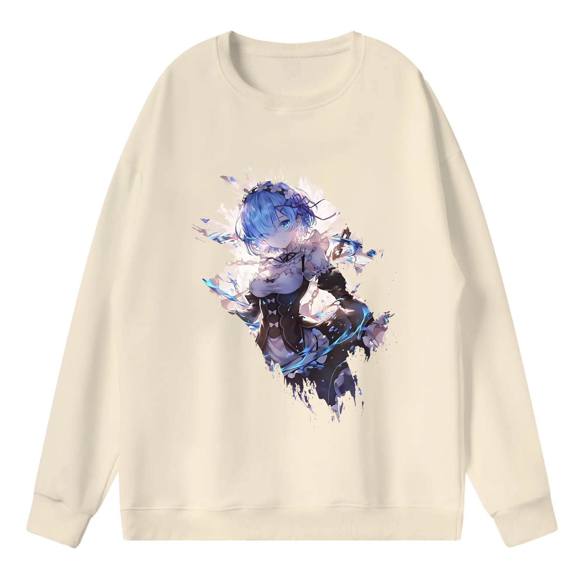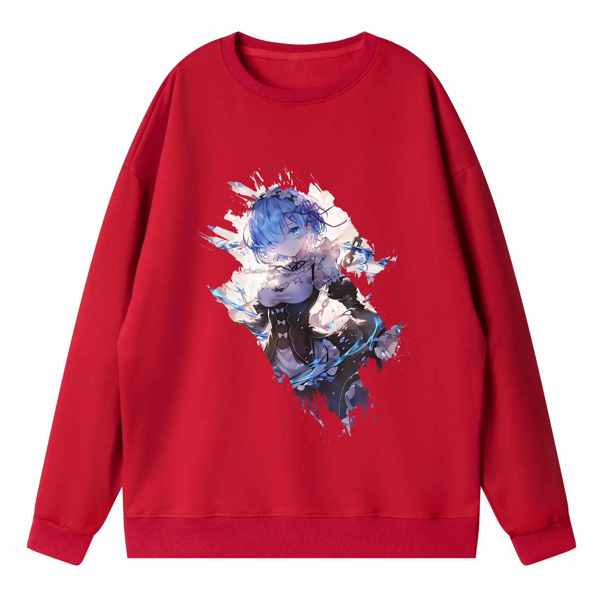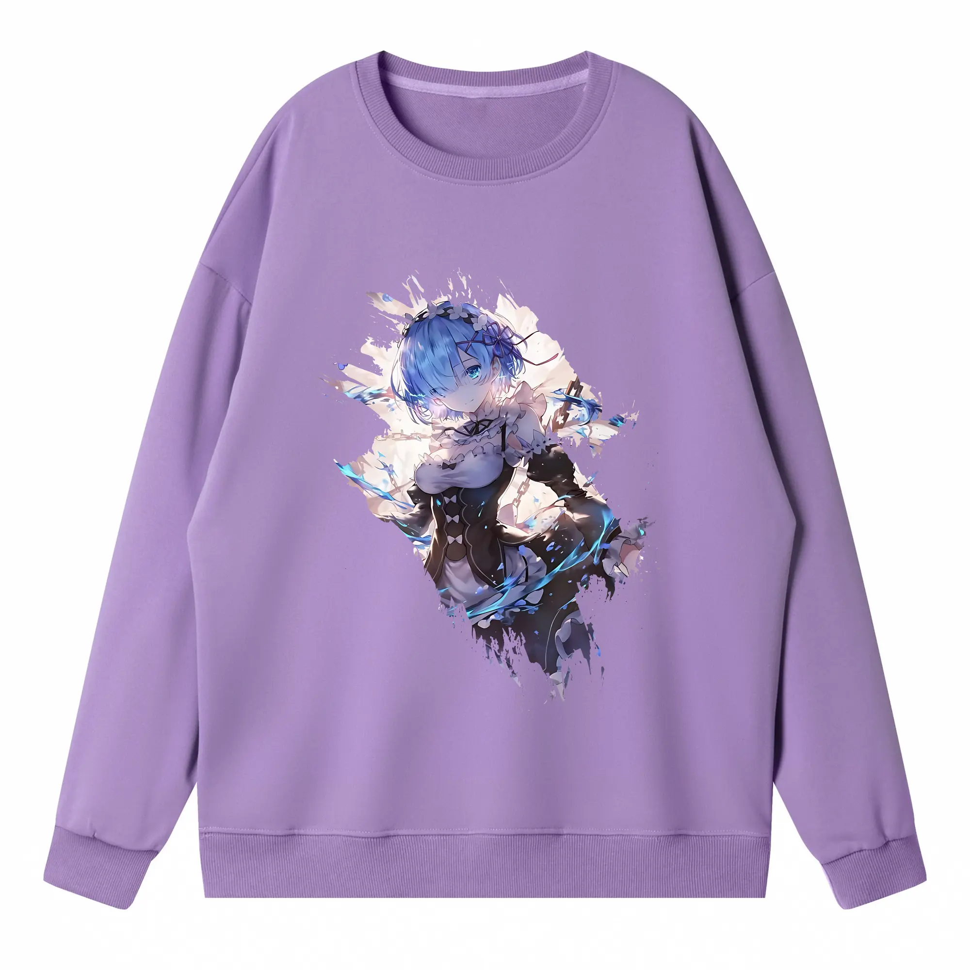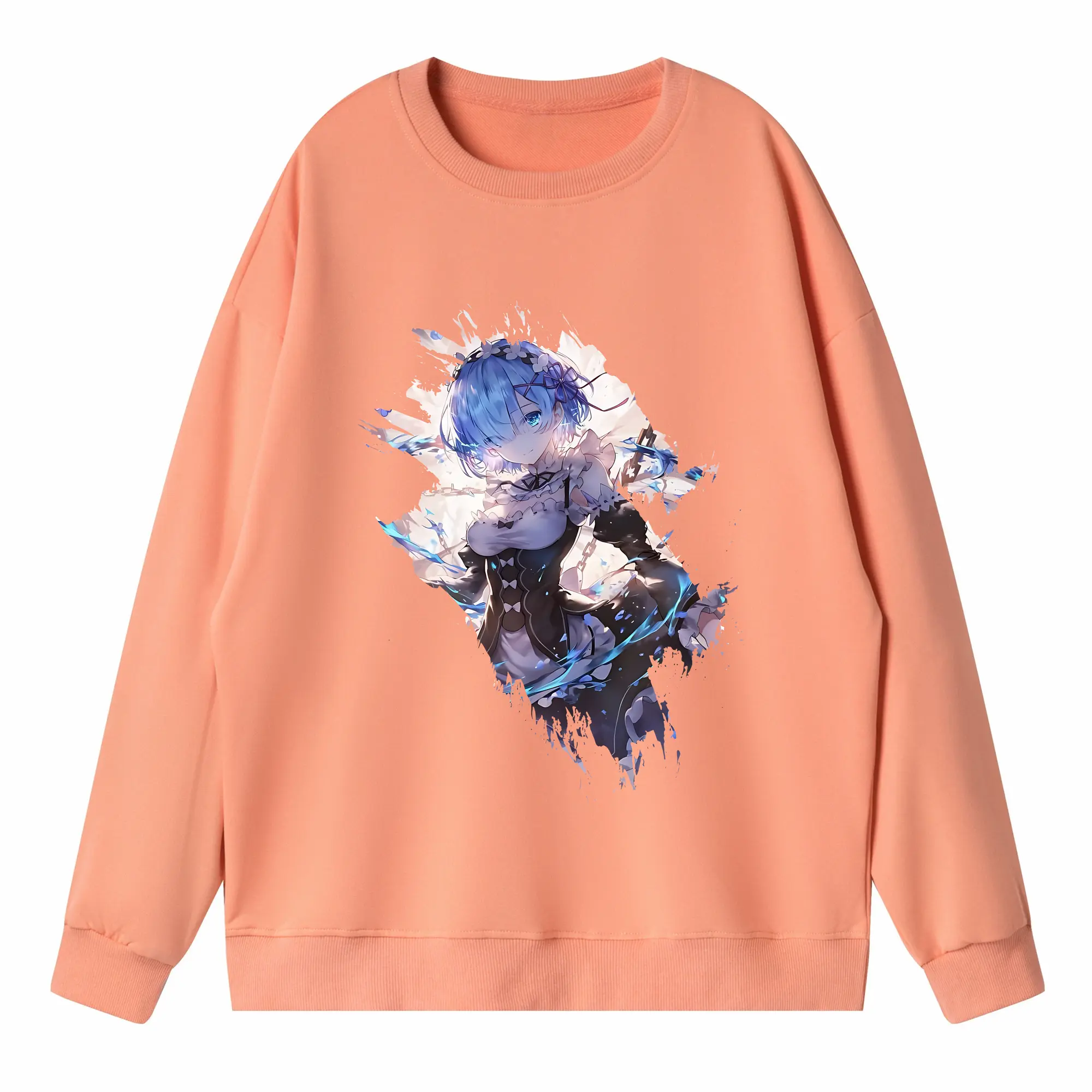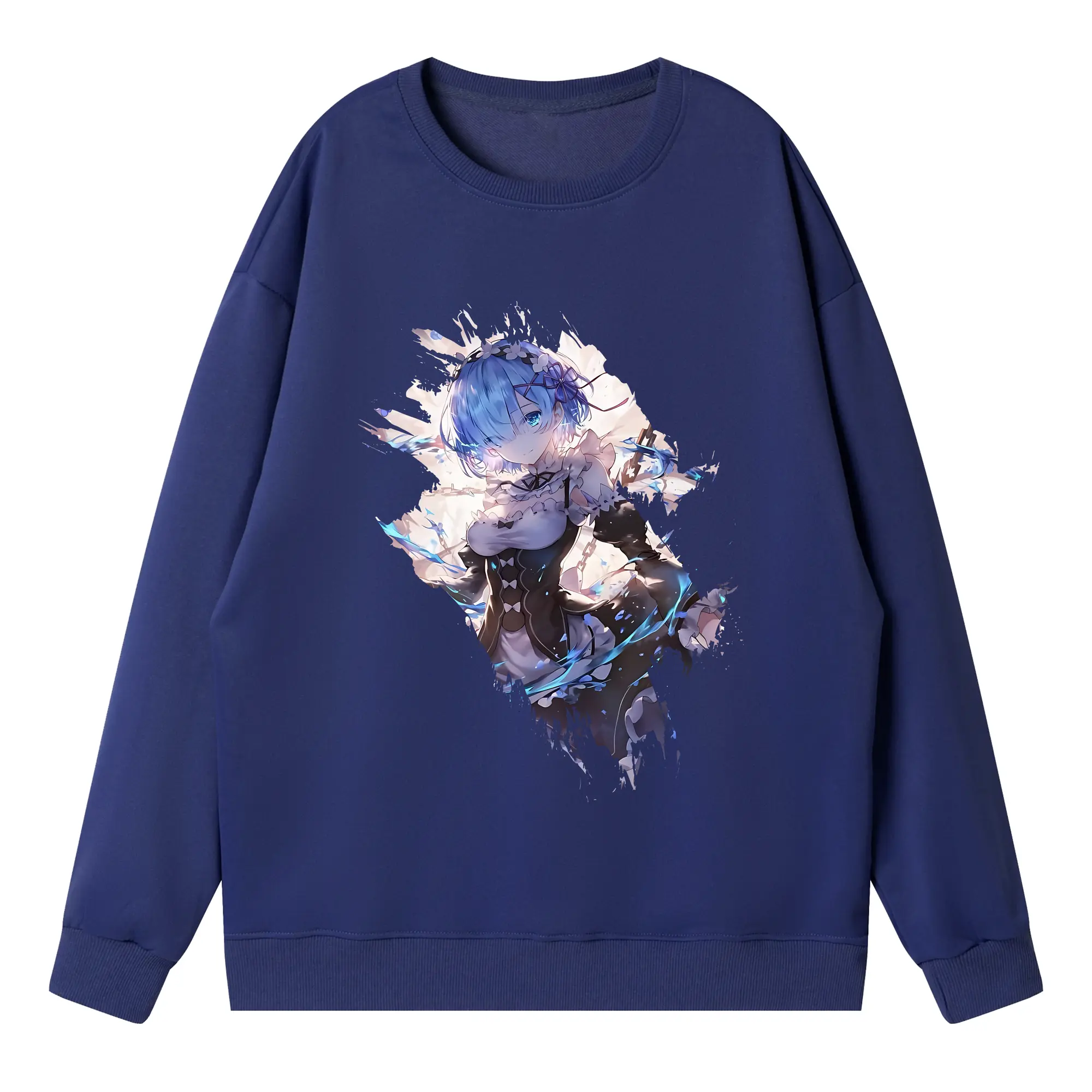 リゼロ グッズ レム - 高品質 クルーネック スウェット ・ コットン59% ポリエステル41% ・ ユニセックス 長袖 トレーナー ・ カジュアル デイリー スポーツ 散歩用