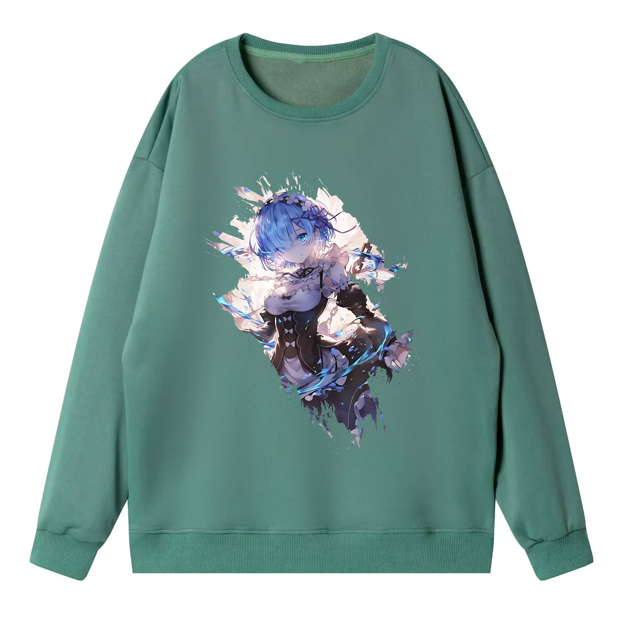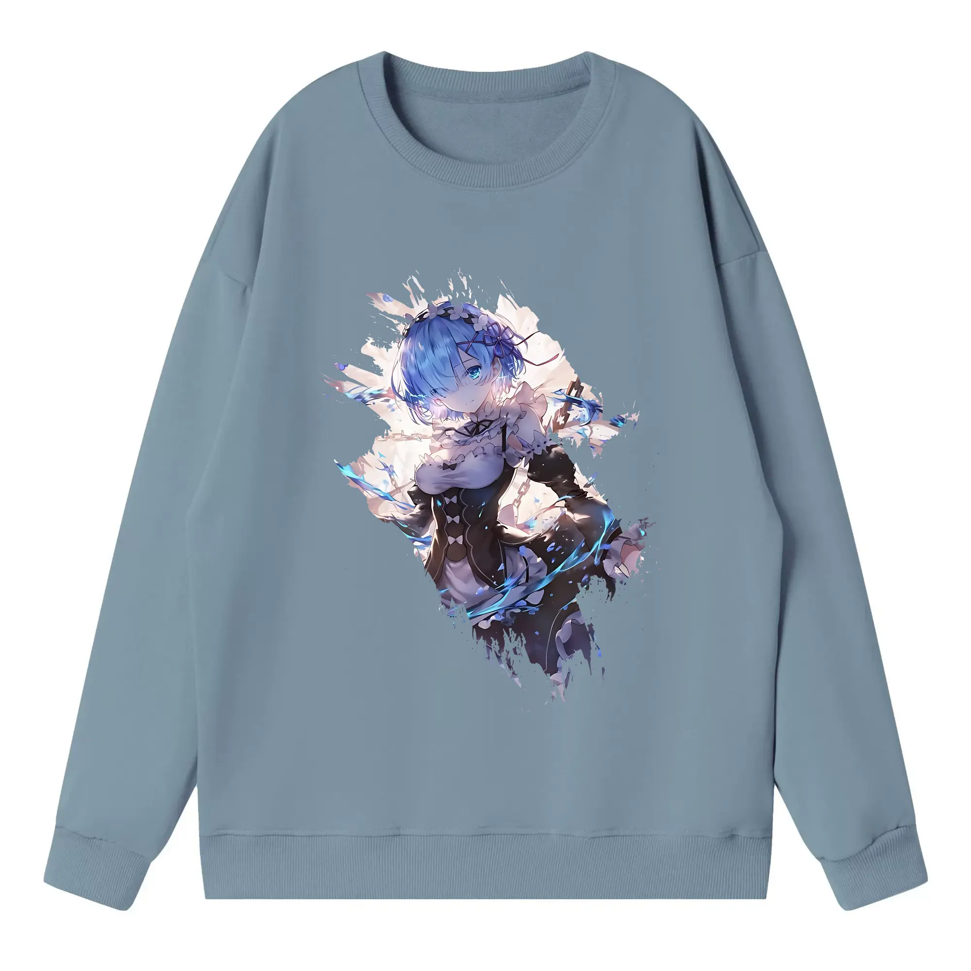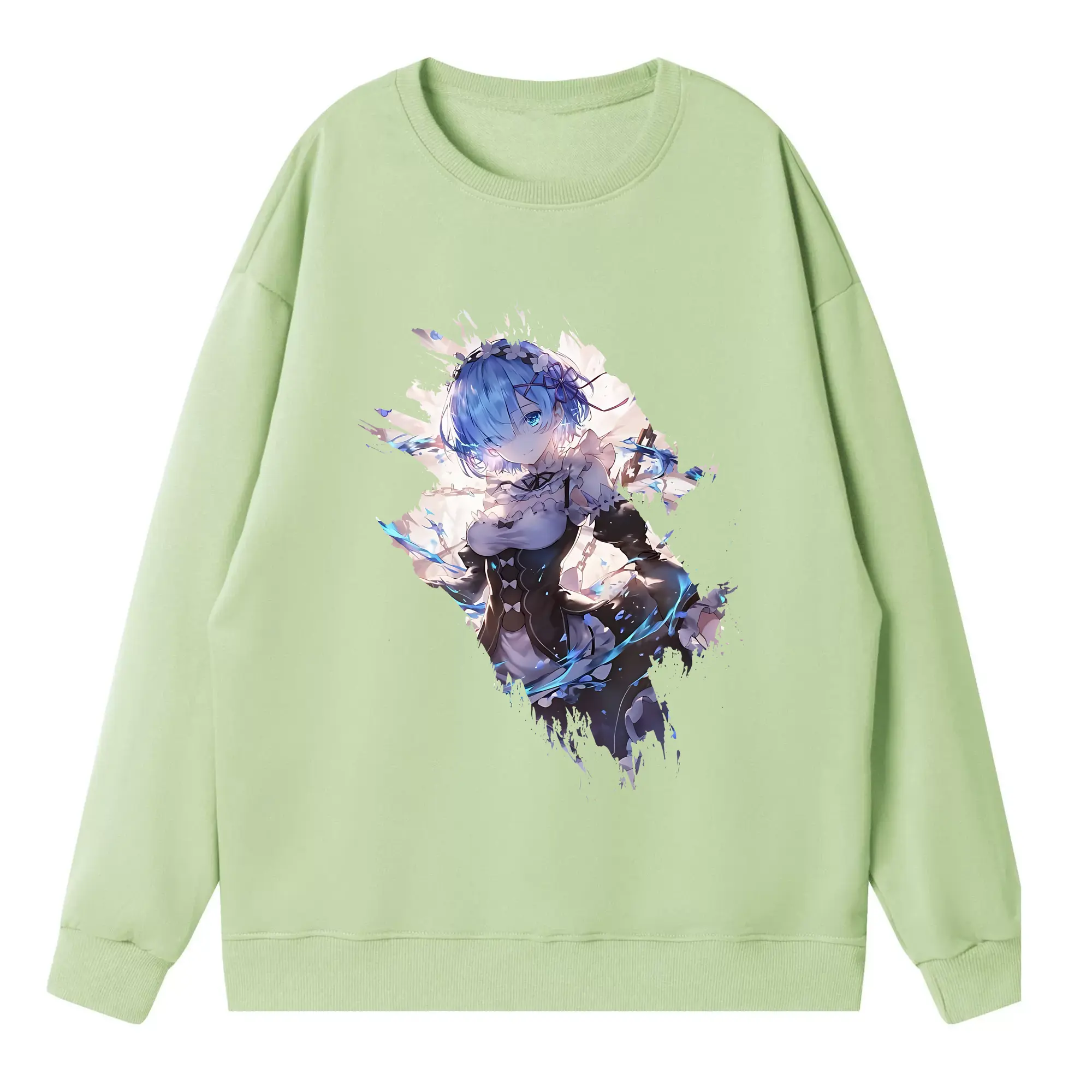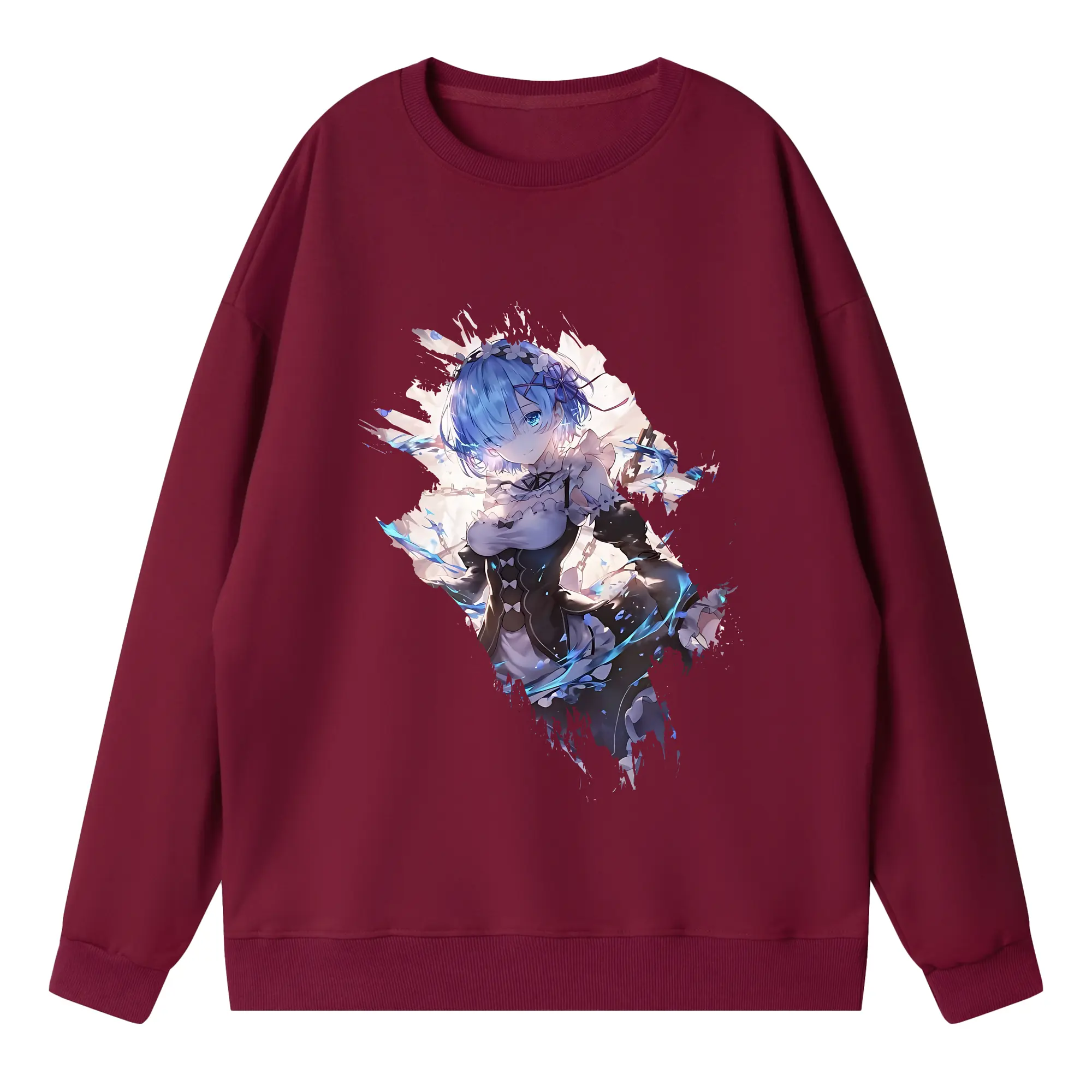 リゼロ グッズ レム - 高品質 クルーネック スウェット ・ コットン59% ポリエステル41% ・ ユニセックス 長袖 トレーナー ・ カジュアル デイリー スポーツ 散歩用