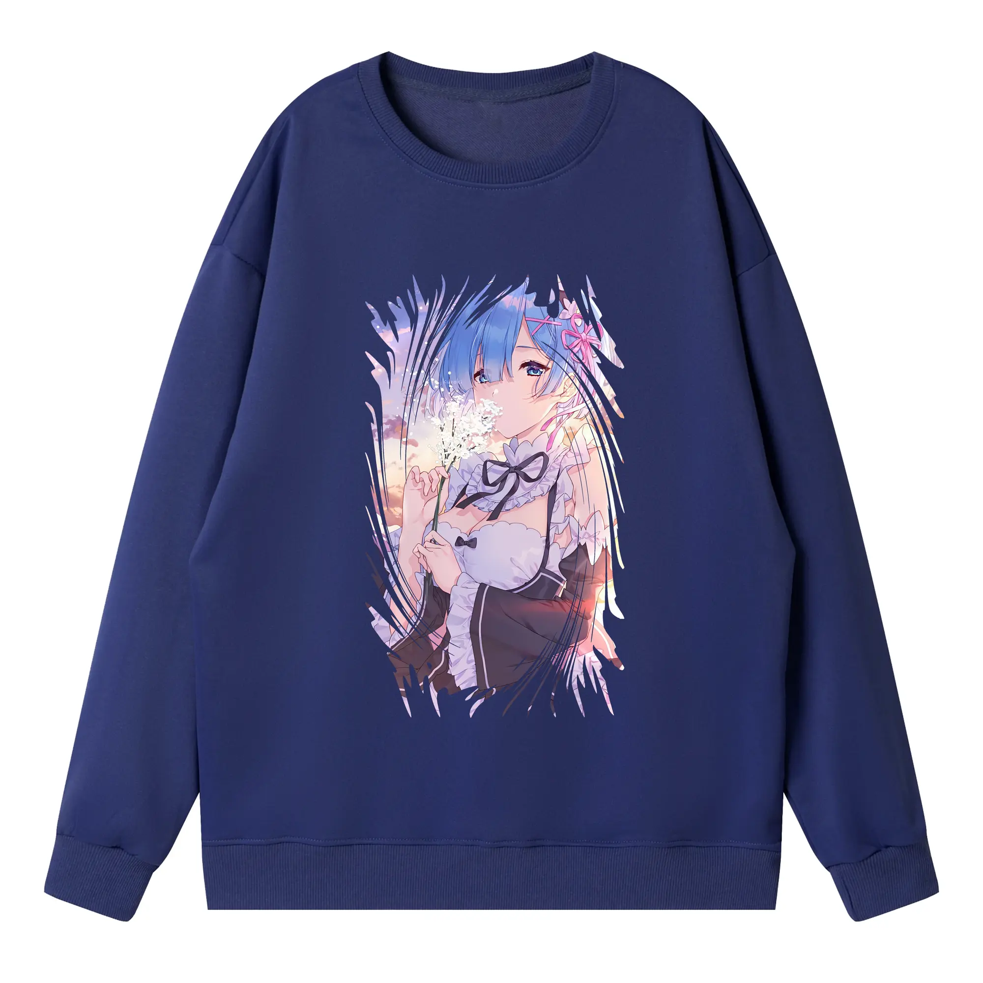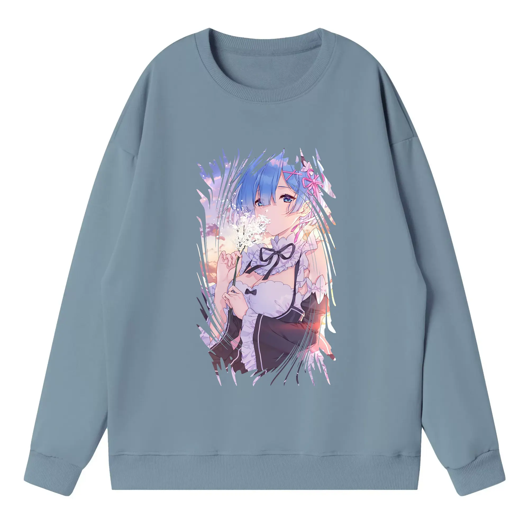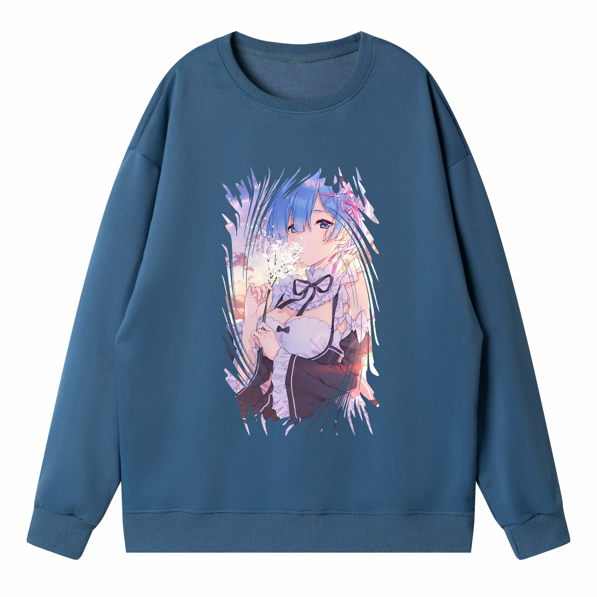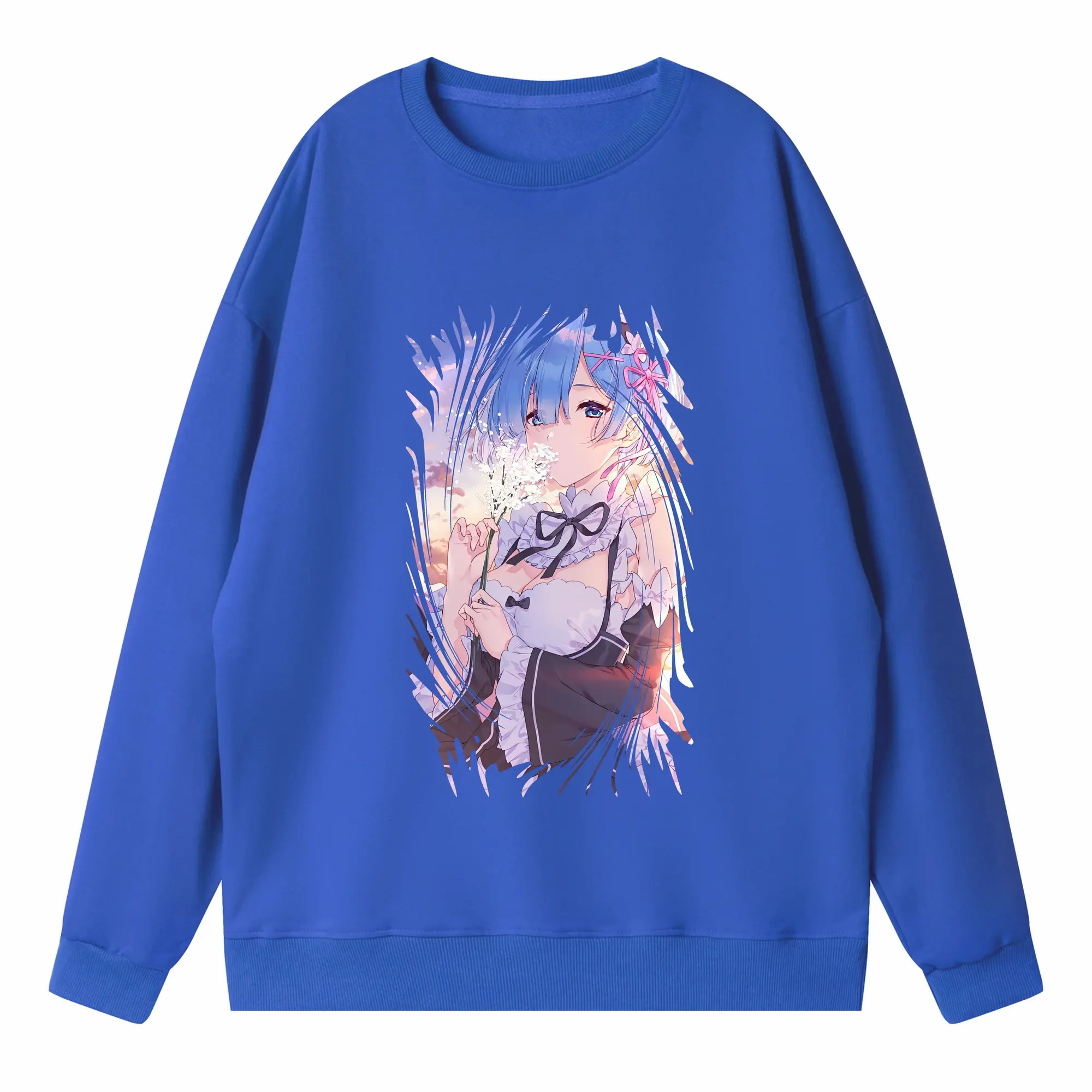 リゼロ グッズ レム - 高品質 クルーネック スウェット ・ コットン59% ポリエステル41% ・ ユニセックス 長袖 トレーナー ・ カジュアル デイリー スポーツ 散歩用
