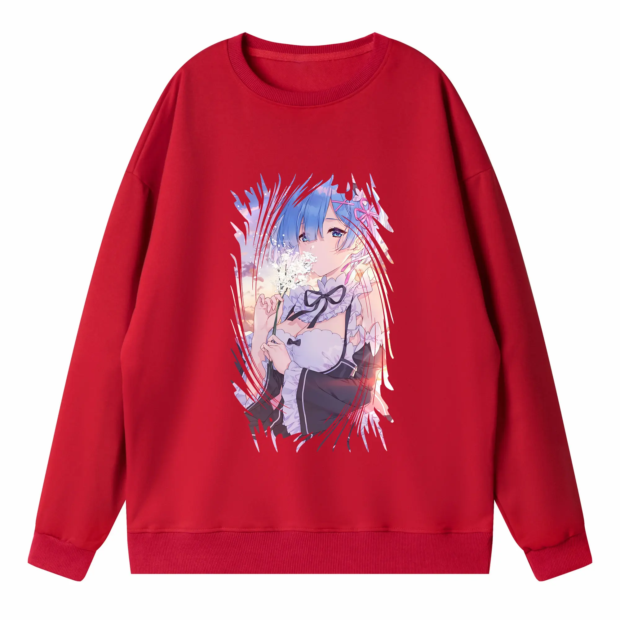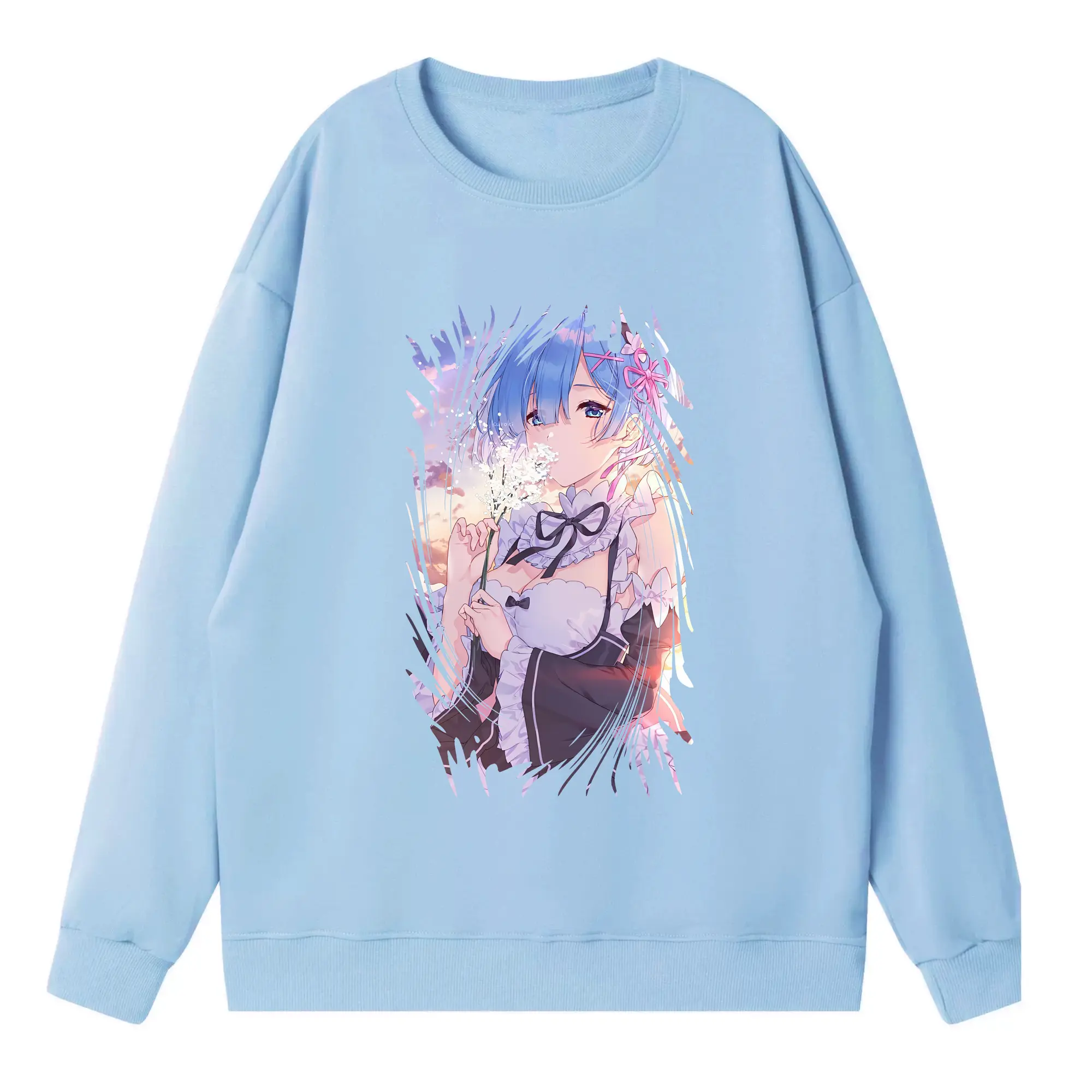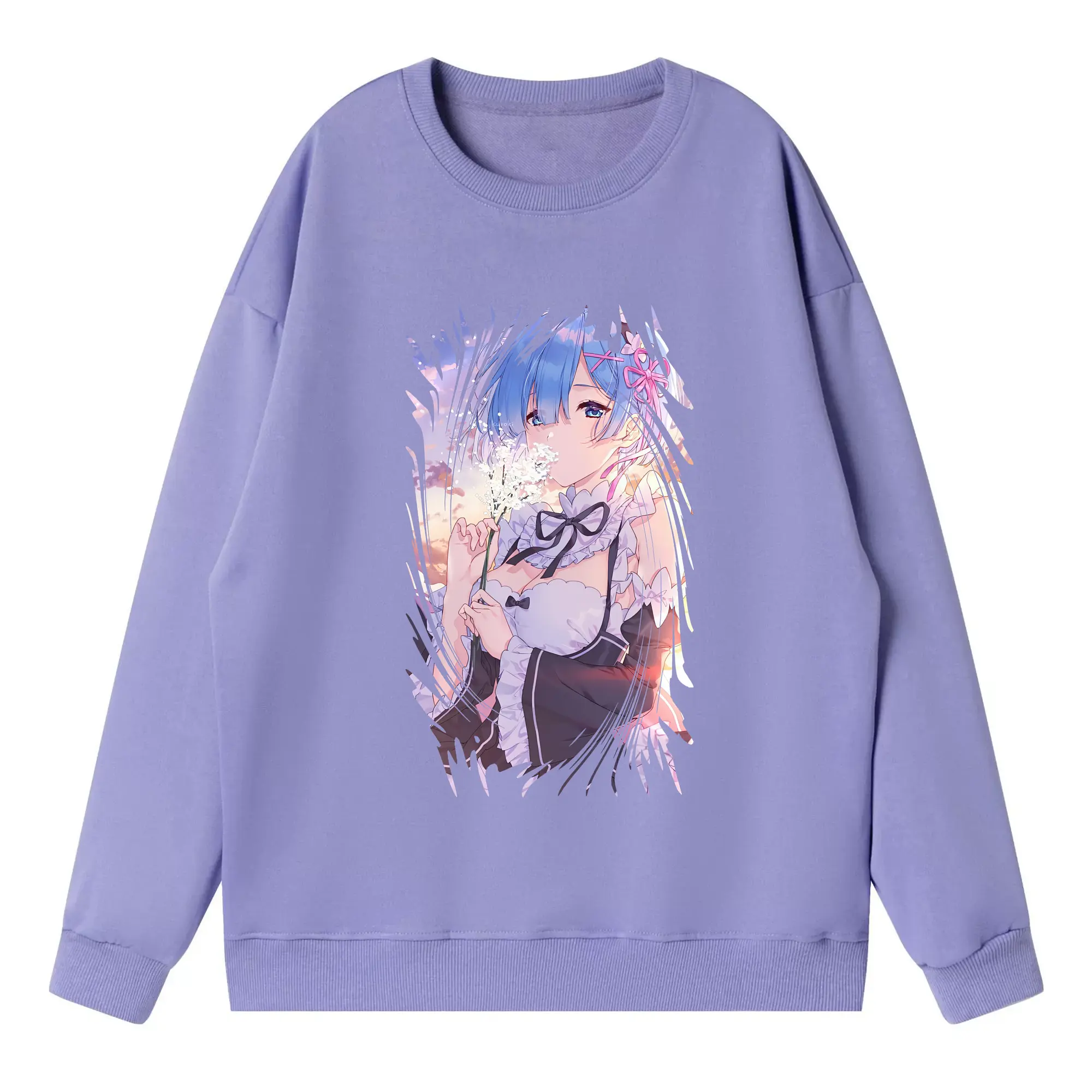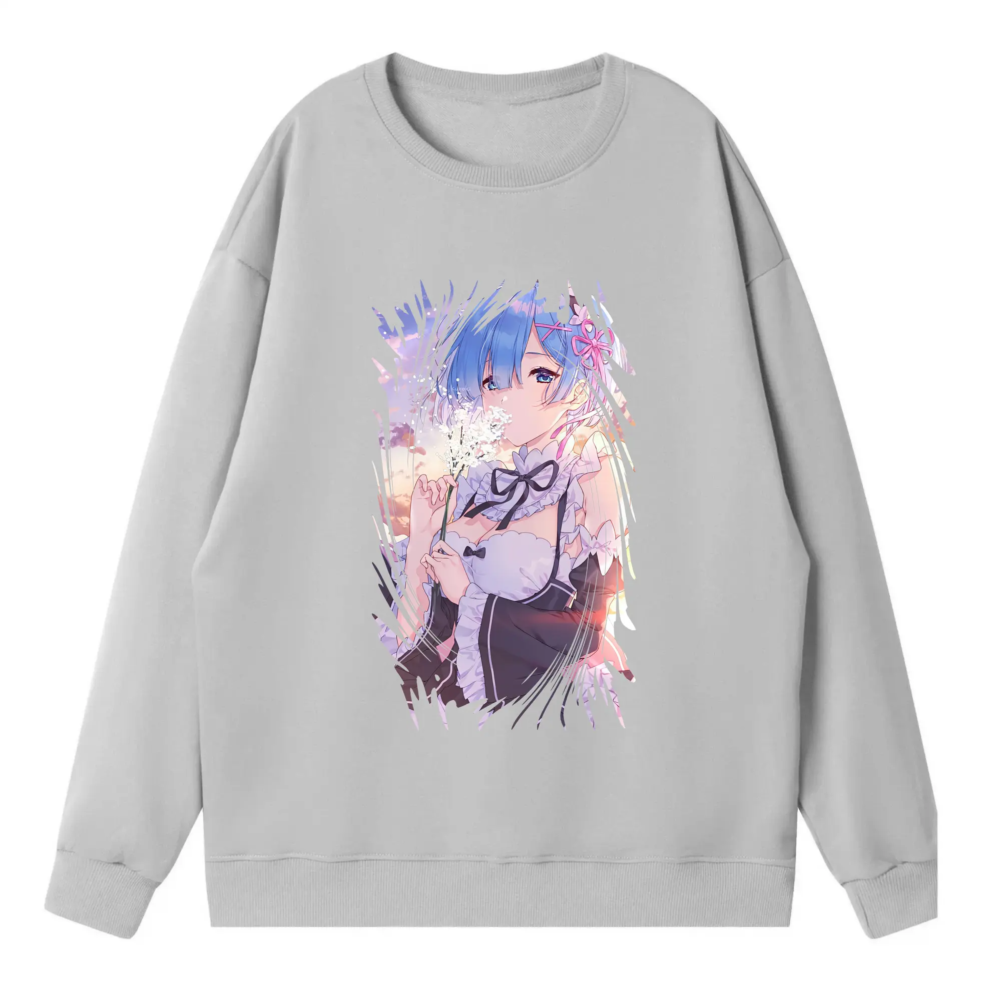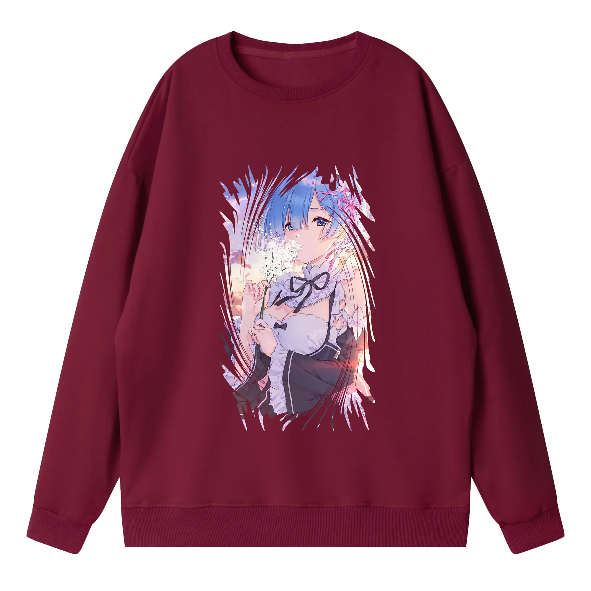 リゼロ グッズ レム - 高品質 クルーネック スウェット ・ コットン59% ポリエステル41% ・ ユニセックス 長袖 トレーナー ・ カジュアル デイリー スポーツ 散歩用