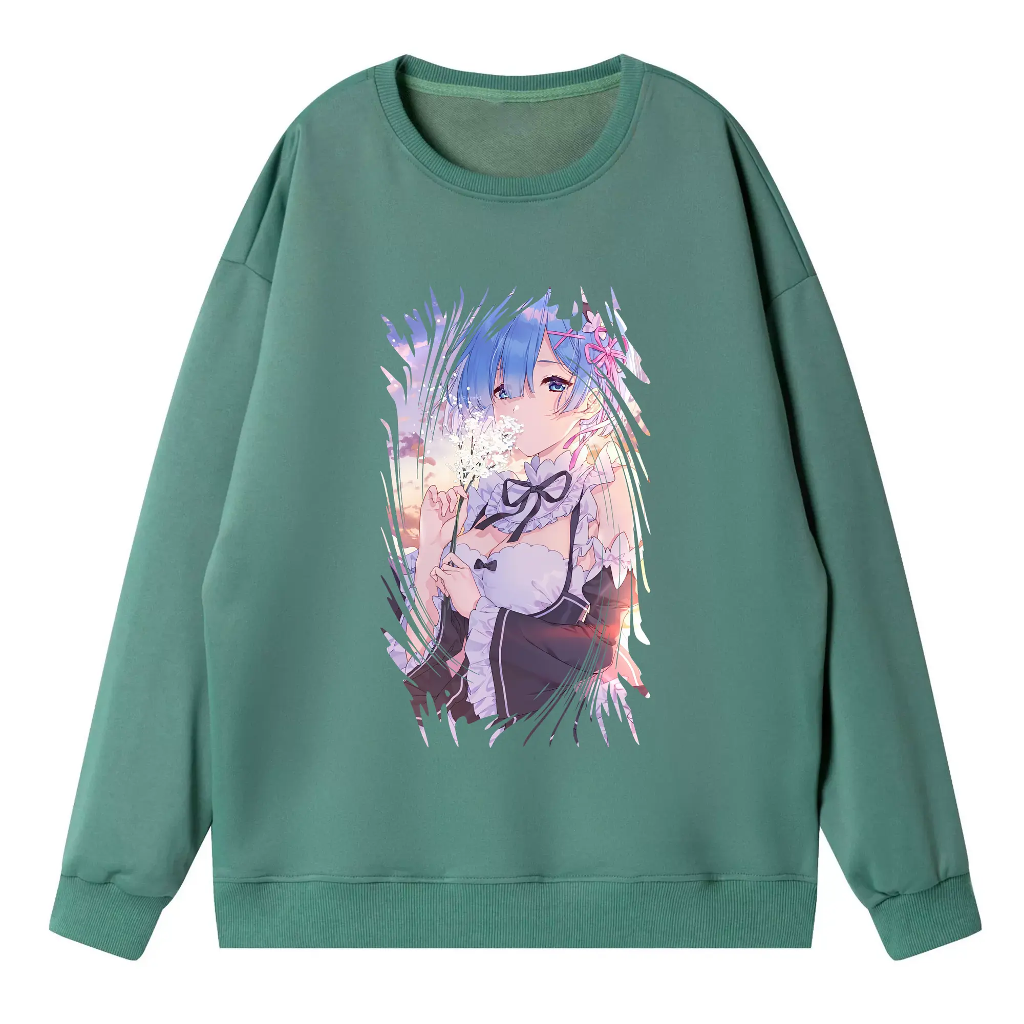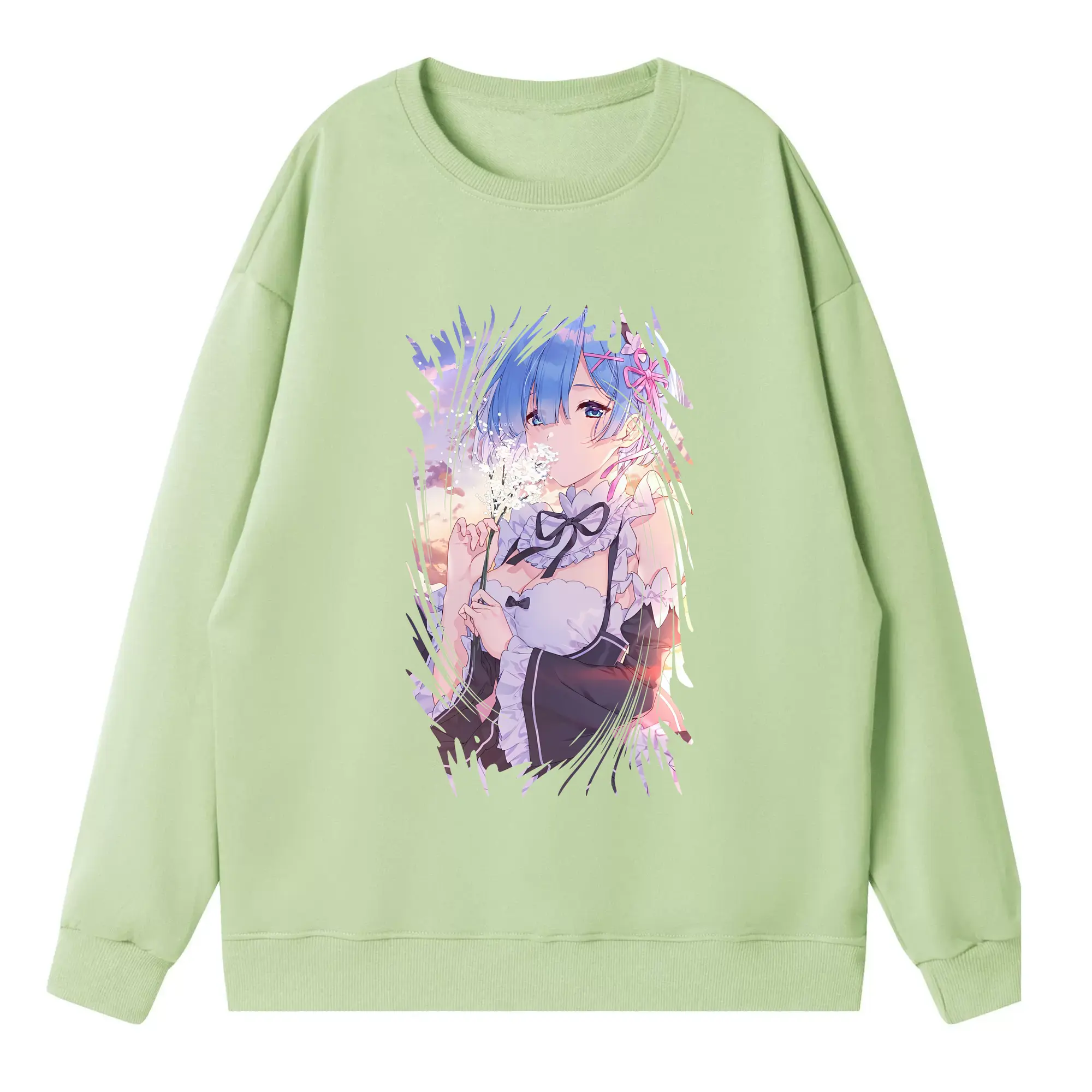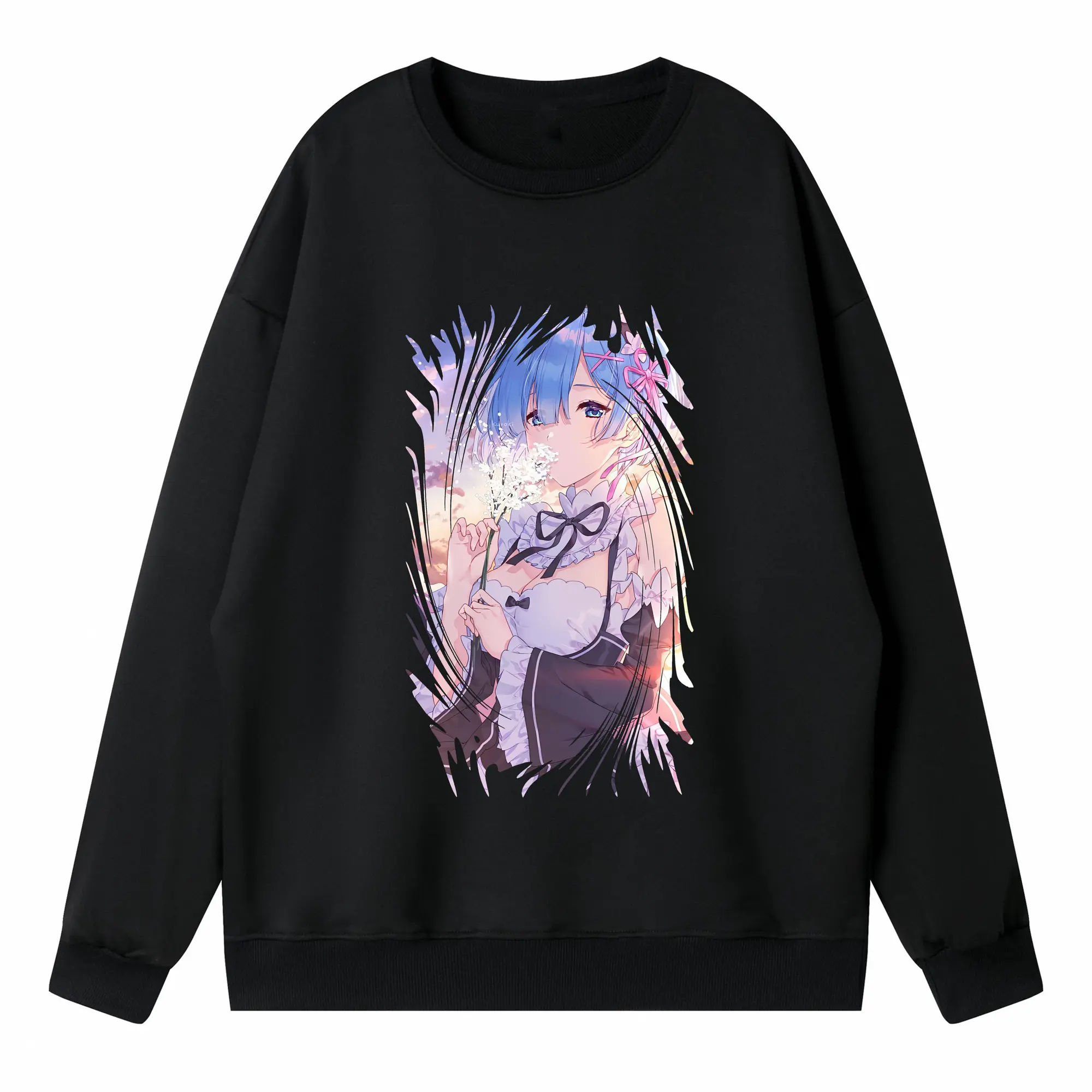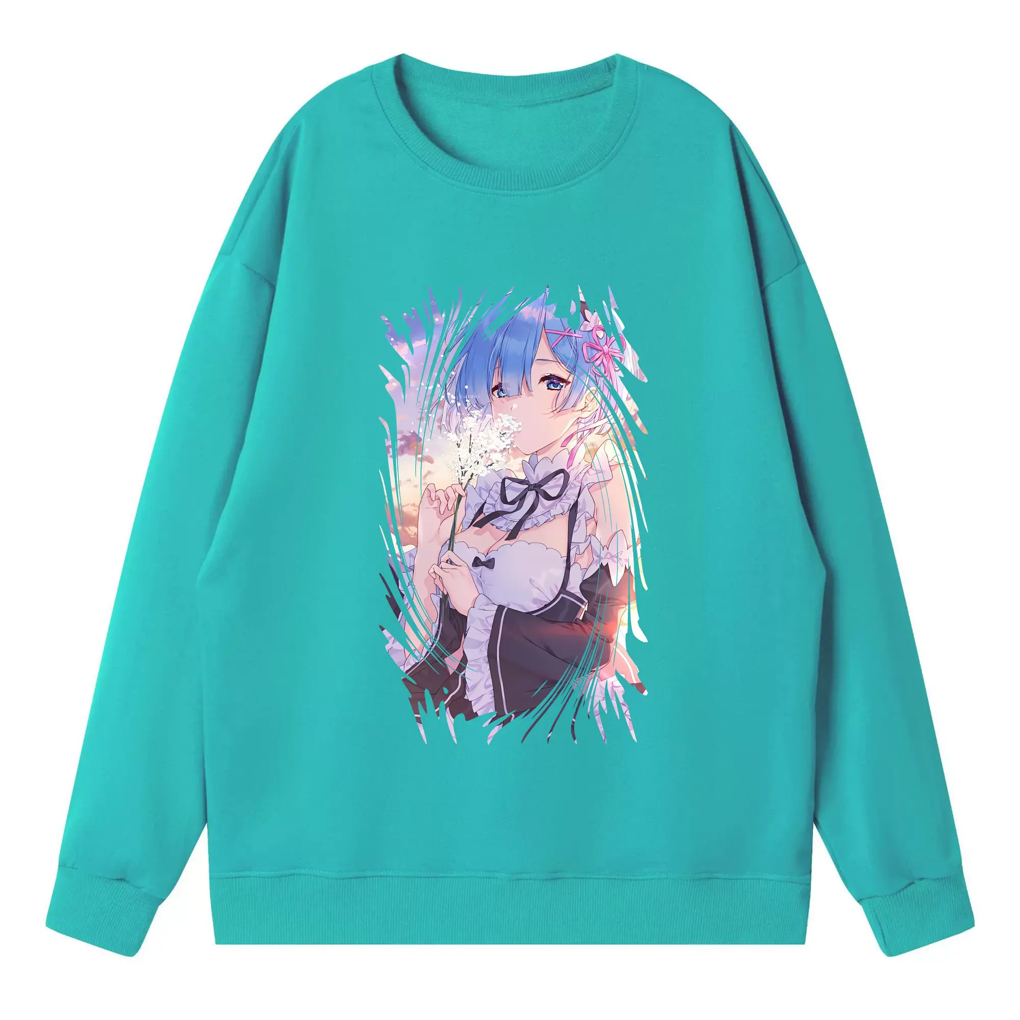 リゼロ グッズ レム - 高品質 クルーネック スウェット ・ コットン59% ポリエステル41% ・ ユニセックス 長袖 トレーナー ・ カジュアル デイリー スポーツ 散歩用