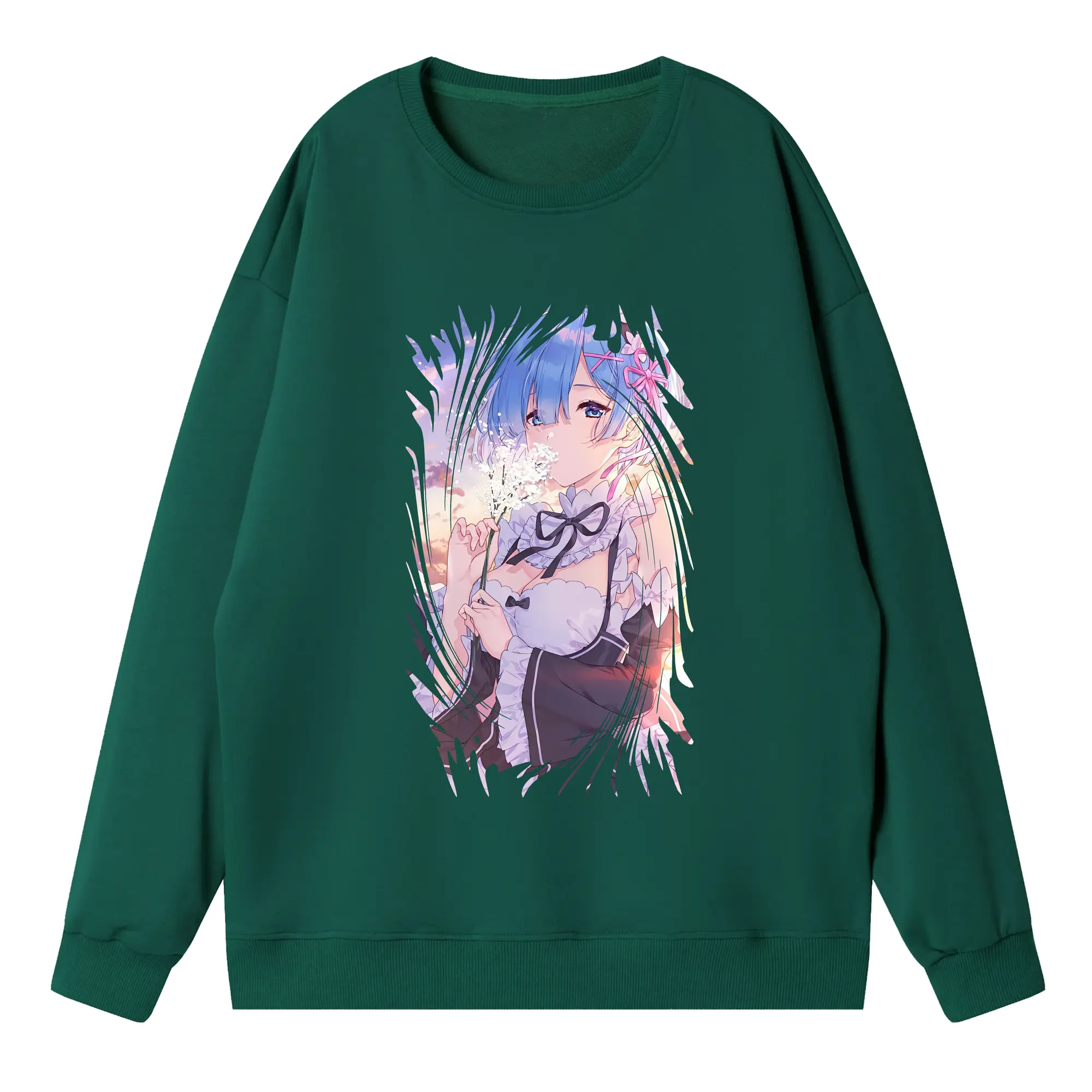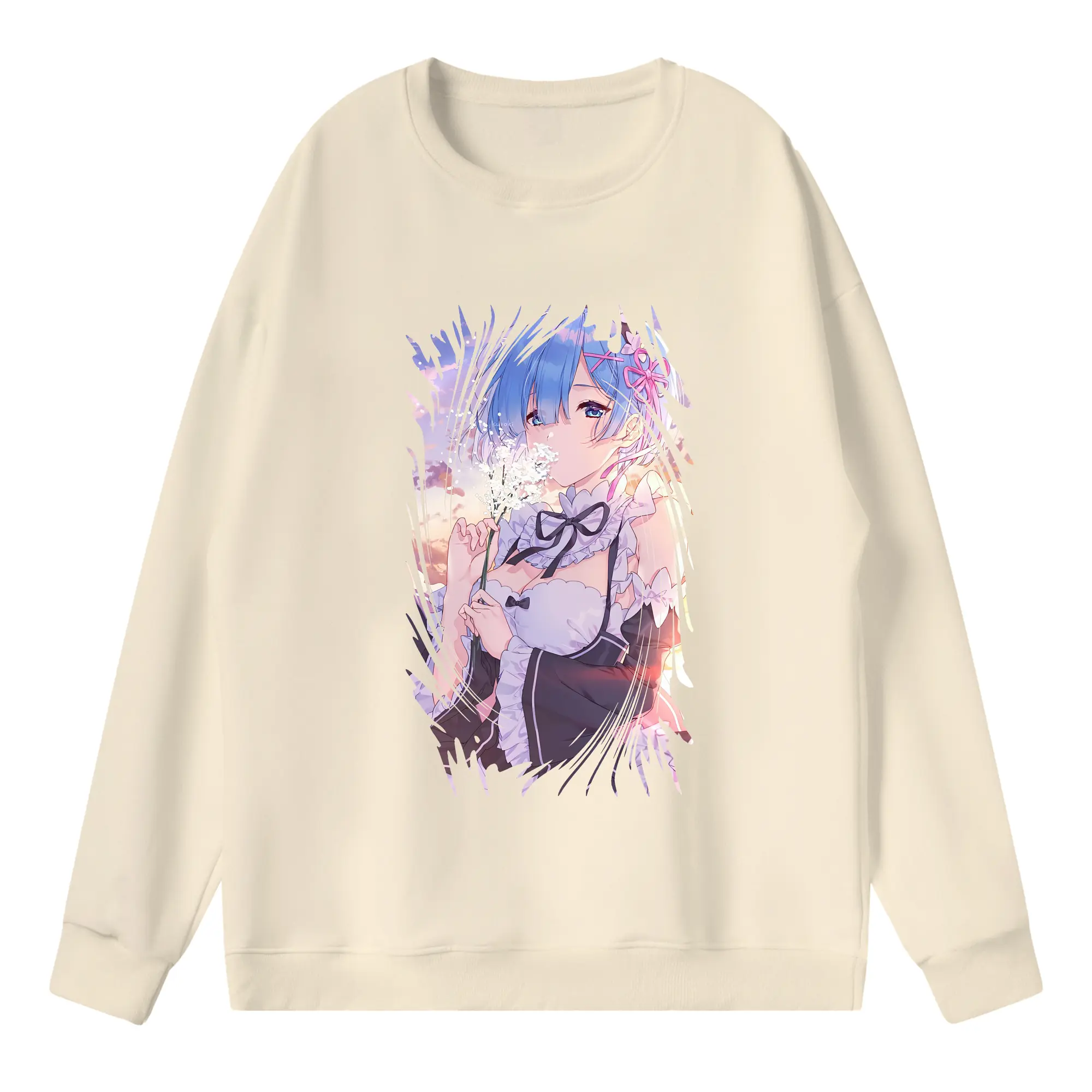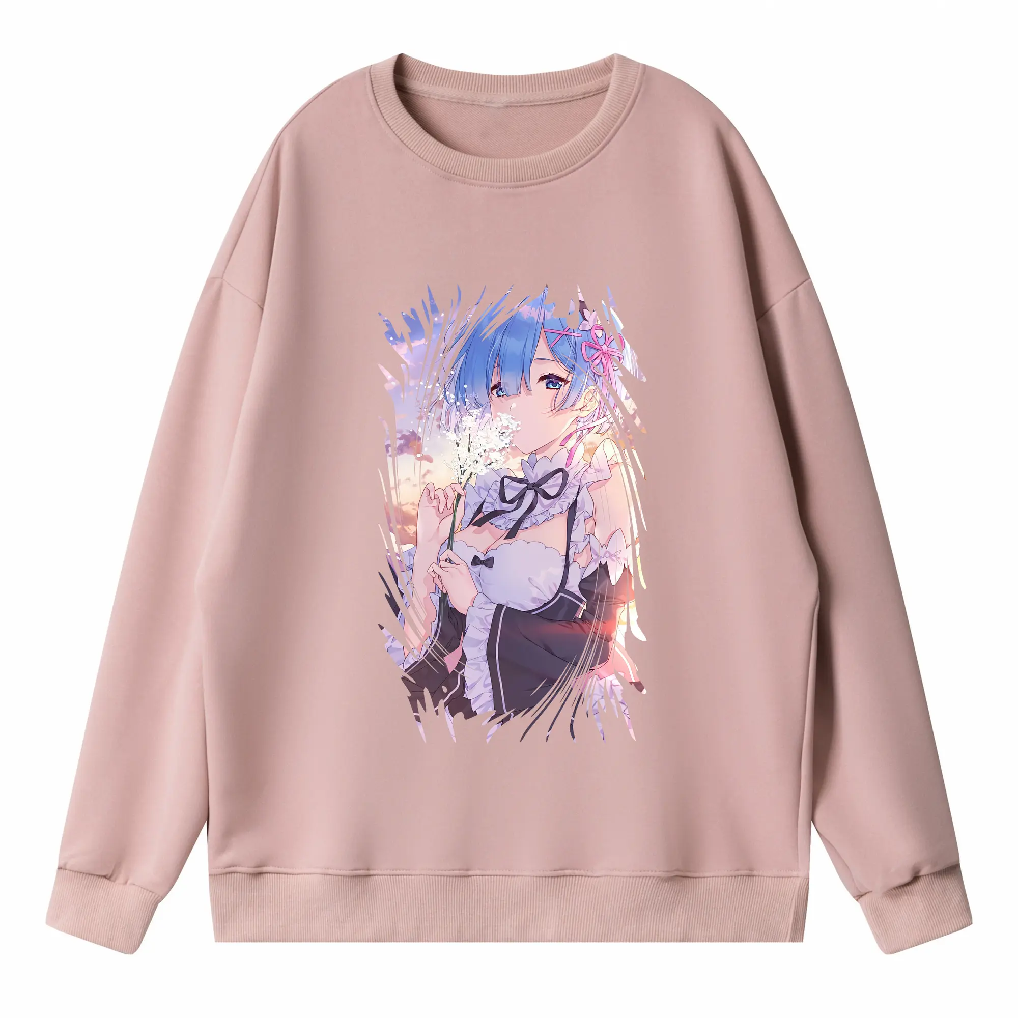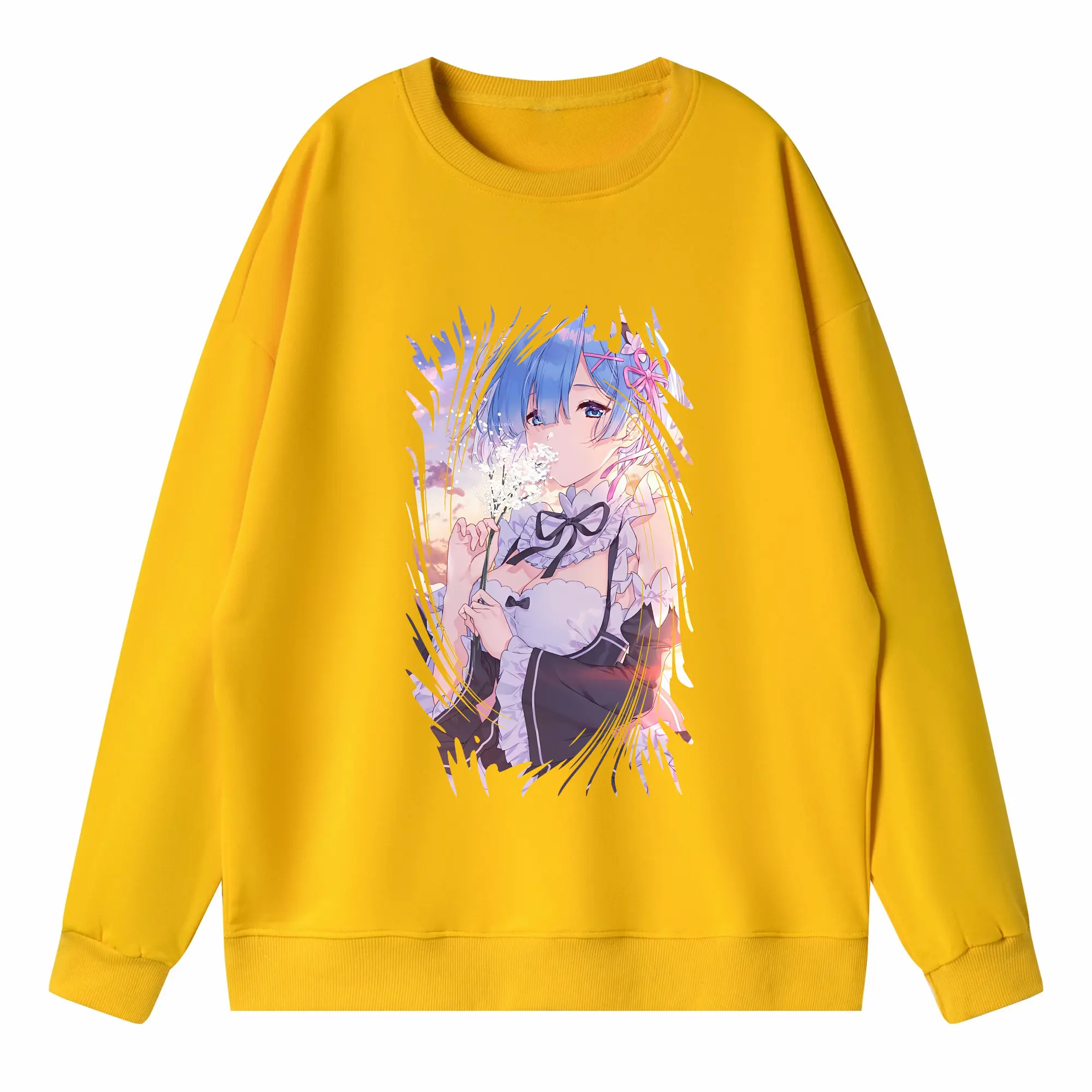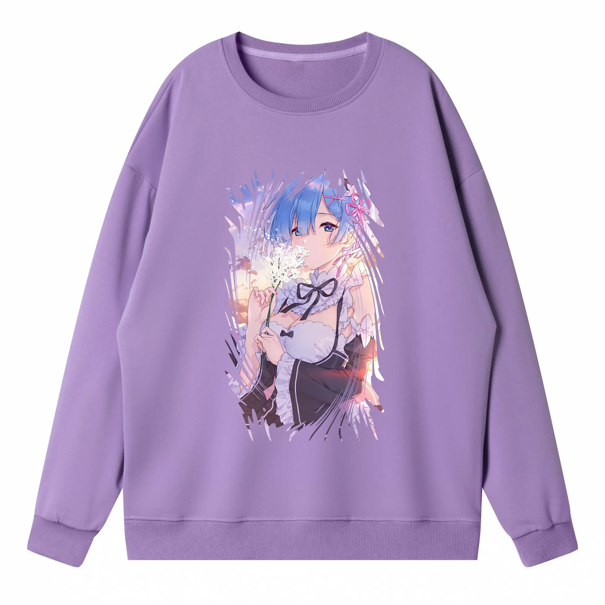 リゼロ グッズ レム - 高品質 クルーネック スウェット ・ コットン59% ポリエステル41% ・ ユニセックス 長袖 トレーナー ・ カジュアル デイリー スポーツ 散歩用