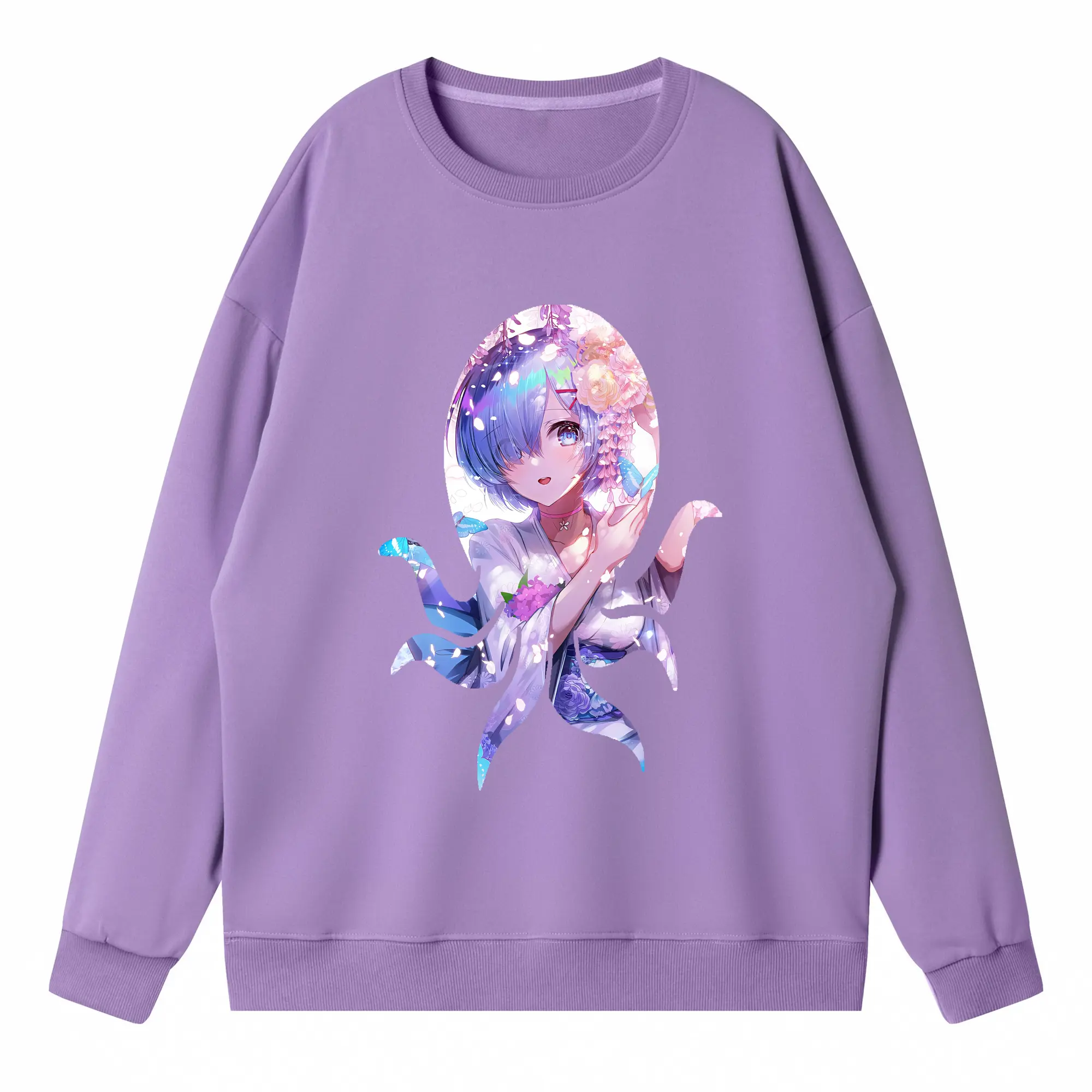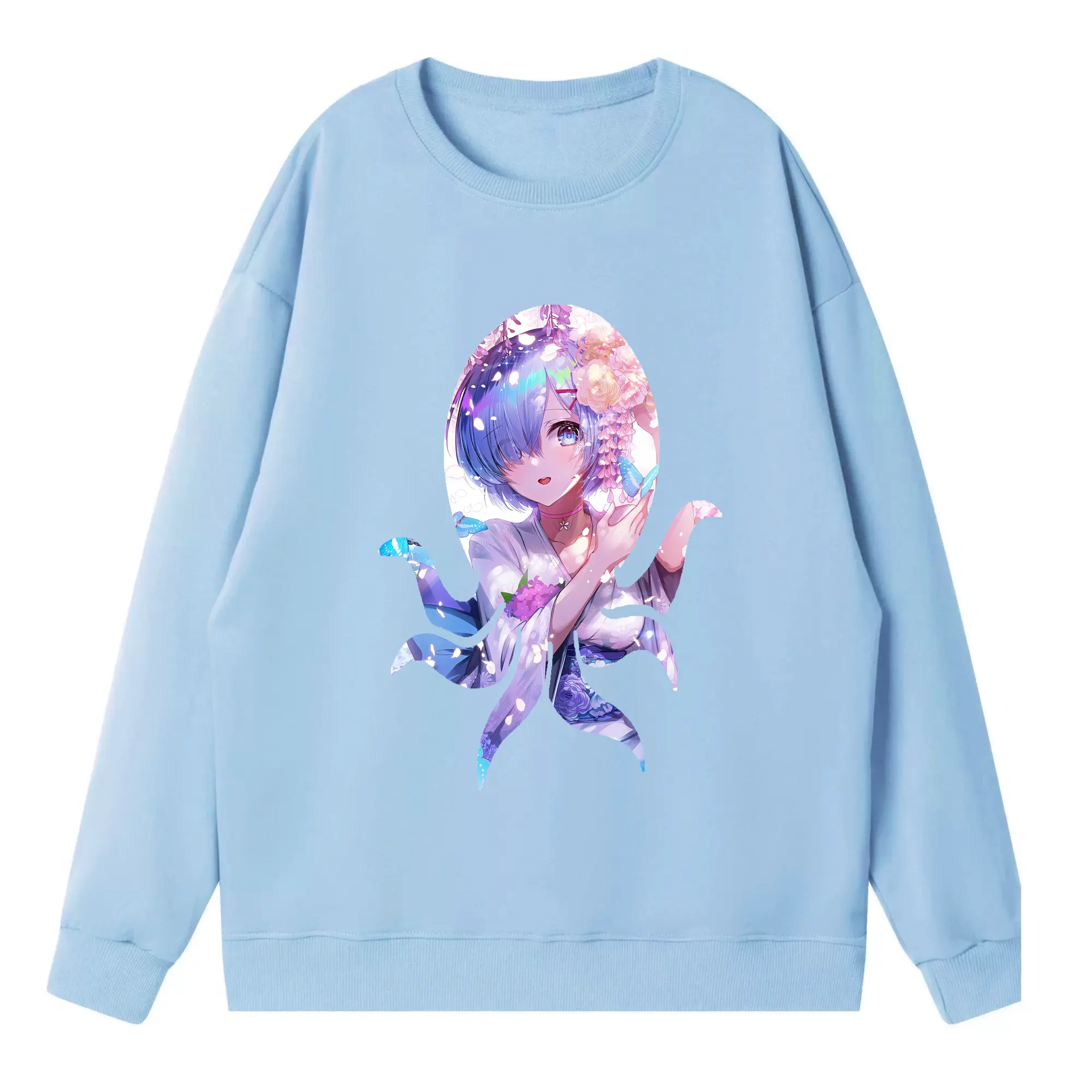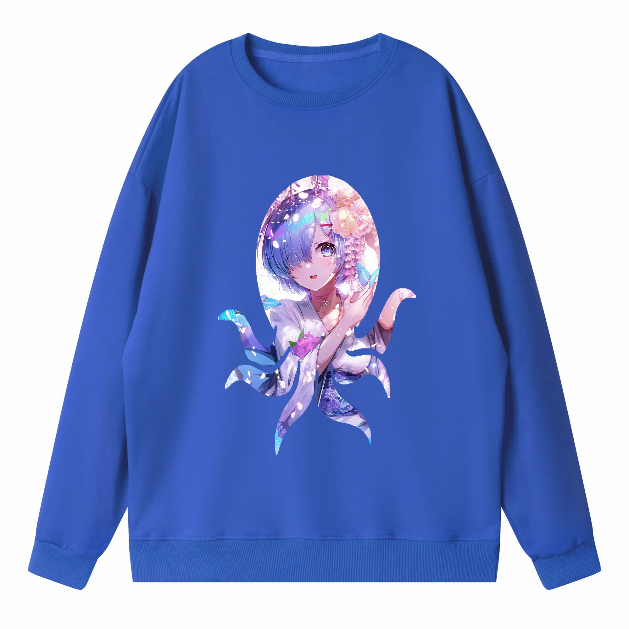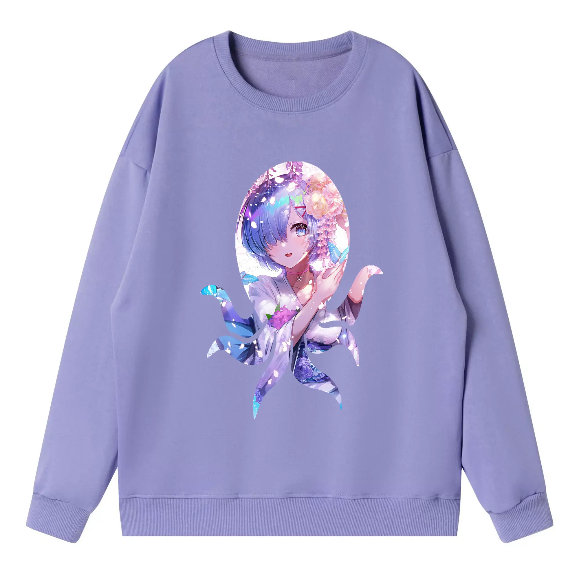 リゼロ グッズ レム - 高品質 クルーネック スウェット ・ コットン59% ポリエステル41% ・ ユニセックス 長袖 トレーナー ・ カジュアル デイリー スポーツ 散歩用