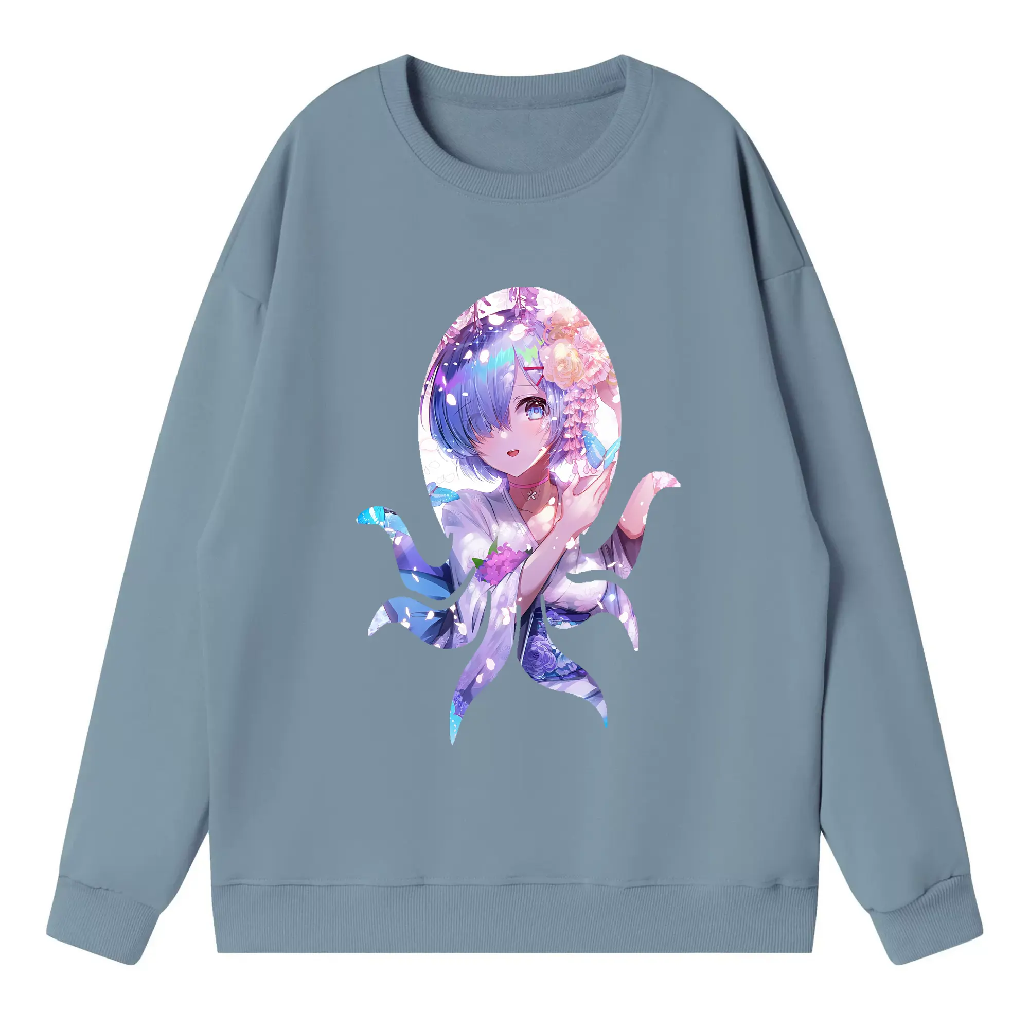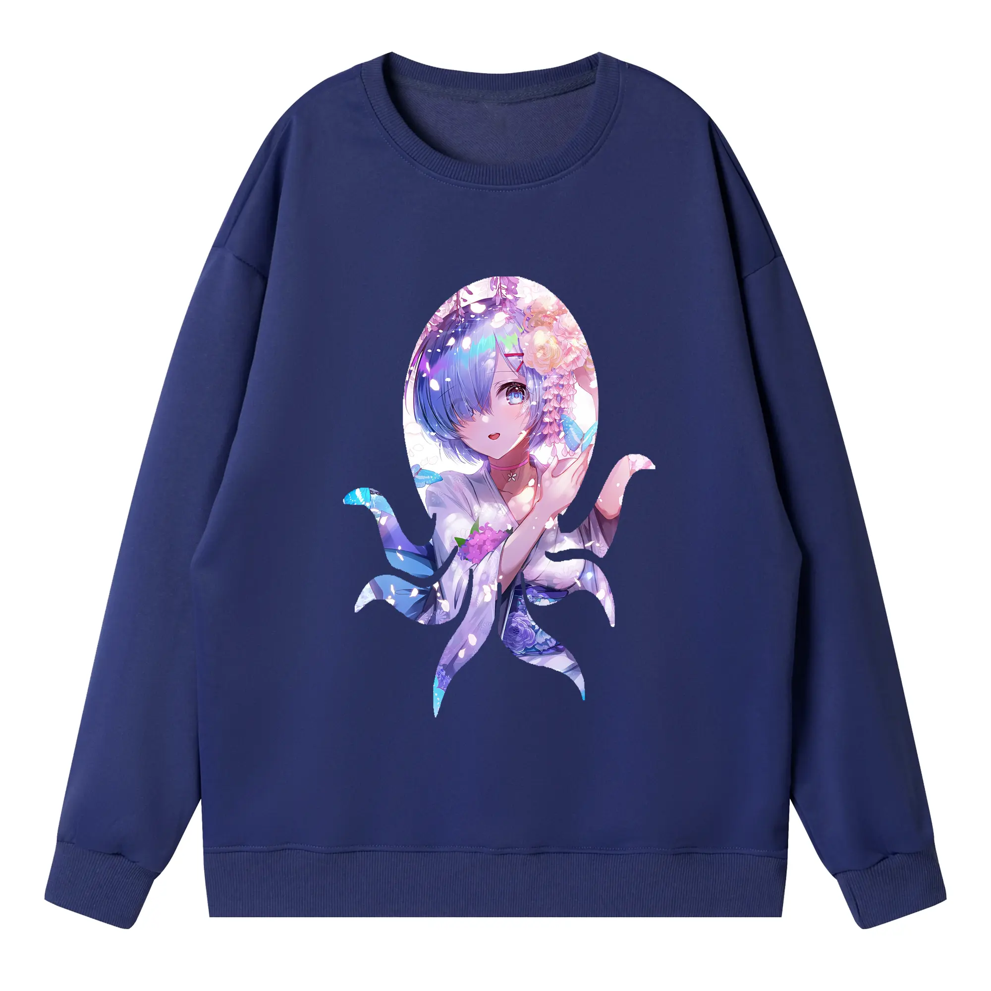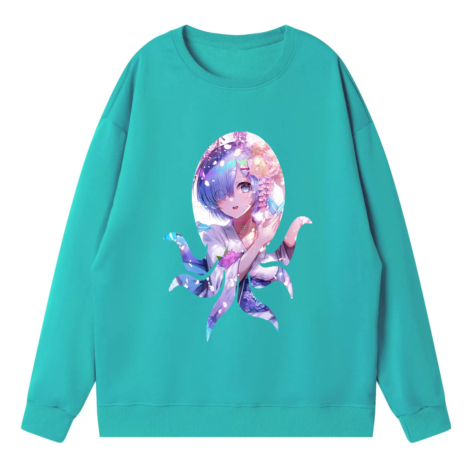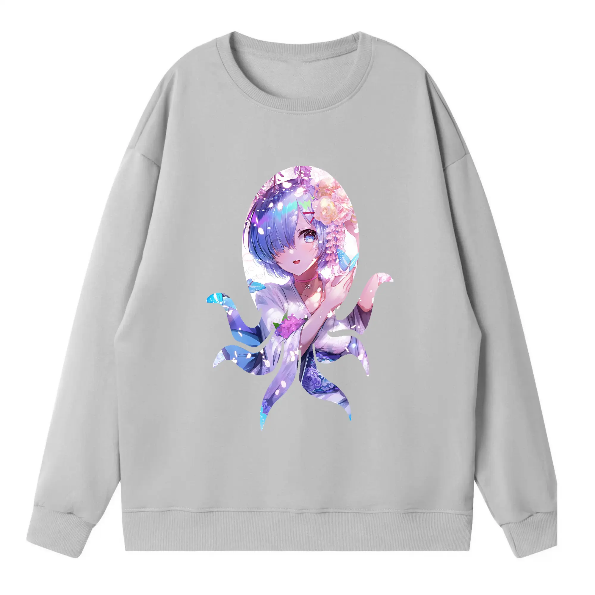 リゼロ グッズ レム - 高品質 クルーネック スウェット ・ コットン59% ポリエステル41% ・ ユニセックス 長袖 トレーナー ・ カジュアル デイリー スポーツ 散歩用