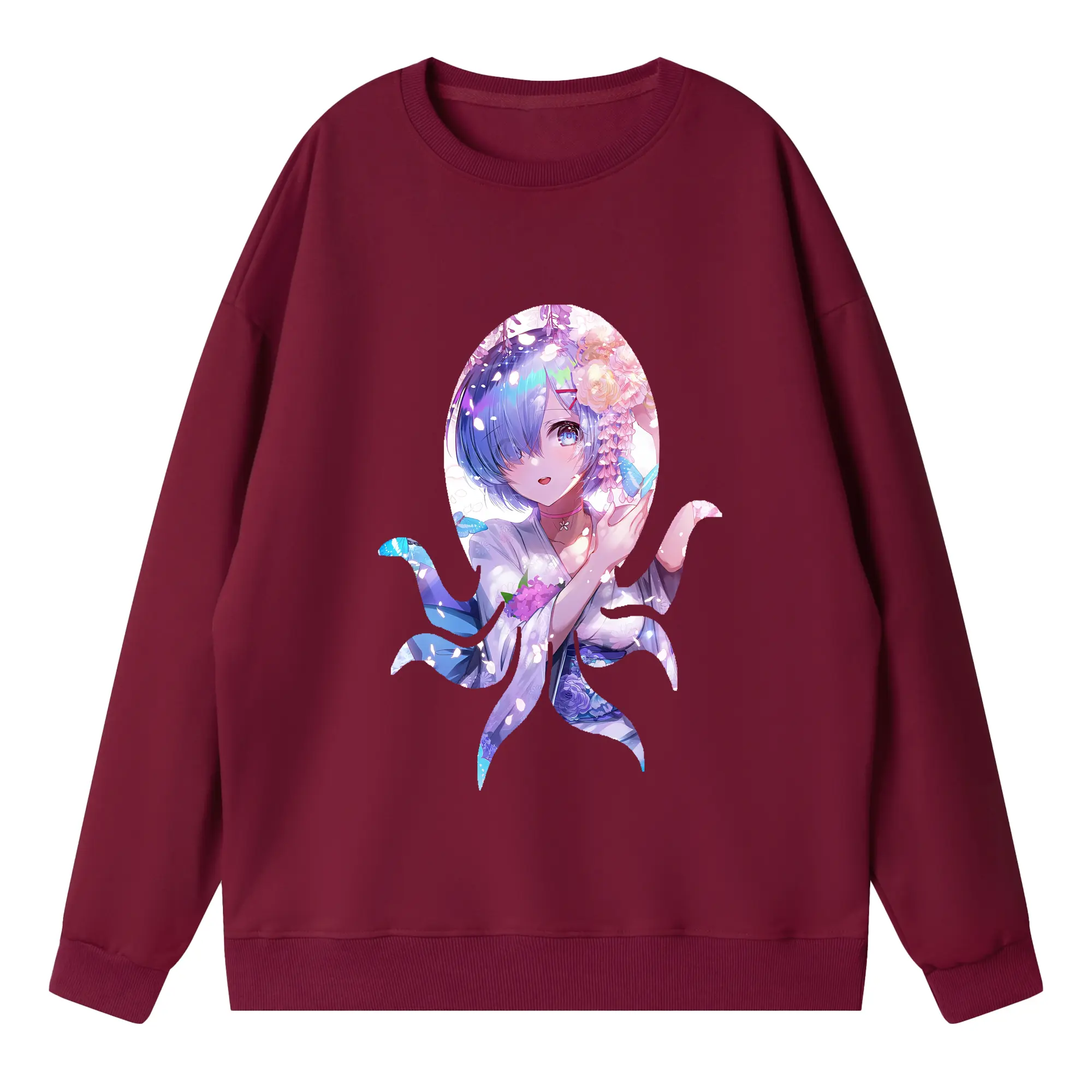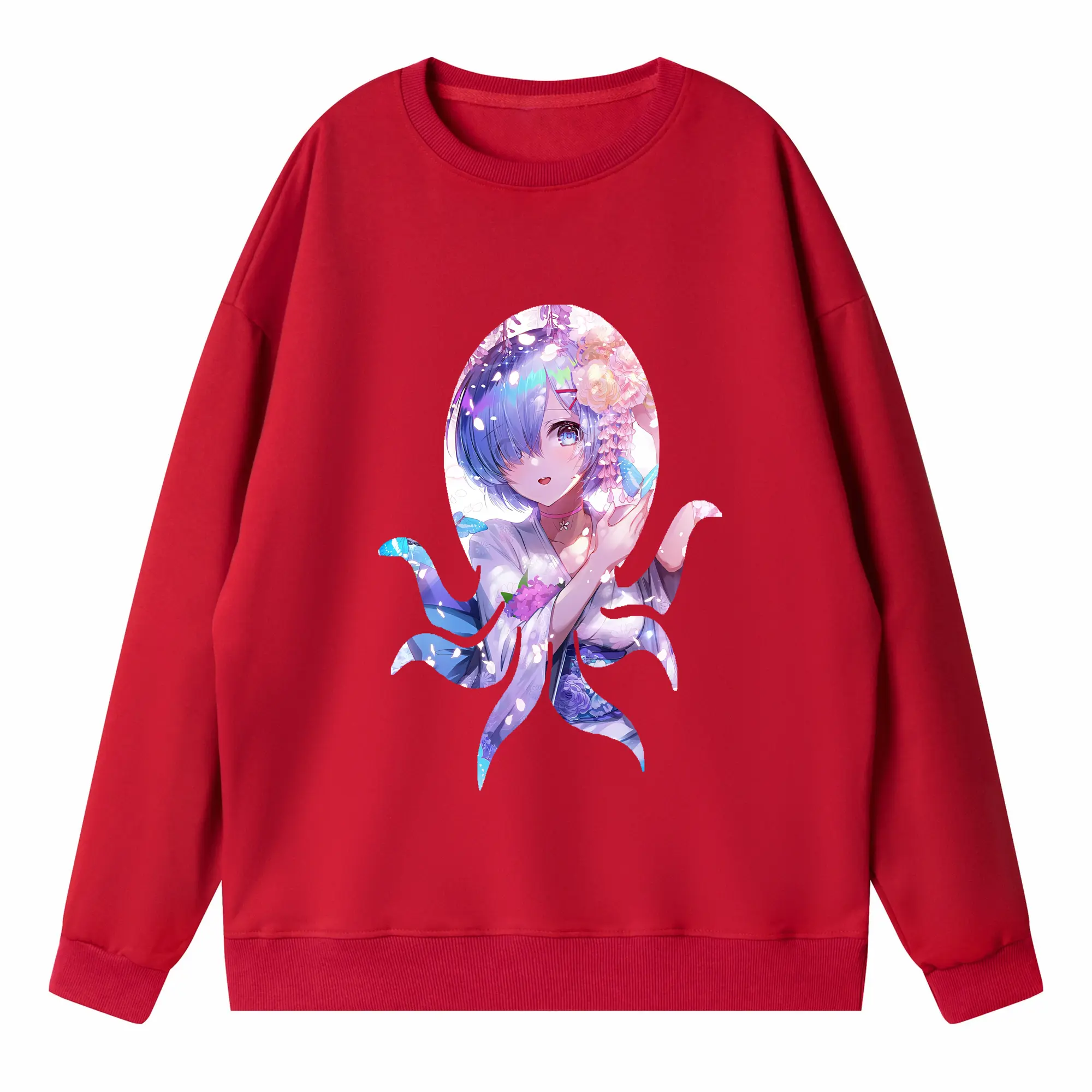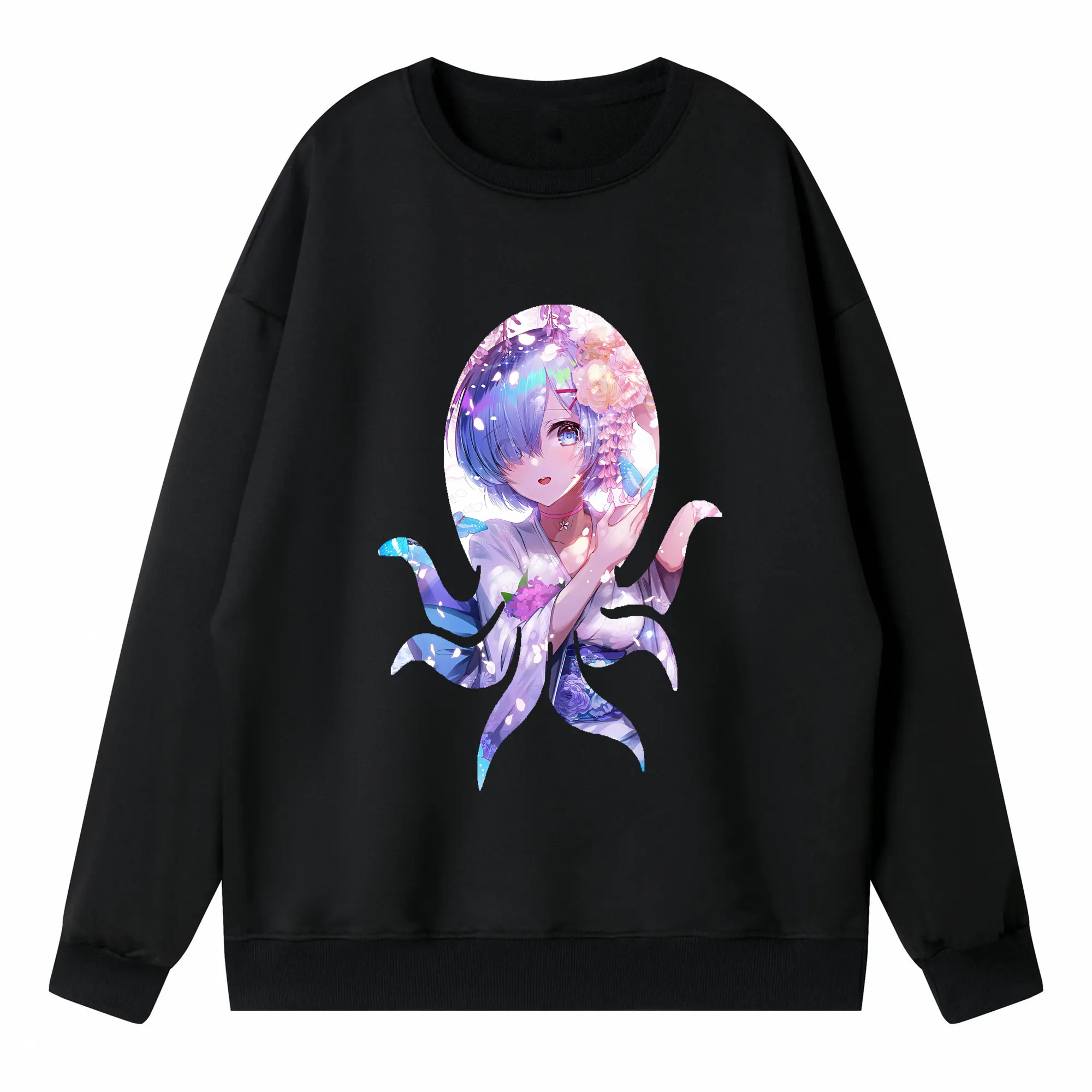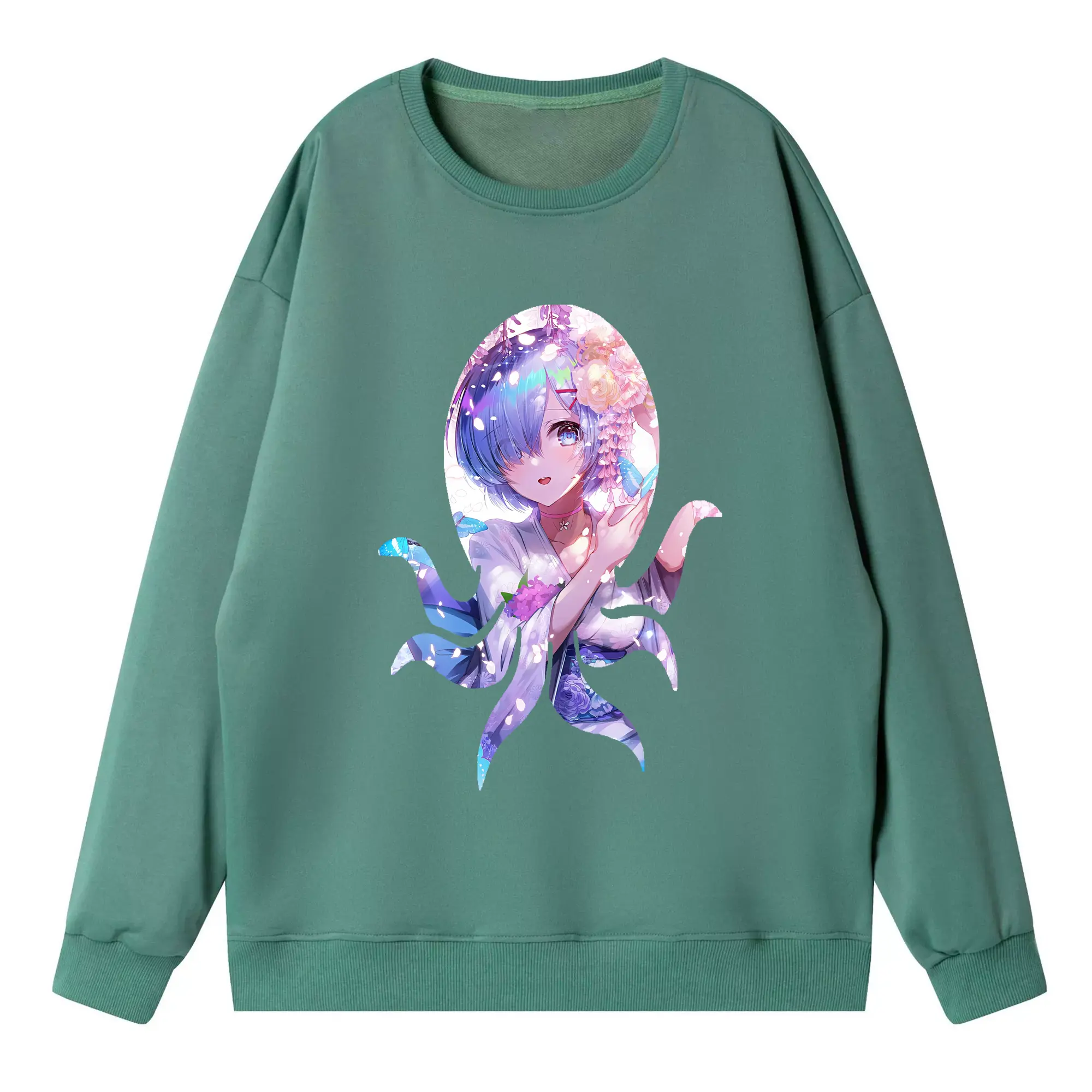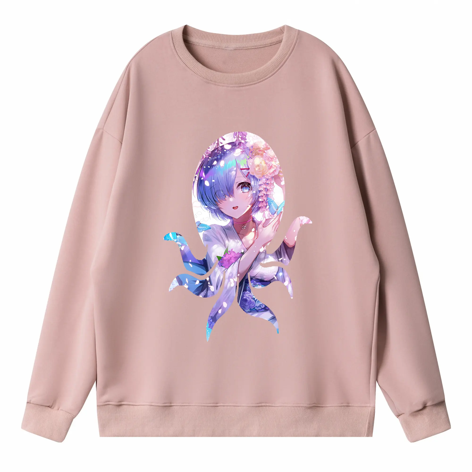 リゼロ グッズ レム - 高品質 クルーネック スウェット ・ コットン59% ポリエステル41% ・ ユニセックス 長袖 トレーナー ・ カジュアル デイリー スポーツ 散歩用