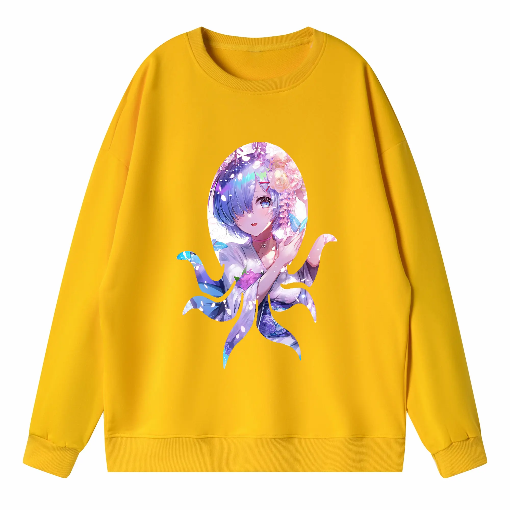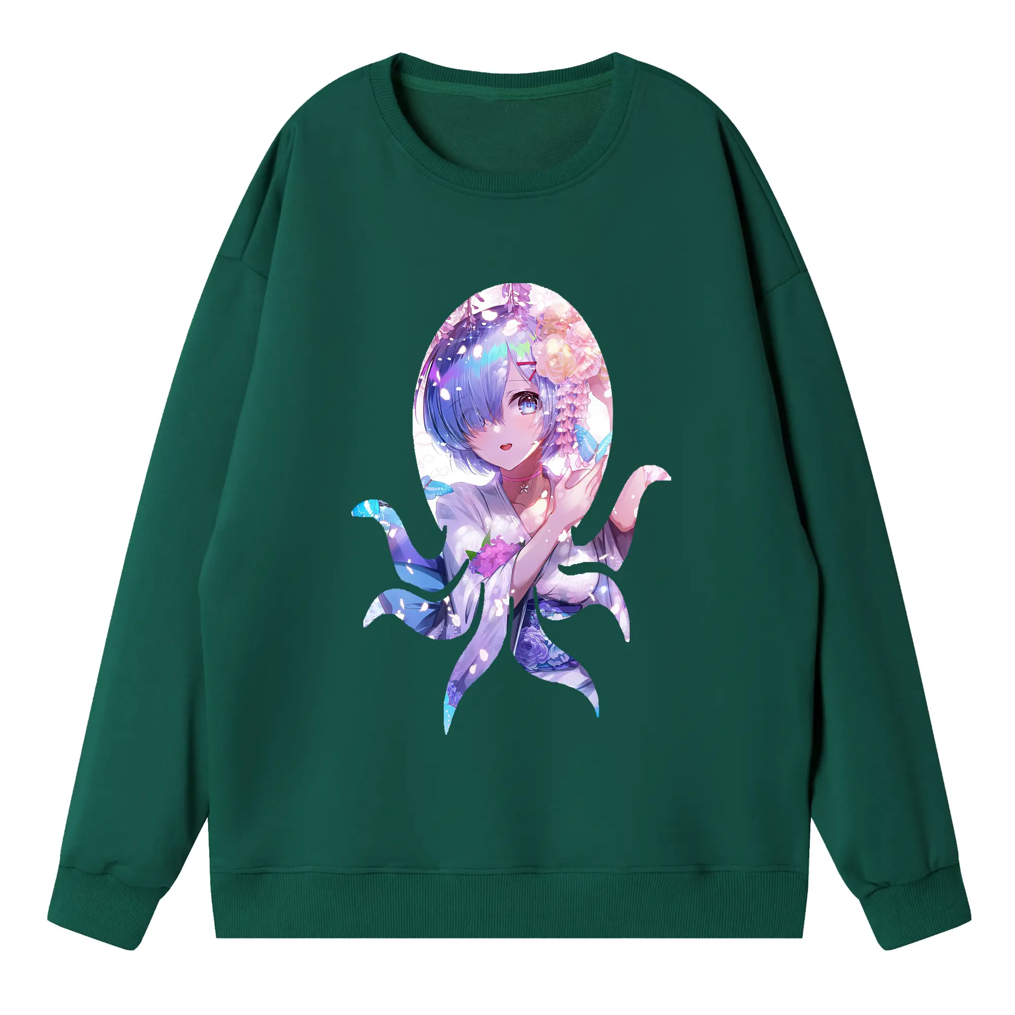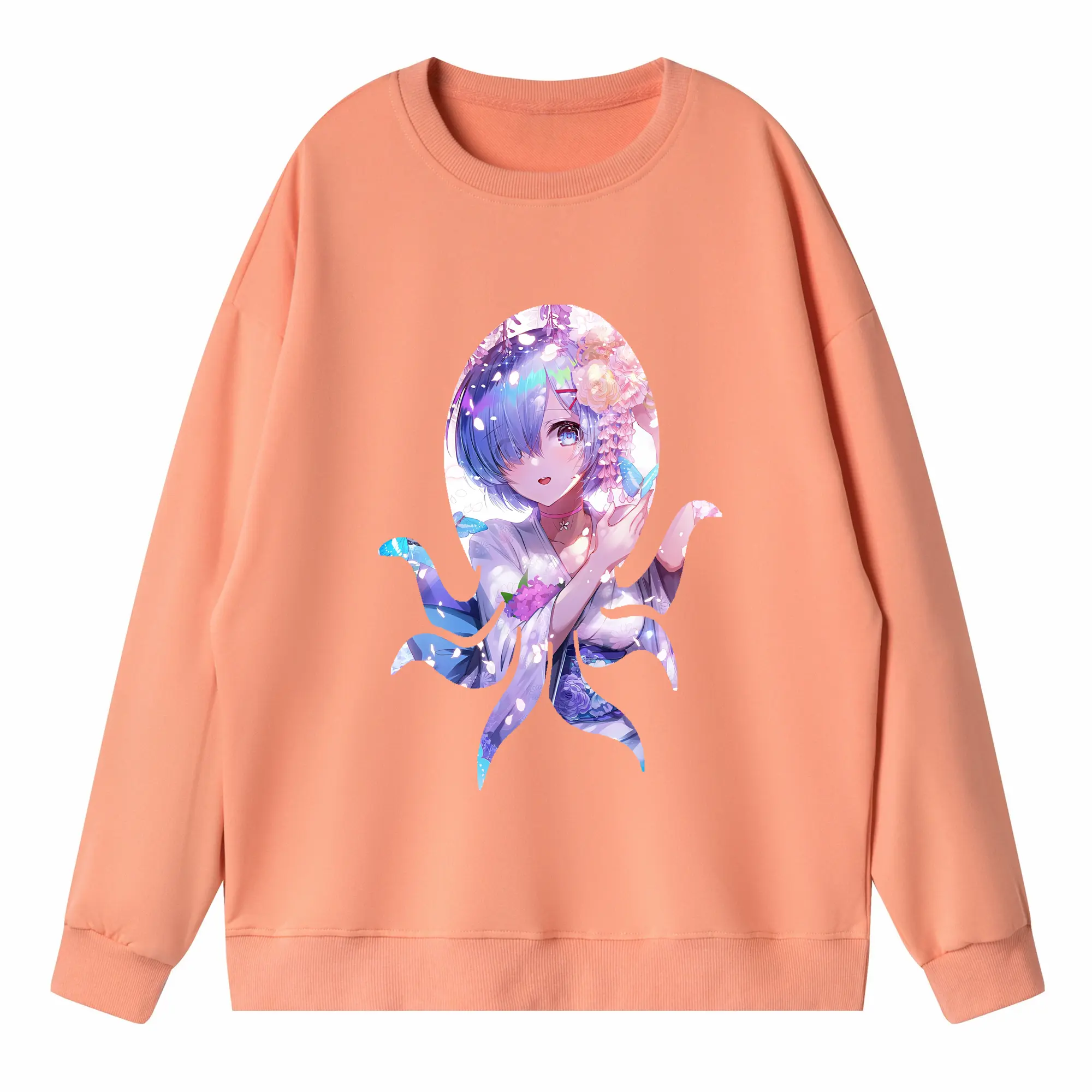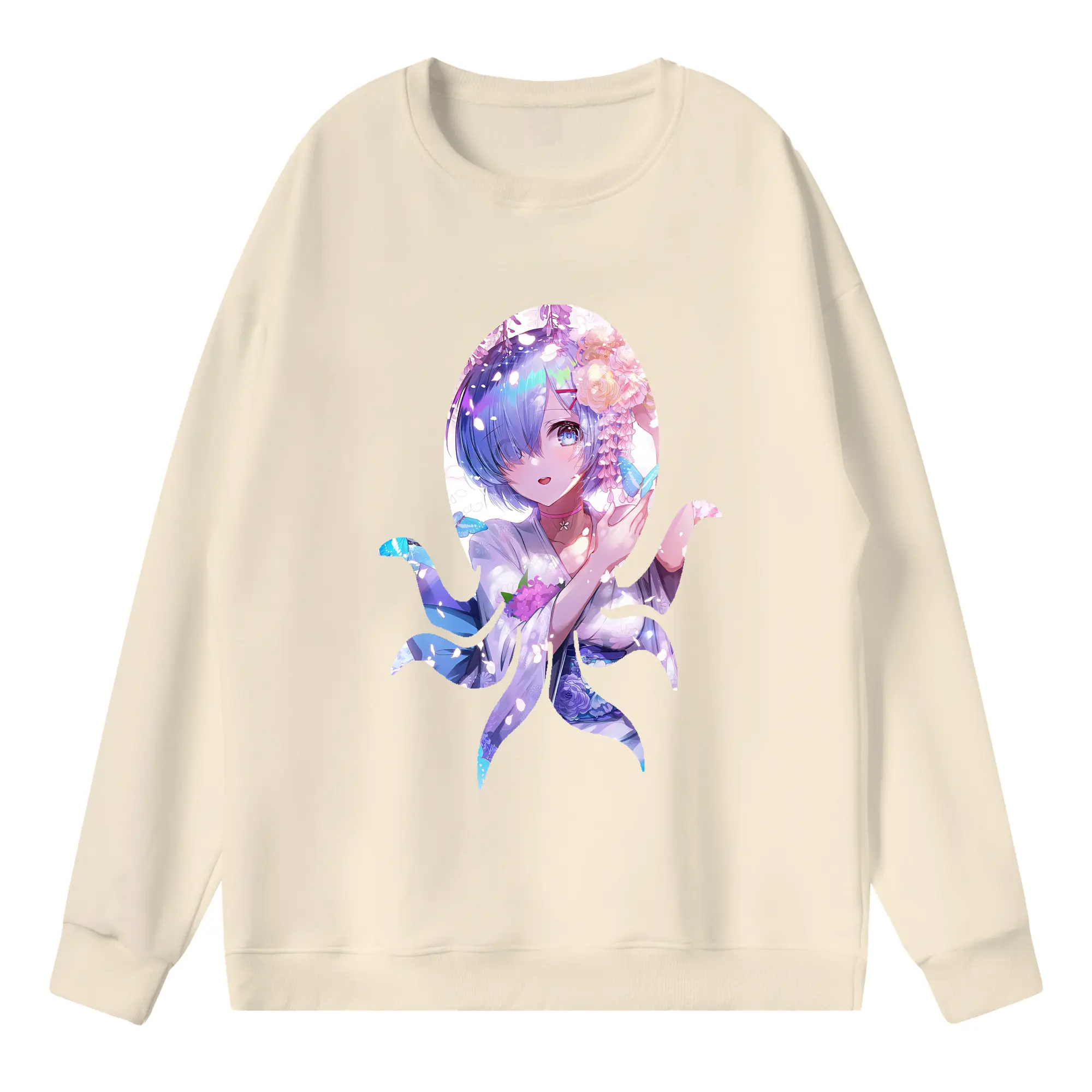 リゼロ グッズ レム - 高品質 クルーネック スウェット ・ コットン59% ポリエステル41% ・ ユニセックス 長袖 トレーナー ・ カジュアル デイリー スポーツ 散歩用