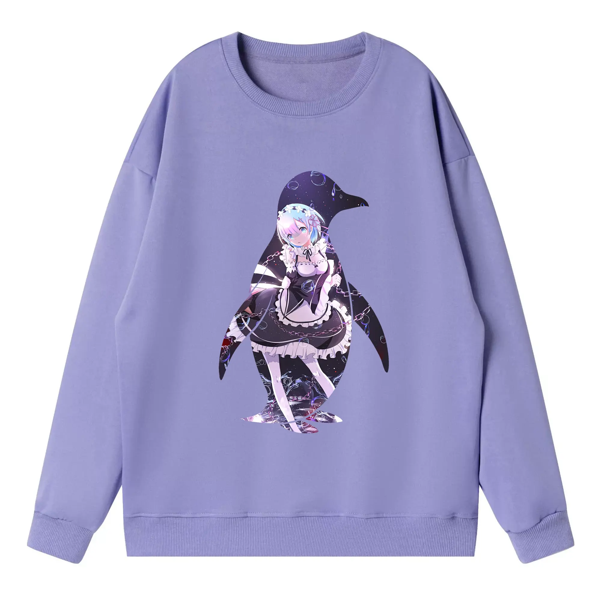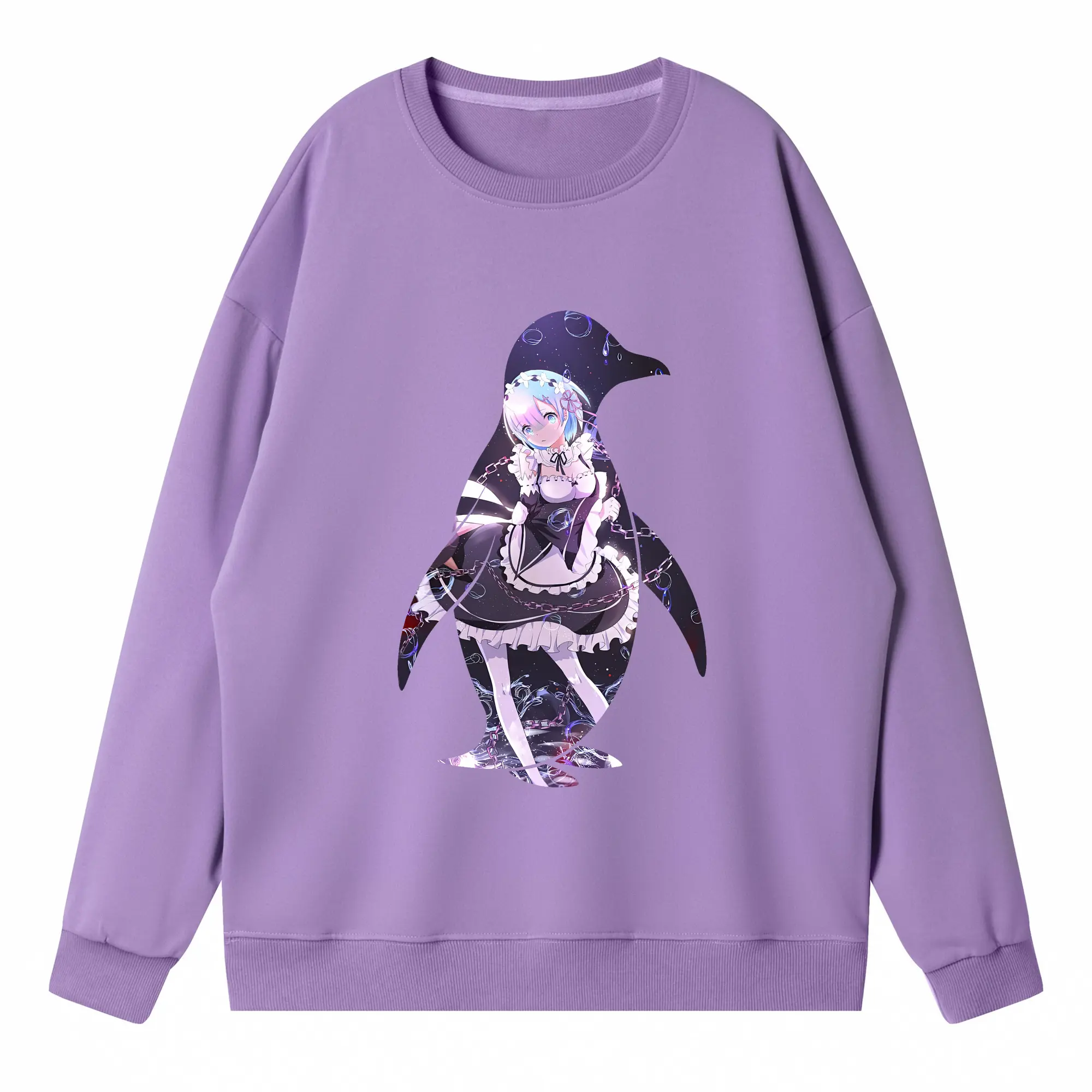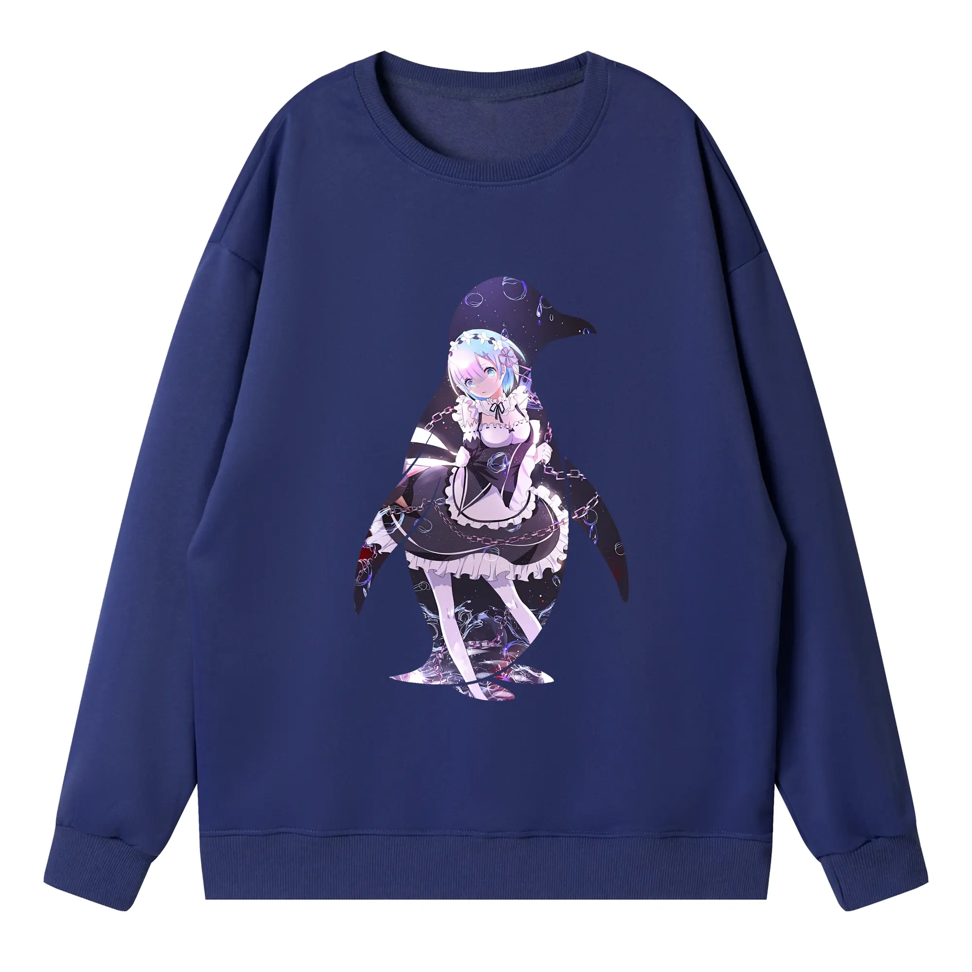 リゼロ グッズ レム - 高品質 クルーネック スウェット ・ コットン59% ポリエステル41% ・ ユニセックス 長袖 トレーナー ・ カジュアル デイリー スポーツ 散歩用