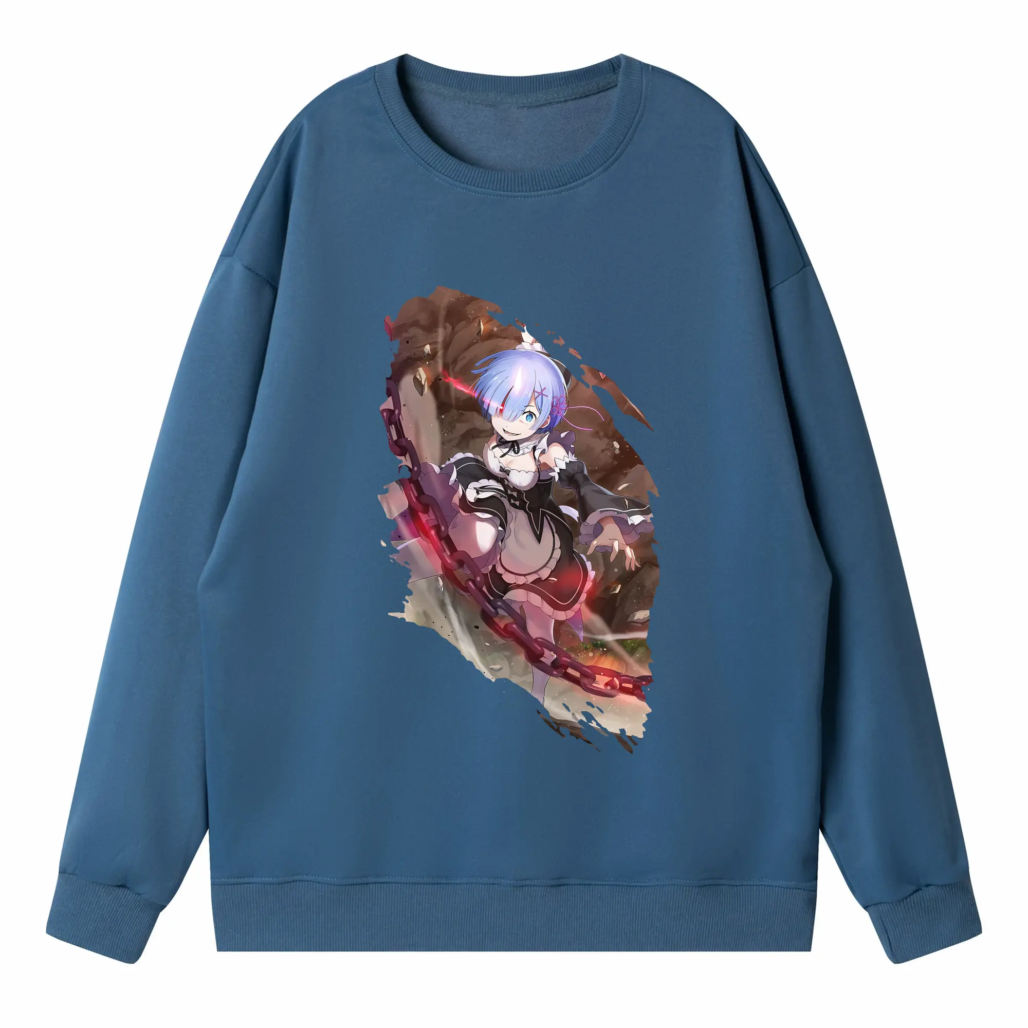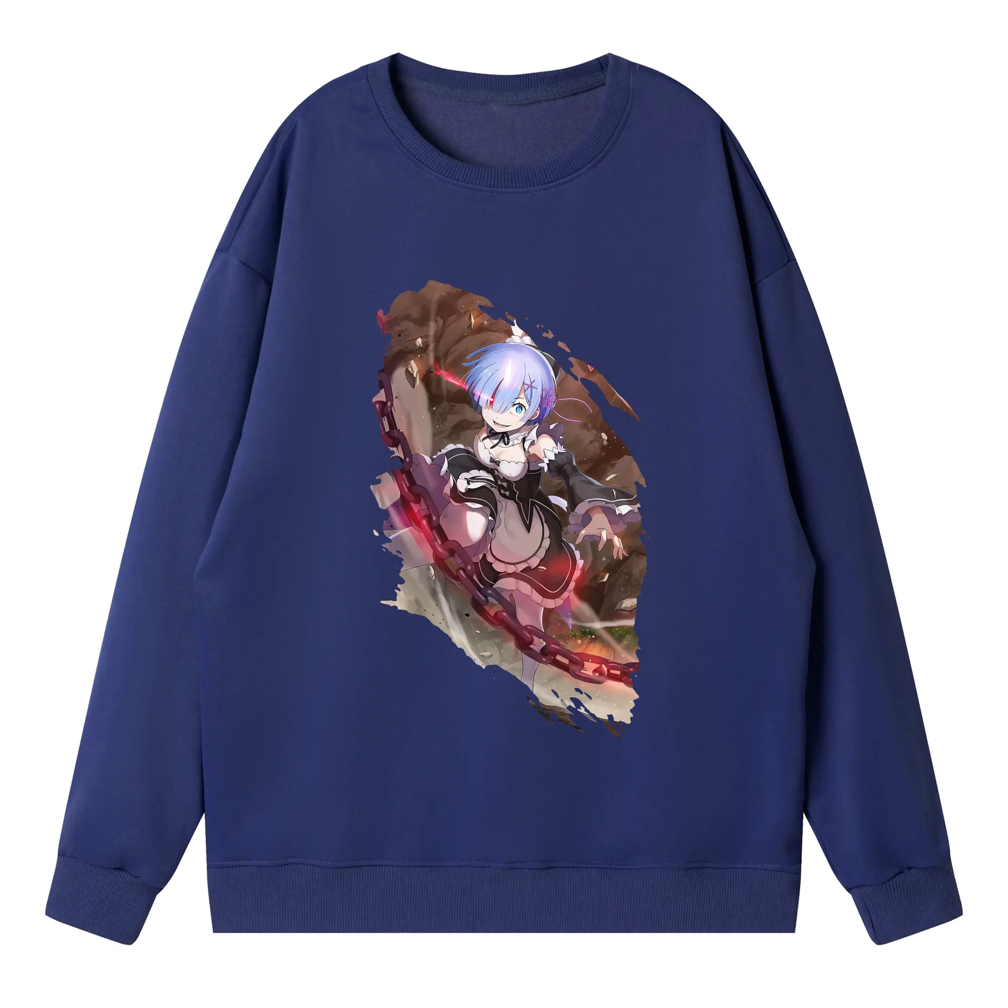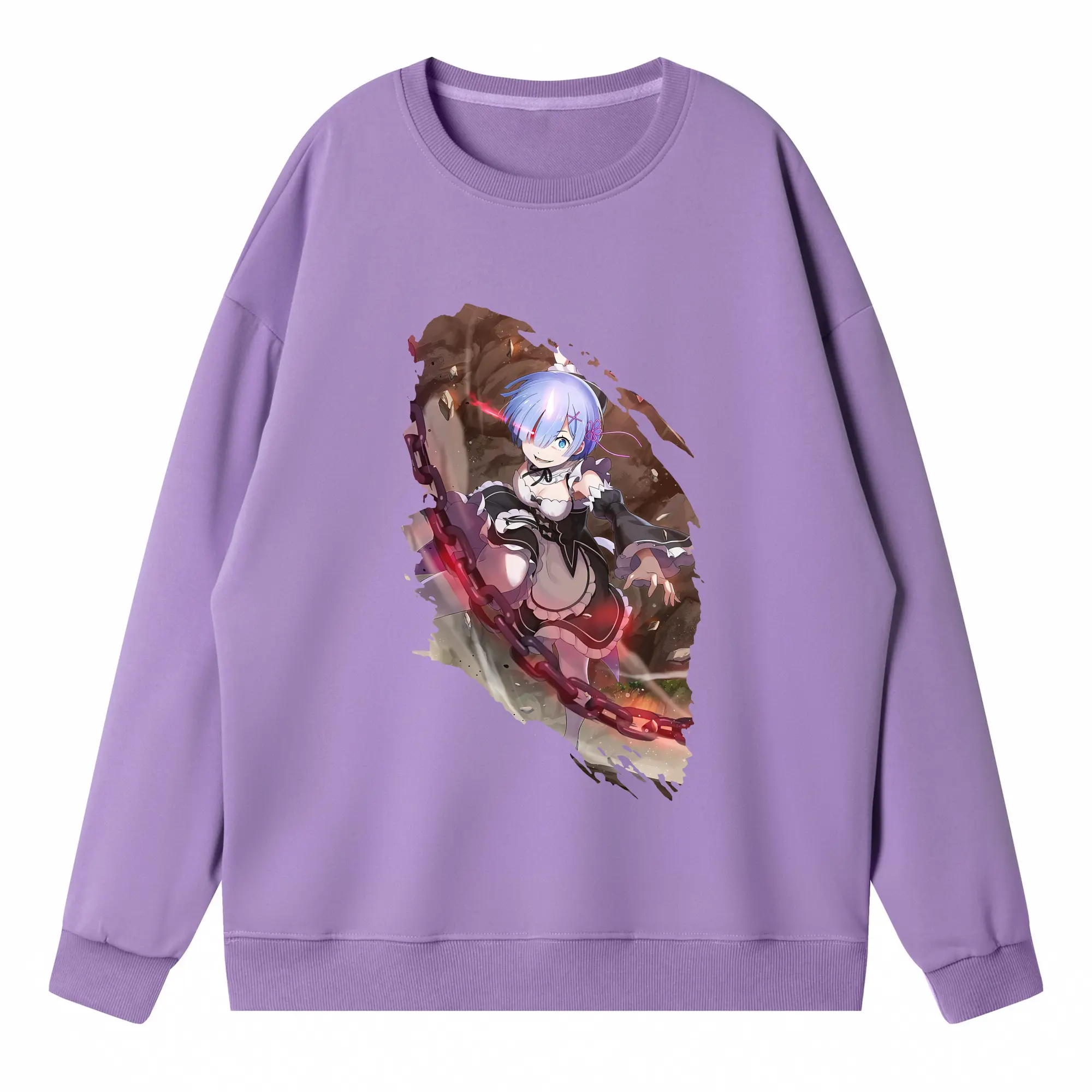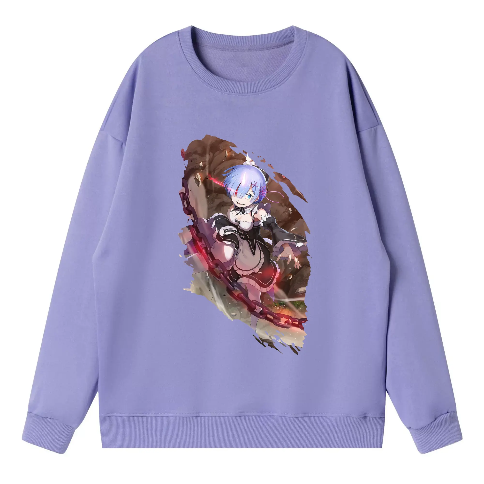 リゼロ グッズ レム - 高品質 クルーネック スウェット ・ コットン59% ポリエステル41% ・ ユニセックス 長袖 トレーナー ・ カジュアル デイリー スポーツ 散歩用