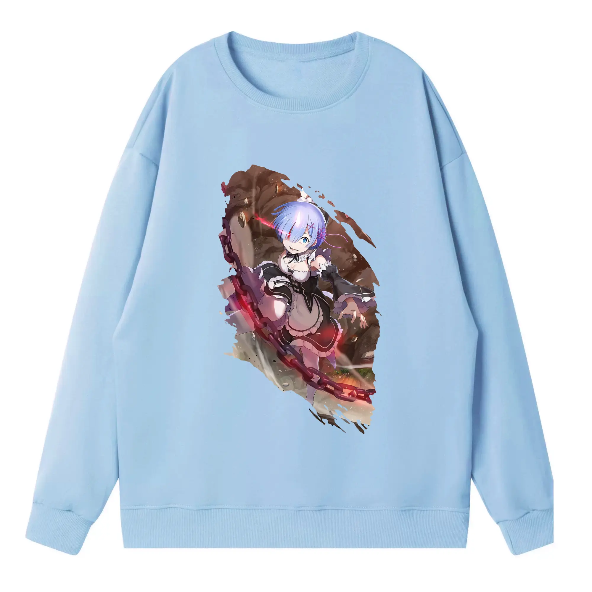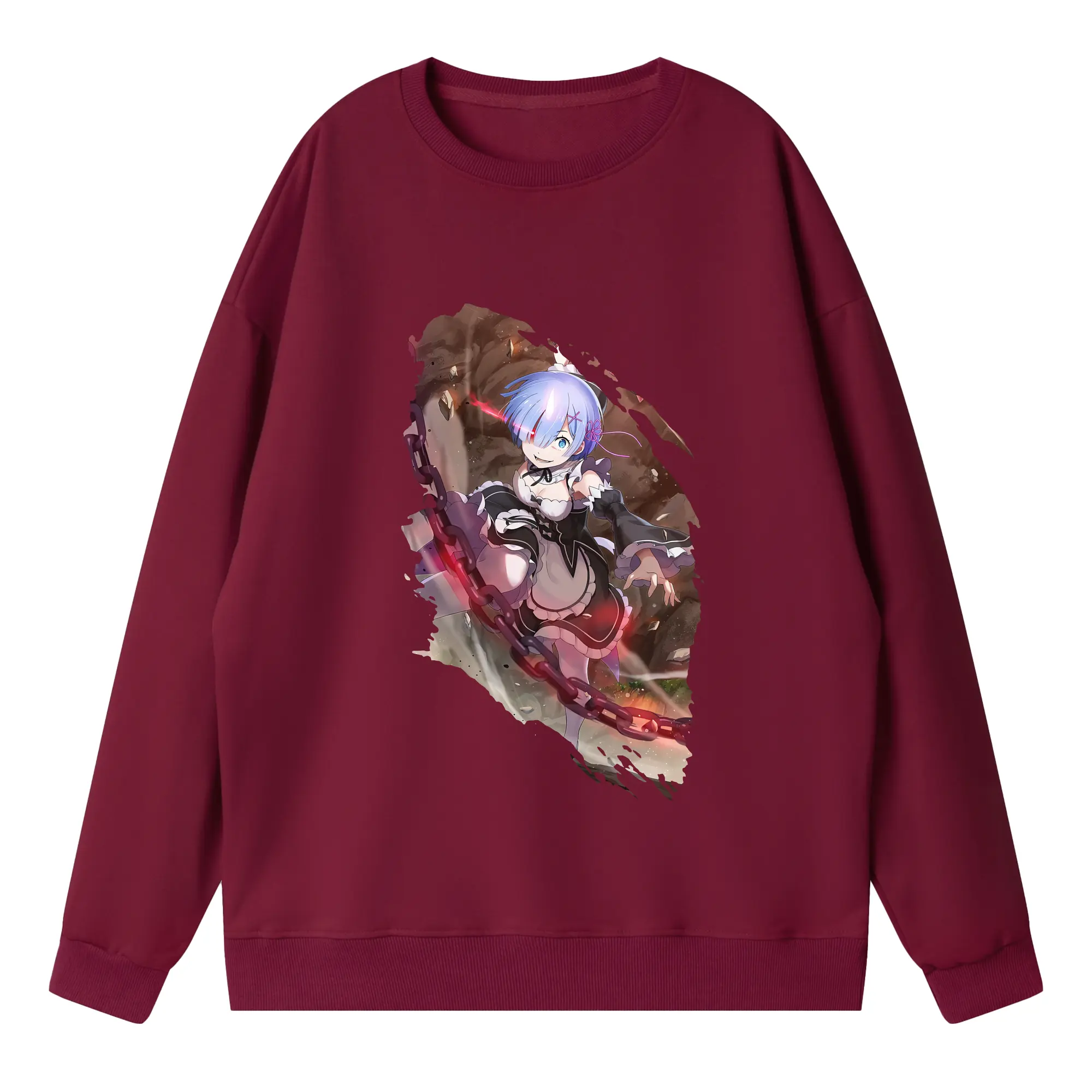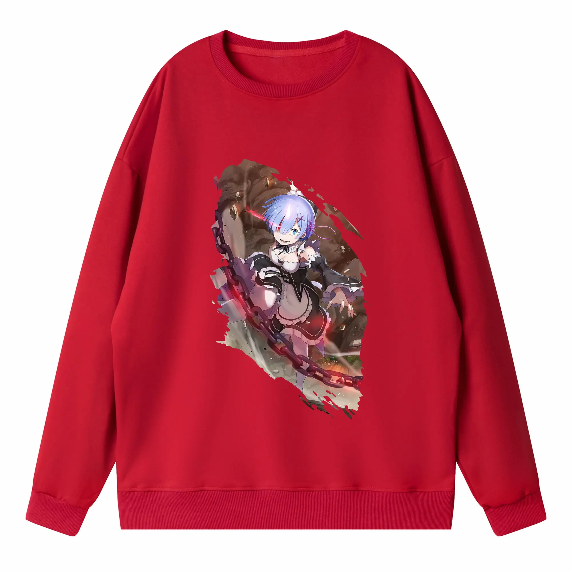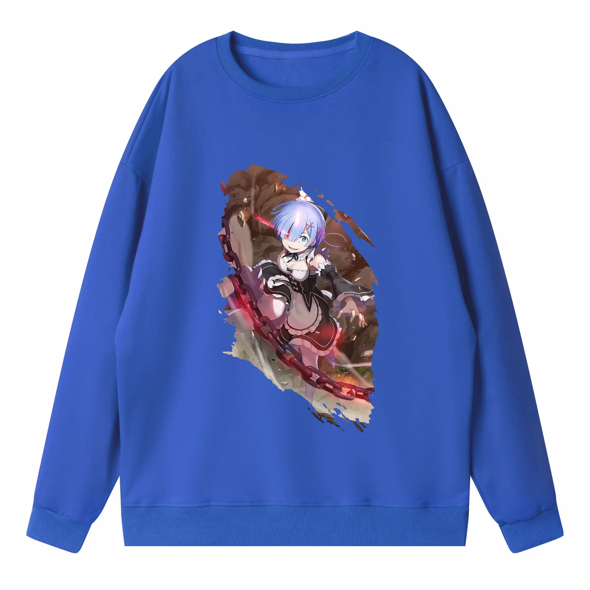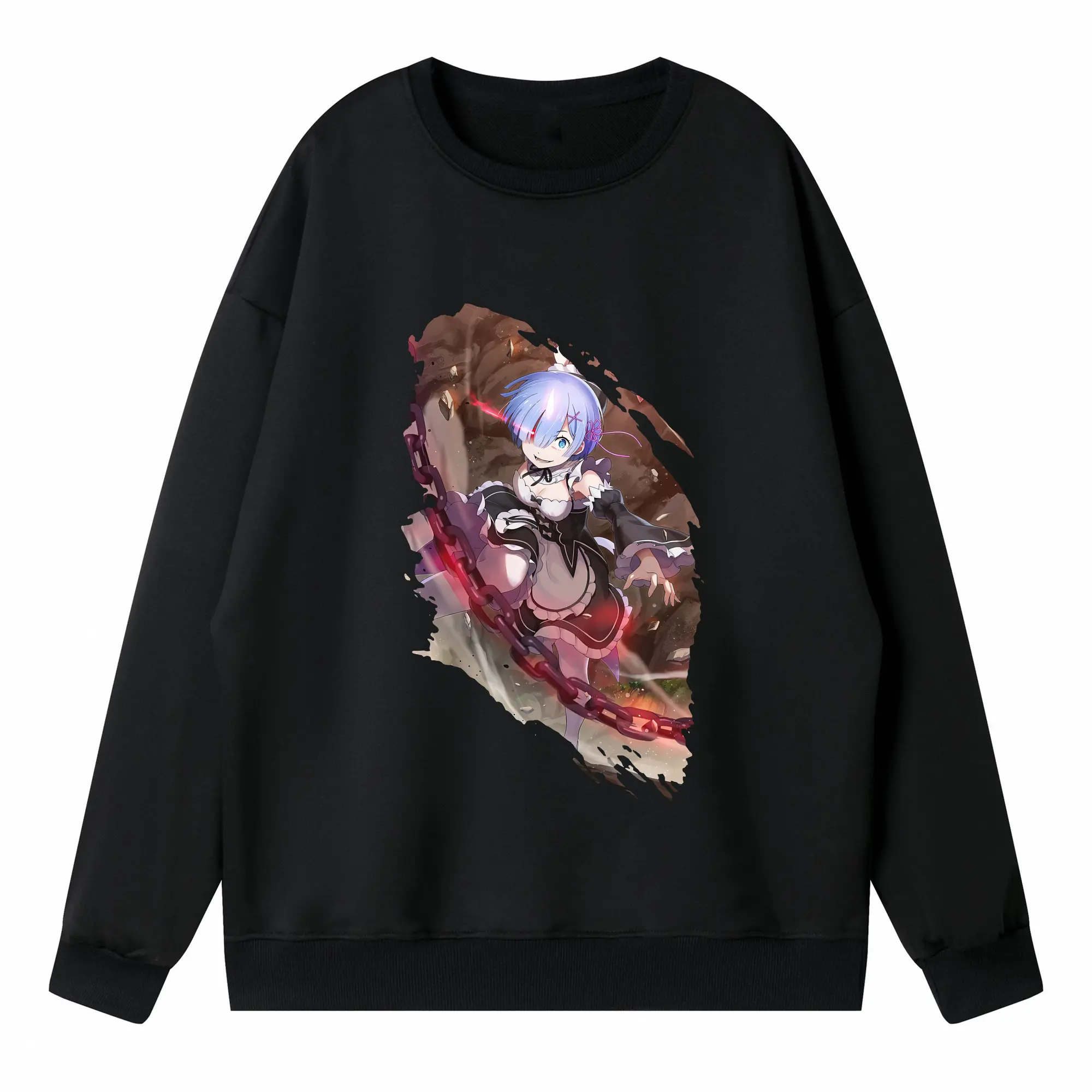 リゼロ グッズ レム - 高品質 クルーネック スウェット ・ コットン59% ポリエステル41% ・ ユニセックス 長袖 トレーナー ・ カジュアル デイリー スポーツ 散歩用