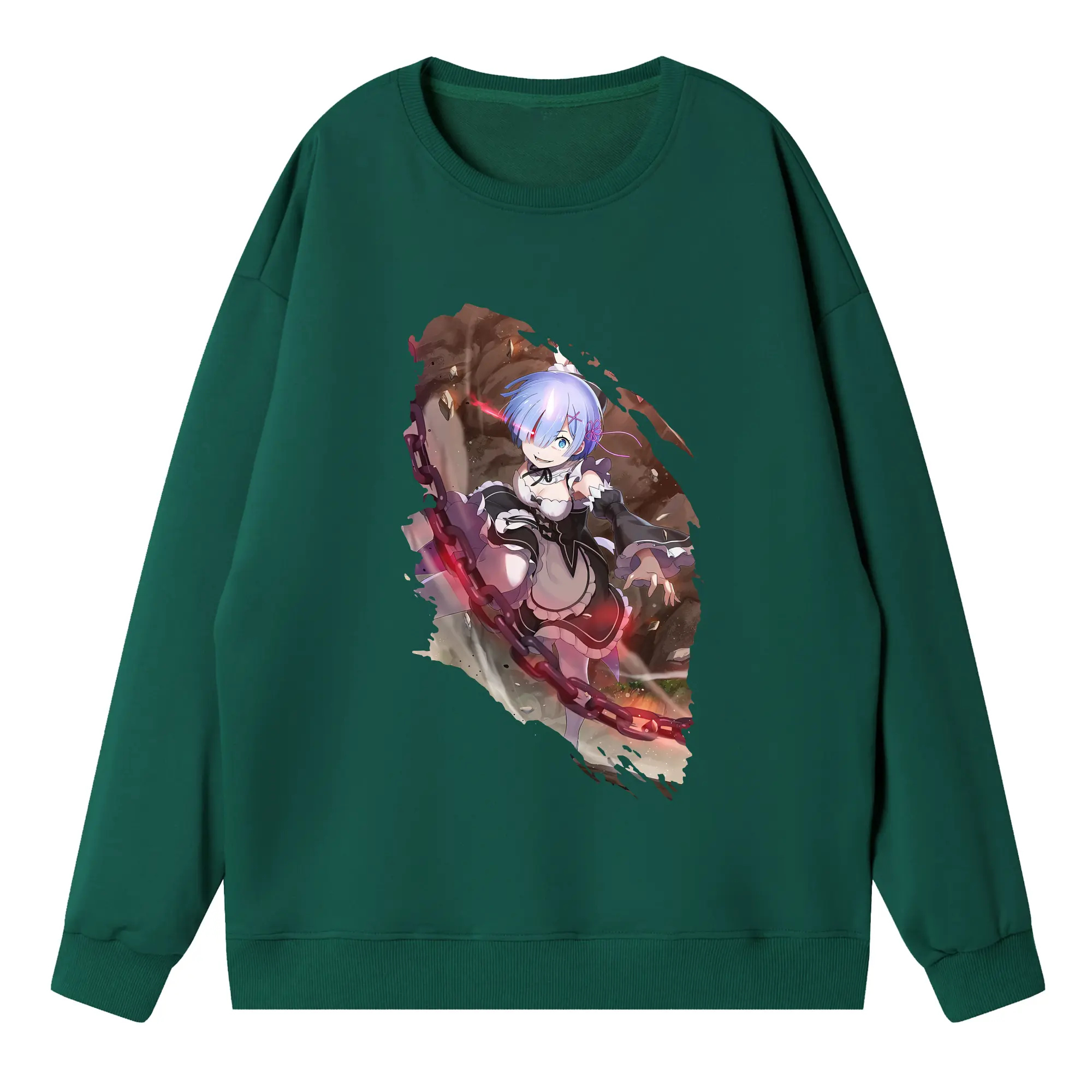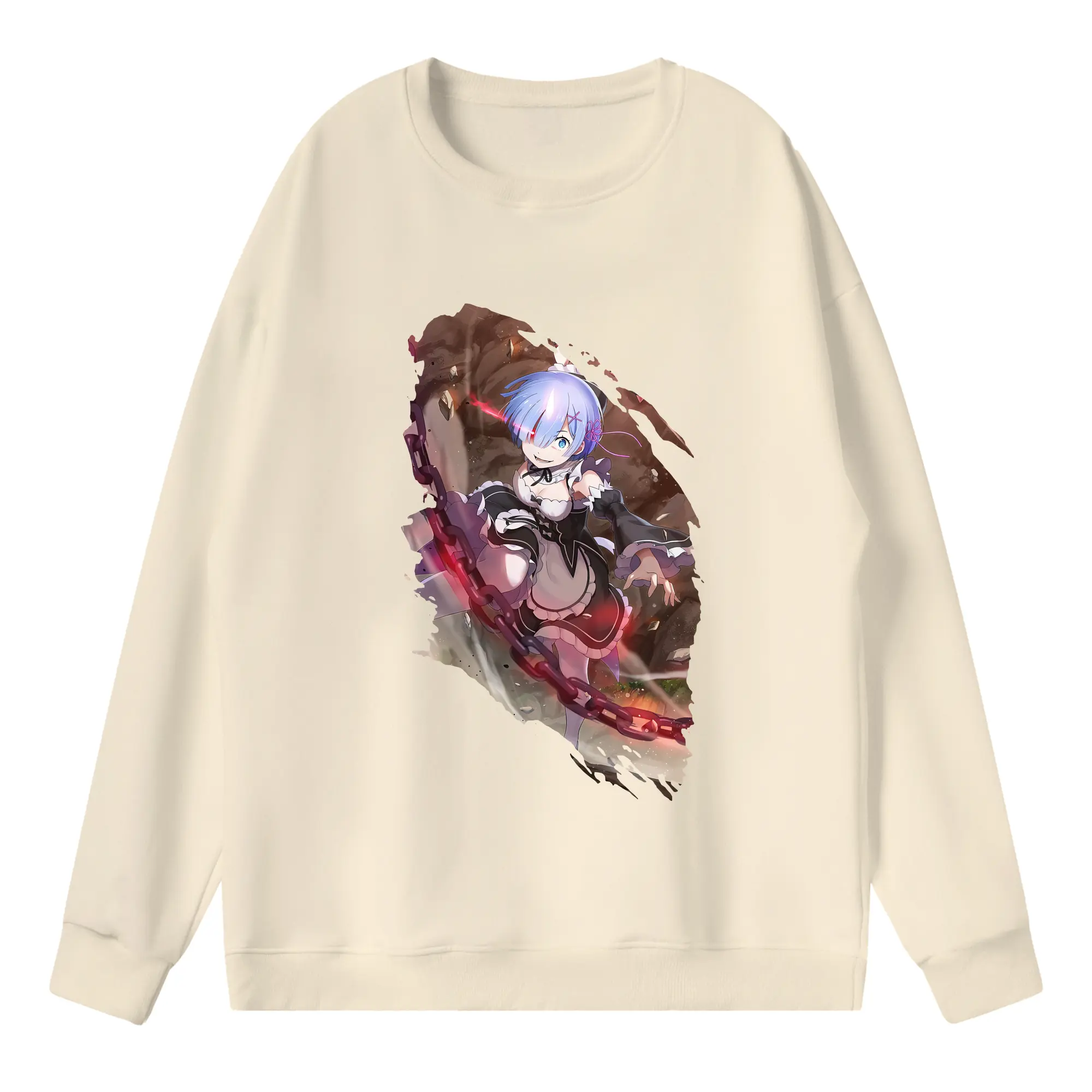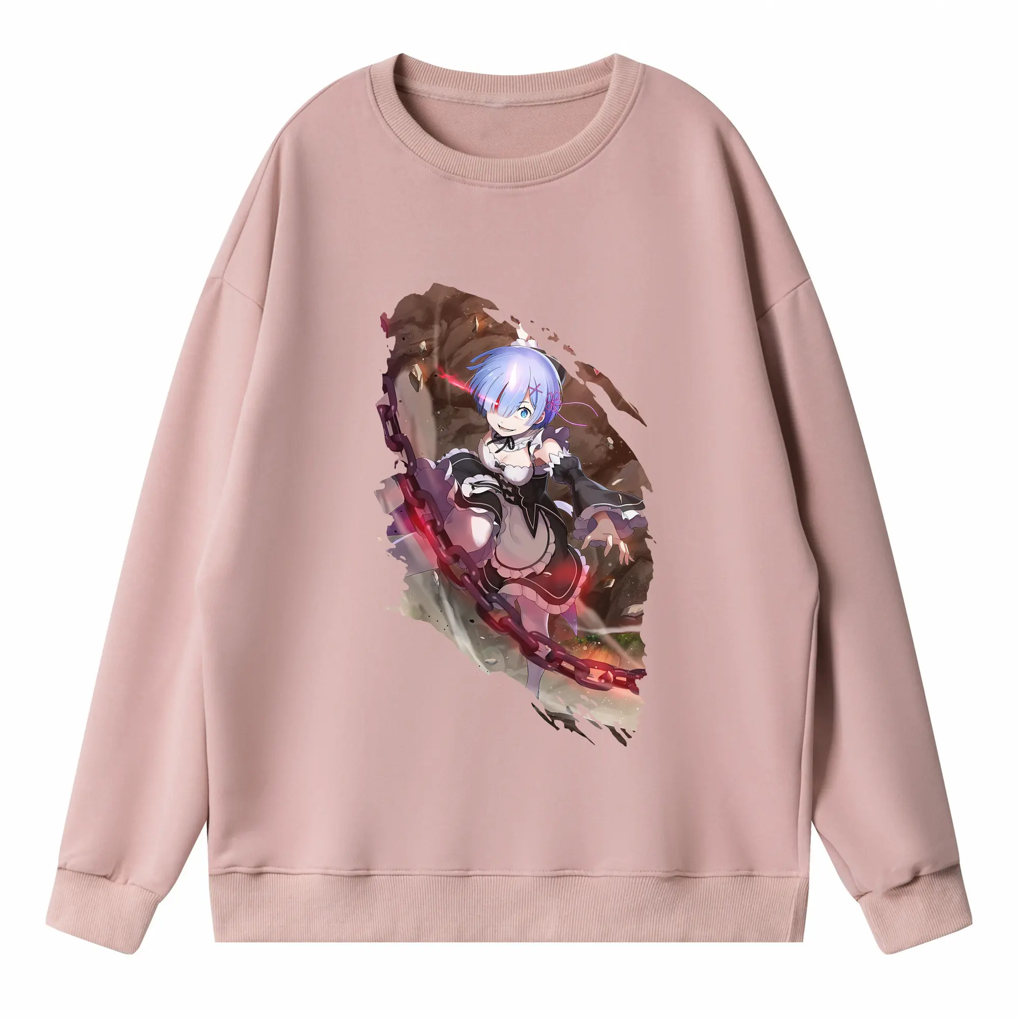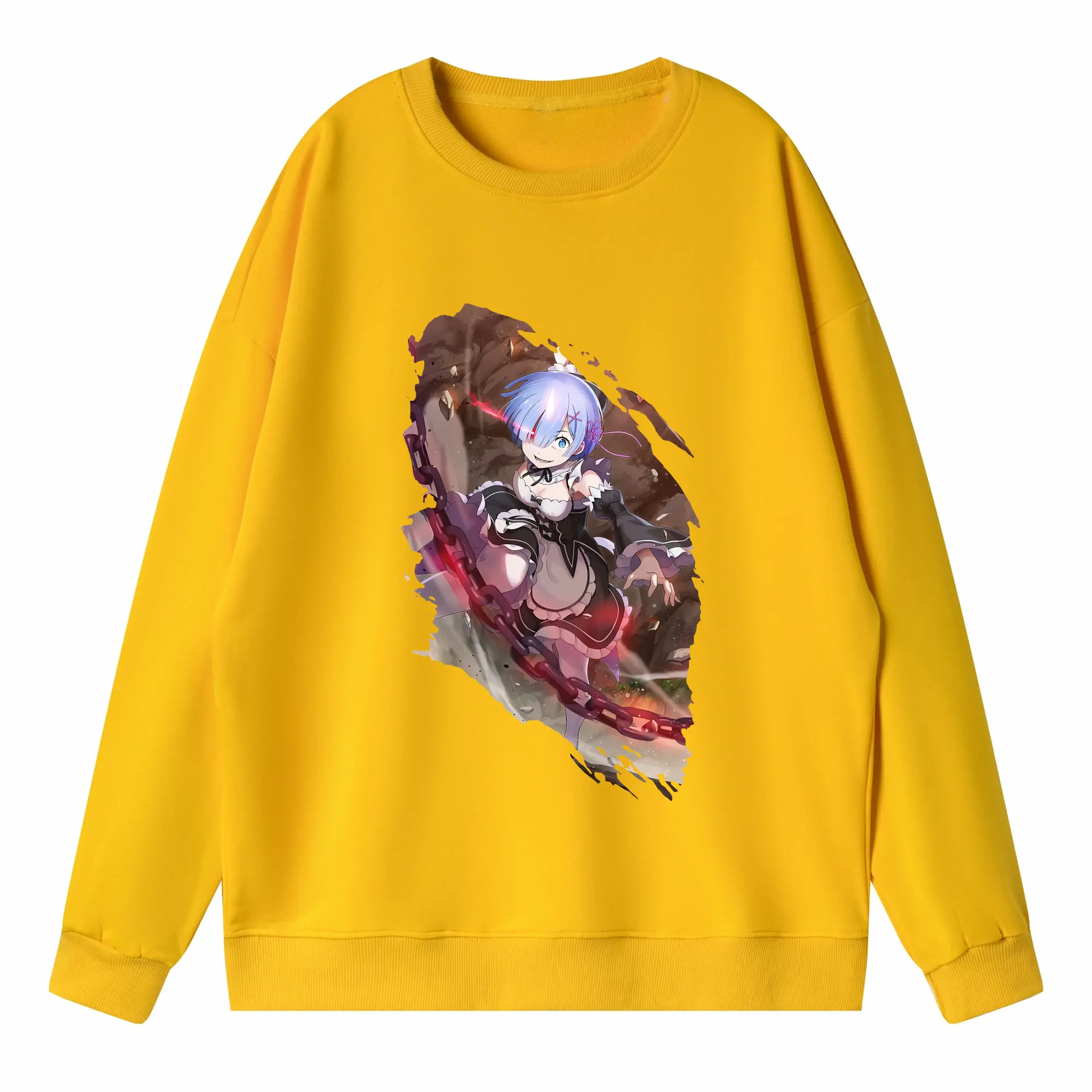 リゼロ グッズ レム - 高品質 クルーネック スウェット ・ コットン59% ポリエステル41% ・ ユニセックス 長袖 トレーナー ・ カジュアル デイリー スポーツ 散歩用