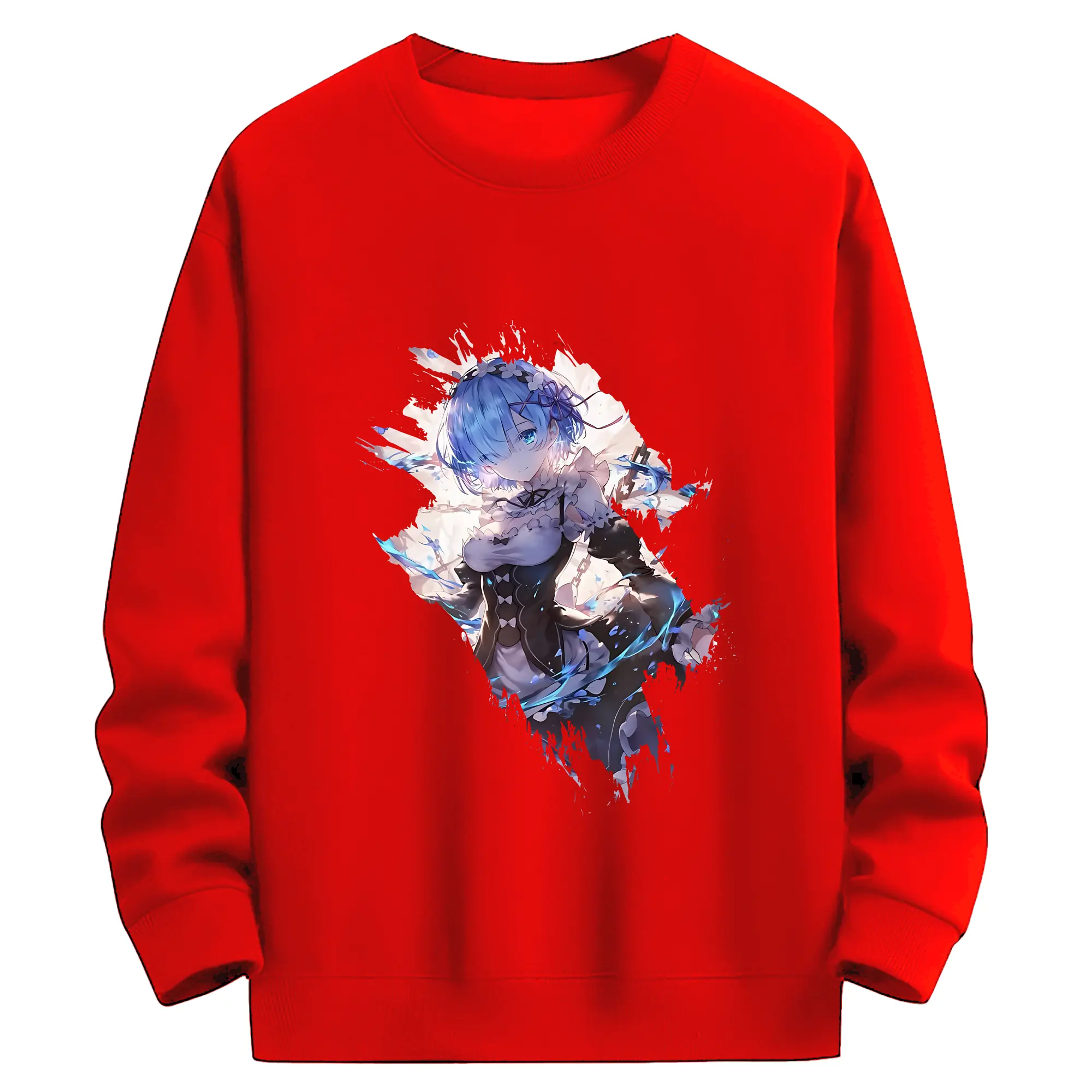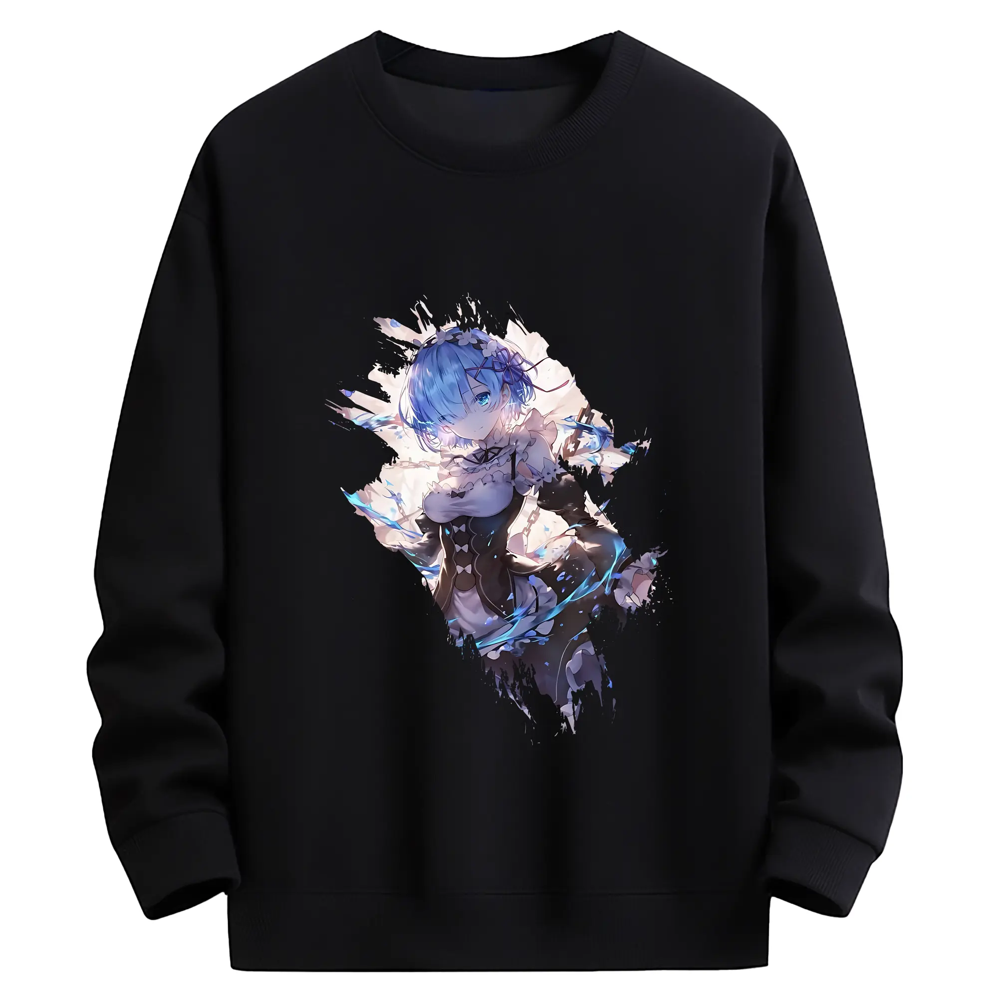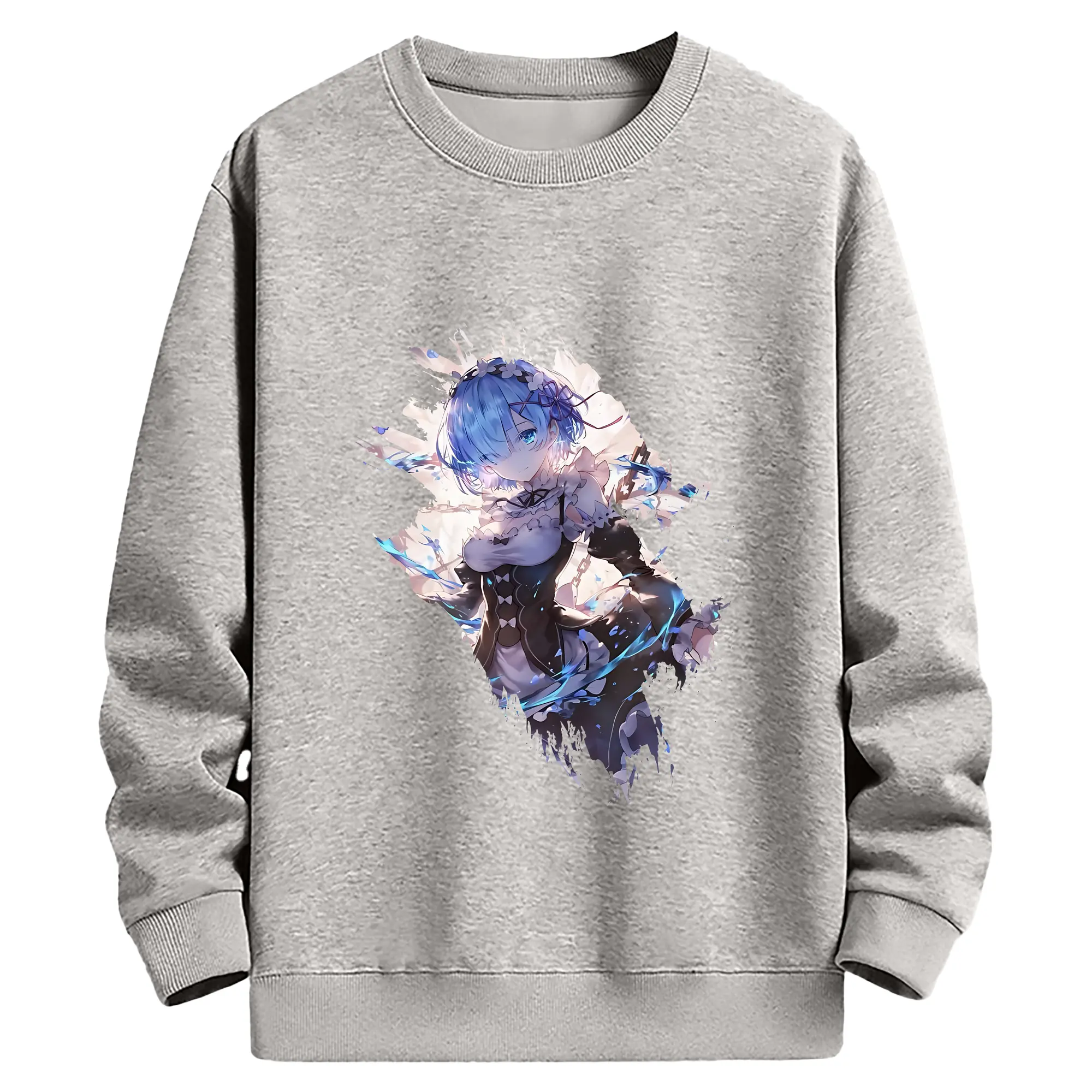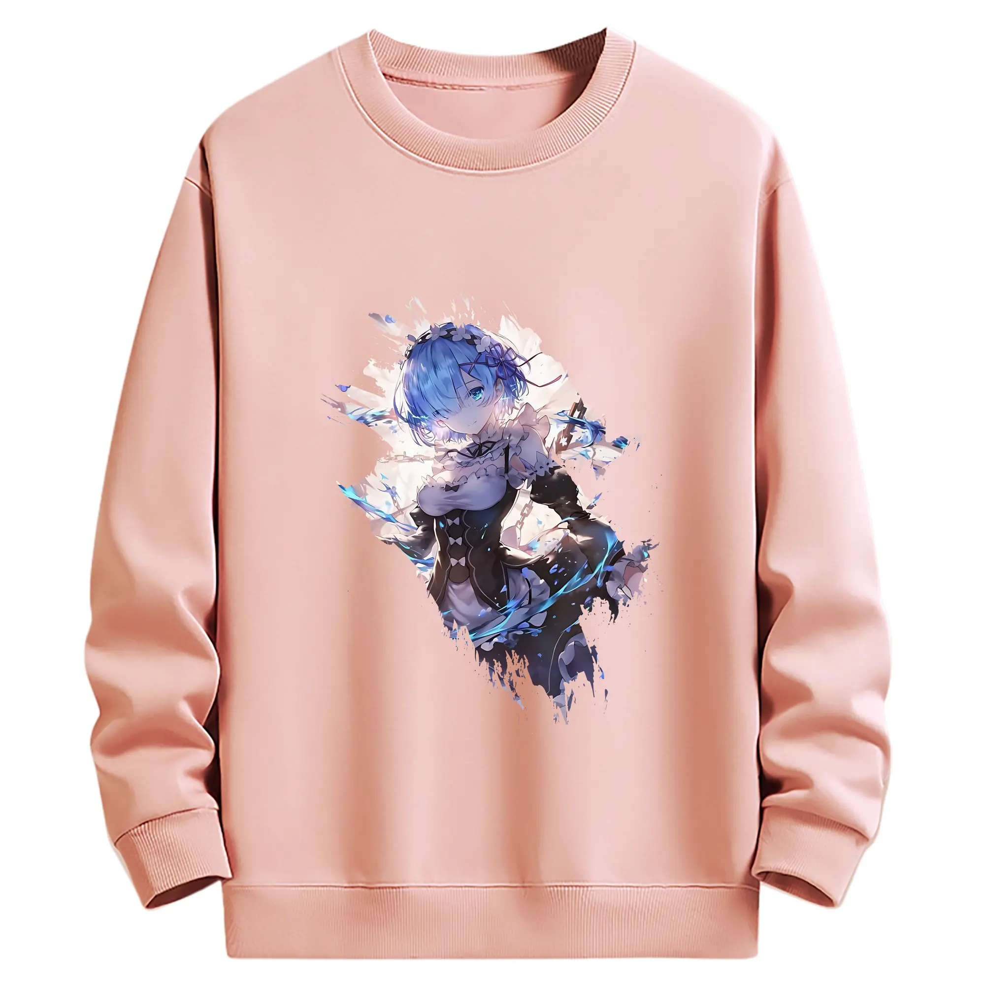 リゼロ グッズ レム - 薄手 クルーネック スウェット 裏毛260g · ポリエステル 春秋向け カジュアル 男女兼用 · トレーナー デイリー スポーツ 散歩に最適