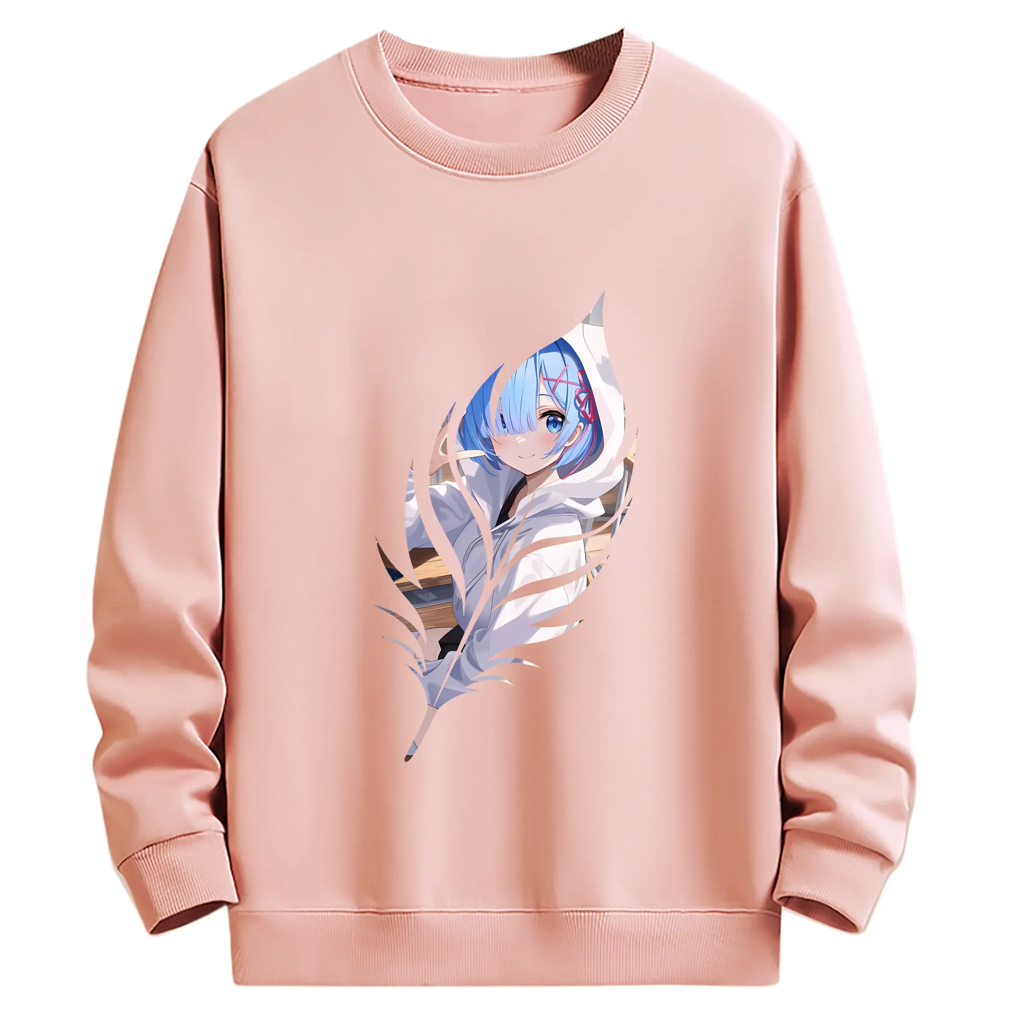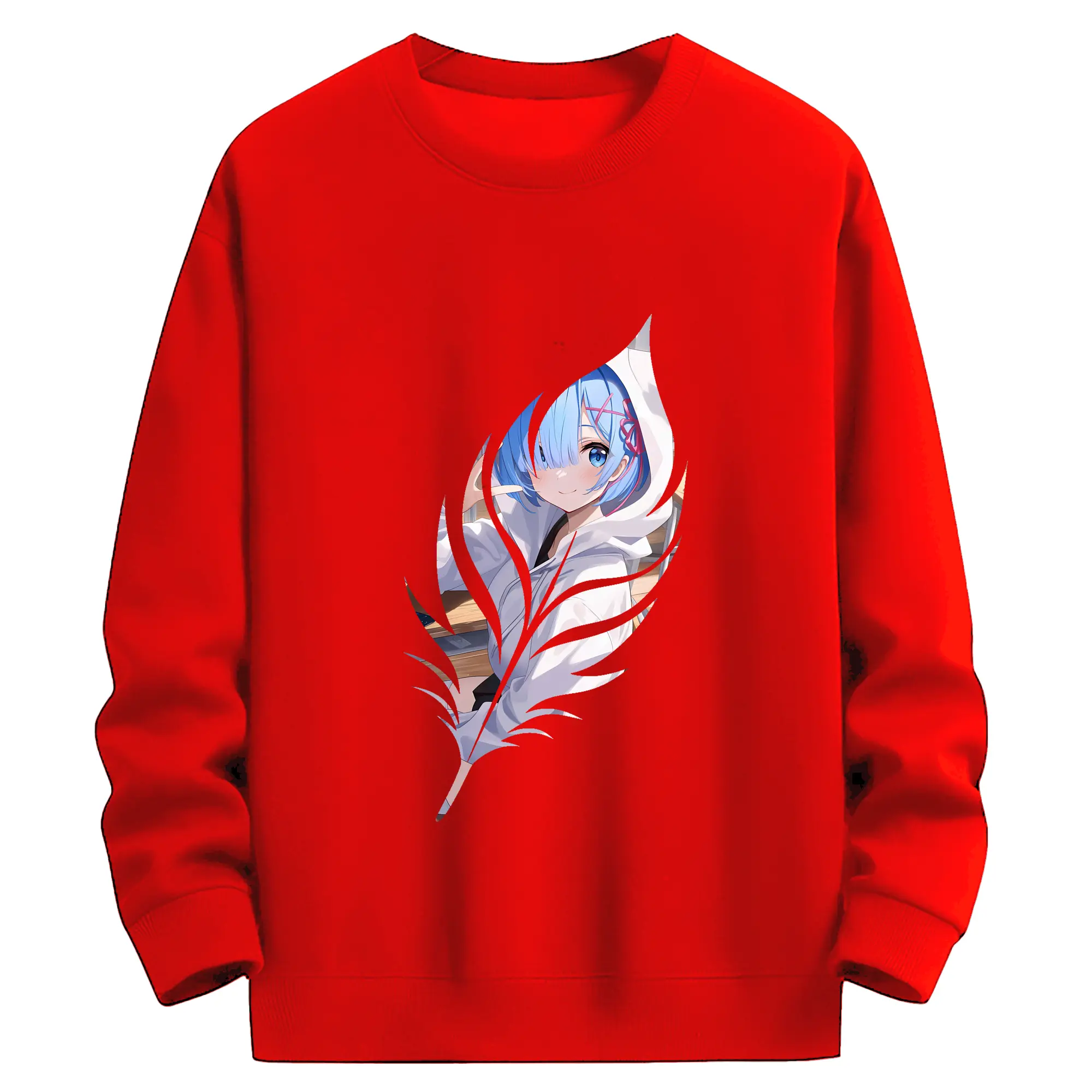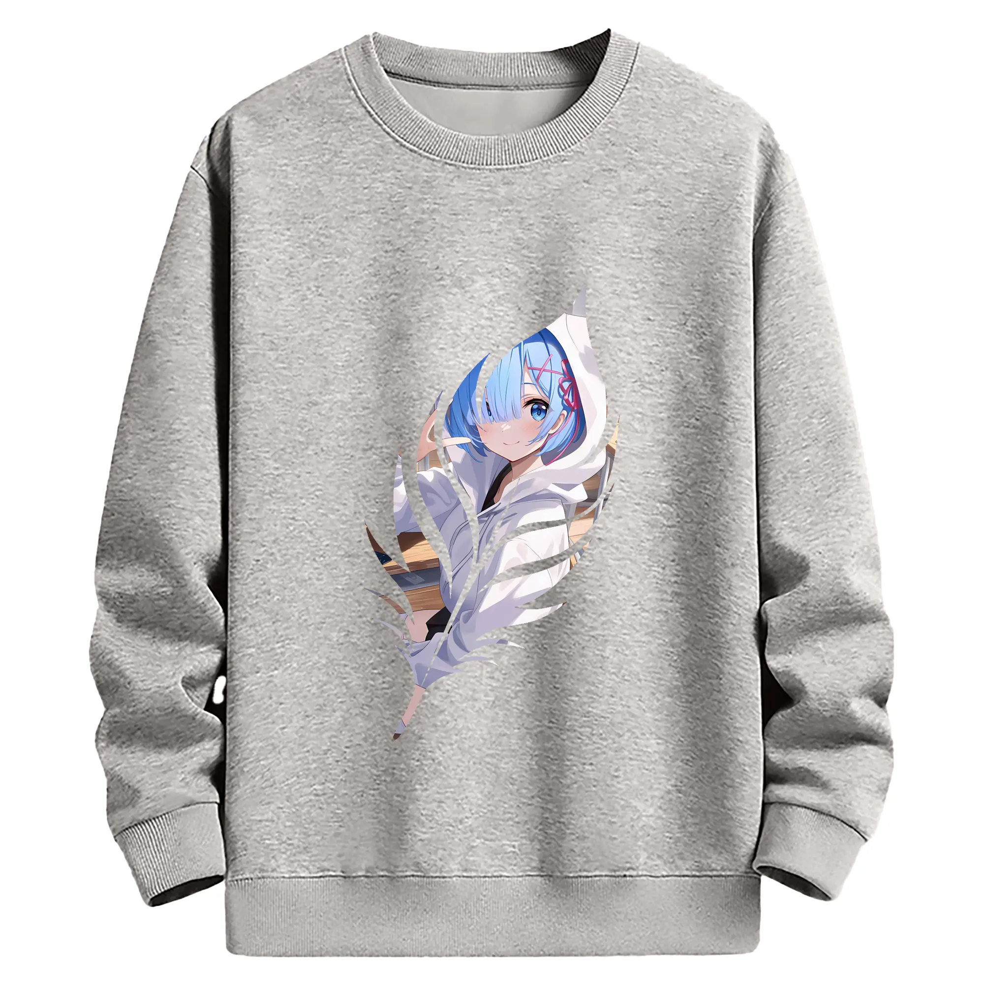 リゼロ グッズ レム - 薄手 クルーネック スウェット 裏毛260g · ポリエステル 春秋向け カジュアル 男女兼用 · トレーナー デイリー スポーツ 散歩に最適